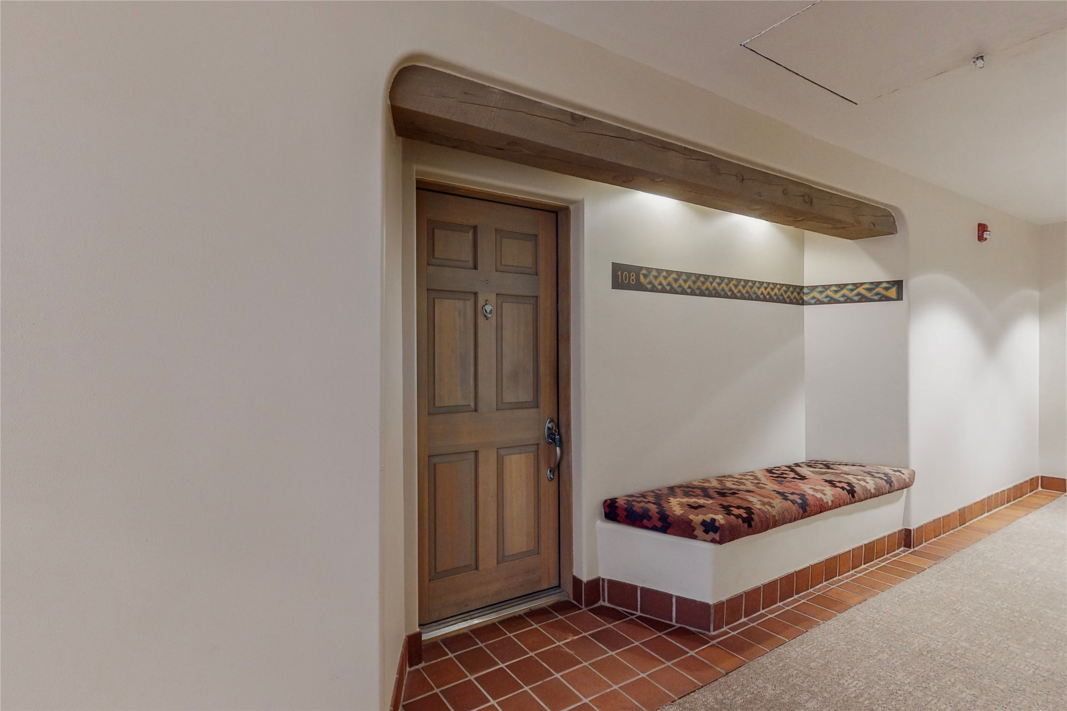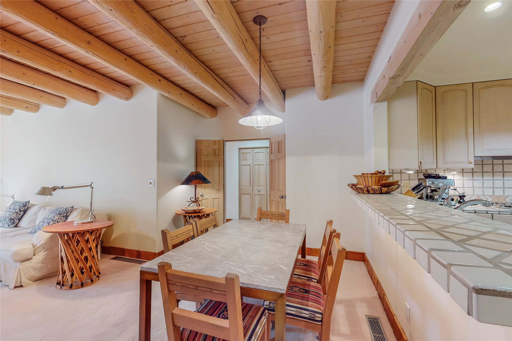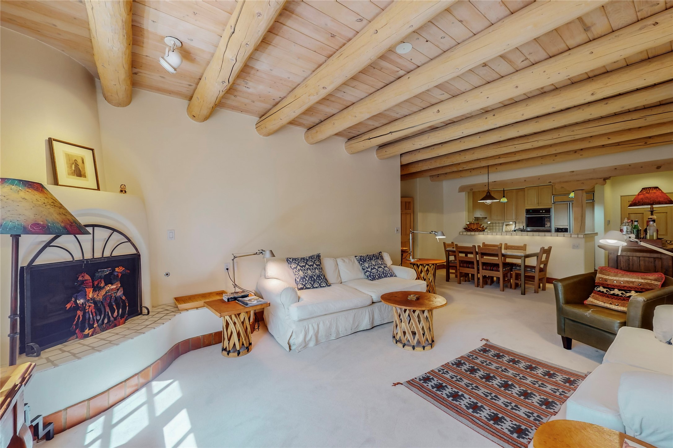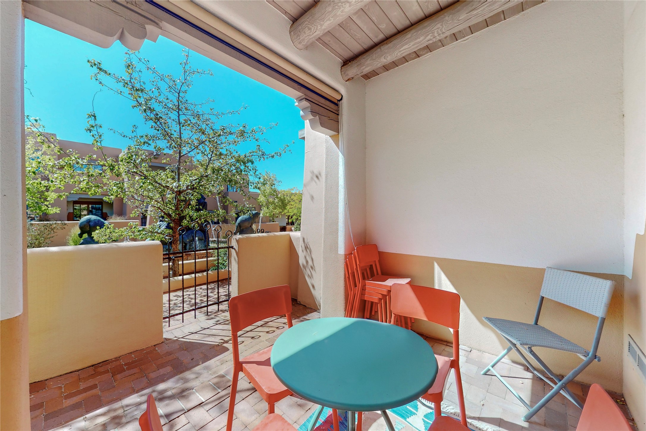 The premiere Plaza Condo location at Quail Run! Not only is it a ground unit but it is the end unit by theBear Sculpture Fountain and has the beautiful southern light orientation for the spacious patio andwindows. 2 bedrooms, 2 bath, approximately 1288 square feet and no steps. Freshly painted, newcarpet, new dishwasher, and being sold turn-key which means furniture and dishes are included. The secondbedroom is currently furnished as an office with bookshelves. Quail Run is a gated community that is setup for easy living. The HOA fee covers all amenities- golf, fitness classes, gym, indoor pool, tennis, pickleball, 24-hour hosted security, exterior maintenance, stucco, roof, windows, patio bricks, courtyard wall.This residence is perfect for full-time living or as a Lock and Leave. The proximity to the soothing soundof the Bear Sculpture Fountain is like having your own private park. Easy access to all that Santa Fe hasto offer- restaurants, galleries, The Santa Fe Opera, hiking, skiing, year- round festivals, music concerts,lectures, theater and dance performances.