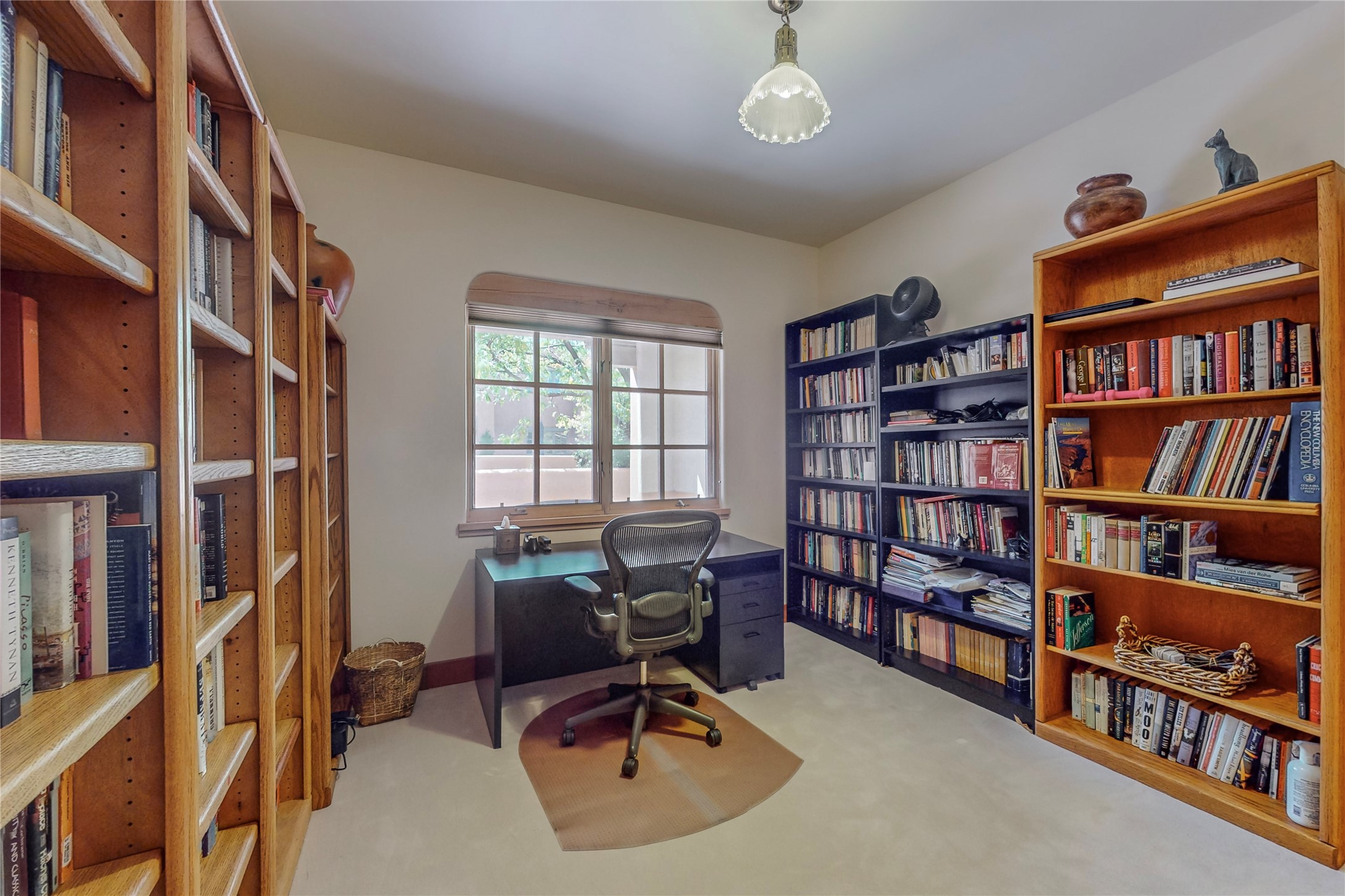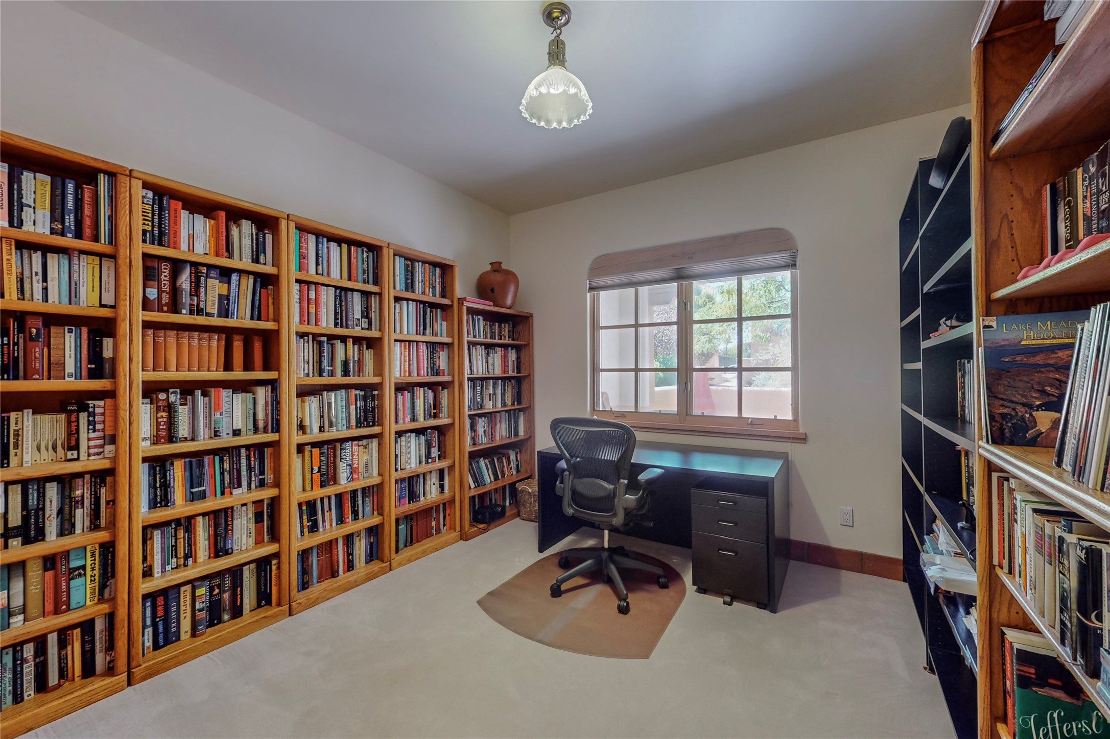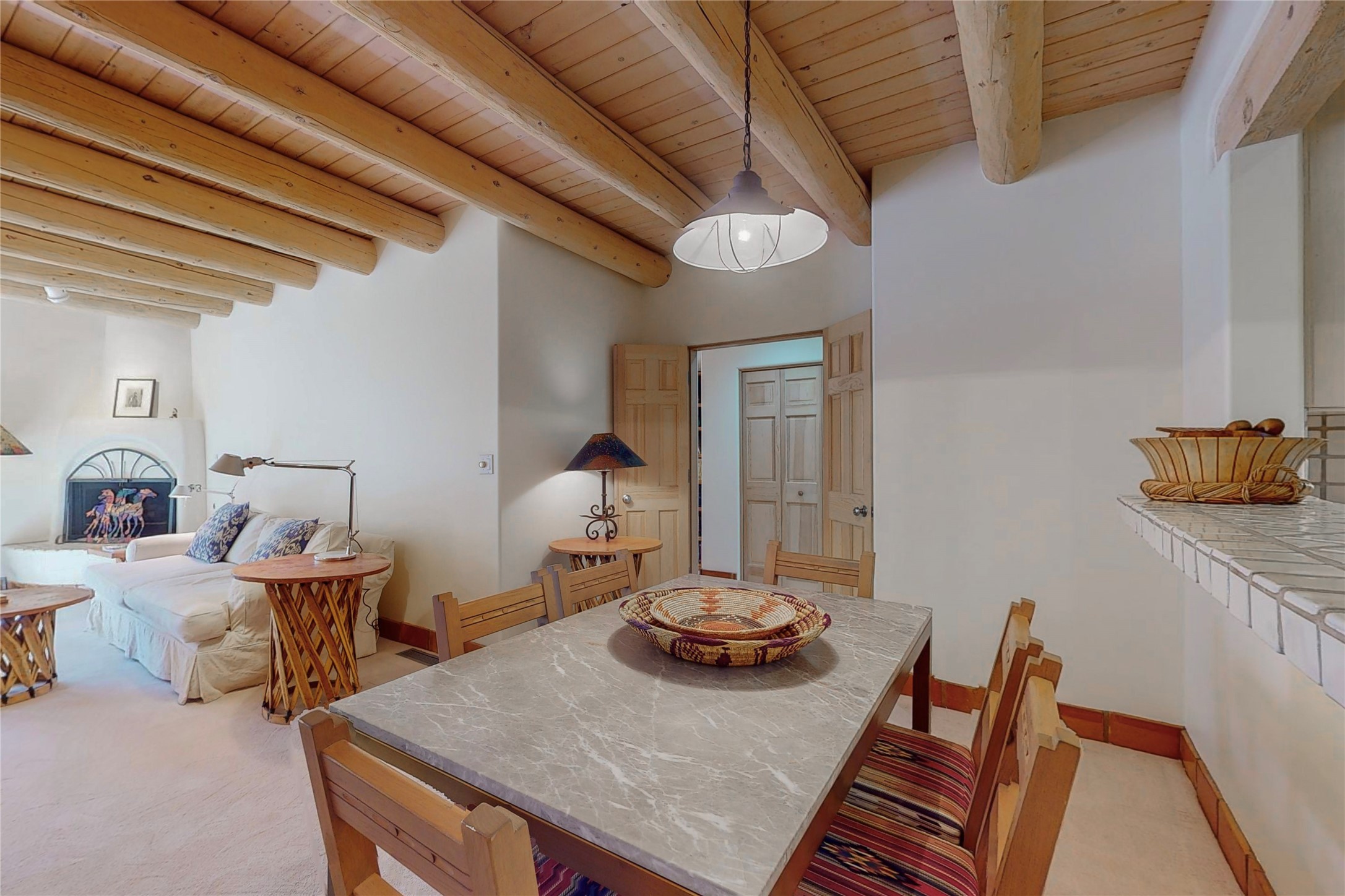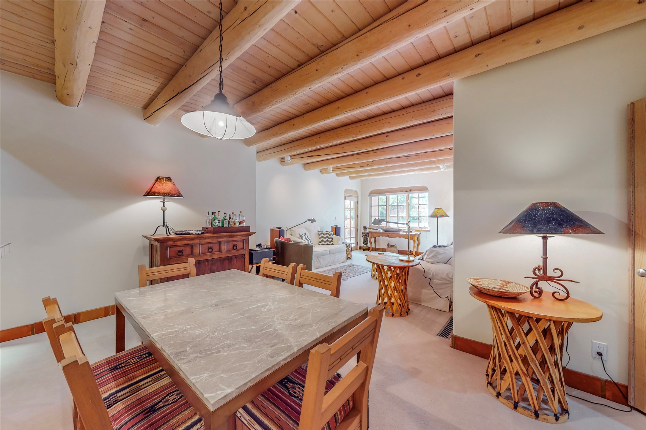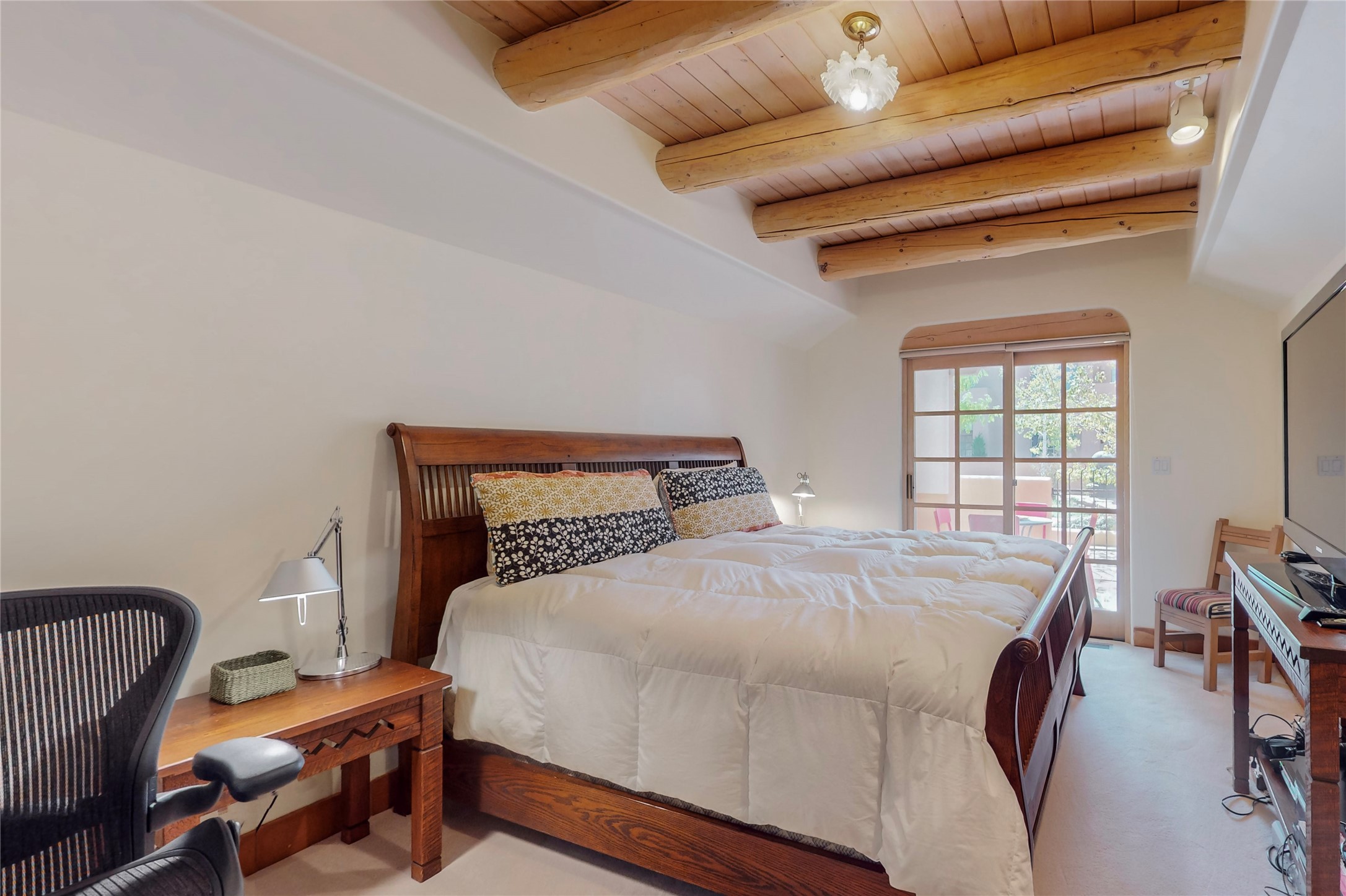 The premiere Plaza Condo location at Quail Run! Not only is it a ground unit but it is the end unit by theBear Sculpture Fountain and has the beautiful southern light orientation for the spacious patio andwindows. 2 bedrooms, 2 bath, approximately 1288 square feet and no steps. Freshly painted, newcarpet, new dishwasher, and being sold turn-key which means furniture and dishes are included. The secondbedroom is currently furnished as an office with bookshelves. Quail Run is a gated community that is setup for easy living. The HOA fee covers all amenities- golf, fitness classes, gym, indoor pool, tennis, pickleball, 24-hour hosted security, exterior maintenance, stucco, roof, windows, patio bricks, courtyard wall.This residence is perfect for full-time living or as a Lock and Leave. The proximity to the soothing soundof the Bear Sculpture Fountain is like having your own private park. Easy access to all that Santa Fe hasto offer- restaurants, galleries, The Santa Fe Opera, hiking, skiing, year- round festivals, music concerts,lectures, theater and dance performances.