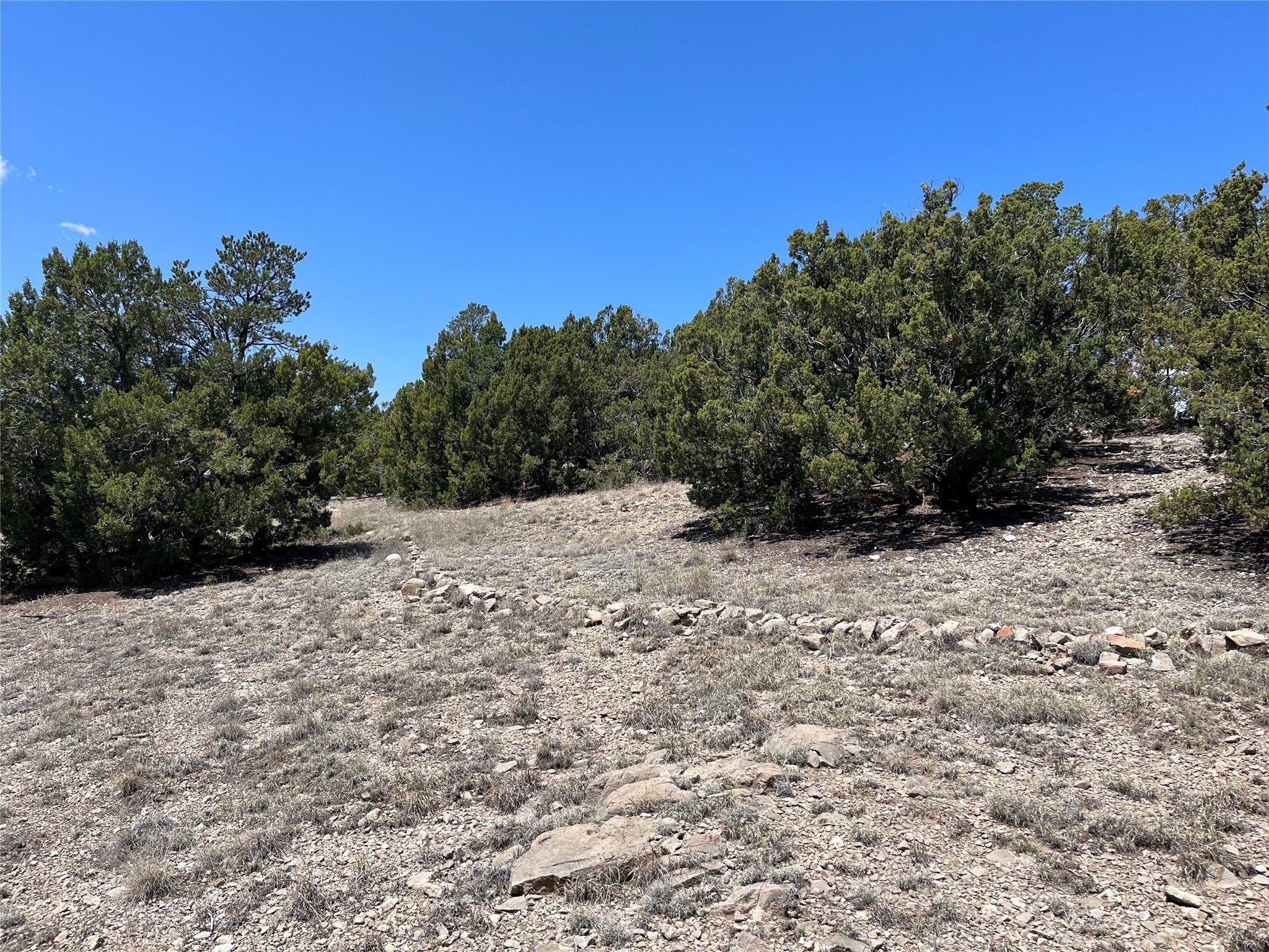 Thinking of the perfect spot with great NM views for that new home? Consider this property located in the Bernal area about 14 miles south of Las Vegas and just 45 minutes from Santa Fe! This 2.24 acre parcel with terrain that gently slopes up to the level building site has utilities in place. Yes, a shared well, septic, power, and fiber optic, so you can work from home and take in the view of El Cerrito (Starvation Peak as we call it.) and the surrounding mountains. Charming rock bordered paths will lead you on a tour of this property with its abundance of trees. This property is completely fenced and access is from a private easement. Call for more information or to schedule a showing.
