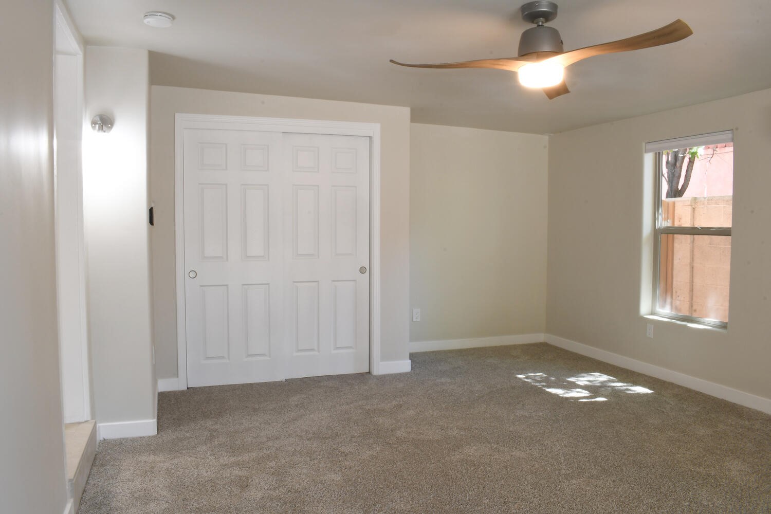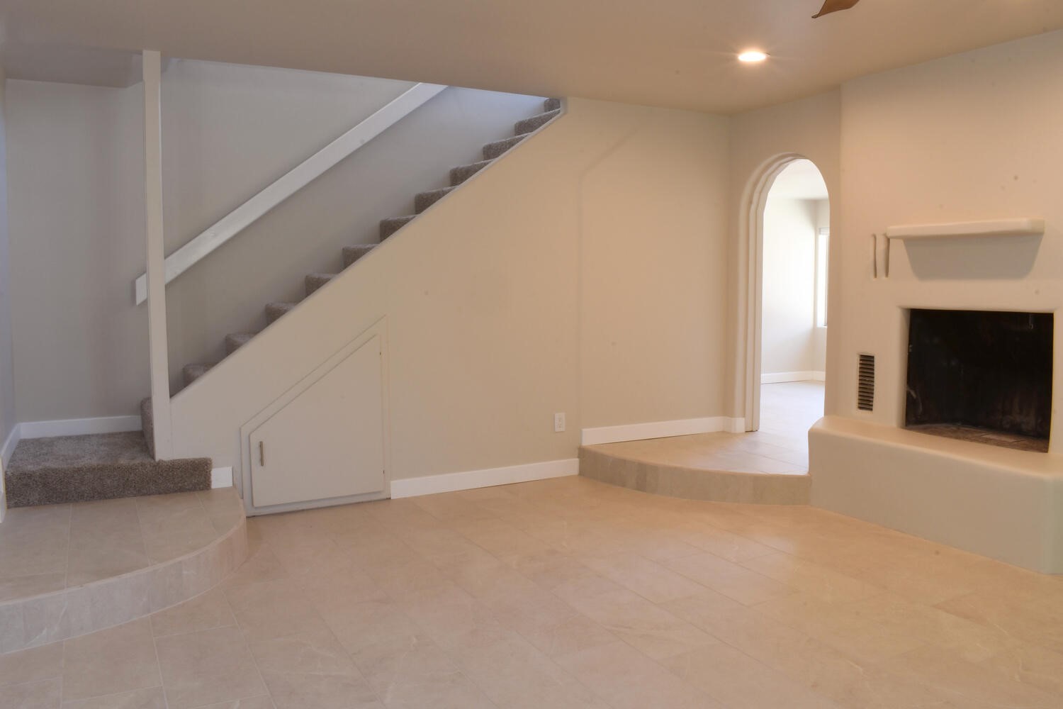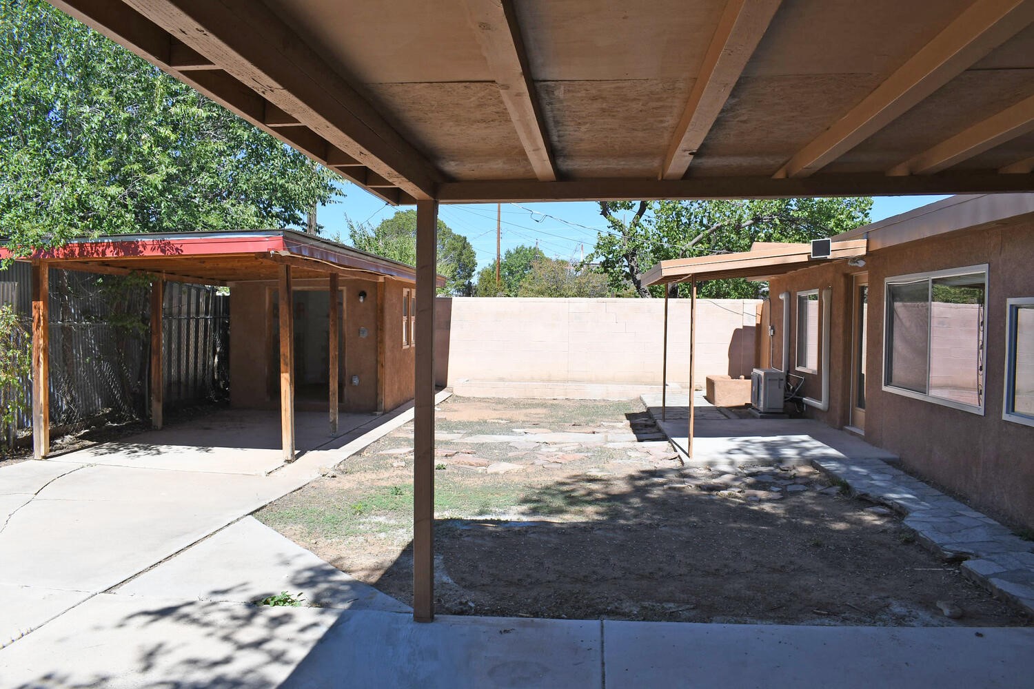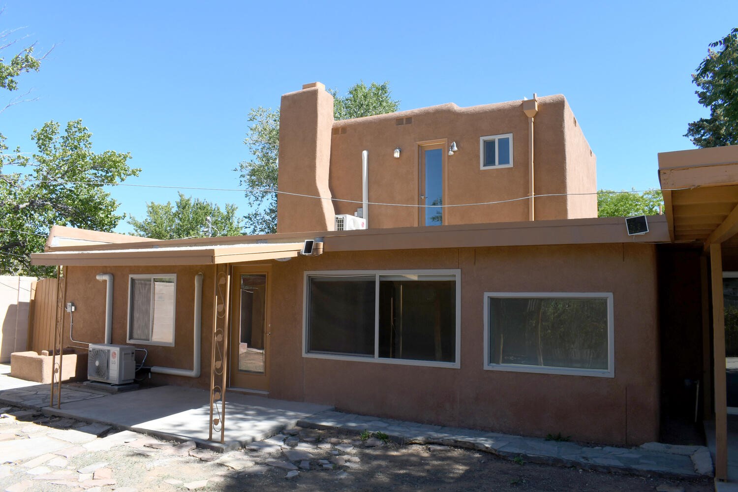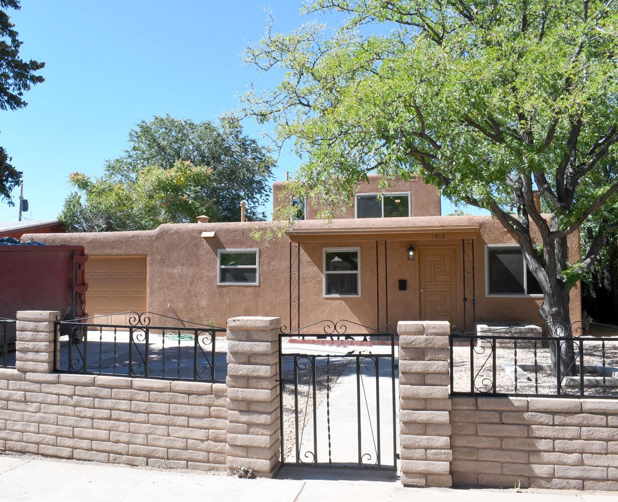 Beautiful bright updated 4 BR, 3BA, 2CG, Santa Fe Charm with modern updates including electrical and plumbing. New kitchen cabinets, stainless steel appliances, new light fixtures, new plumbing fixtures, new tile flooring in entry, kitchen, hall, den, bathrooms, new fans with remote, new stucco, new windows, new hot water heater, new 3 Mini split units provide heating and cooling, furnace and refrigerated air, bedrooms with new high-end carpet, home is vacant, ready to move in. Covered patio back yard, all fenced back yard with a storage workshop, and storage shed. Centrally located, convenient to downtown, plaza, Los Alamos, I-25 and Albuquerque. Close to shops and restaurants.
