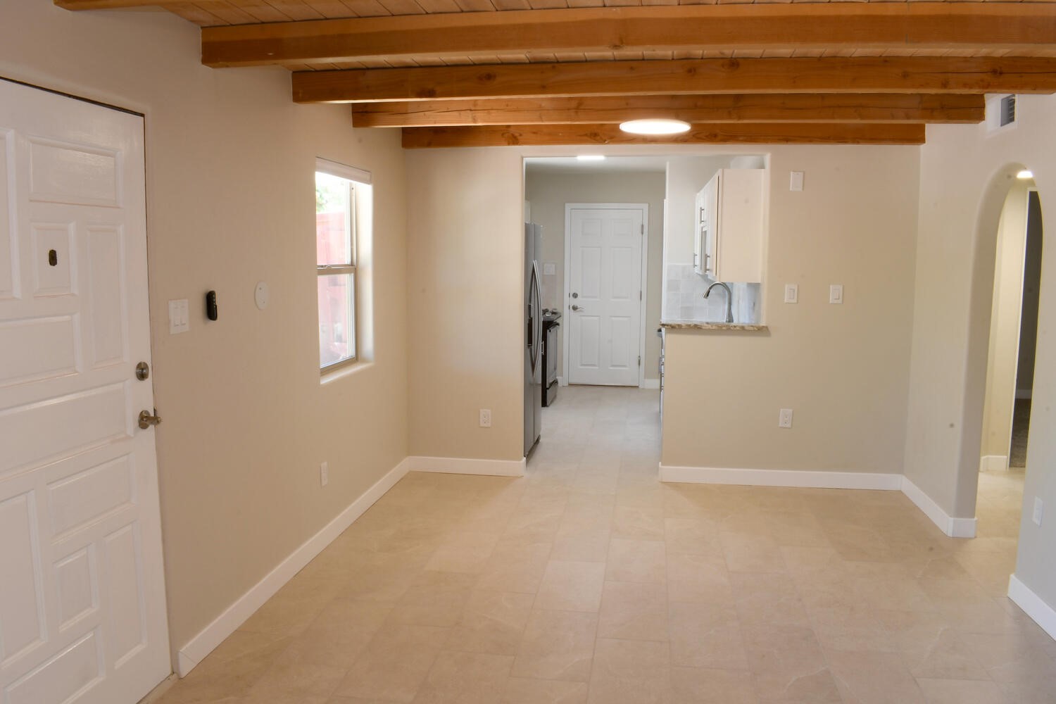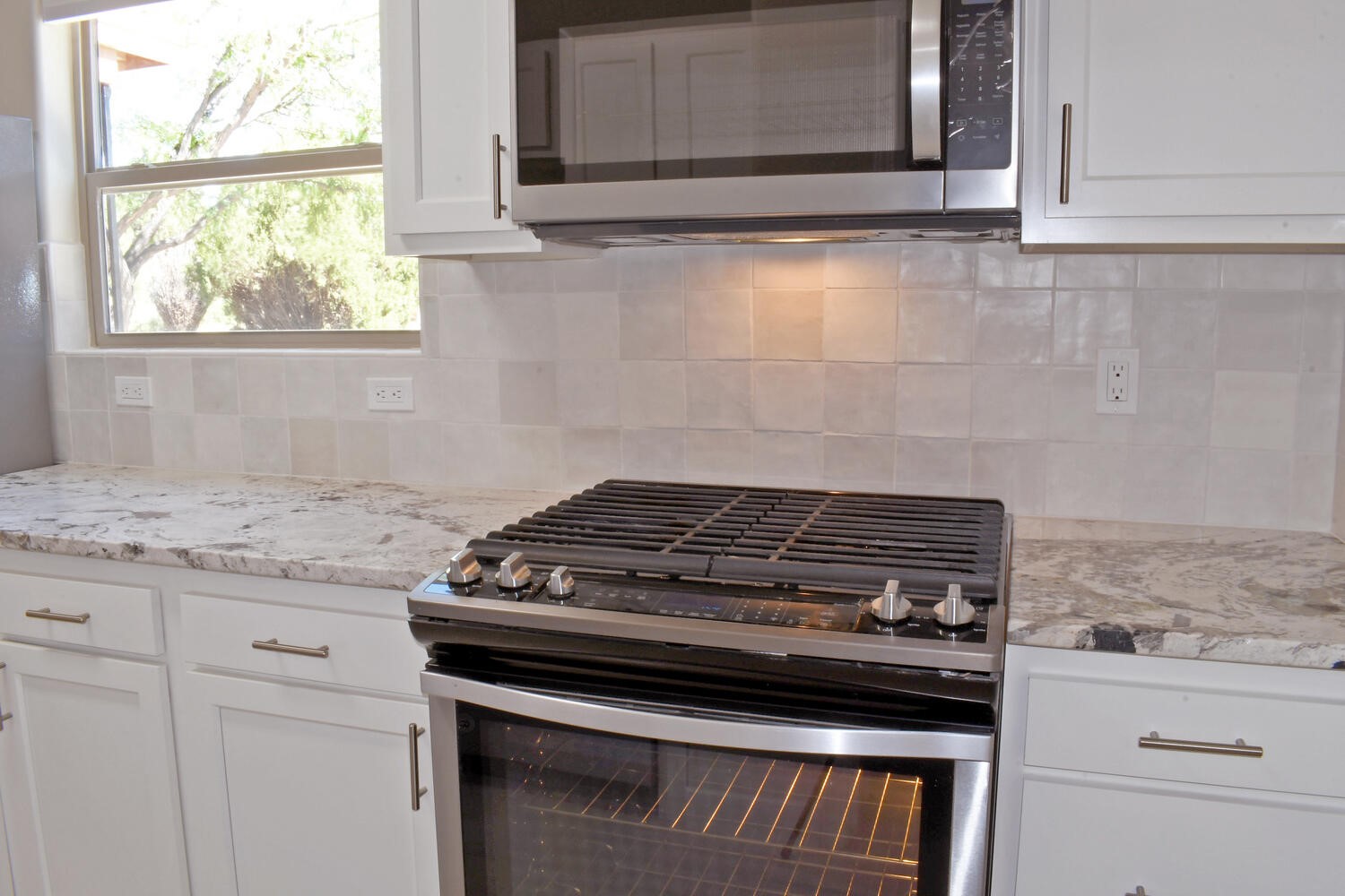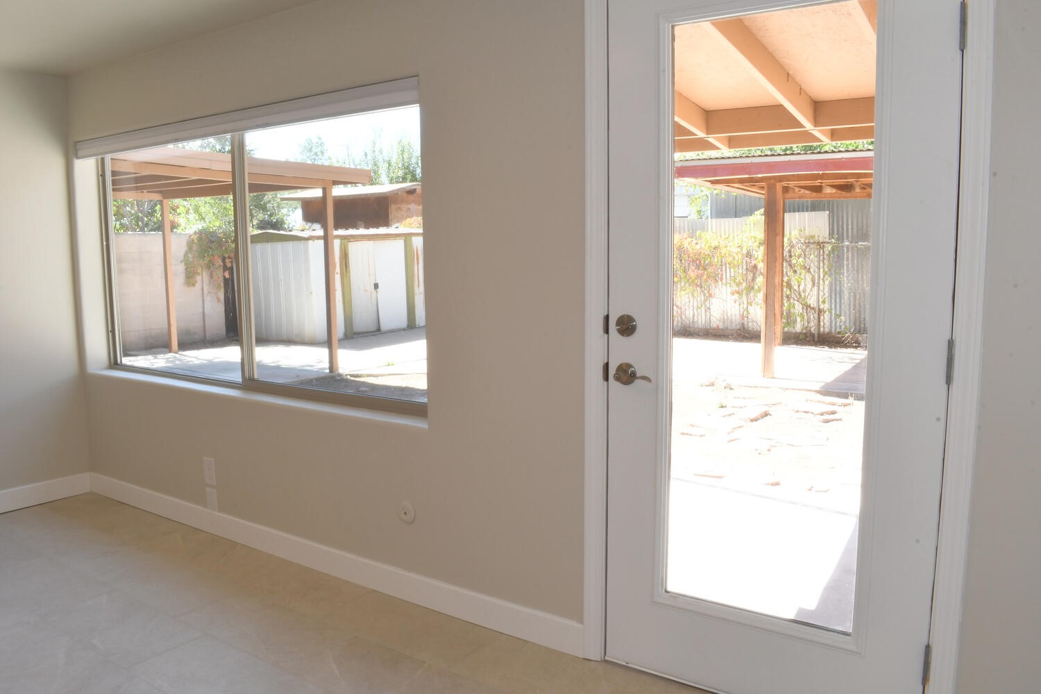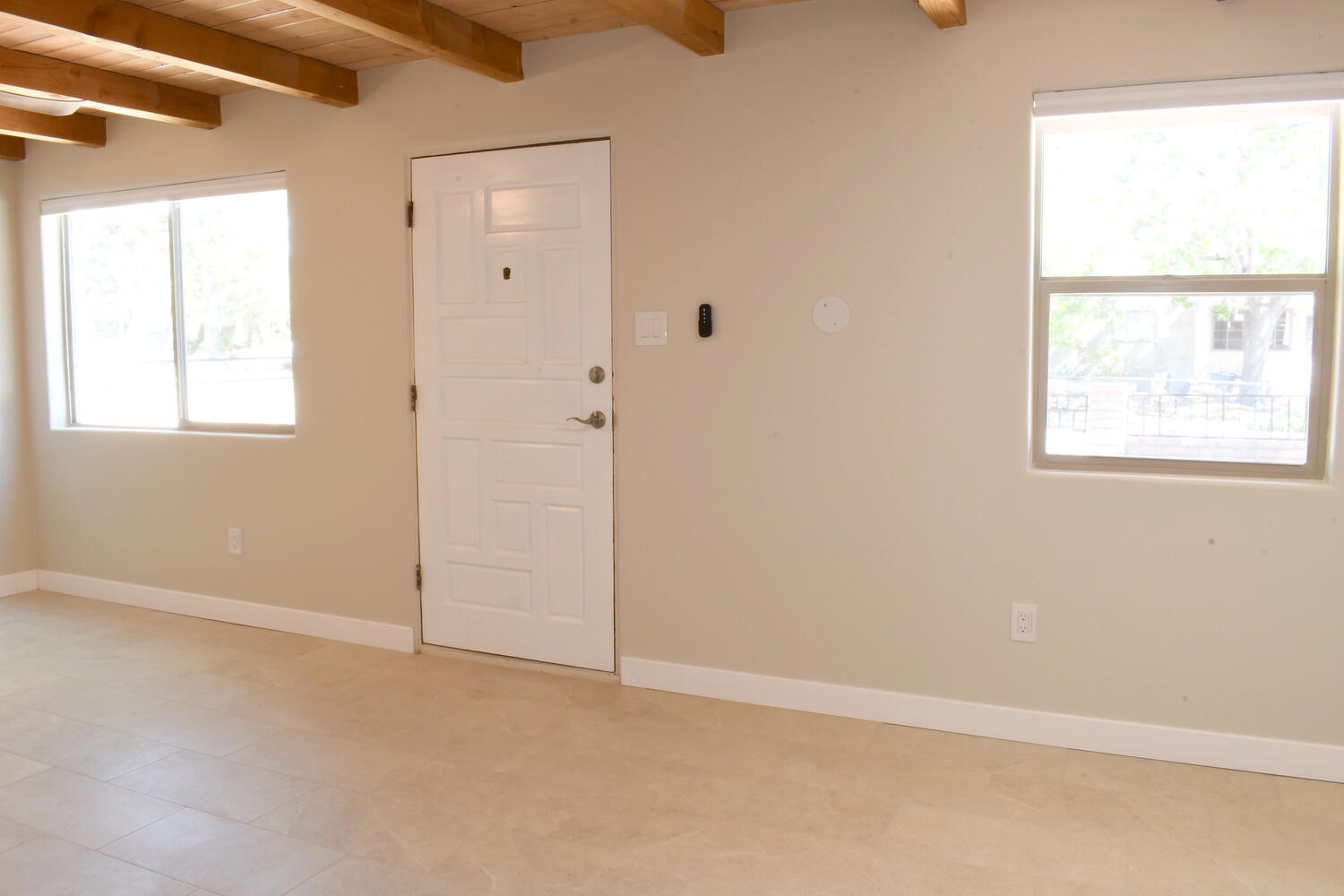 Beautiful bright updated 4 BR, 3BA, 2CG, Santa Fe Charm with modern updates including electrical and plumbing. New kitchen cabinets, stainless steel appliances, new light fixtures, new plumbing fixtures, new tile flooring in entry, kitchen, hall, den, bathrooms, new fans with remote, new stucco, new windows, new hot water heater, new 3 Mini split units provide heating and cooling, furnace and refrigerated air, bedrooms with new high-end carpet, home is vacant, ready to move in. Covered patio back yard, all fenced back yard with a storage workshop, and storage shed. Centrally located, convenient to downtown, plaza, Los Alamos, I-25 and Albuquerque. Close to shops and restaurants.