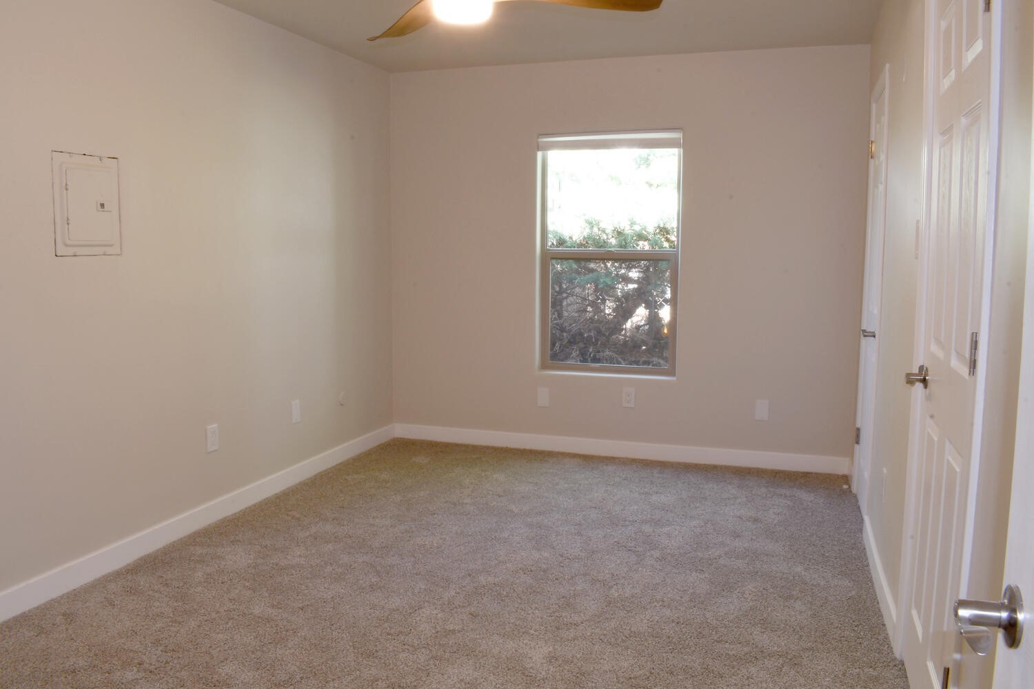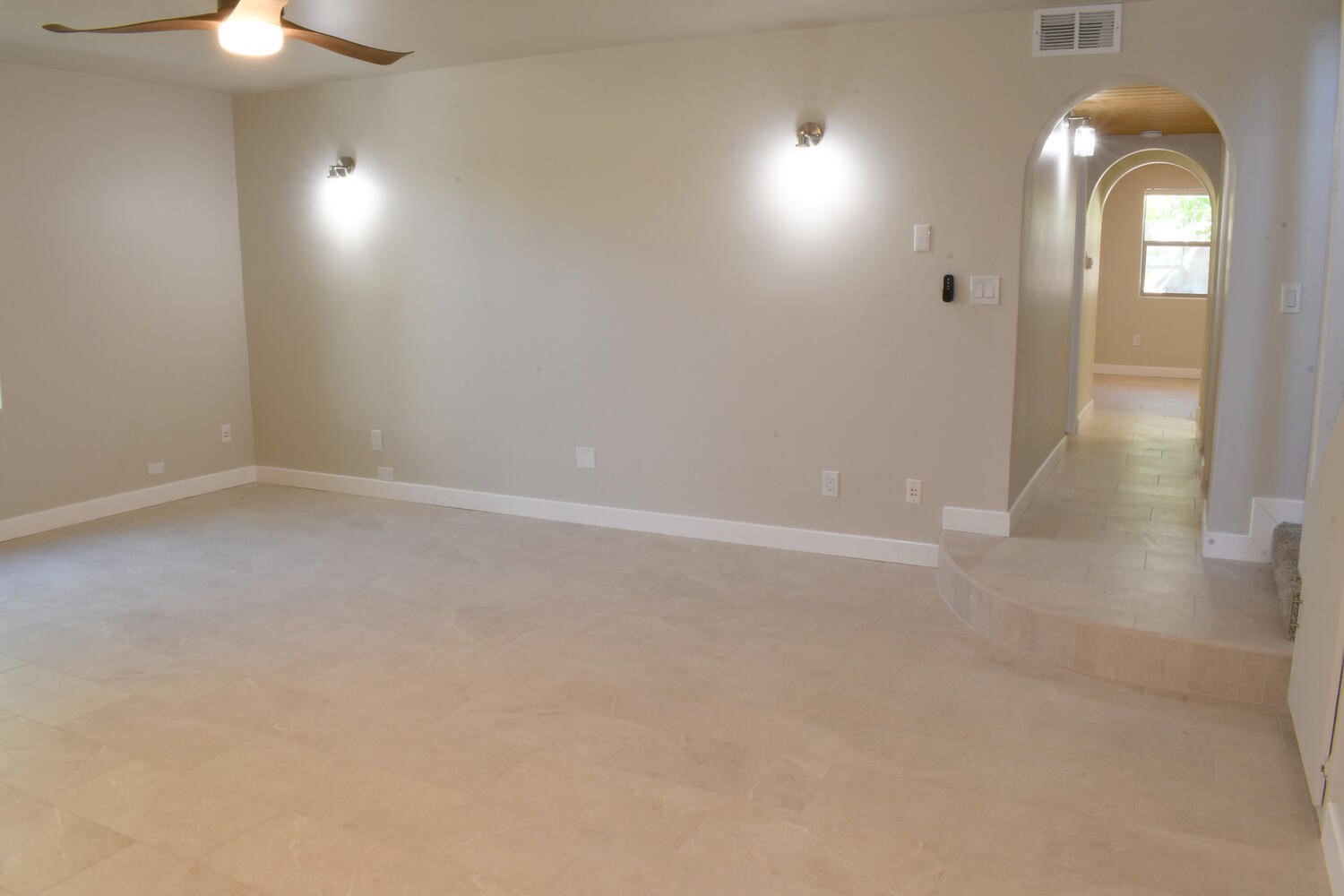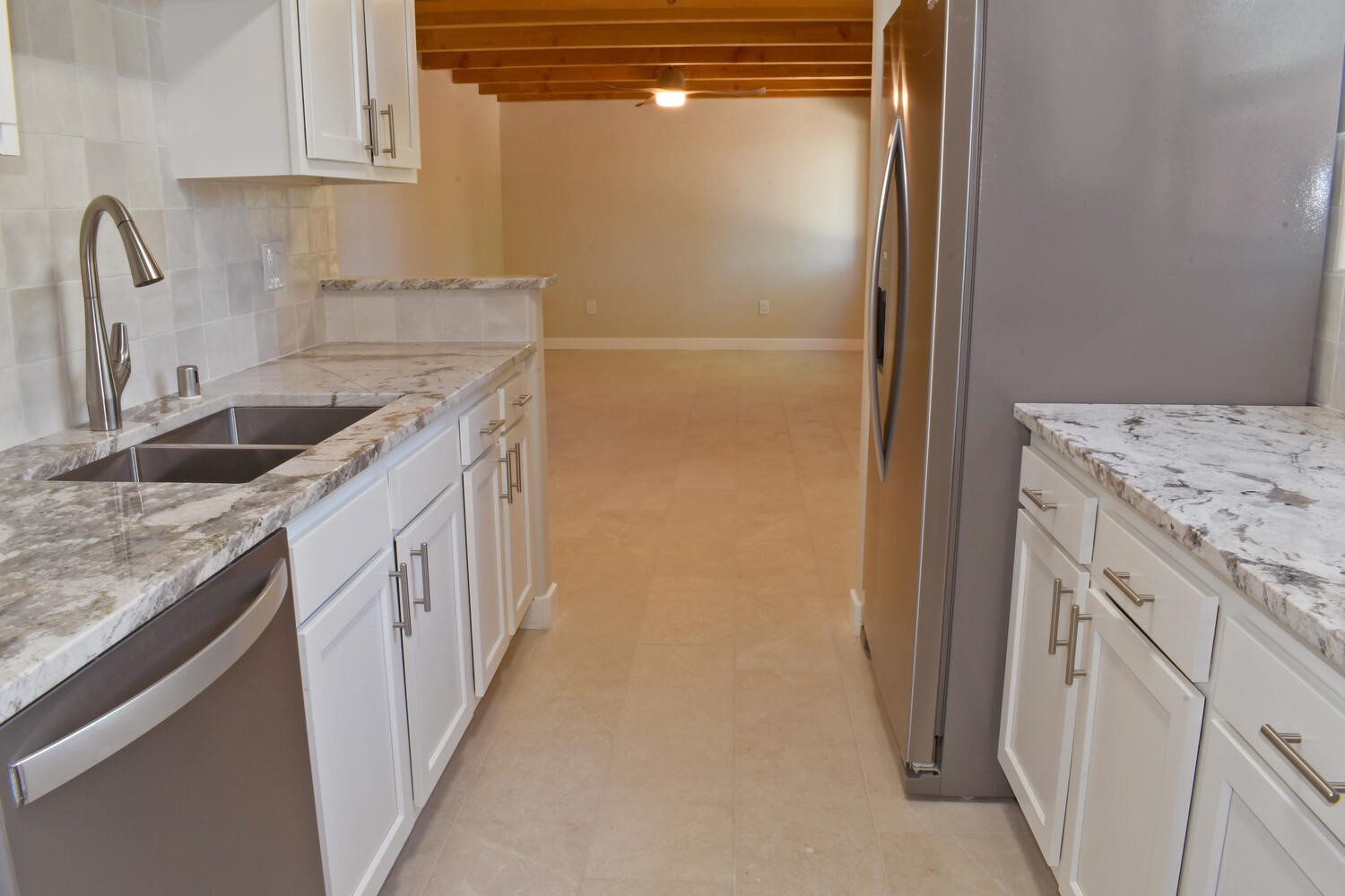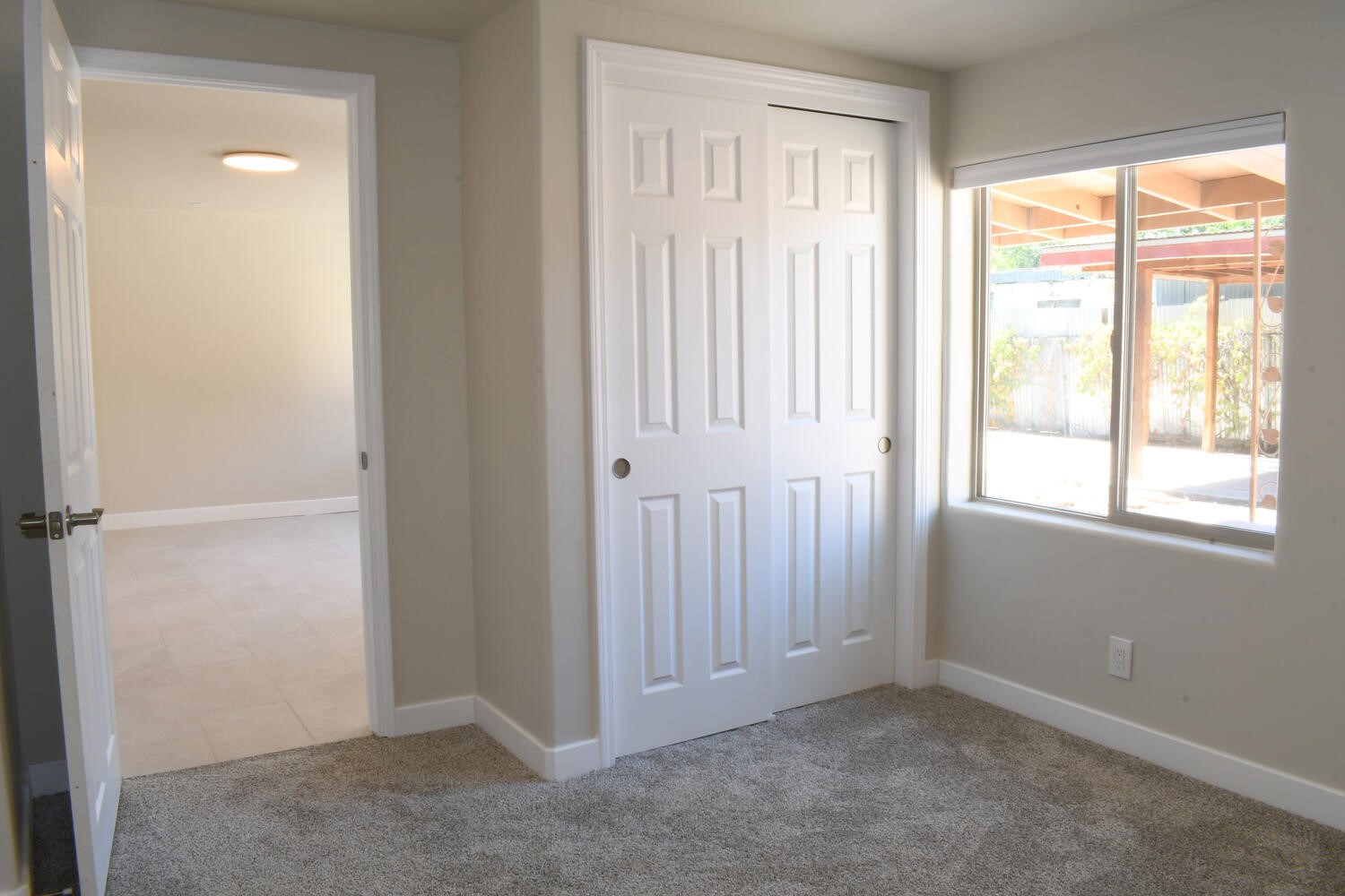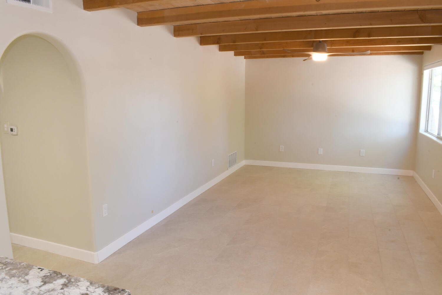 Beautiful bright updated 4 BR, 3BA, 2CG, Santa Fe Charm with modern updates including electrical and plumbing. New kitchen cabinets, stainless steel appliances, new light fixtures, new plumbing fixtures, new tile flooring in entry, kitchen, hall, den, bathrooms, new fans with remote, new stucco, new windows, new hot water heater, new 3 Mini split units provide heating and cooling, furnace and refrigerated air, bedrooms with new high-end carpet, home is vacant, ready to move in. Covered patio back yard, all fenced back yard with a storage workshop, and storage shed. Centrally located, convenient to downtown, plaza, Los Alamos, I-25 and Albuquerque. Close to shops and restaurants.