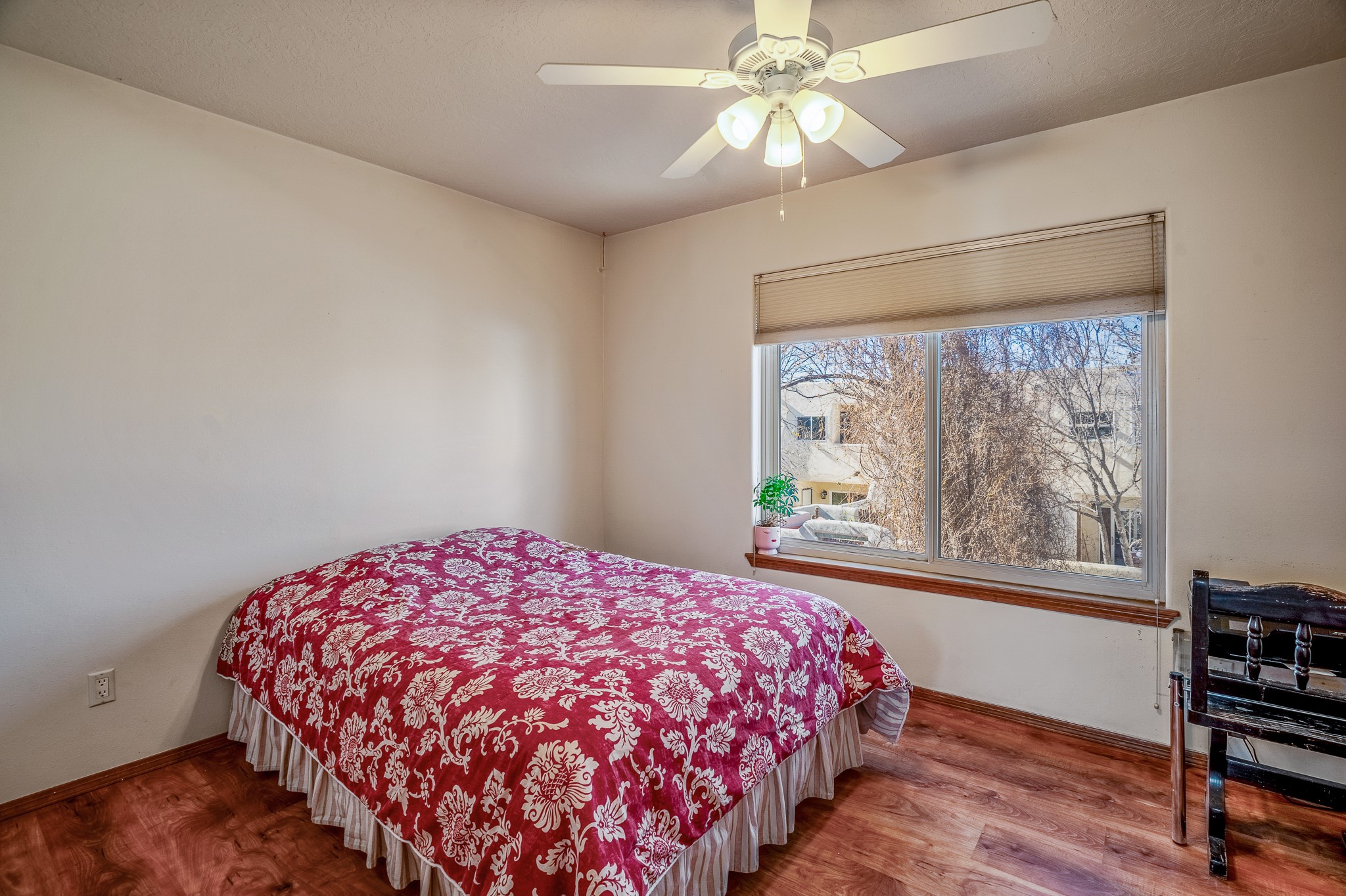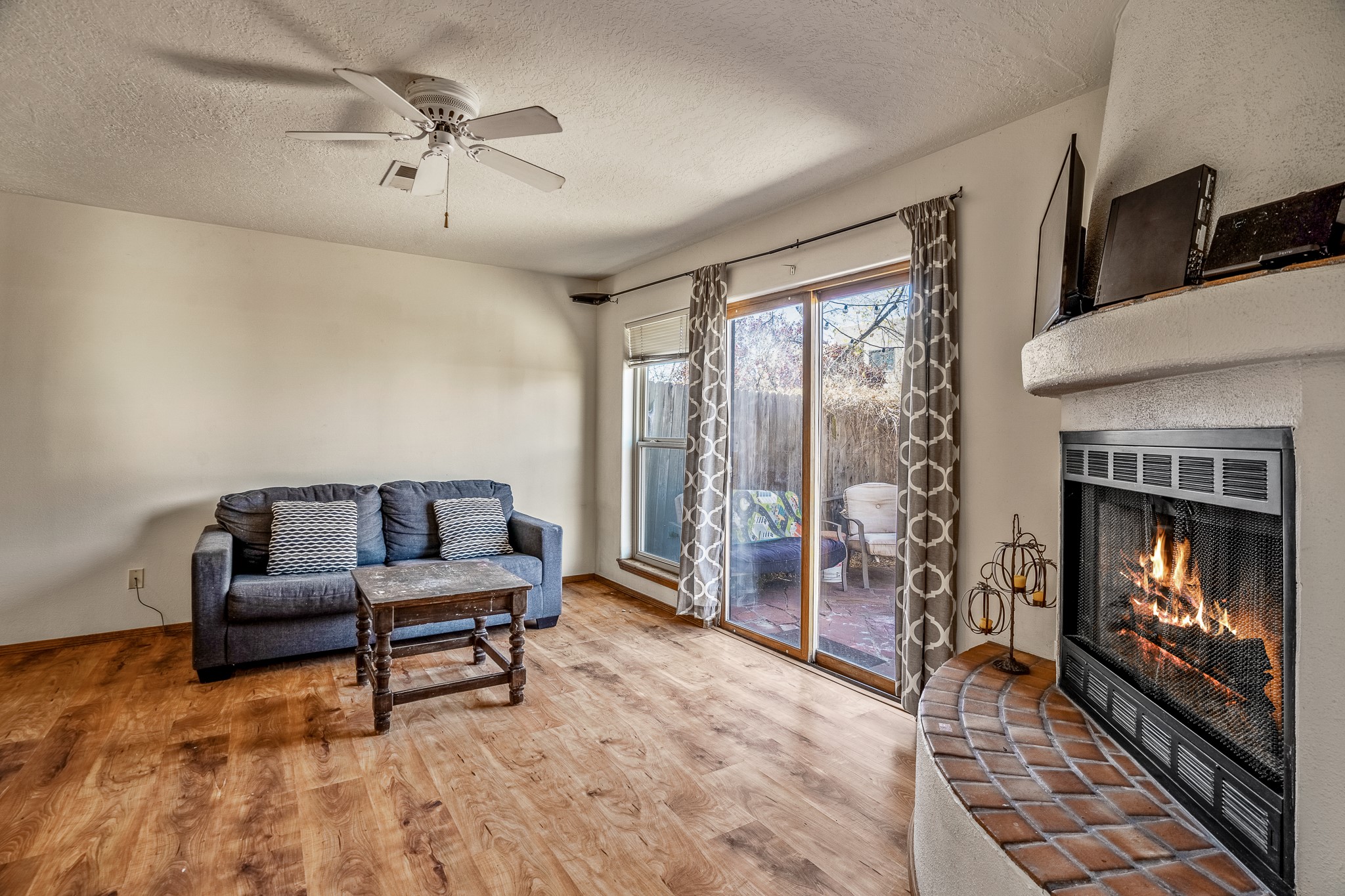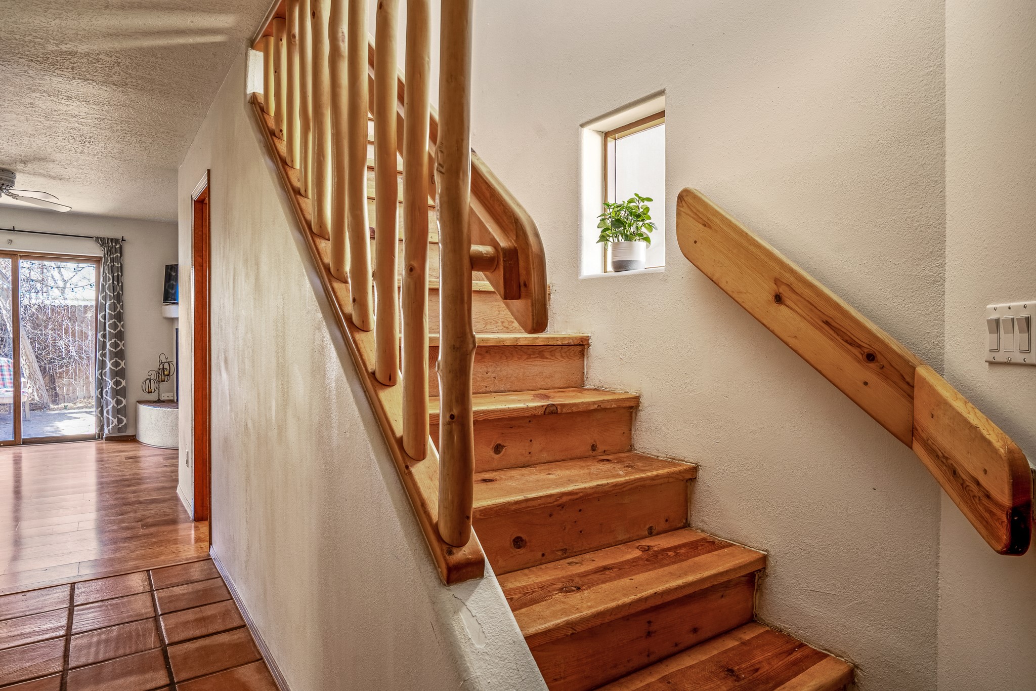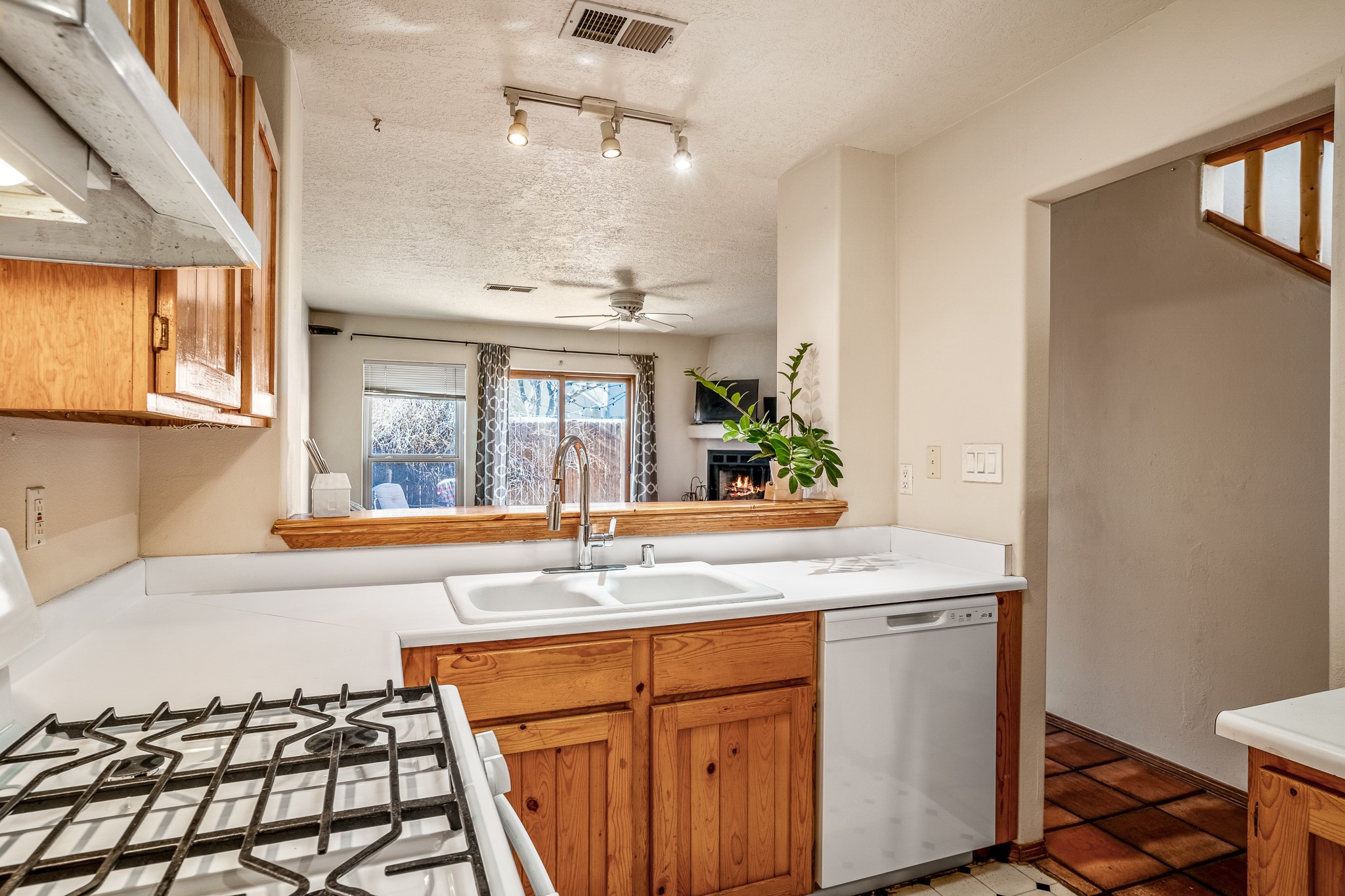 Sweet and charming 2 story, 2 bedroom, 2 bath, 1 car garage home in Plaza de Castillo with mountain views minutes from the Arroyo Chamisos Trail, close to the hospital, amenities and 15 minutes to the Santa Fe Plaza. Enter this gem of a home from the private enclosed and gated front courtyard. On the main level, you will find a bedroom with a full bath, saltillo tile and wood laminate flooring, kitchen with new range and dishwasher, breakfast bar, laundry room with washer and dryer and living room with wood burning fireplace. Upstairs, there is also a bedroom and full bath plus a versatile light and bright bonus room with mountain views perfect as an additional bedroom, office, study, playroom etc. From the living room you can access the cute rear patio with gardens, mature landscaping and sitting area. Features and amenities: Walk-in closet-Plenty of closets/storage-Forced air heat-Wood floor on the stairs-Ceiling fans-Transferrable roof coating warranty until January 2028 and more!