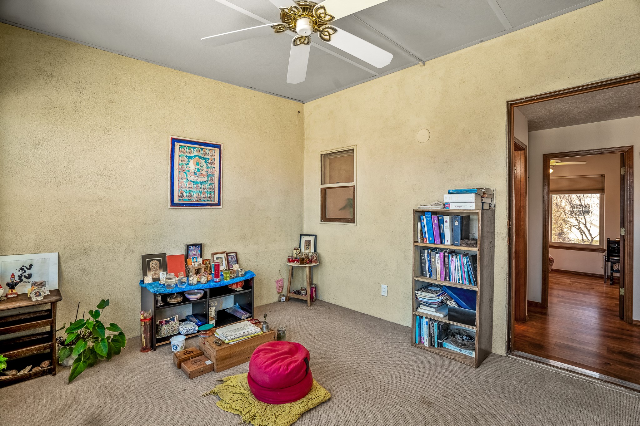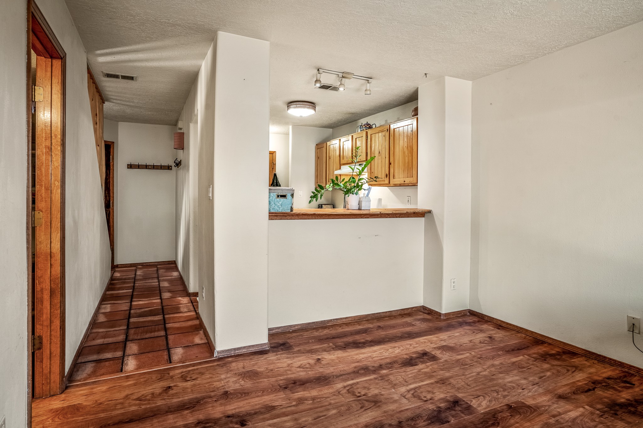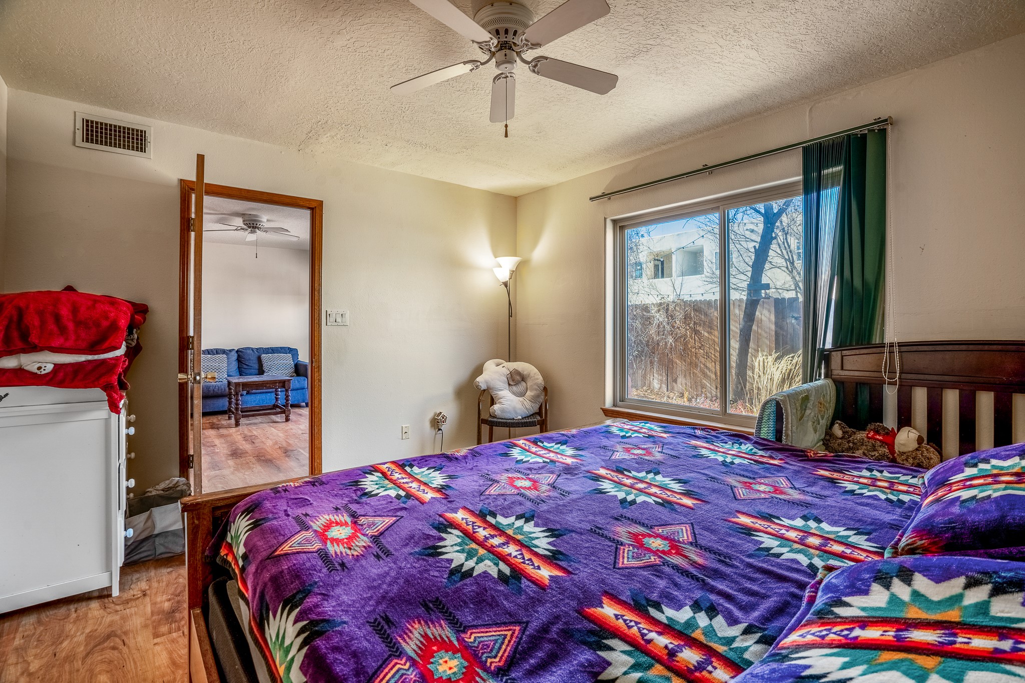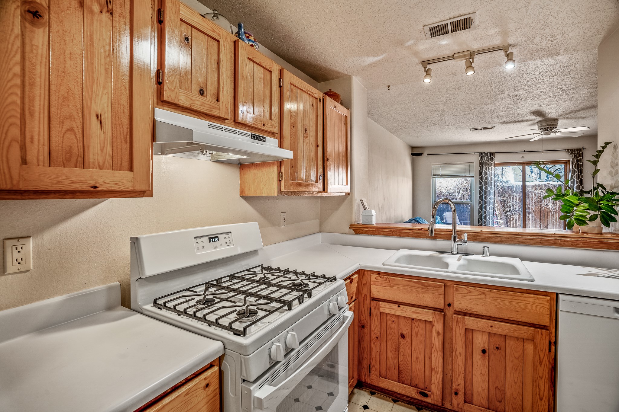 Sweet and charming 2 story, 2 bedroom, 2 bath, 1 car garage home in Plaza de Castillo with mountain views minutes from the Arroyo Chamisos Trail, close to the hospital, amenities and 15 minutes to the Santa Fe Plaza. Enter this gem of a home from the private enclosed and gated front courtyard. On the main level, you will find a bedroom with a full bath, saltillo tile and wood laminate flooring, kitchen with new range and dishwasher, breakfast bar, laundry room with washer and dryer and living room with wood burning fireplace. Upstairs, there is also a bedroom and full bath plus a versatile light and bright bonus room with mountain views perfect as an additional bedroom, office, study, playroom etc. From the living room you can access the cute rear patio with gardens, mature landscaping and sitting area. Features and amenities: Walk-in closet-Plenty of closets/storage-Forced air heat-Wood floor on the stairs-Ceiling fans-Transferrable roof coating warranty until January 2028 and more!