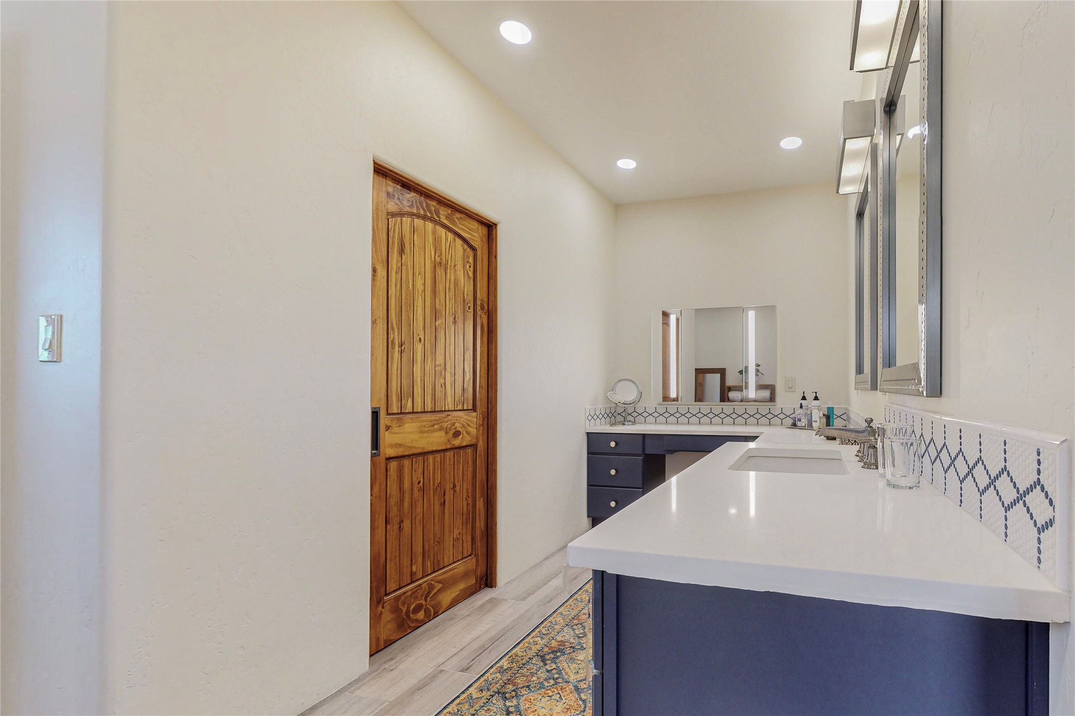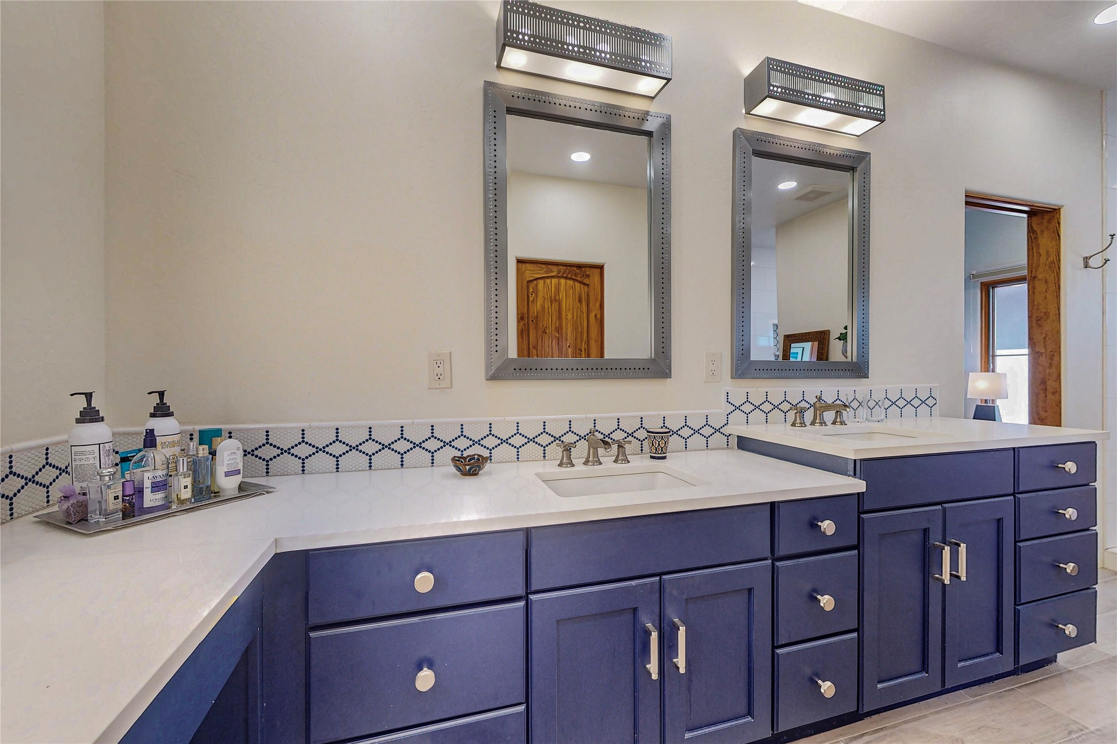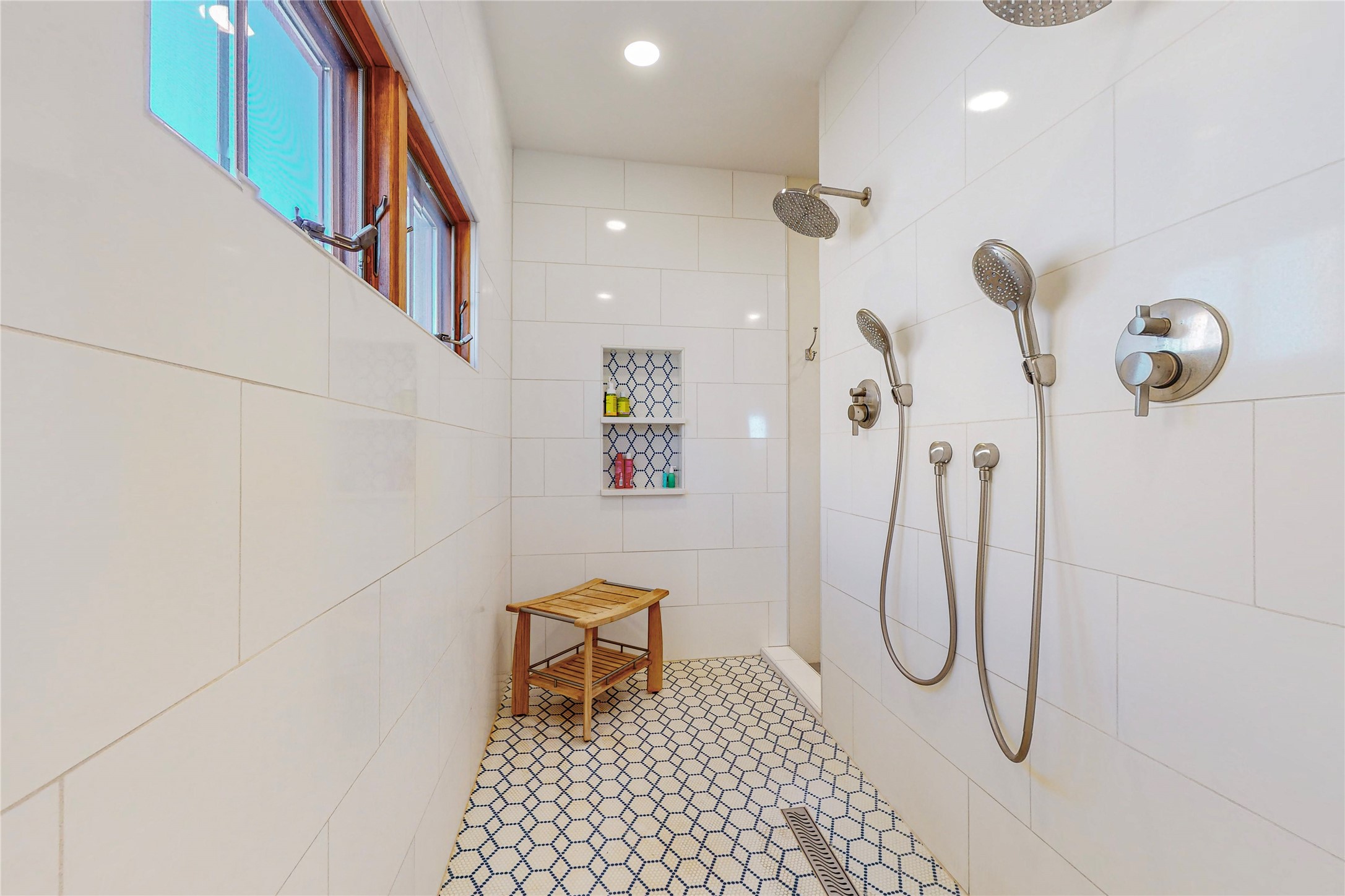 This newly built single family paito home with central heating and air conditioning, a tankless water heater, TPO roof, and energy efficient. All interior walls are insulated for better comfort and sound absorption. The owners have upgraded nearly everything. From the large plank tile flooring to the premium appliances to designer plumbing, California Closets systems, and custom cabinets. Elegant primary retreat with walk-through shower, custom California Closets, and large his and hers spaces. Entertain in your kitchen with an oversized quartz island, inviting stone paver yard, or enjoy spectacular sunsets. This home is pre-wired for home theater. The real star of the show is an expansive west facing view from the deck off of the primary bedroom with approximately 500+/-sf of Trex decking. Enjoy the monsoon storms, gorgeous sunsets, and the snow covered ridge that is protected open space. Aldea de Santa Fe is a National Wildlife Federation "Certified Wildlife Habitat Community." This is the only such designated community in New Mexico. Aldea subdivision is highly sought after for its 13 miles of trails, plus tennis, pickleball and basketball courts.