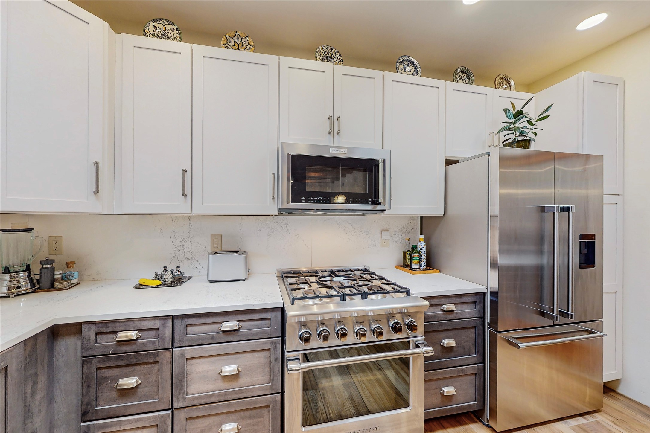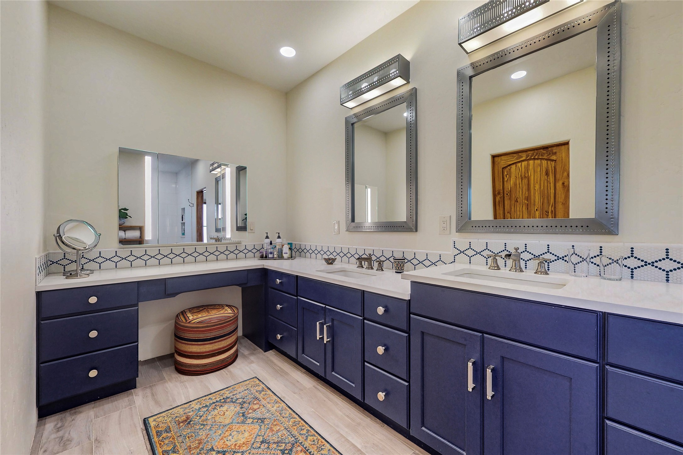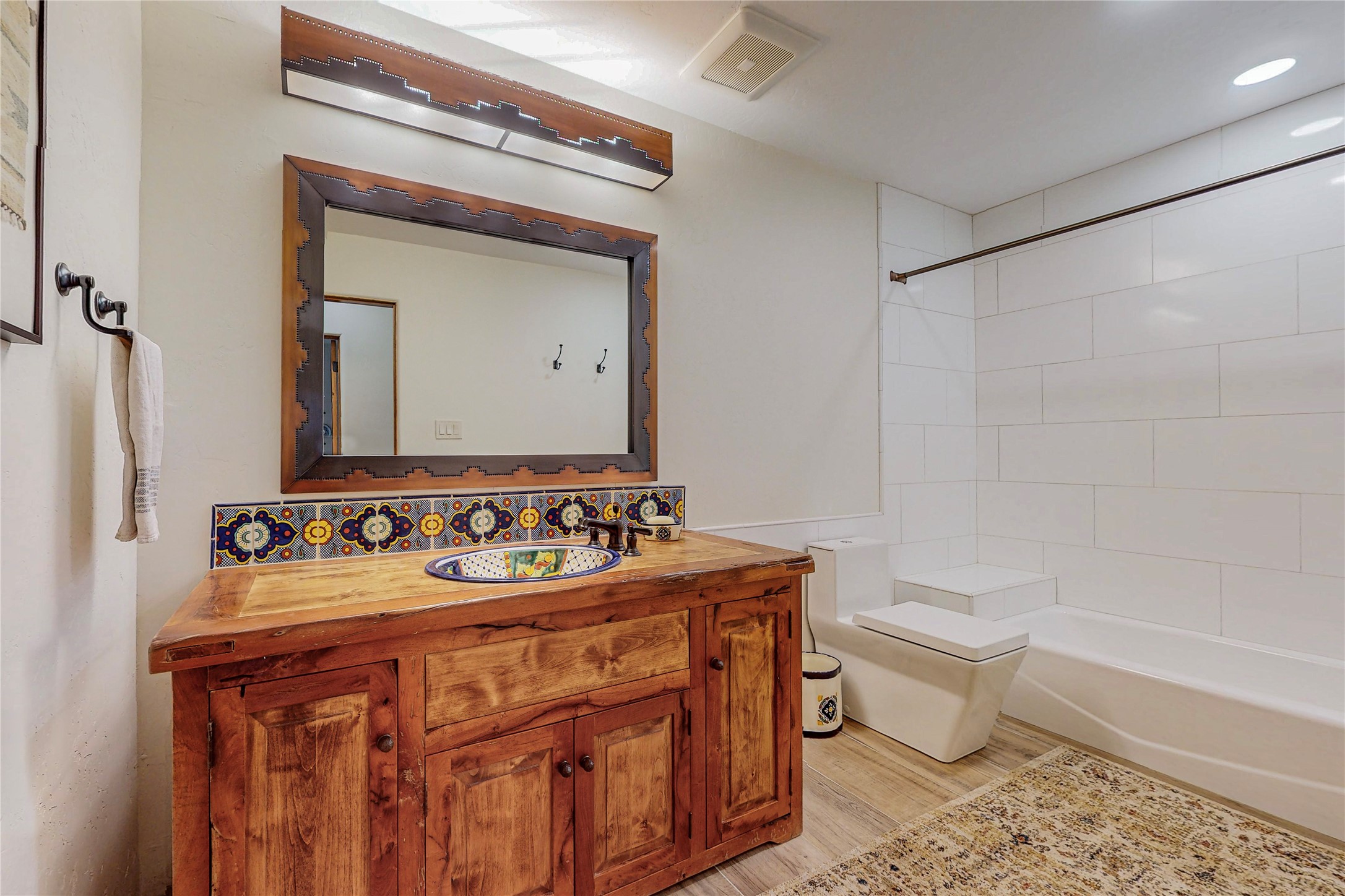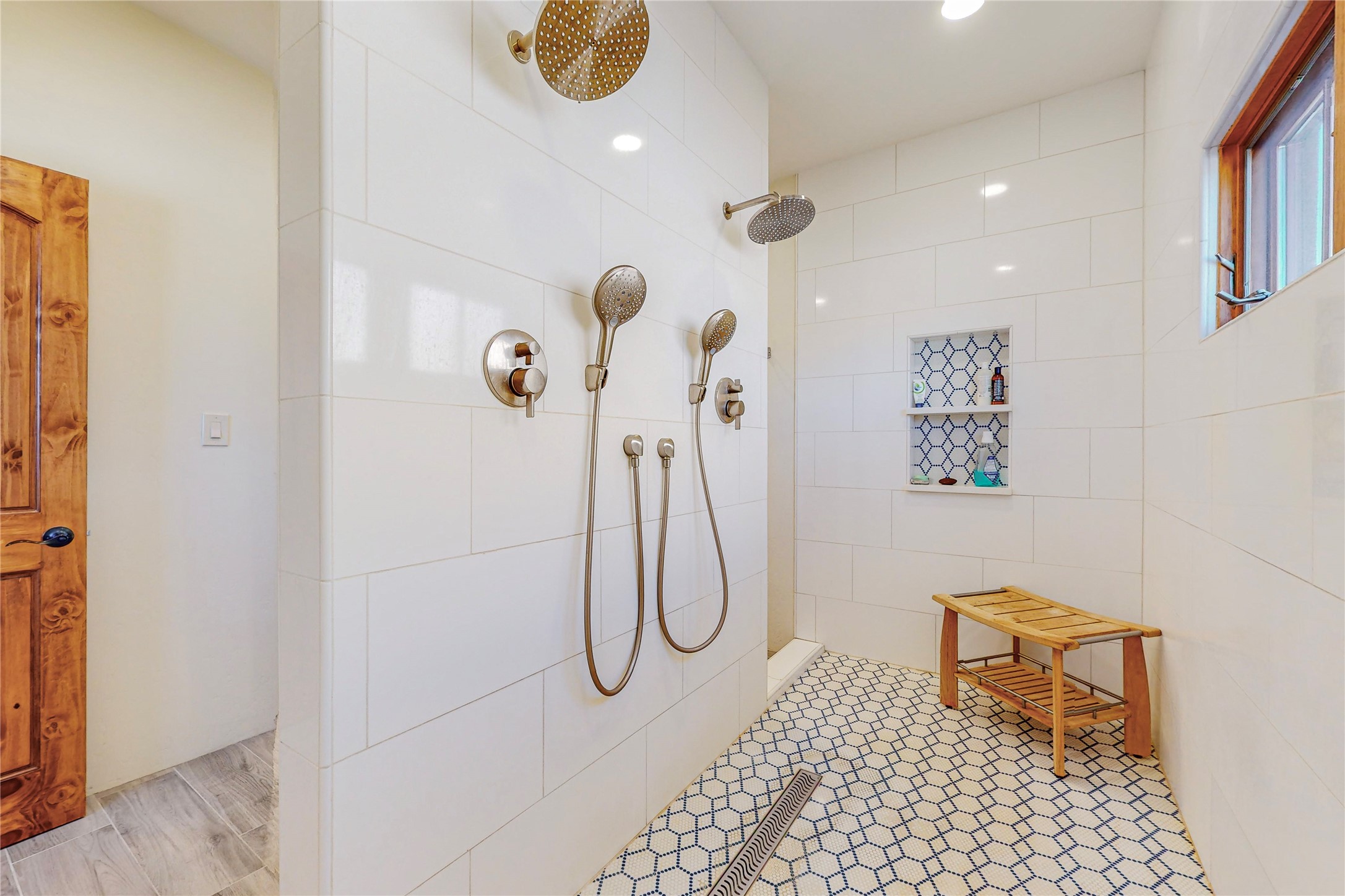 This newly built single family paito home with central heating and air conditioning, a tankless water heater, TPO roof, and energy efficient. All interior walls are insulated for better comfort and sound absorption. The owners have upgraded nearly everything. From the large plank tile flooring to the premium appliances to designer plumbing, California Closets systems, and custom cabinets. Elegant primary retreat with walk-through shower, custom California Closets, and large his and hers spaces. Entertain in your kitchen with an oversized quartz island, inviting stone paver yard, or enjoy spectacular sunsets. This home is pre-wired for home theater. The real star of the show is an expansive west facing view from the deck off of the primary bedroom with approximately 500+/-sf of Trex decking. Enjoy the monsoon storms, gorgeous sunsets, and the snow covered ridge that is protected open space. Aldea de Santa Fe is a National Wildlife Federation "Certified Wildlife Habitat Community." This is the only such designated community in New Mexico. Aldea subdivision is highly sought after for its 13 miles of trails, plus tennis, pickleball and basketball courts.