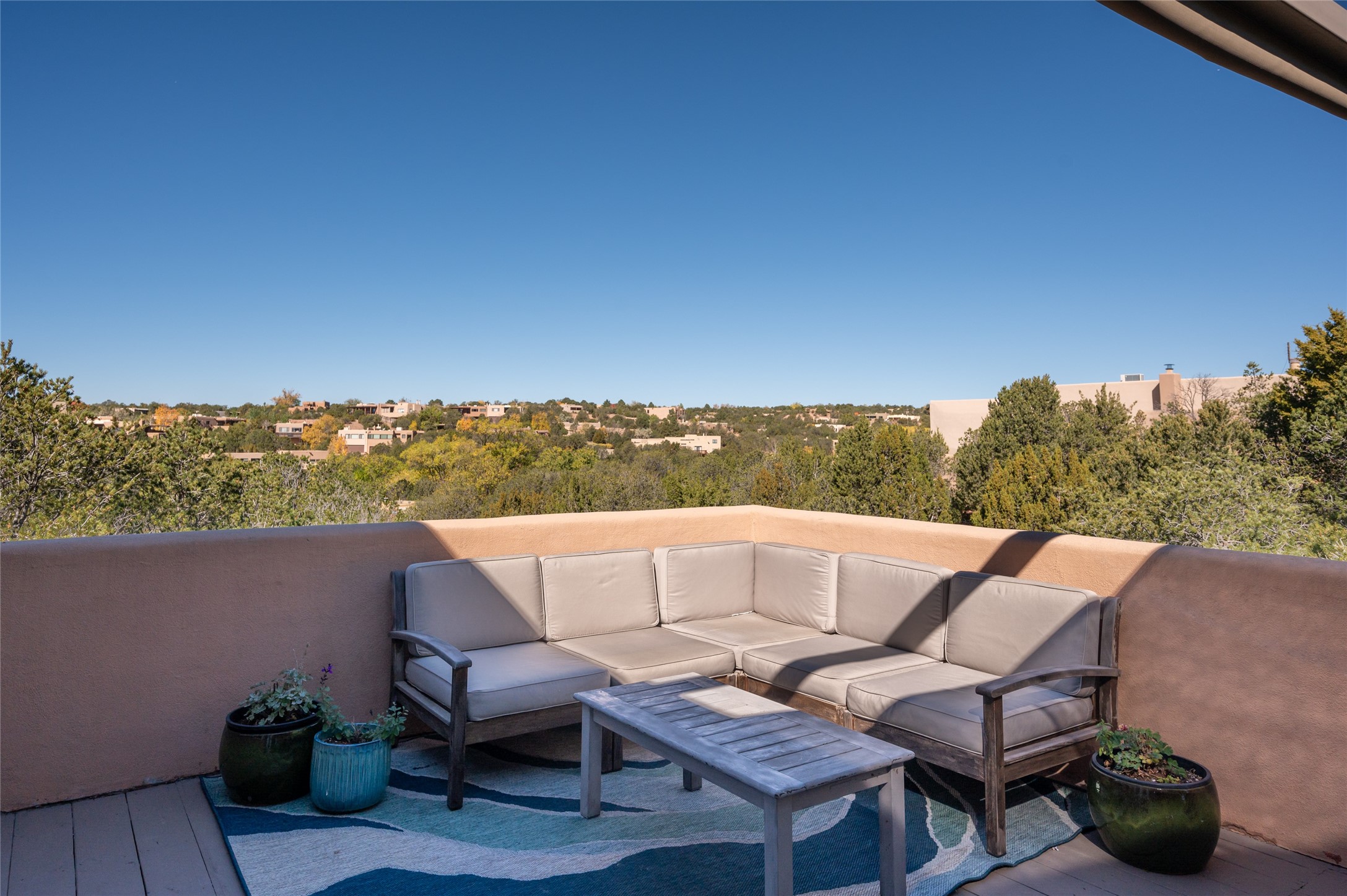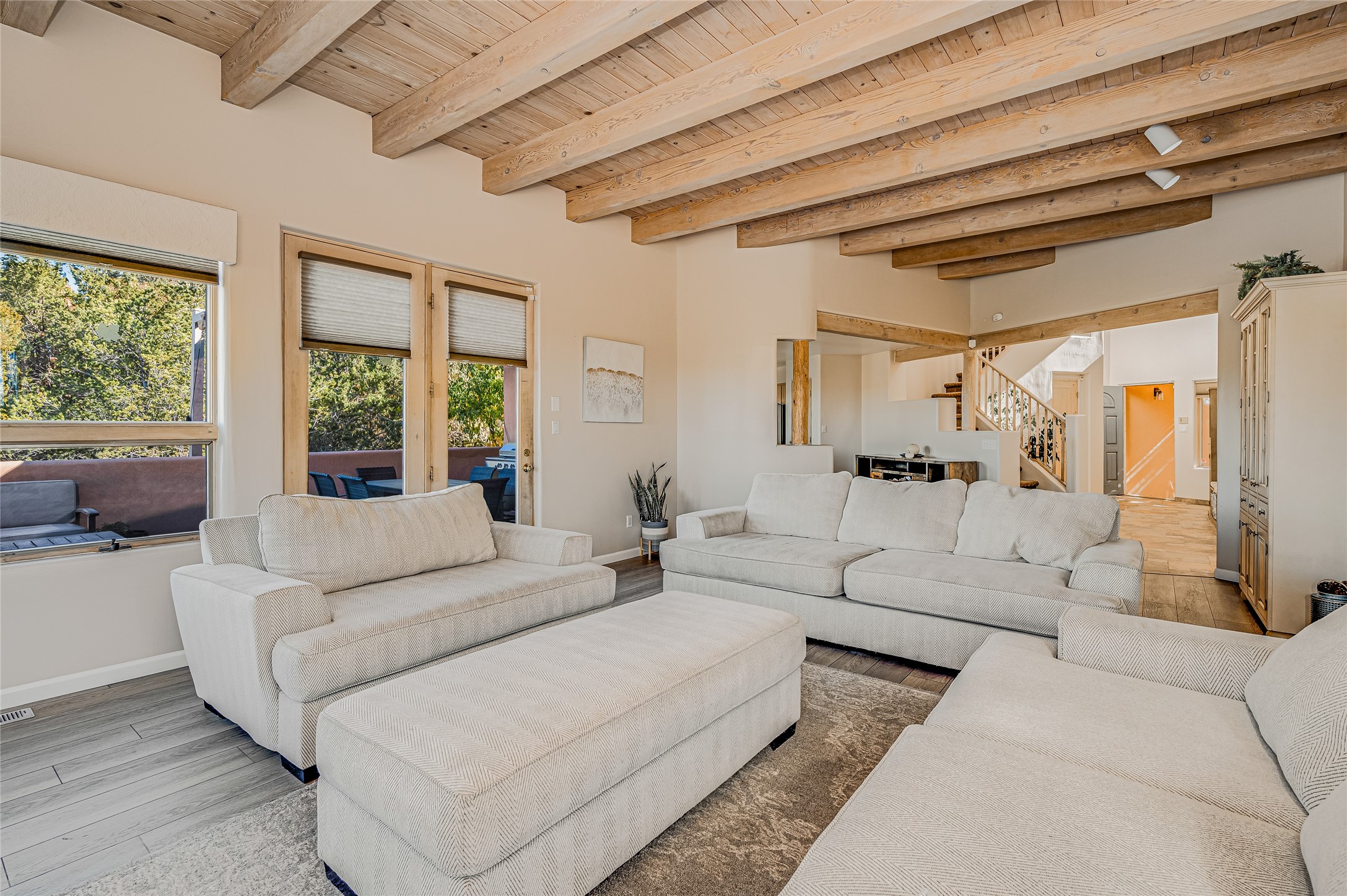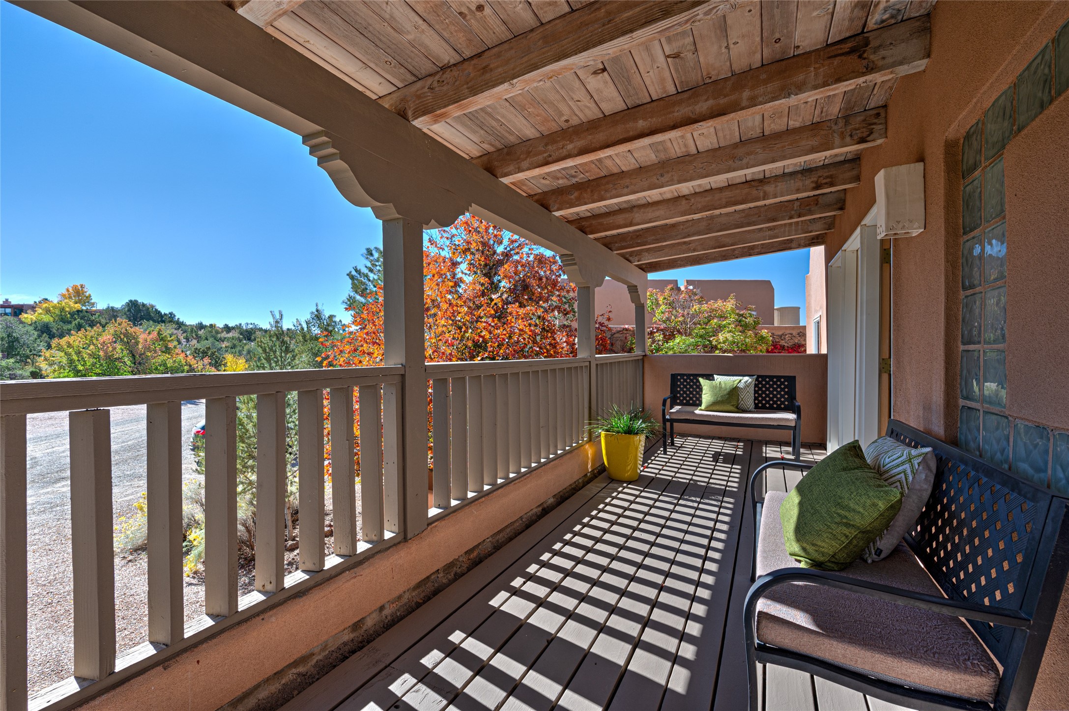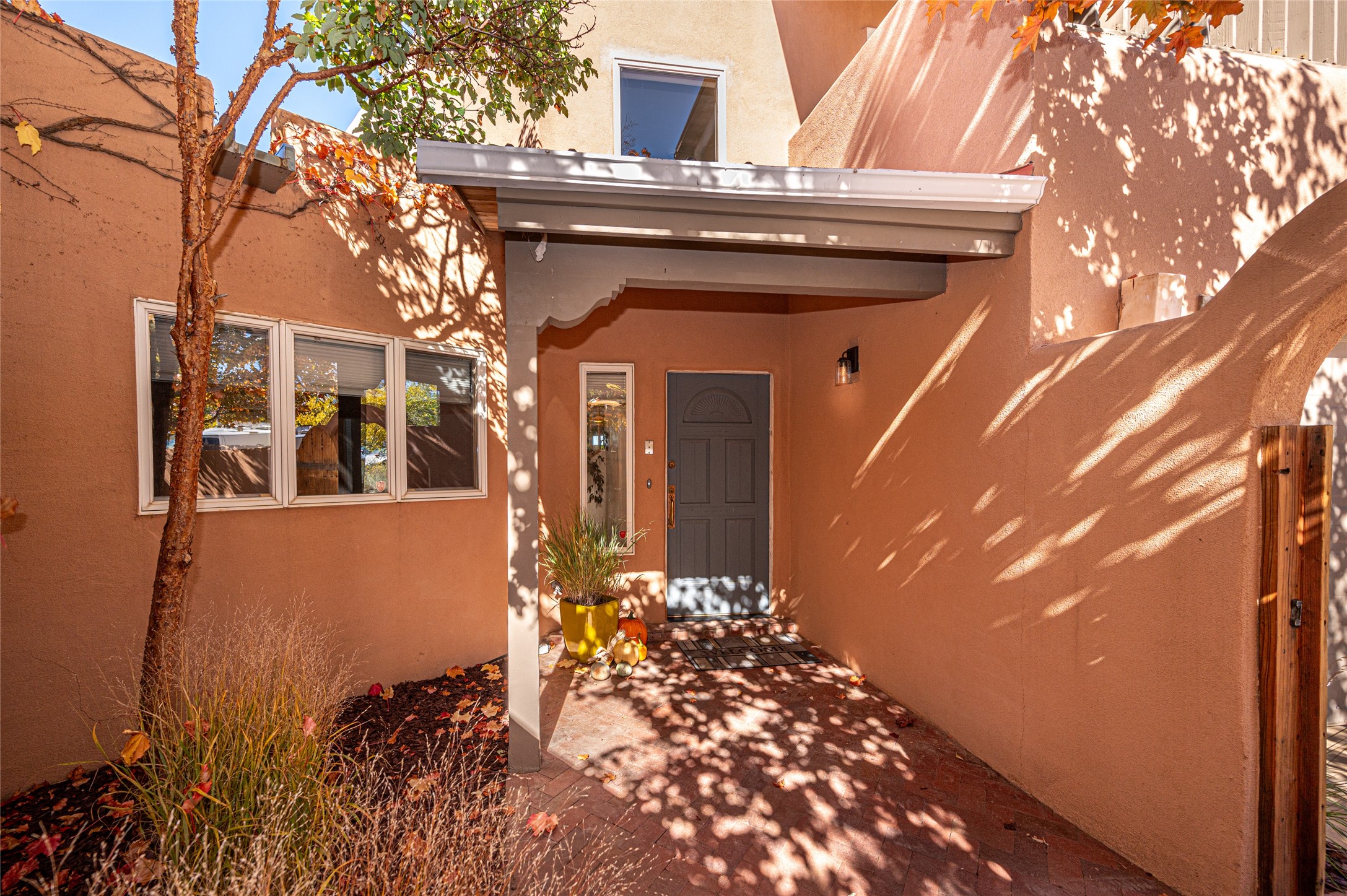 A true walk to the historic Santa Fe plaza, located in a quiet cul-de-sac, this home is nestled in the hills of downtown Santa Fe. There are 2 lovely decks to enjoy the peaceful blue skies of New Mexico! The airy, light and bright entryway lends itself to a feeling of warmth upon arrival. The Santa Fe style home has unique features such as beams, wood burning fireplaces, and nichos. The open floor plan and high ceilings give the house a spacious feel. There is nice separation between the upstairs primary suite and downstairs guest rooms. The primary suite has a private deck to sit and enjoy the outdoors! There are many updates throughout the home which has been pre-inspected. There is a gated, private courtyard leading to the front door and a 2 car garage, with direct entry. The outdoor spaces are so serene and enjoyable! The home is located near walking trails, a recreation center, downtown, schools, fabulous restaurants, shopping and an easy commute to Los Alamos! The views are astounding and the home has wonderful features throughout!