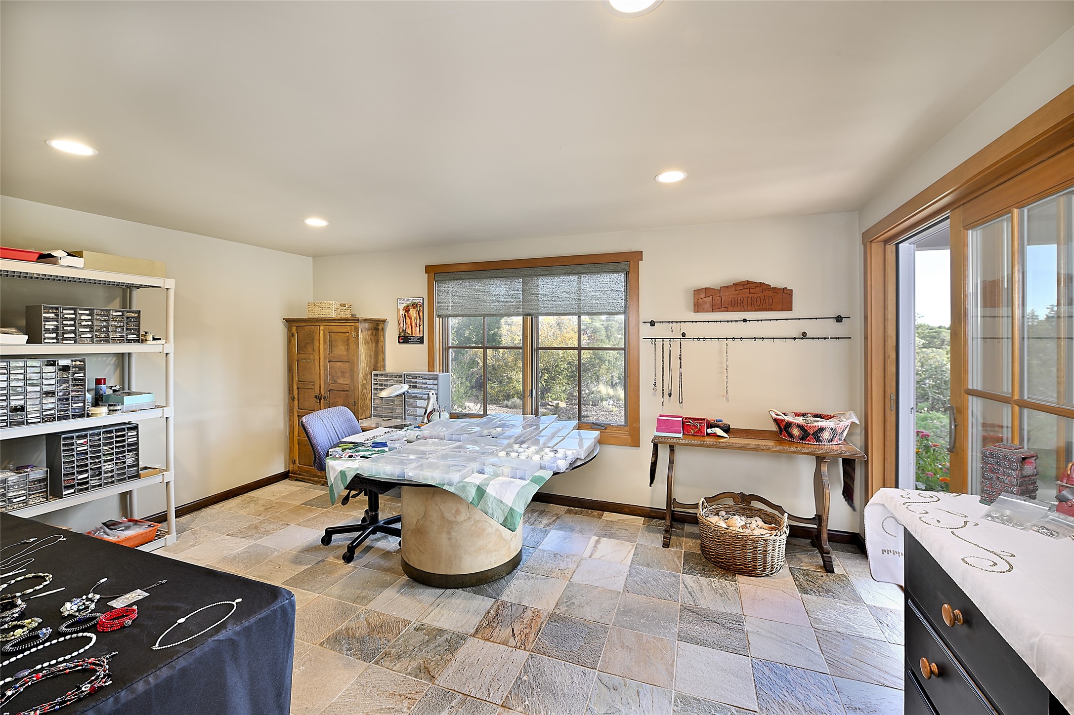Unparalleled privacy is yours in this gated Museum Hill residence with 3 Bedrooms, 4 1/2 Baths, Office & Studio on 1.9 acres. It combines a classic Territorial exterior w Craftsman interior style, totally renovated by Wolf Corp in 2005. Living room features a cozy fireplace & wood-beamed ceiling. Kitchen is a culinary masterpiece w 4' x 8' granite island, Two Sub-Zero refrigerator drawers, 48" Sub-Zero refrigerator, 36" Wolf Range/Oven, walk-in pantry, counter-level gas fireplace plus breakfast nook w banco. Portal off Kitchen has a fireplace & soothing fountain. Media / Family Room includes a wine bar w Sub-Zero wine chiller, fireplace, easy access to the back portal & yard thru 2 sets of sliding glass doors plus adjacent Powder Bath. Art Studio is accessed from the back portal or through the 2-car Garage w large storage area. Master Bedroom & Bath suite offers a Kiva fireplace, dual walk-in closets, access to a private outdoor area w hot tub plus spacious bath w double sinks, steam shower & soothing soaking tub. Office has a built-in desk & en-suite bath. Bedroom 2 offers two twin beds & en-suite bath, while Bedroom 3 opens to the outdoor patio area & has an en-suite bath w double sinks. Special features include hand-forged hardware, custom alder cabinets, 3 forced-air heat and A/C units, as well as a new septic system in 2005. This property is a true gem--gated, renovated by Wolf Corp, on 1.9 acres, and just a short 1.1-mile stroll to Kaune's Market & the Food Trucks.