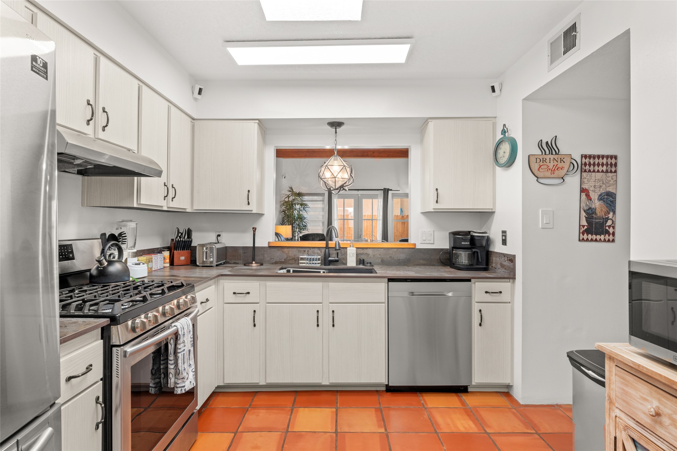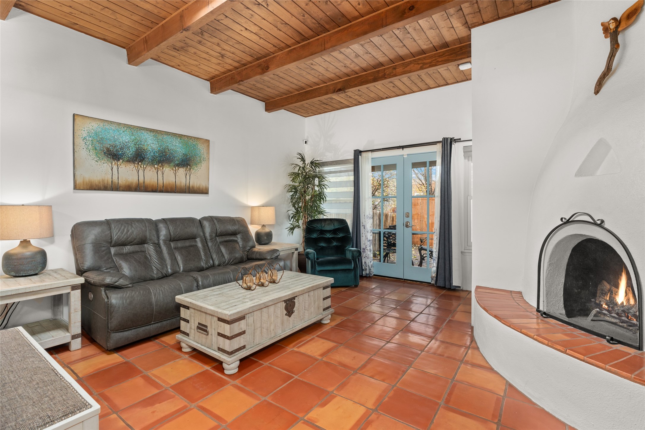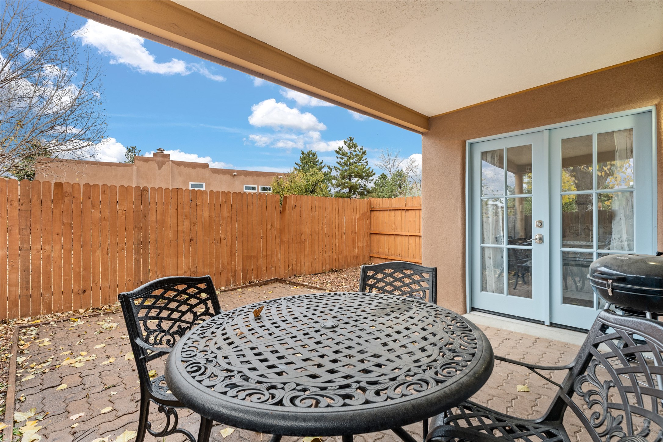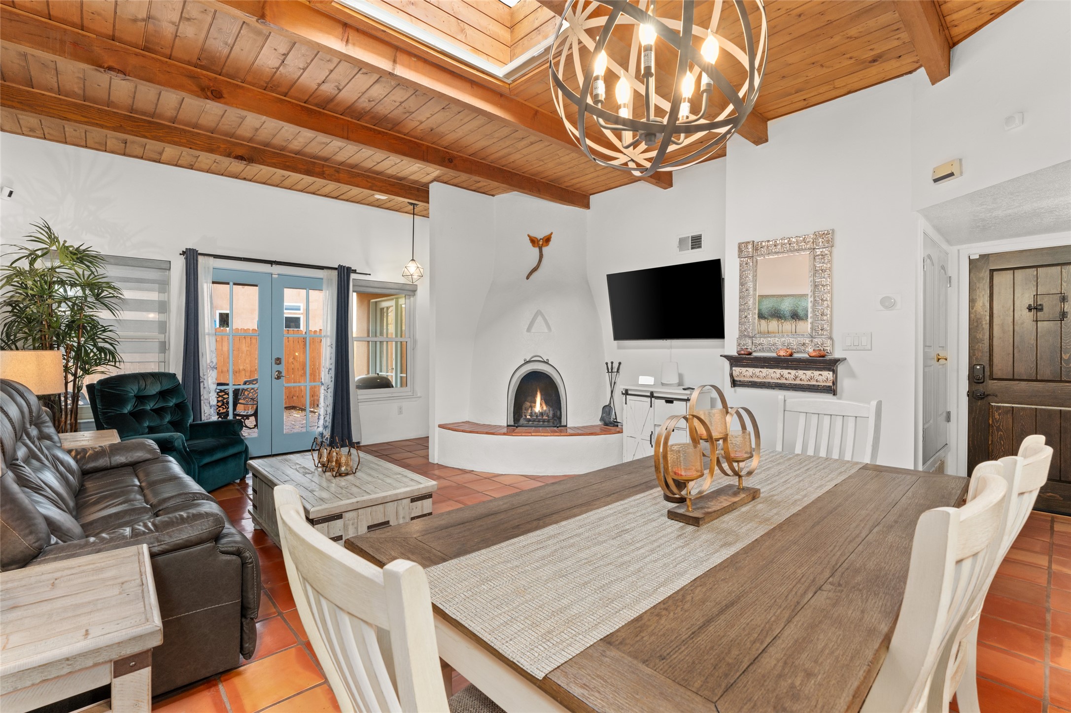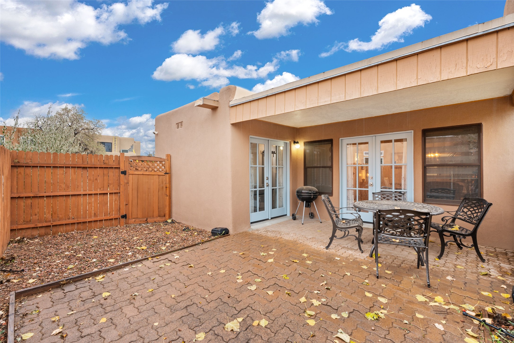 Nestled in a charming neighborhood, this 2-bedroom, 2-bath home seamlessly blends modern upgrades with timeless charm. Custom doors, including the front, barn, and French varieties, were installed just two years ago, complemented by new Anderson windows. The TPO roof, also two years old, and recent stucco refresh enhance both durability and curb appeal. Inside, a recently renovated kitchen with new appliances adds a modern touch. Tile floors, central air, and heating ensure year-round comfort. This property boasts a convenient 2-car garage and a secluded private portal in the back. Priced at $450,000, it comes fully furnished, providing a turnkey solution for a seamless move-in experience. Purchase price to be $445,000 without any furnishings. This property is a perfect blend of thoughtful design and convenience.