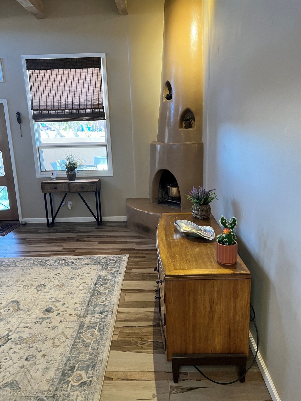 This is a pride of the owner. Well taken care of house that makes everyone feel at home once they walk in the house. Nice walled and gated side courtyard with aspens, flower gardens and rock work. This home has high ceilings, carpet, great bedroom separation, wood tile flooring, a kiva fireplace with beams and TandG, Sangre de Cristo and Jemez views.