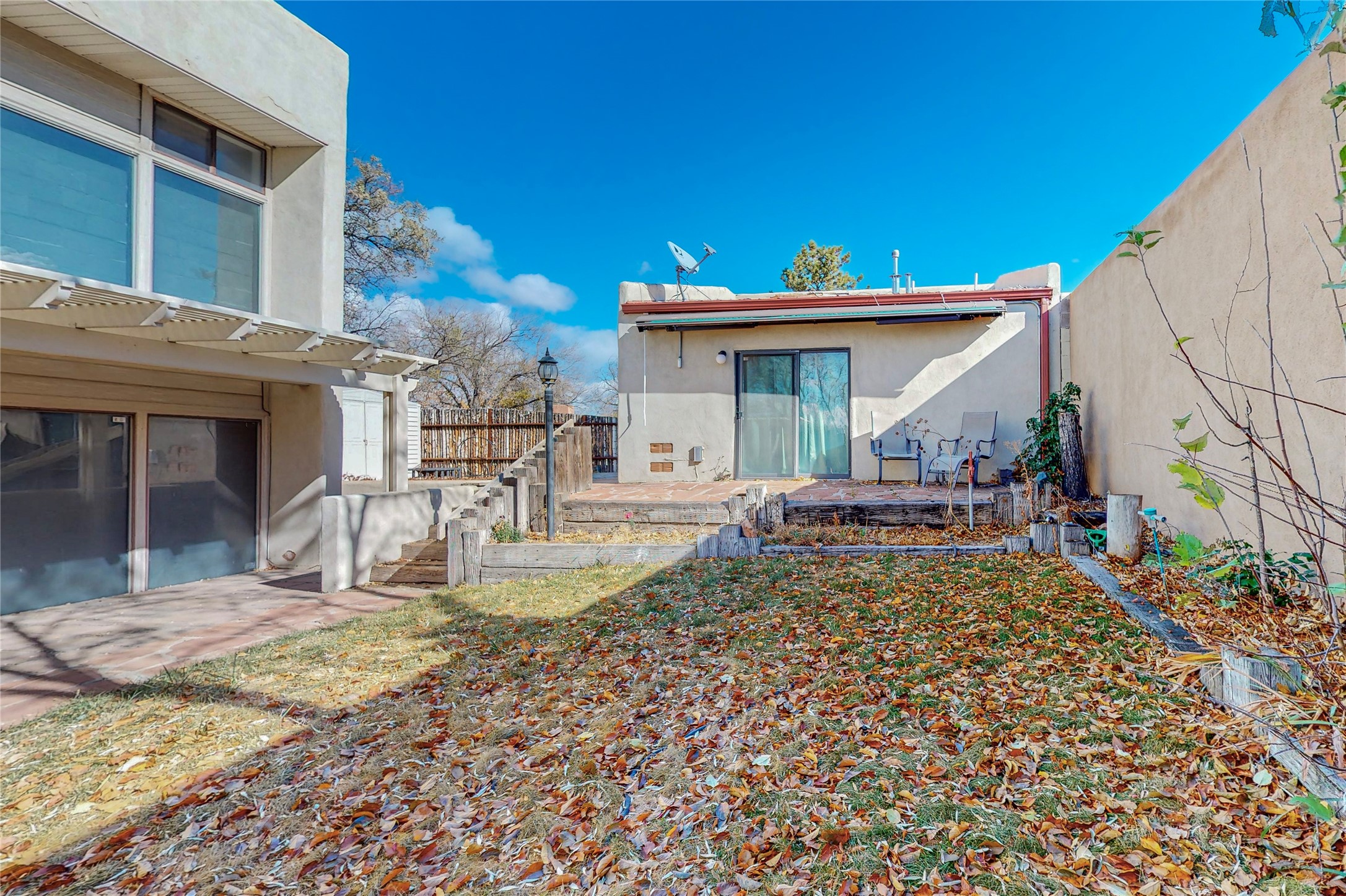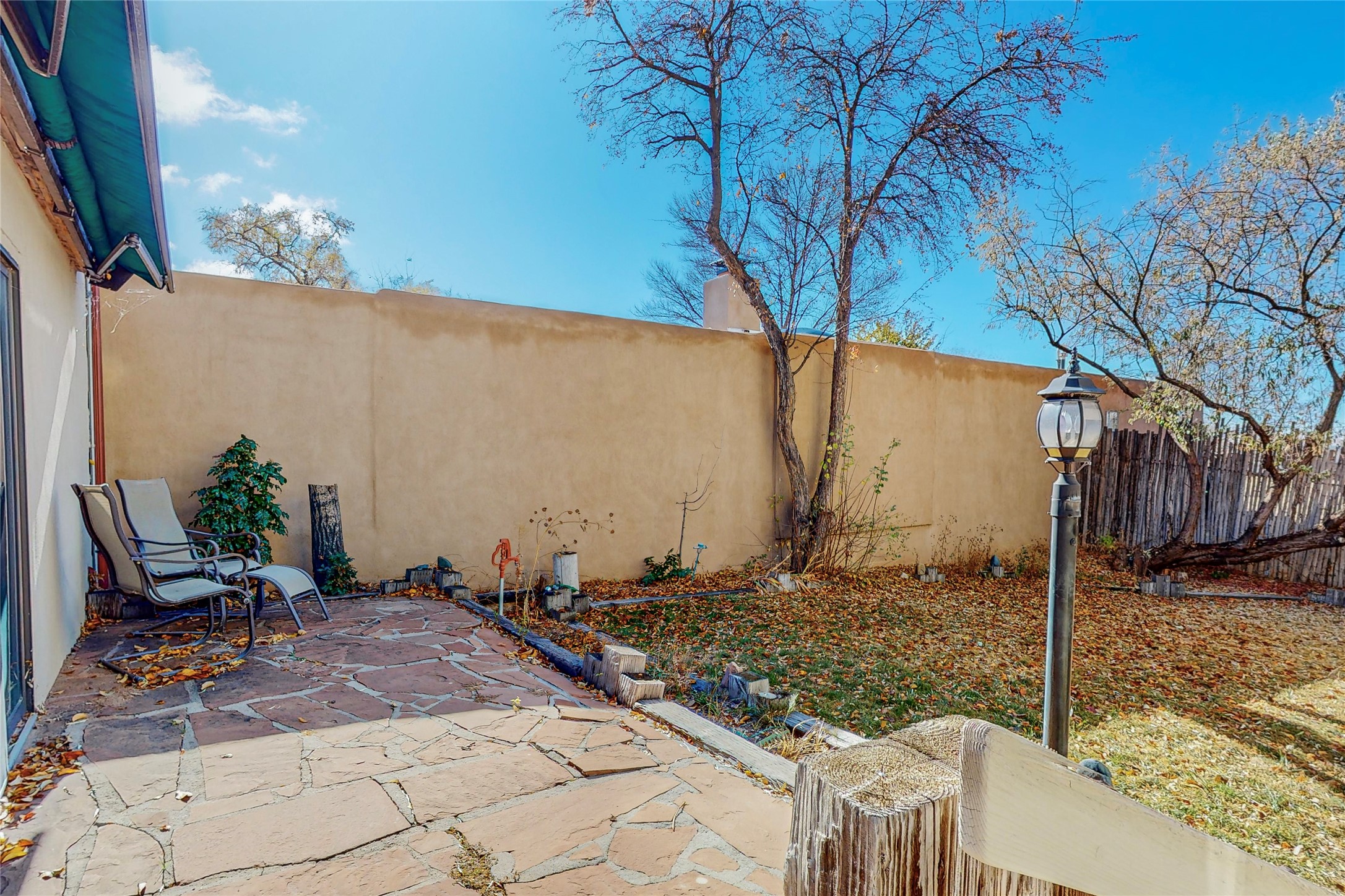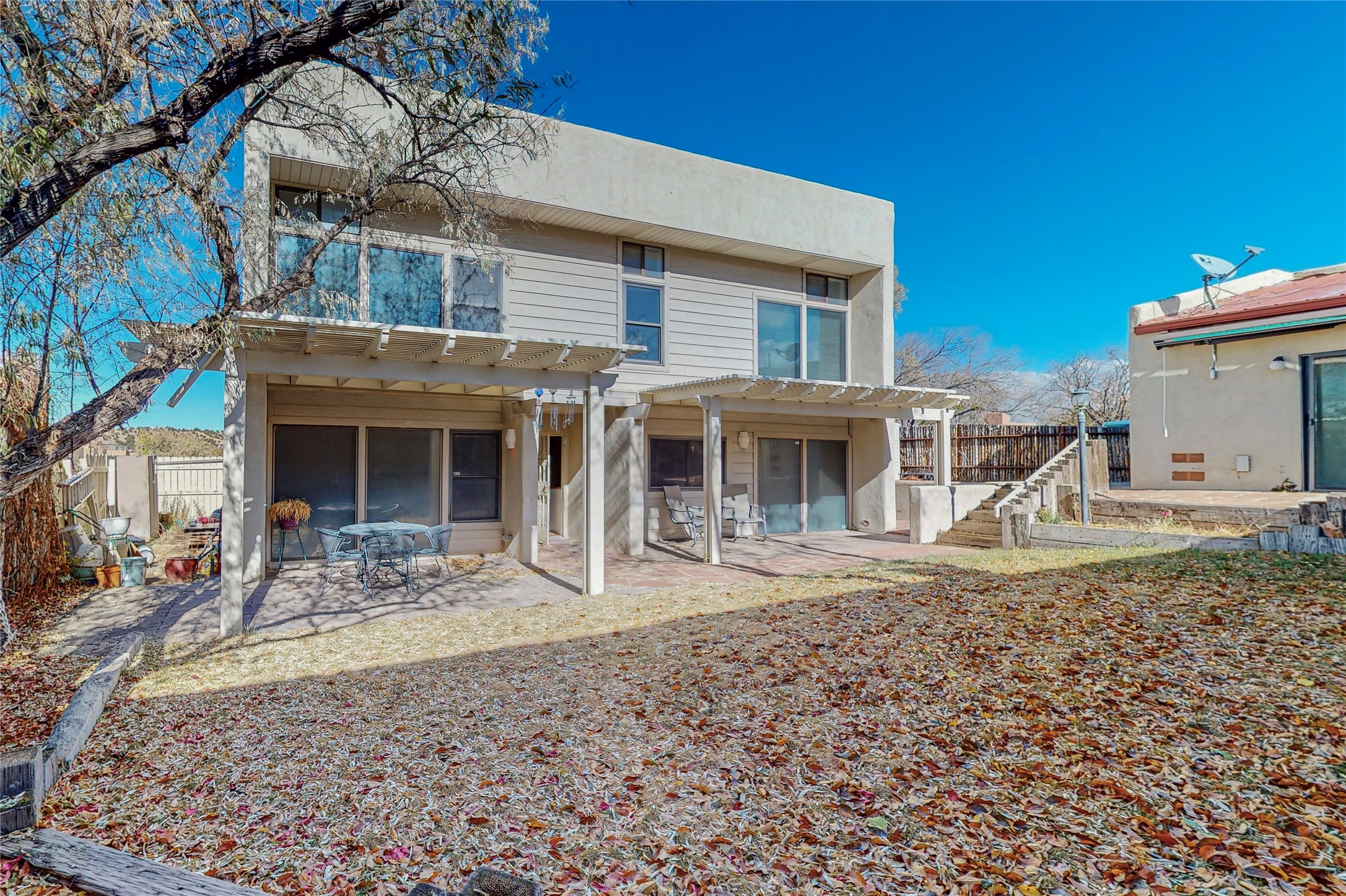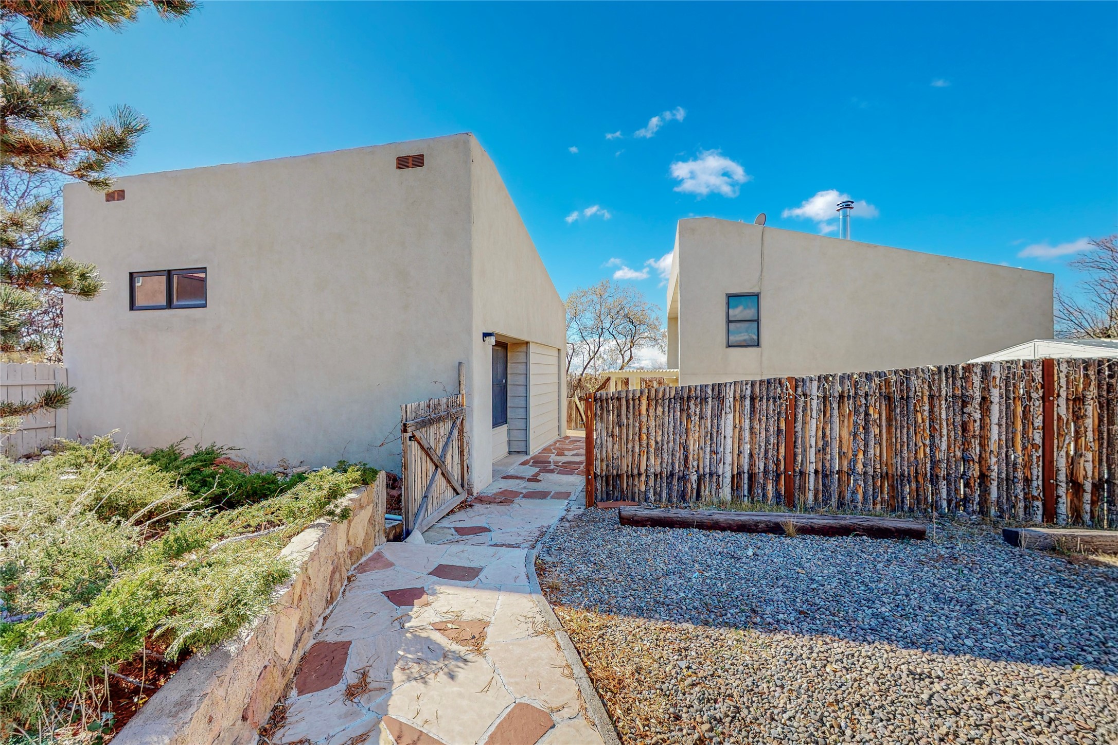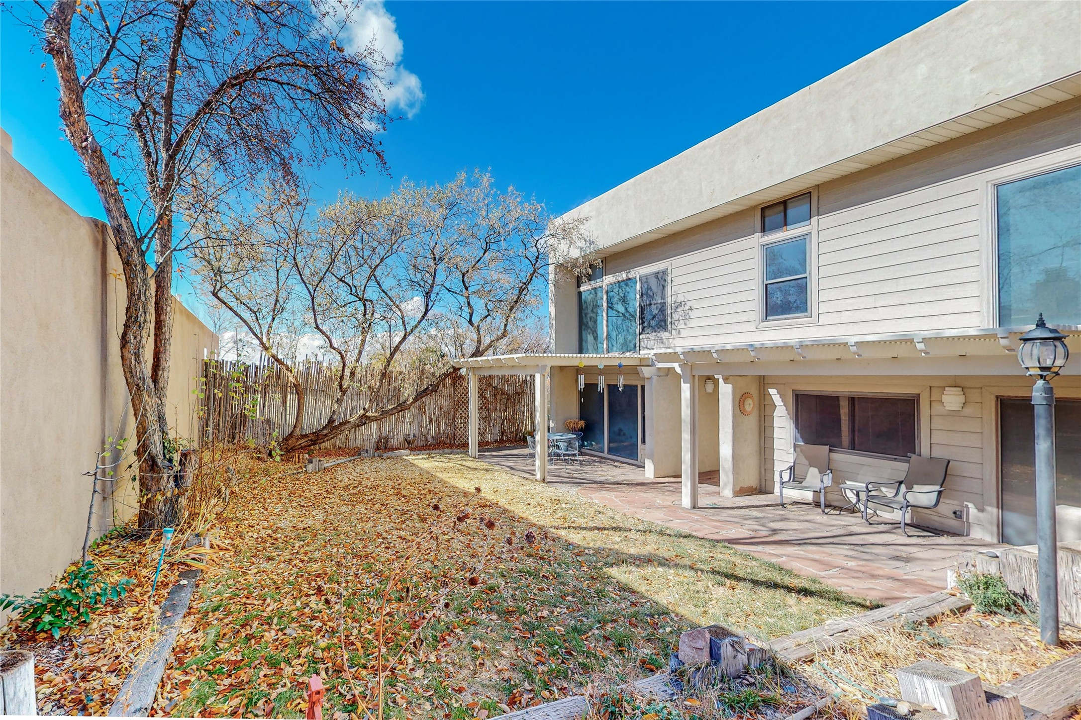 Located in Pueblo Alegre this one owner home is move in ready. It has been freshly painted and new carpet has been installed. There is one bedroom and bath on the lower level. The principal bedroom and bath is on the upper level next to a light filled loft that could be an office, den or even a nursery. There are large closets that provide ample storage. The wood burning kiva fireplace in the living room will bring warmth and comfort to cold winter nights. The private yard with mature trees and lawn is perfect for those summer gatherings. Last but not least, there is a CASITA!Think income producing, mother in law quarters, office, or man cave!! This delightful neighborhood with 2 private parks is across from Frenchy's Field and close to everything mid-town.