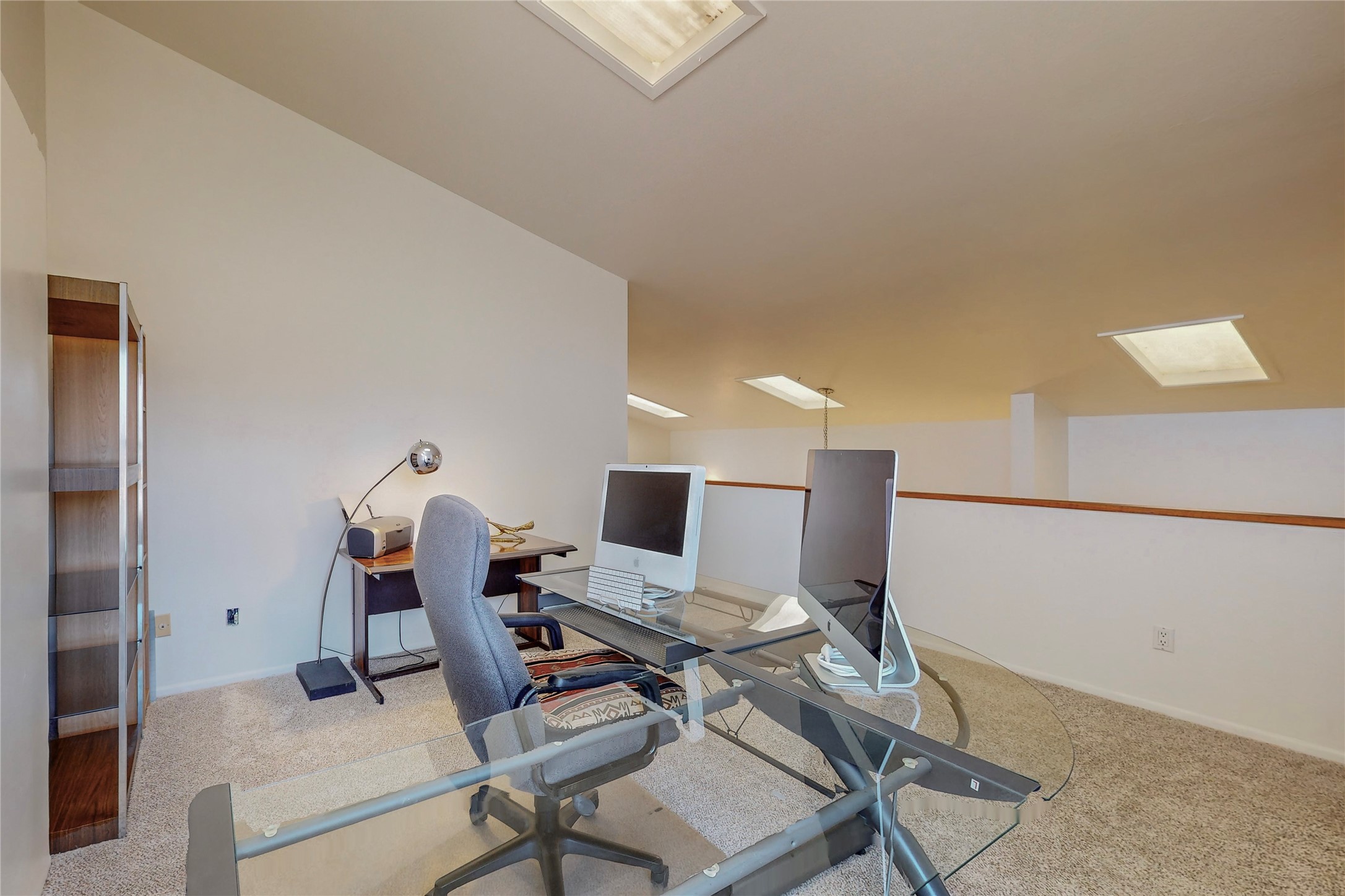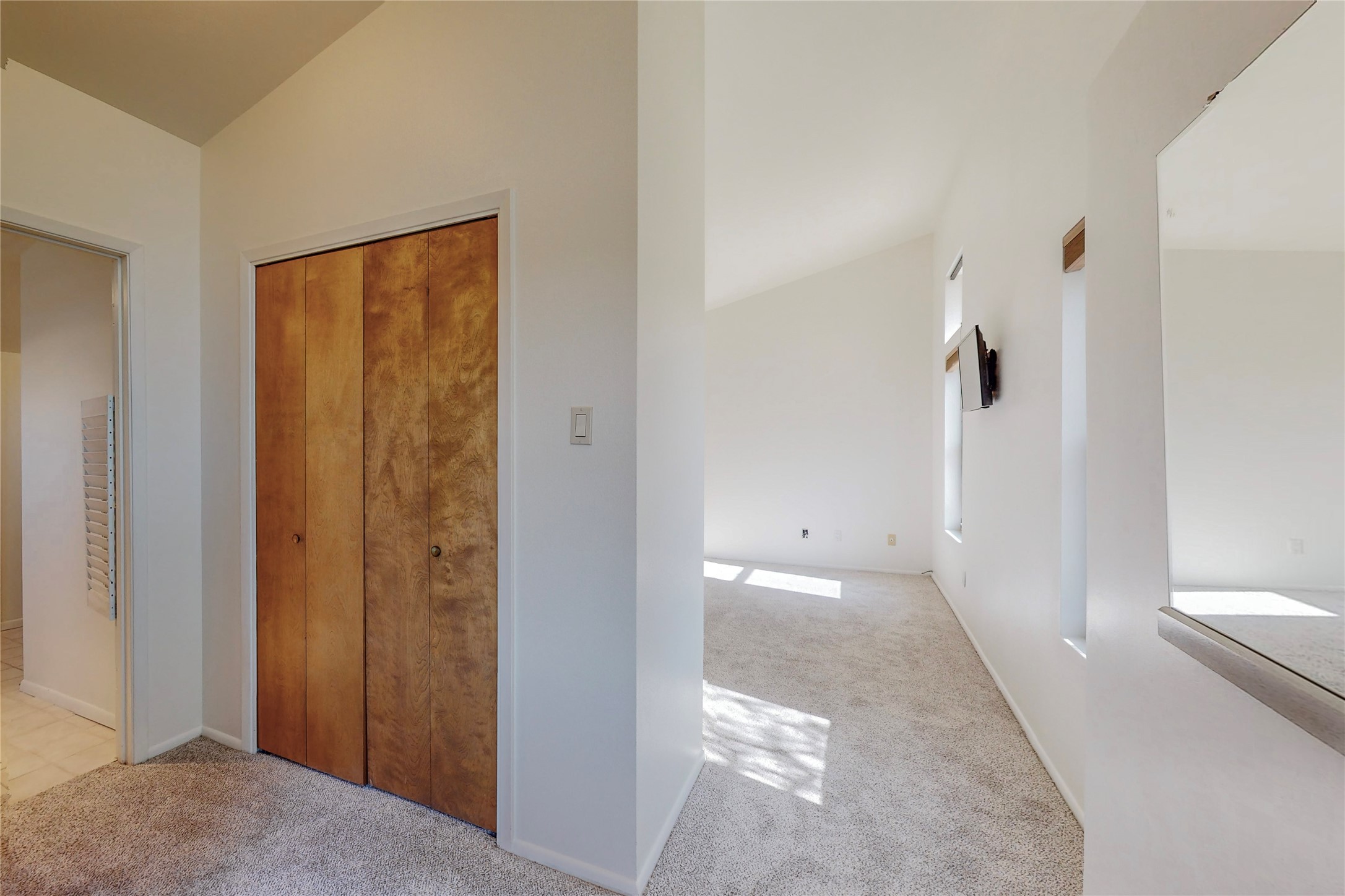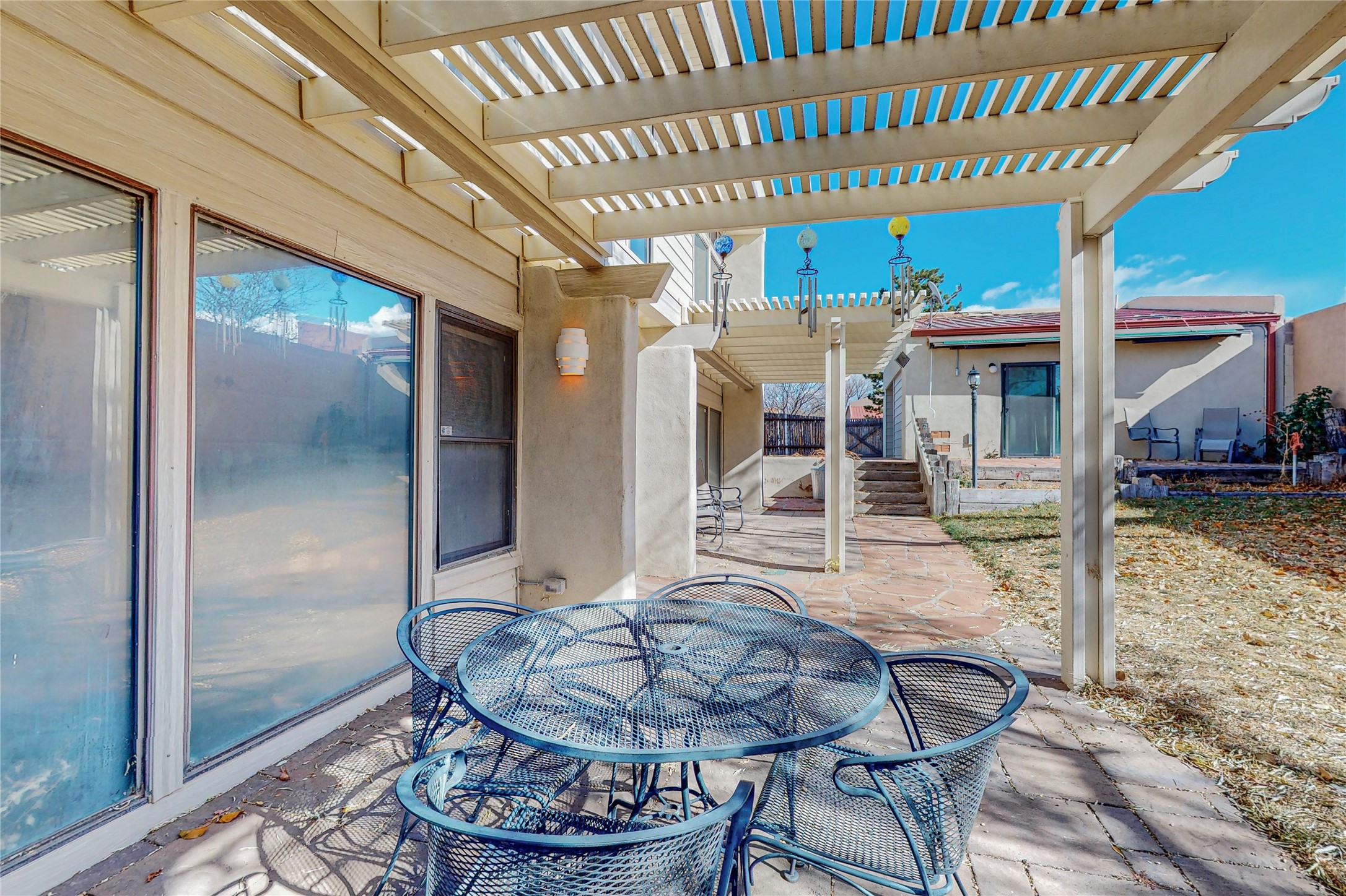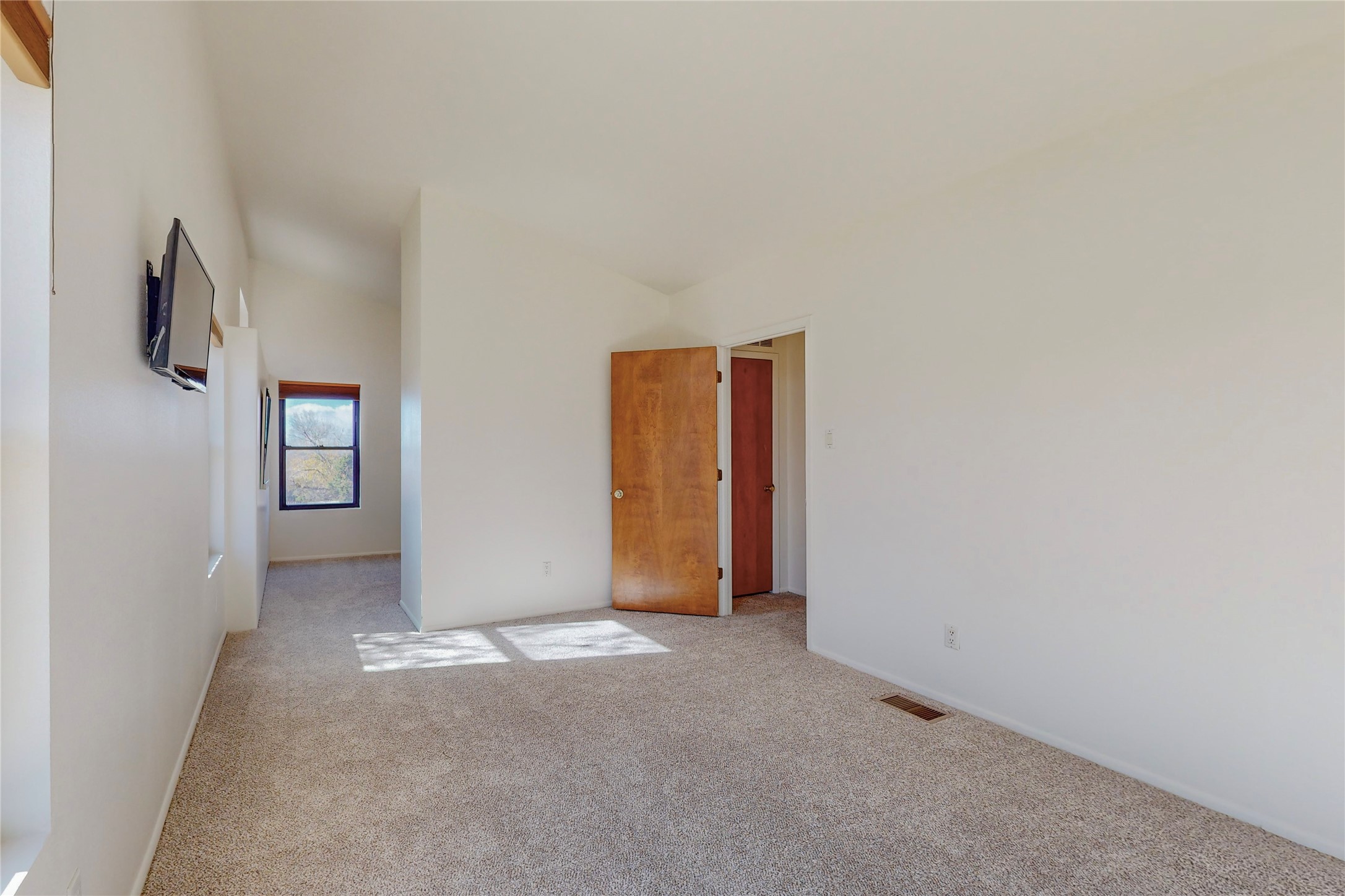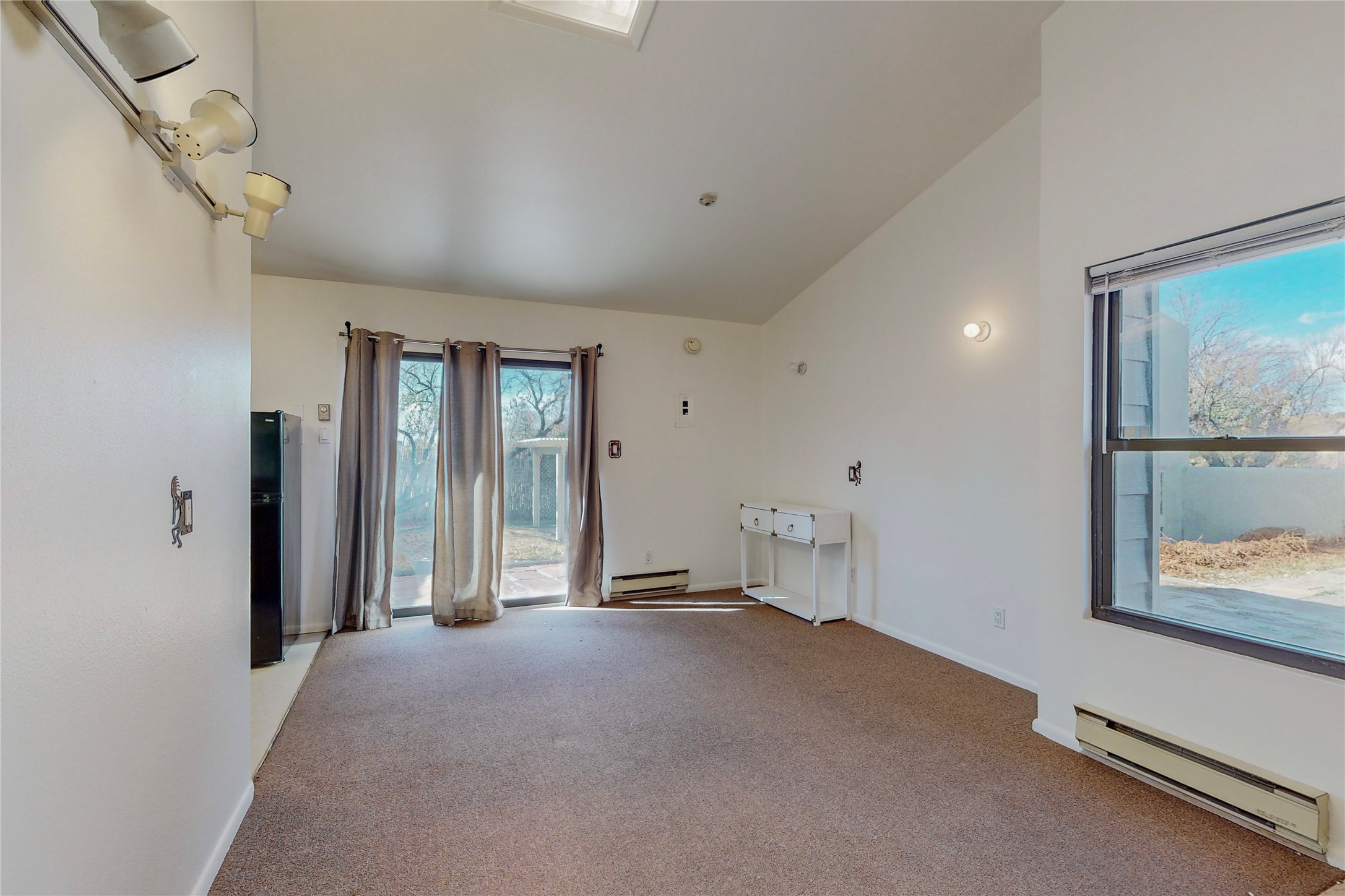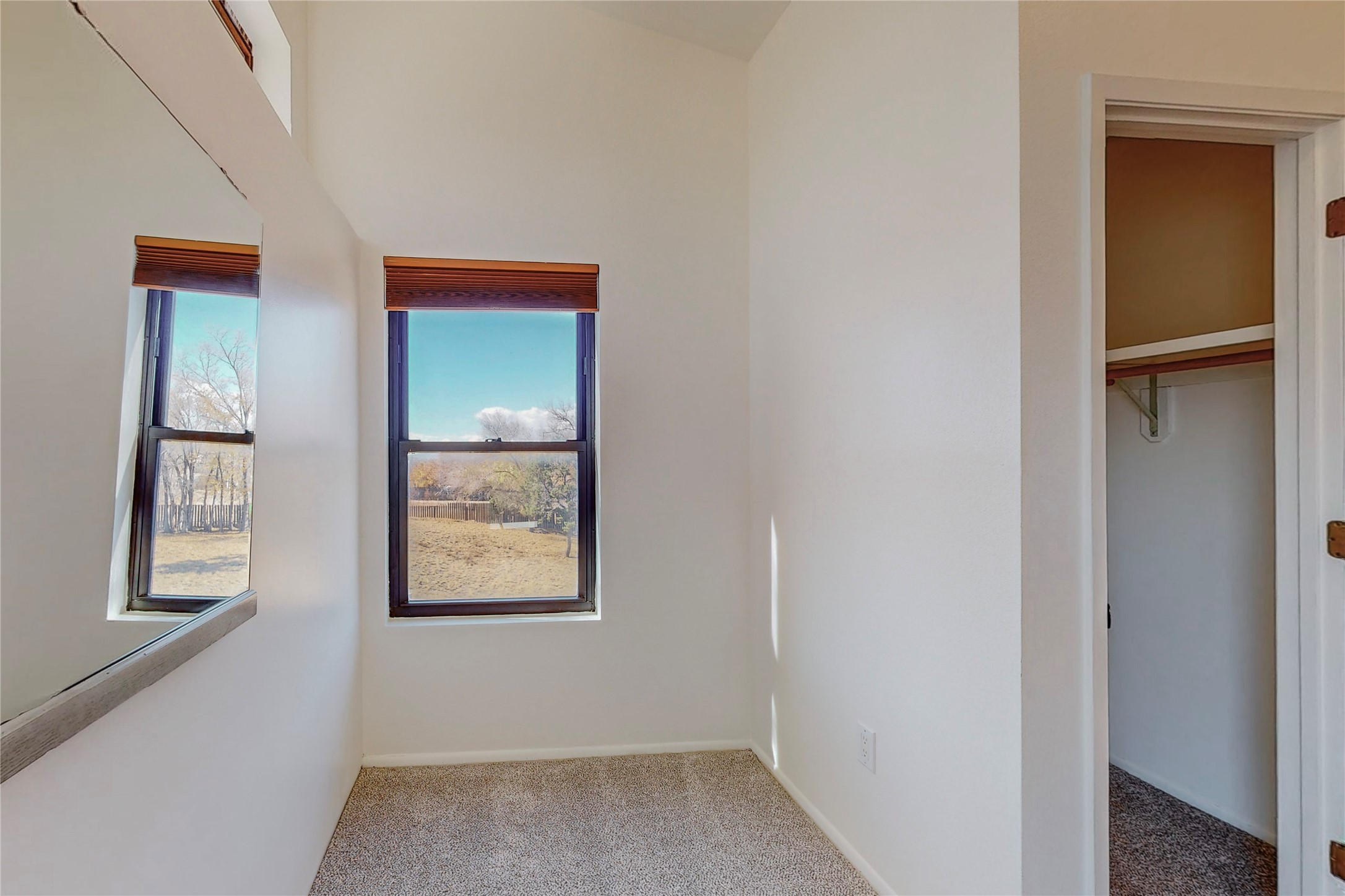 Located in Pueblo Alegre this one owner home is move in ready. It has been freshly painted and new carpet has been installed. There is one bedroom and bath on the lower level. The principal bedroom and bath is on the upper level next to a light filled loft that could be an office, den or even a nursery. There are large closets that provide ample storage. The wood burning kiva fireplace in the living room will bring warmth and comfort to cold winter nights. The private yard with mature trees and lawn is perfect for those summer gatherings. Last but not least, there is a CASITA!Think income producing, mother in law quarters, office, or man cave!! This delightful neighborhood with 2 private parks is across from Frenchy's Field and close to everything mid-town.
