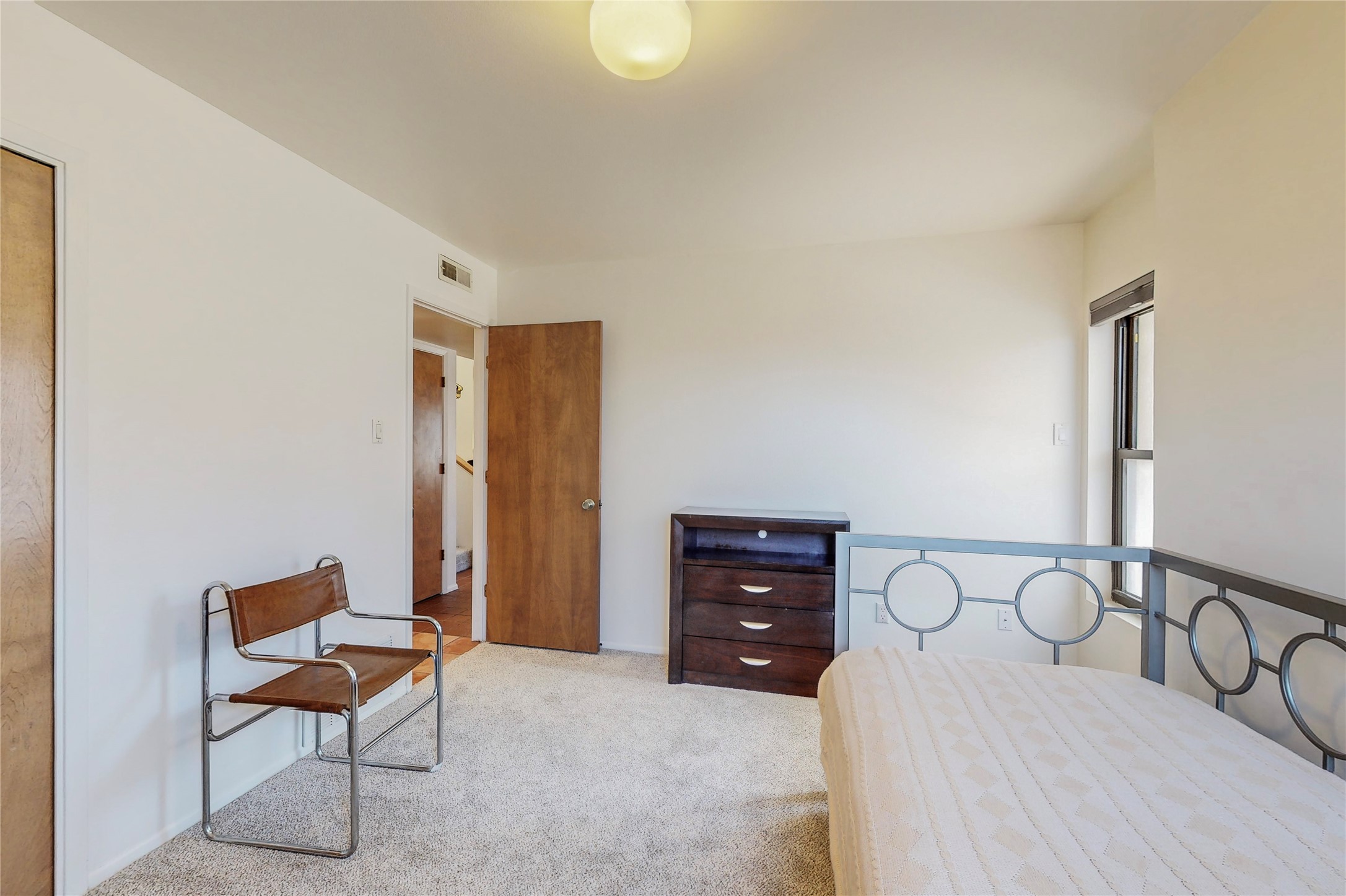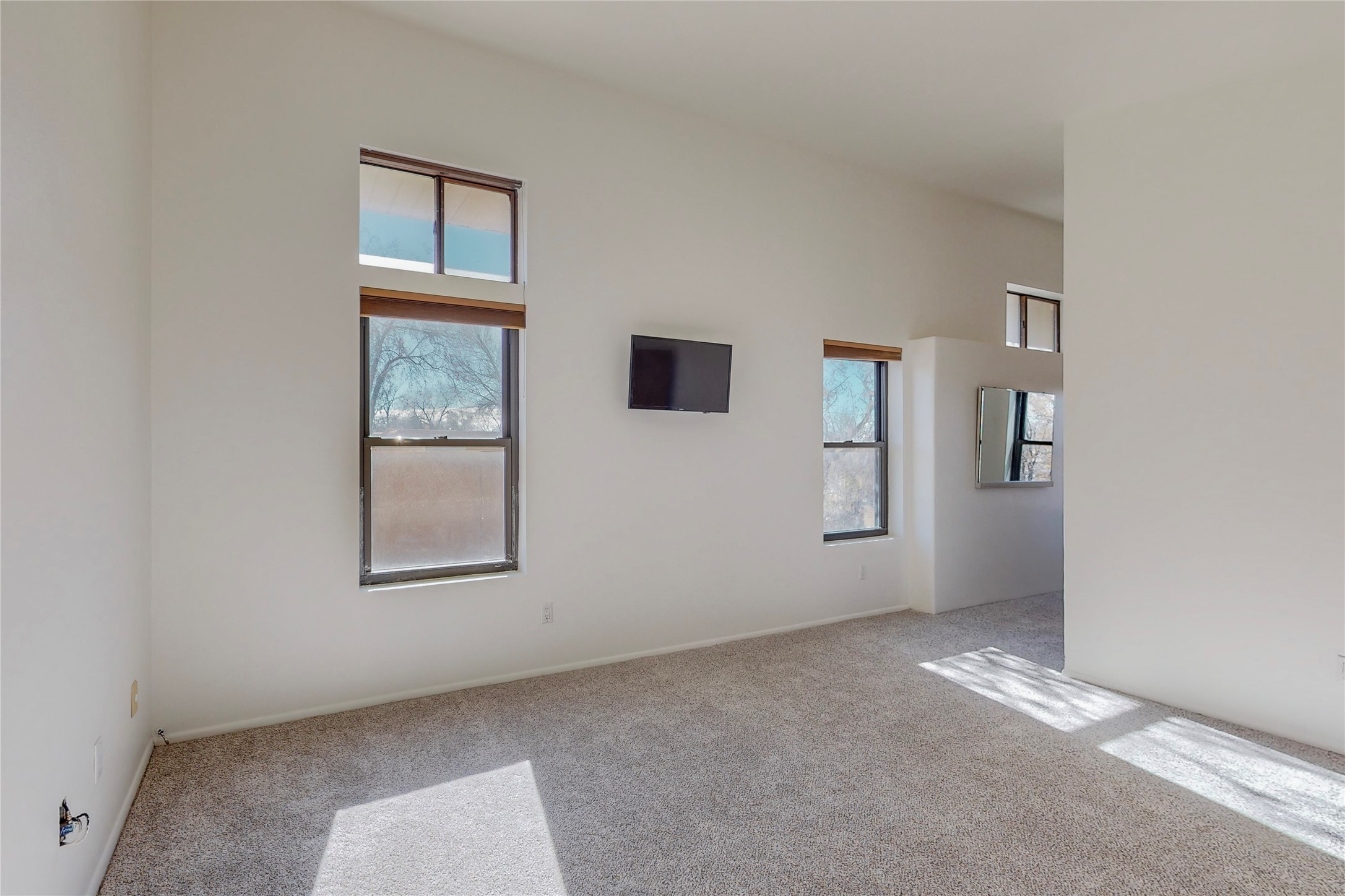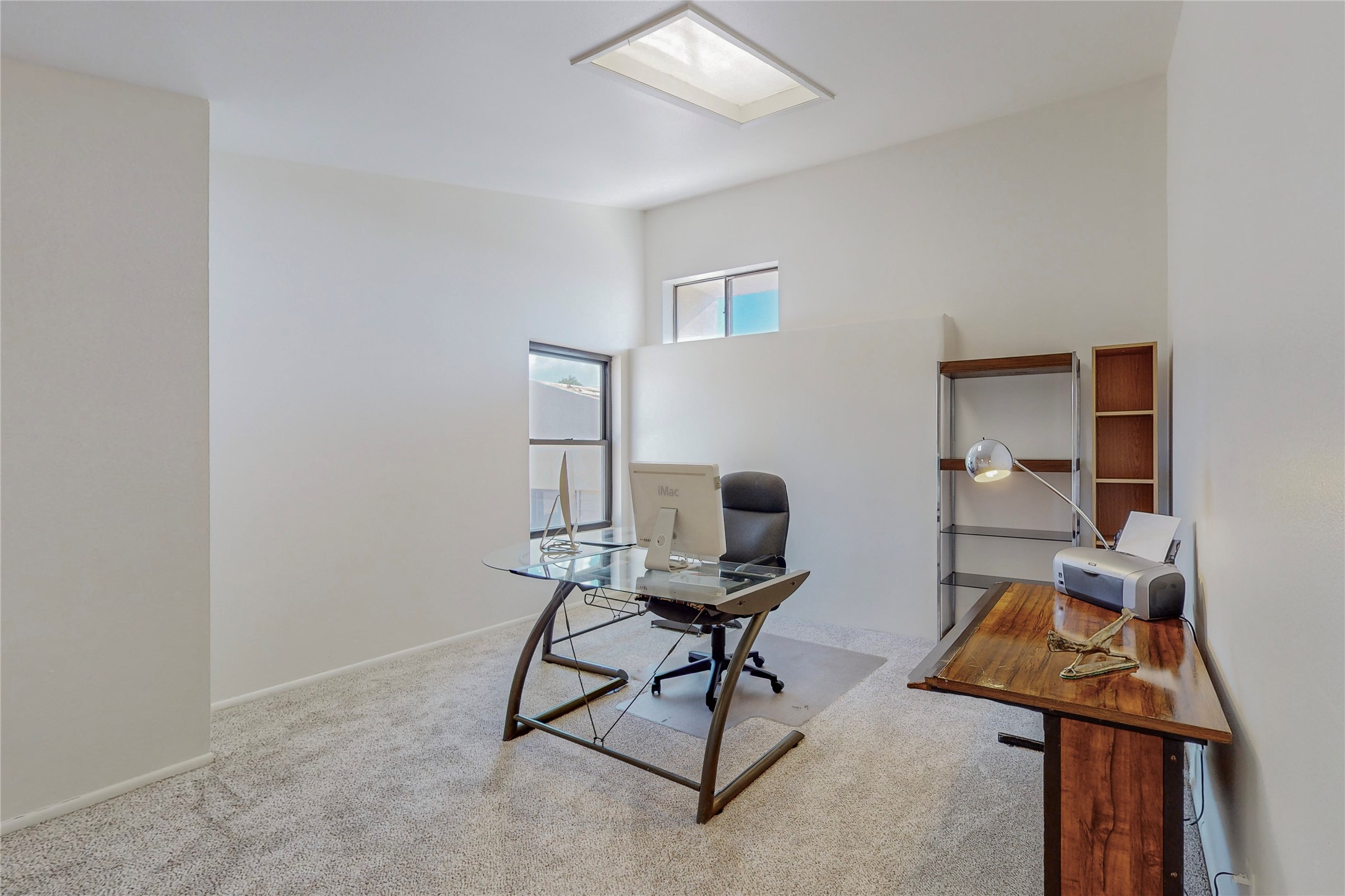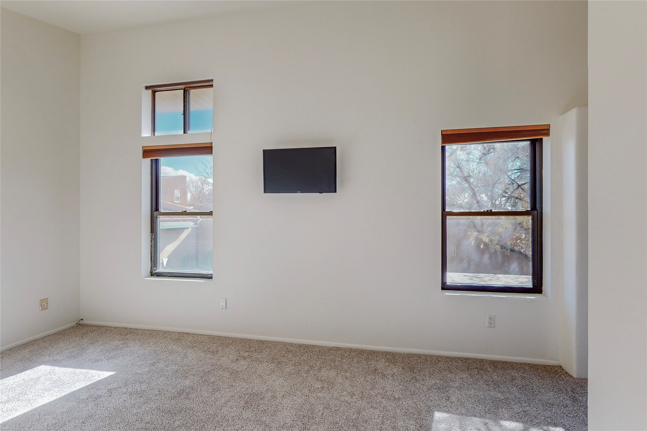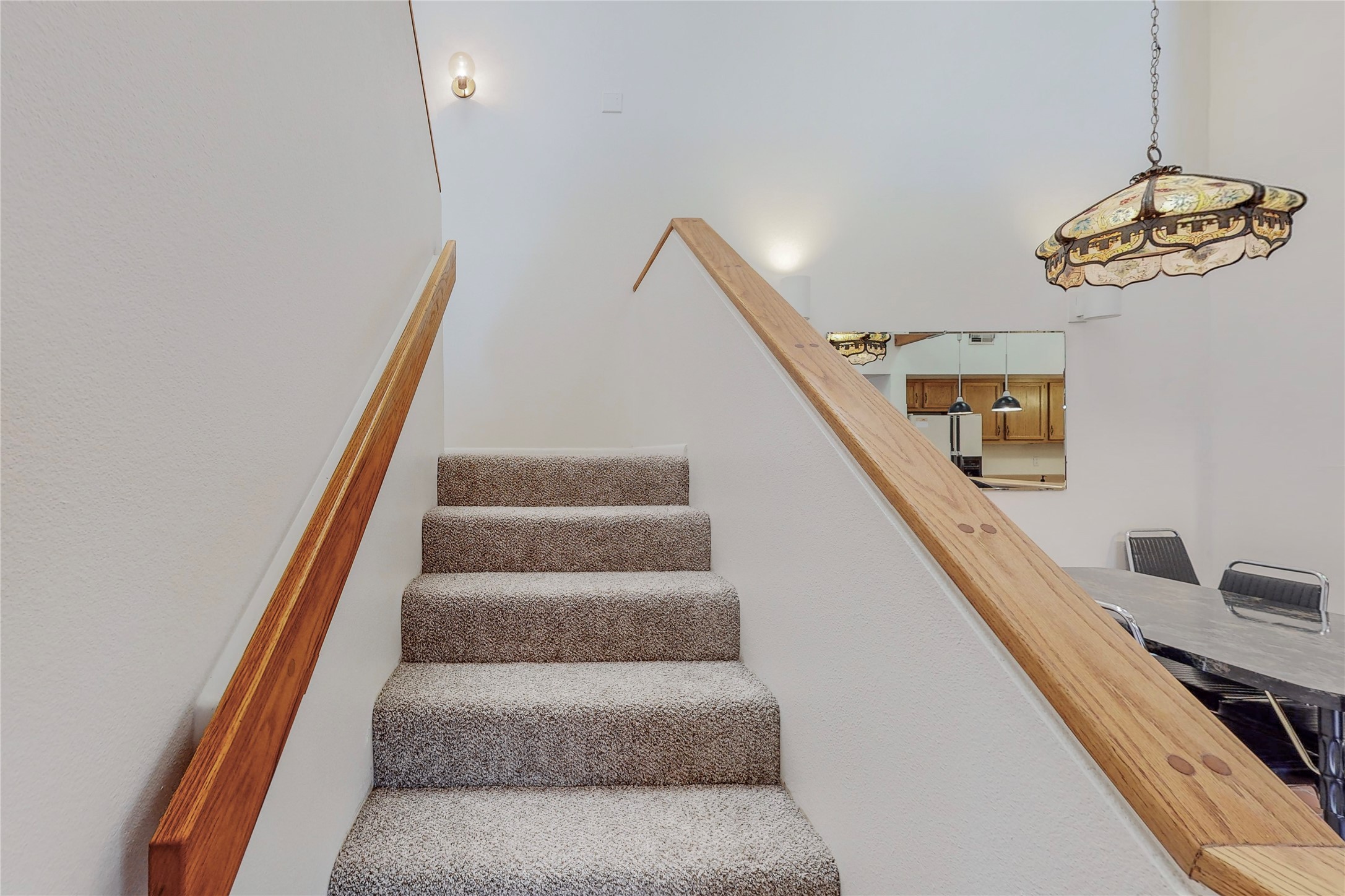 Located in Pueblo Alegre this one owner home is move in ready. It has been freshly painted and new carpet has been installed. There is one bedroom and bath on the lower level. The principal bedroom and bath is on the upper level next to a light filled loft that could be an office, den or even a nursery. There are large closets that provide ample storage. The wood burning kiva fireplace in the living room will bring warmth and comfort to cold winter nights. The private yard with mature trees and lawn is perfect for those summer gatherings. Last but not least, there is a CASITA!Think income producing, mother in law quarters, office, or man cave!! This delightful neighborhood with 2 private parks is across from Frenchy's Field and close to everything mid-town.