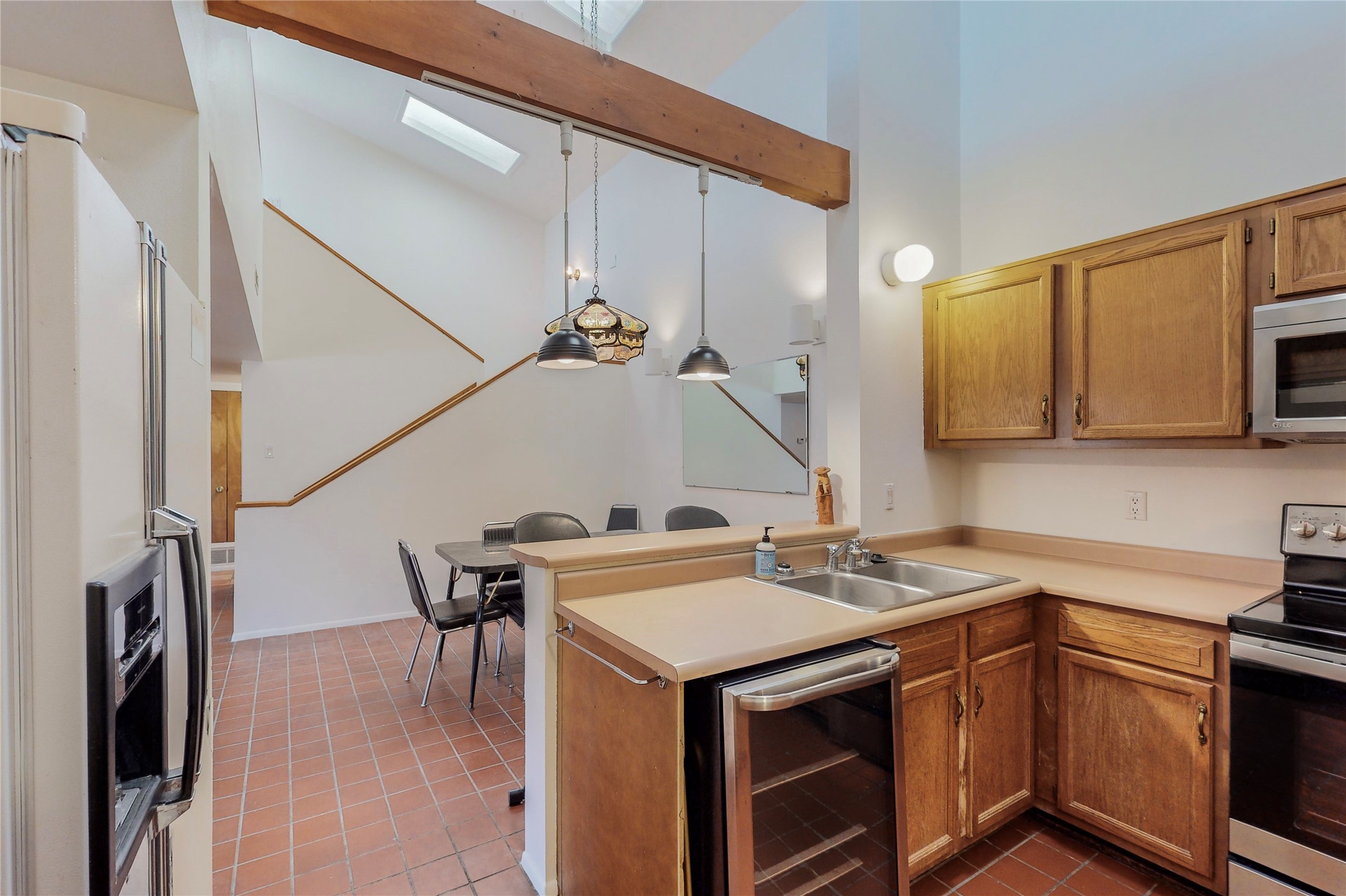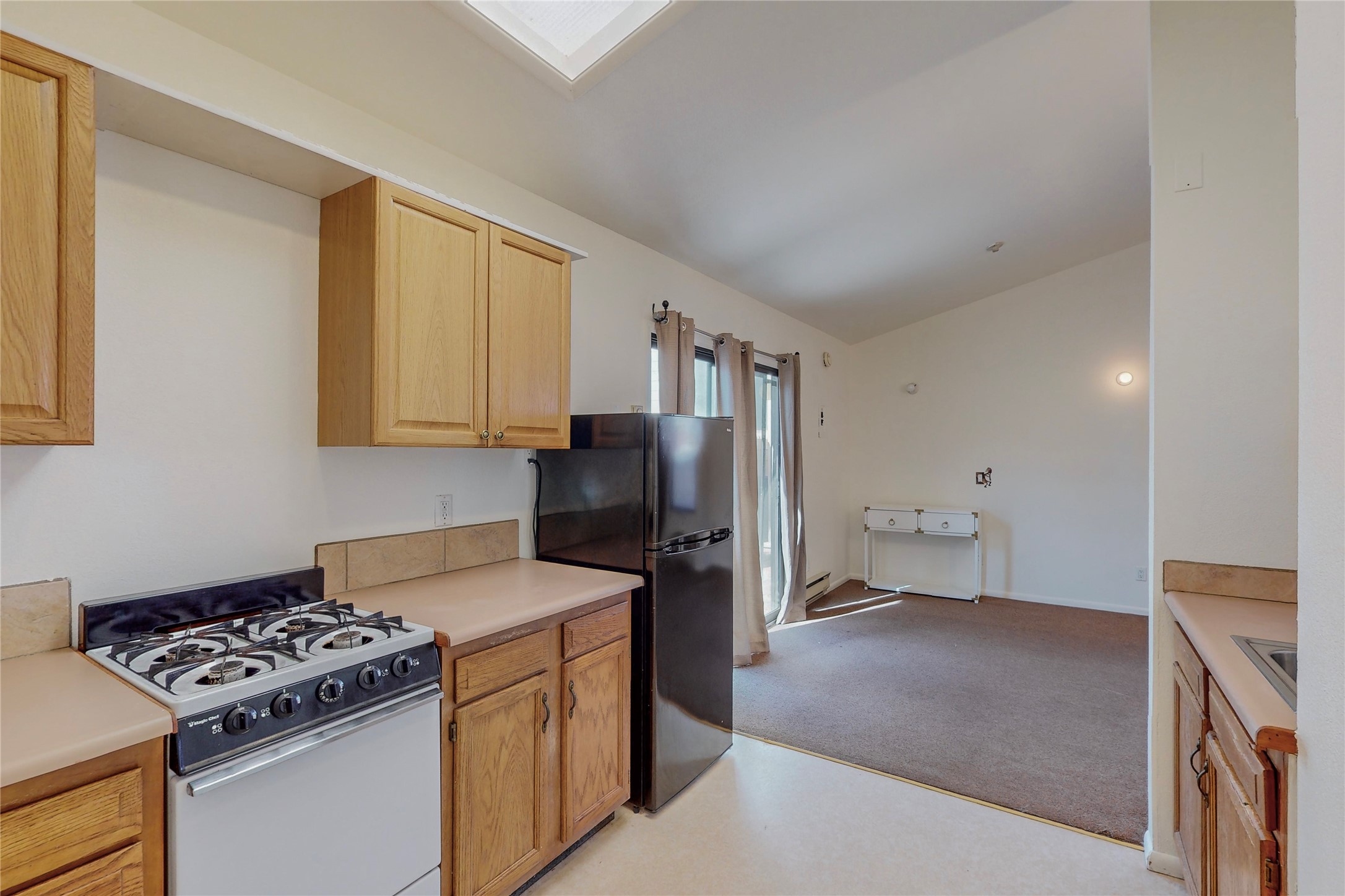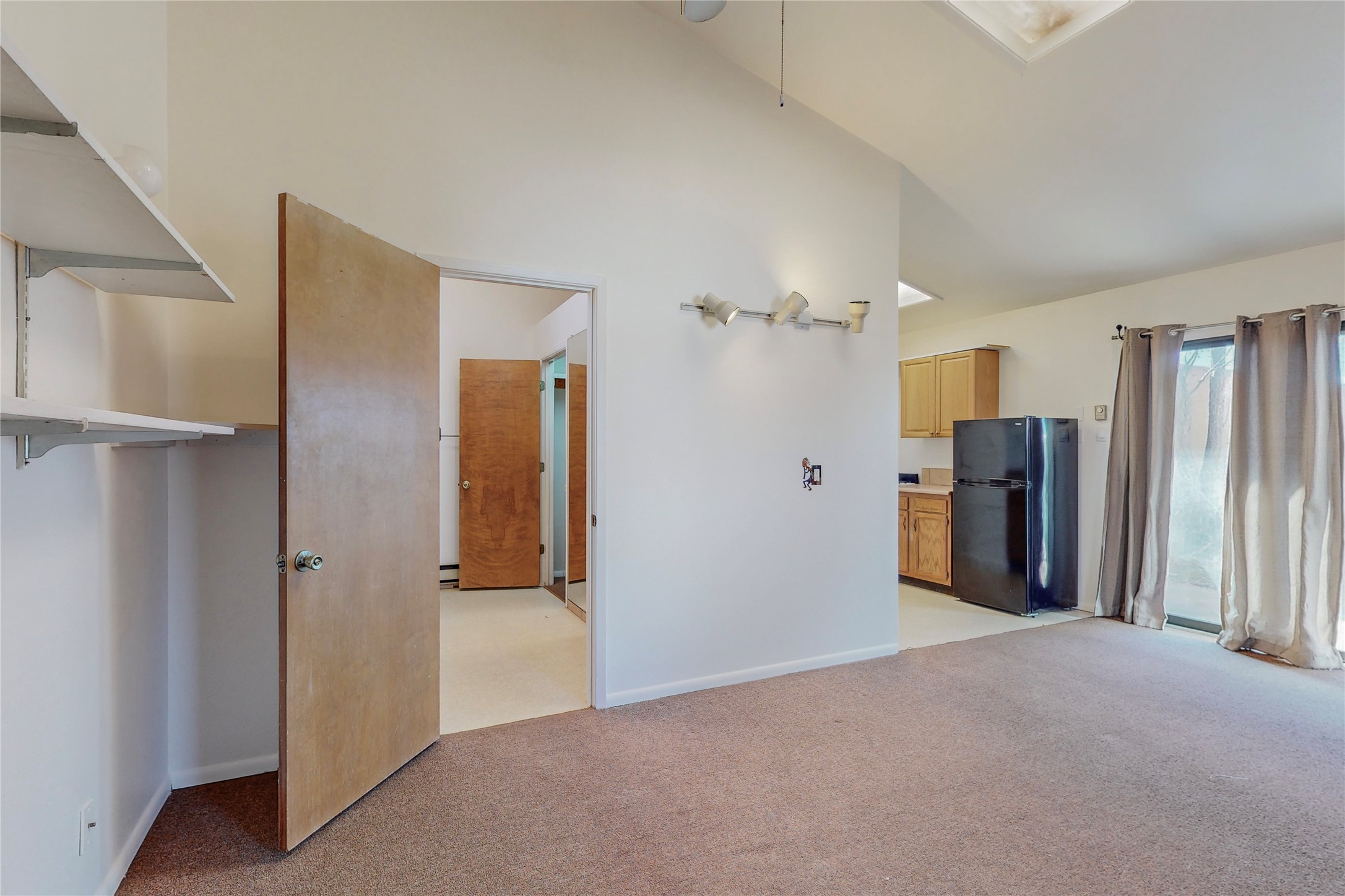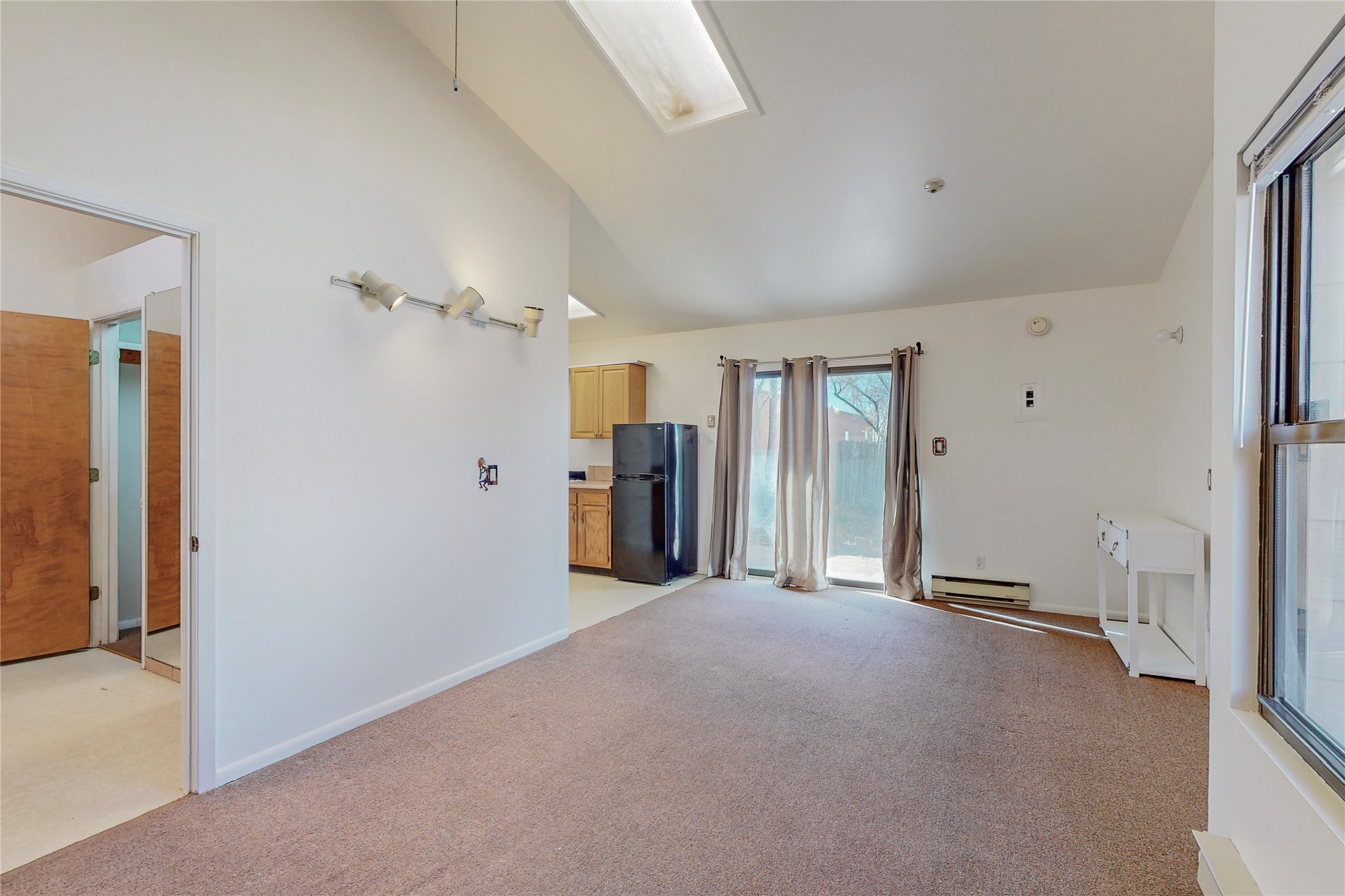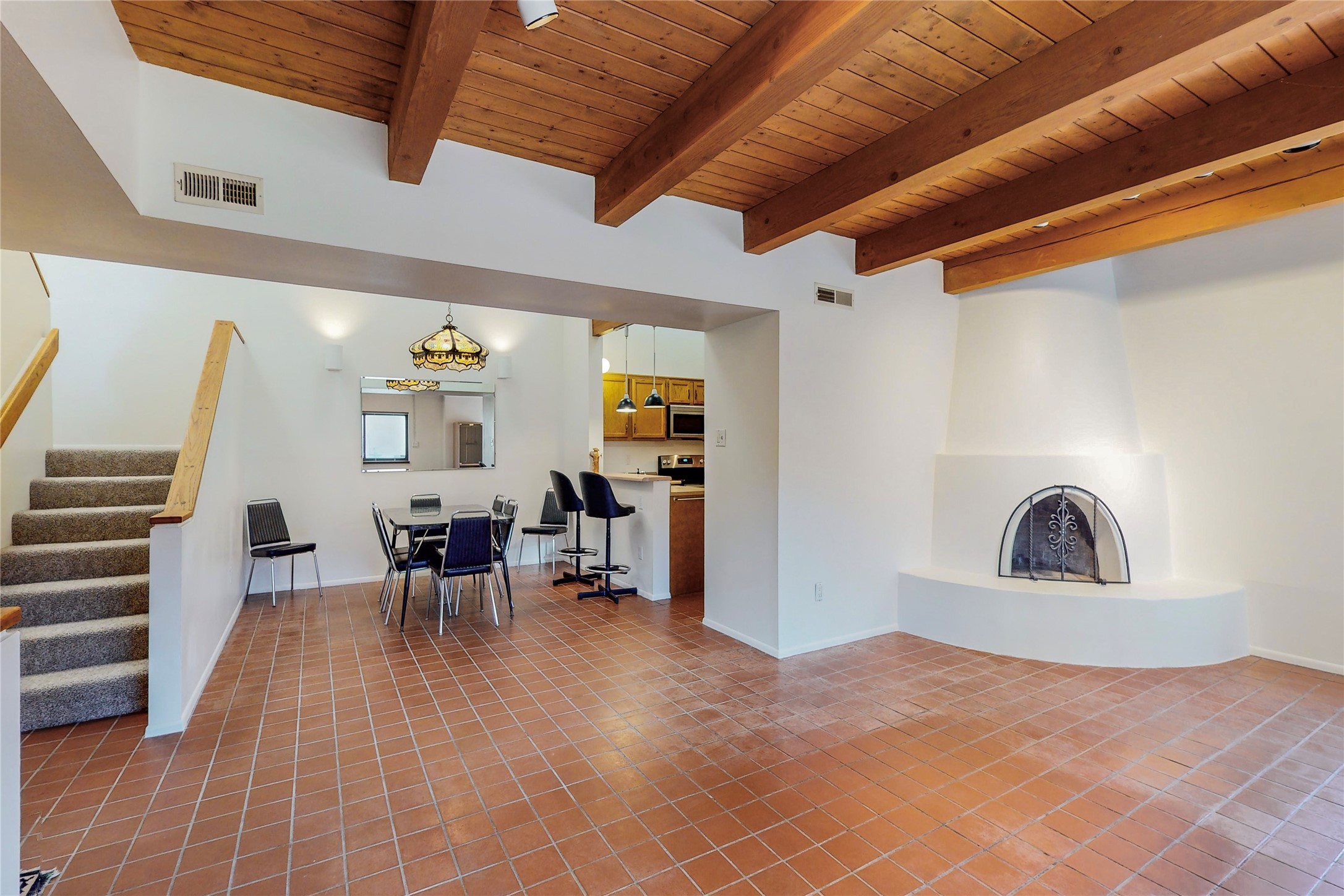Located in Pueblo Alegre this one owner home is move in ready. It has been freshly painted and new carpet has been installed. There is one bedroom and bath on the lower level. The principal bedroom and bath is on the upper level next to a light filled loft that could be an office, den or even a nursery. There are large closets that provide ample storage. The wood burning kiva fireplace in the living room will bring warmth and comfort to cold winter nights. The private yard with mature trees and lawn is perfect for those summer gatherings. Last but not least, there is a CASITA!Think income producing, mother in law quarters, office, or man cave!! This delightful neighborhood with 2 private parks is across from Frenchy's Field and close to everything mid-town.