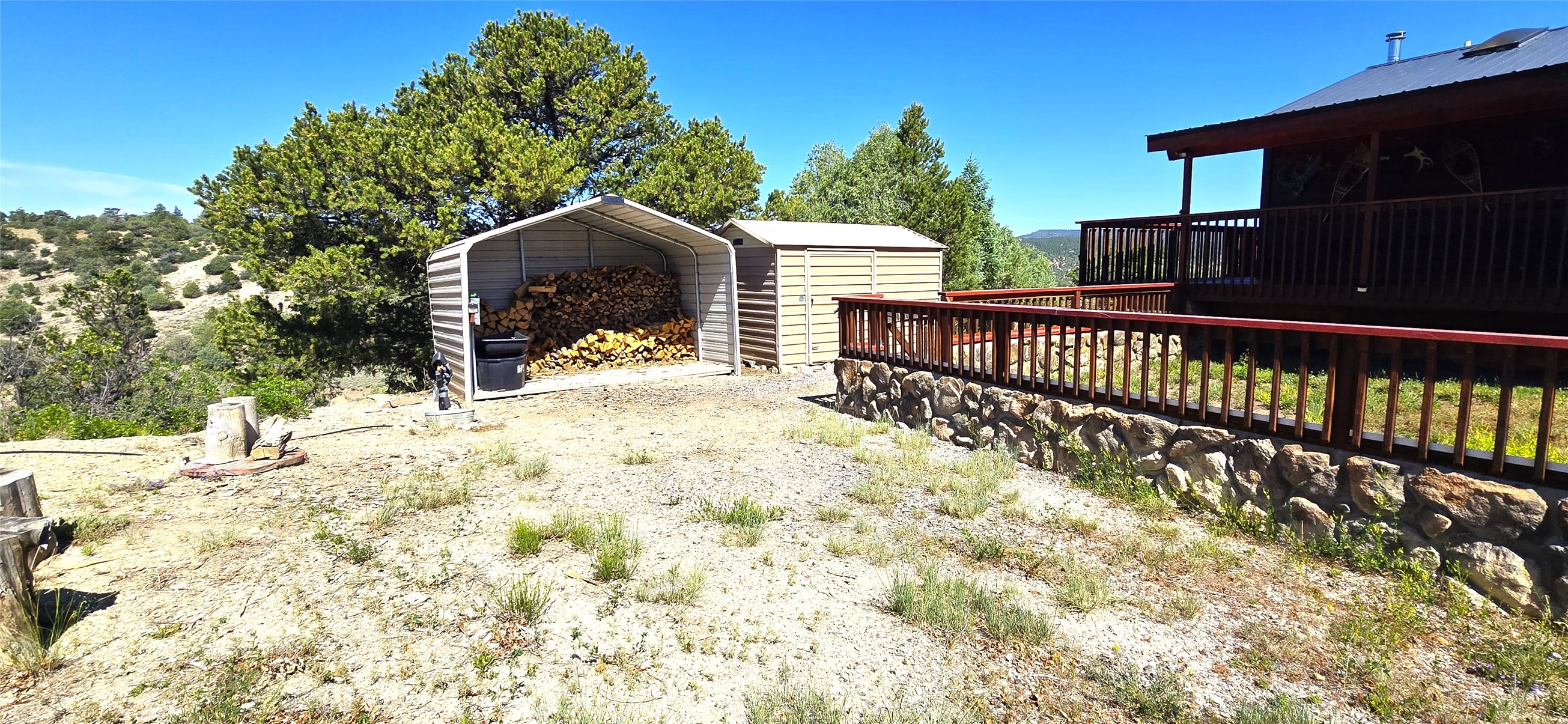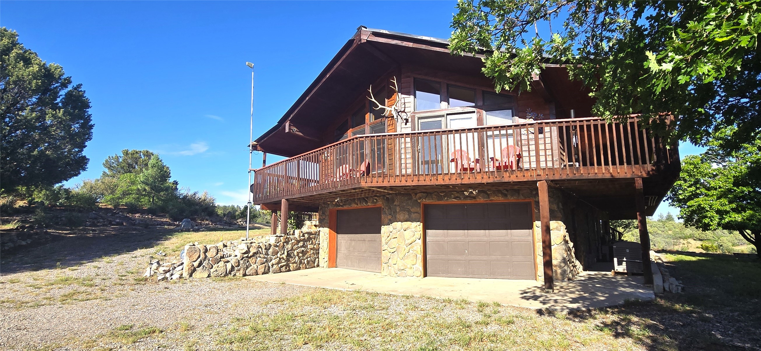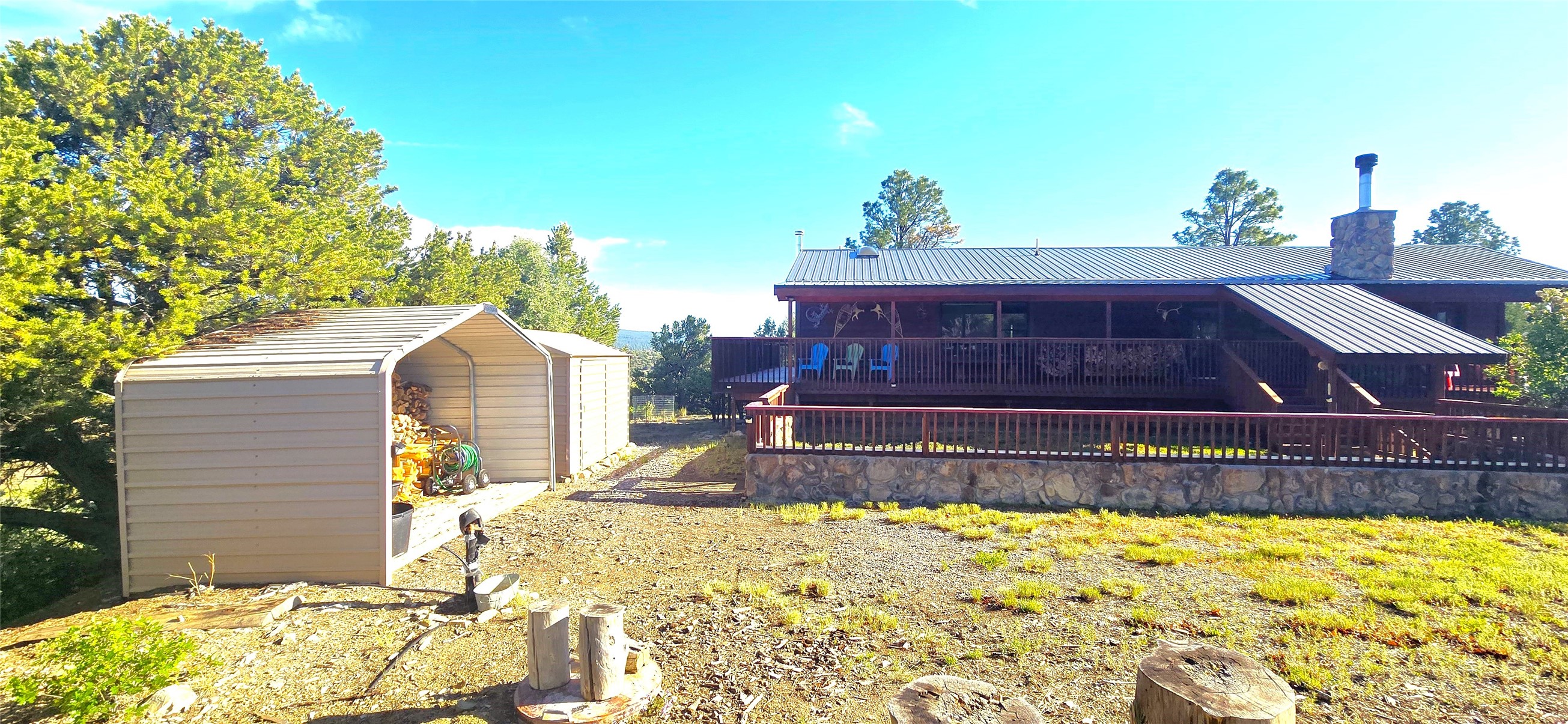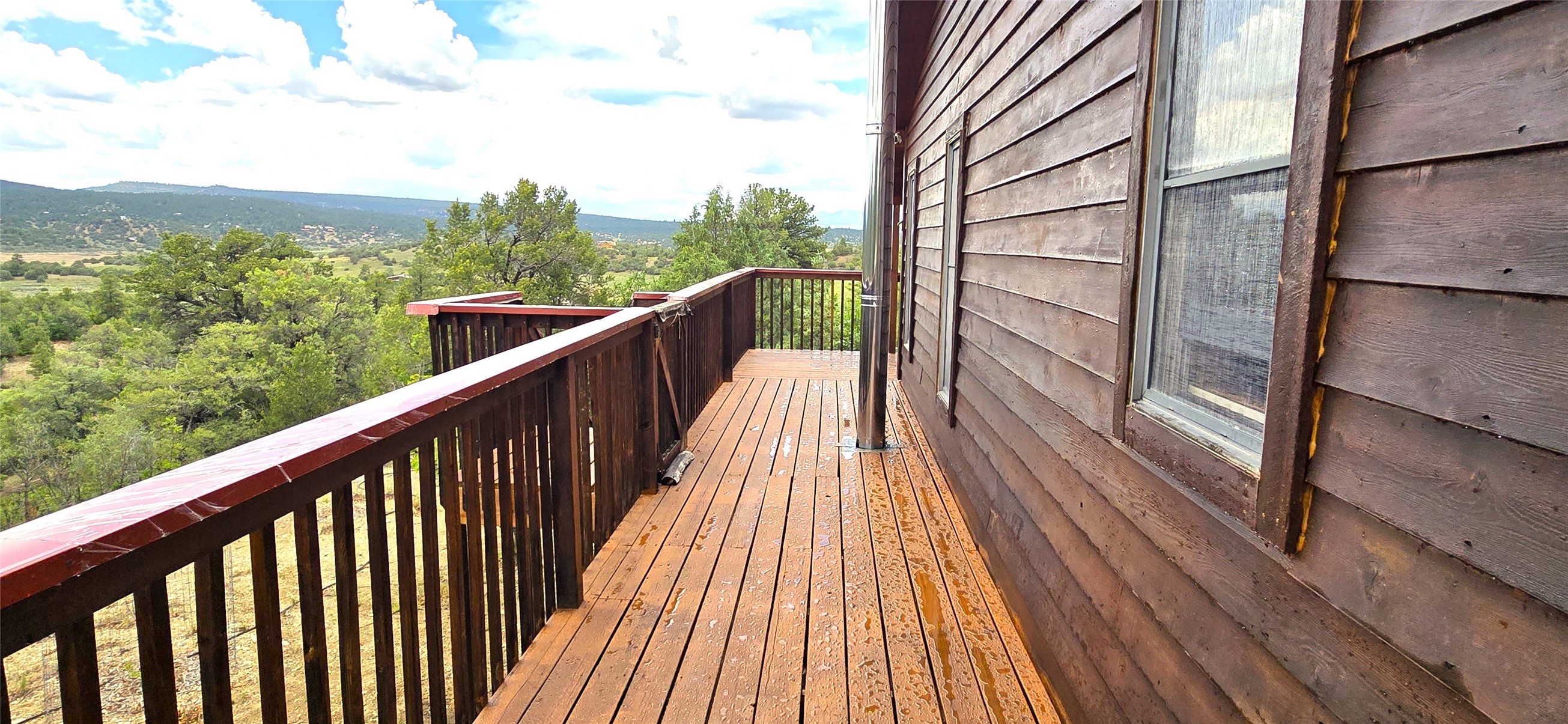 Beautiful well kept mountain home located in the community of Rutheron NM, just minutes from Heron Lake State Park. Vista De Heron S/D Tract 3, cont. 12.81 acres +/- with 787 ft of direct road frontage on Highway 95. Also a Private drive from Vista De Heron, Camino Thomas Drive.The Cabin is a split two level with a total enclosed area of 3,374 sq. ft. Top level living space is 1,687 sqft. with 3 Bedrooms; two full baths; walk in Master Closet; Laundry Room; open Kitchen /Dining with cook preparation island; Living Room with fire place; complete wrap around covered balcony porch. Lower level 1 Bedroom; Walk-in Clothes Closet; one full bath; Den with stove fire place; LinenCloset; Hall; Utility with HVAC, Hot Water Heater, Water Softener, Storage, ADT Security Hub,back-up generator transfer switch; two car extra-large garage 756 sqftprovides extra space for storage and work shop. Lower level has a full side walk-out, with the opposite side recessed into hill. Full gated courtyard at main entry. The Lower level has been designed to be modified into a separate living area with it's own entrance. The home is heated with a propane forced air unit along with refrigerated air for those warm days. 1000 gallon propane tank, culligan water softner with an RO filtration unit. The upper fire place is a Heatilator and the lower floor has a cast iron wood stove.Out buildings to include a 10x20 metal utility building for yard tools. A 20x20 open garage covered for toys or vehicles and a 25x30 open garage covered for more vehicle or toy storage.Very clean and well taken care of home.