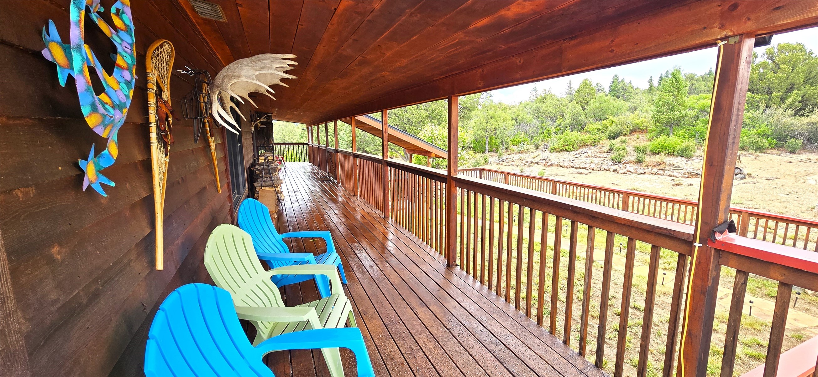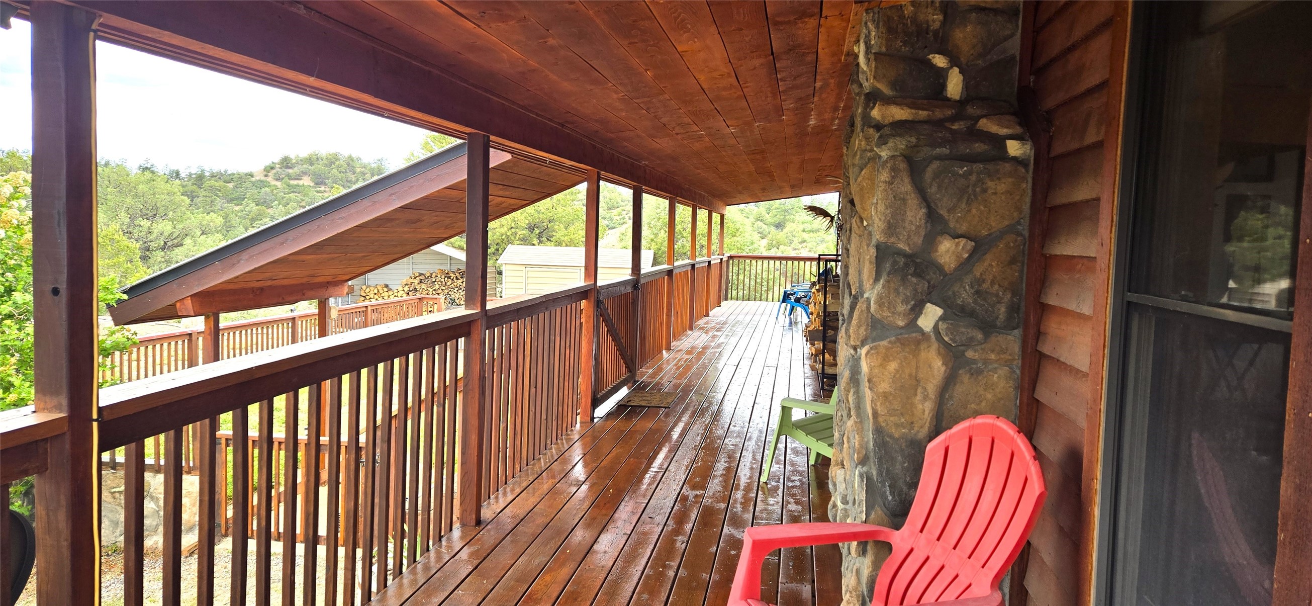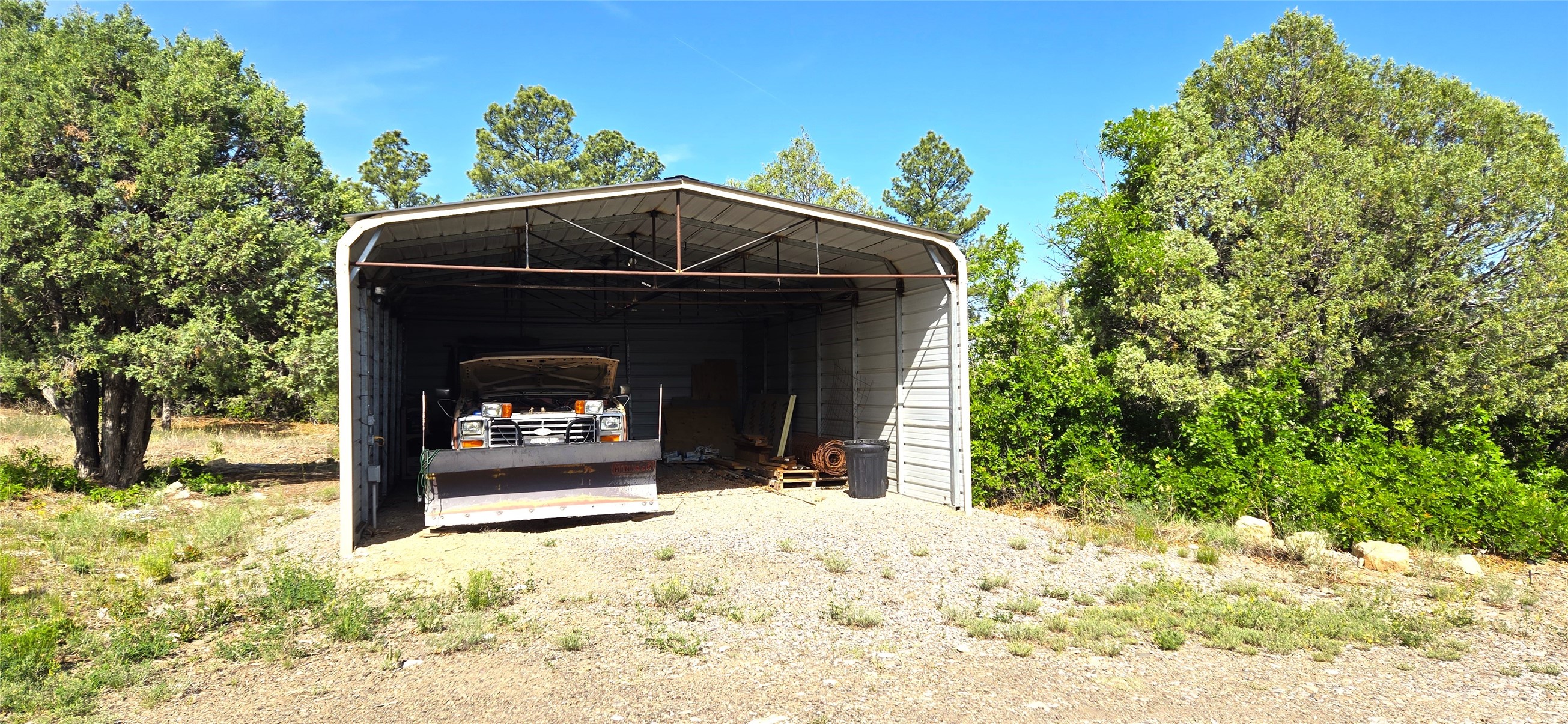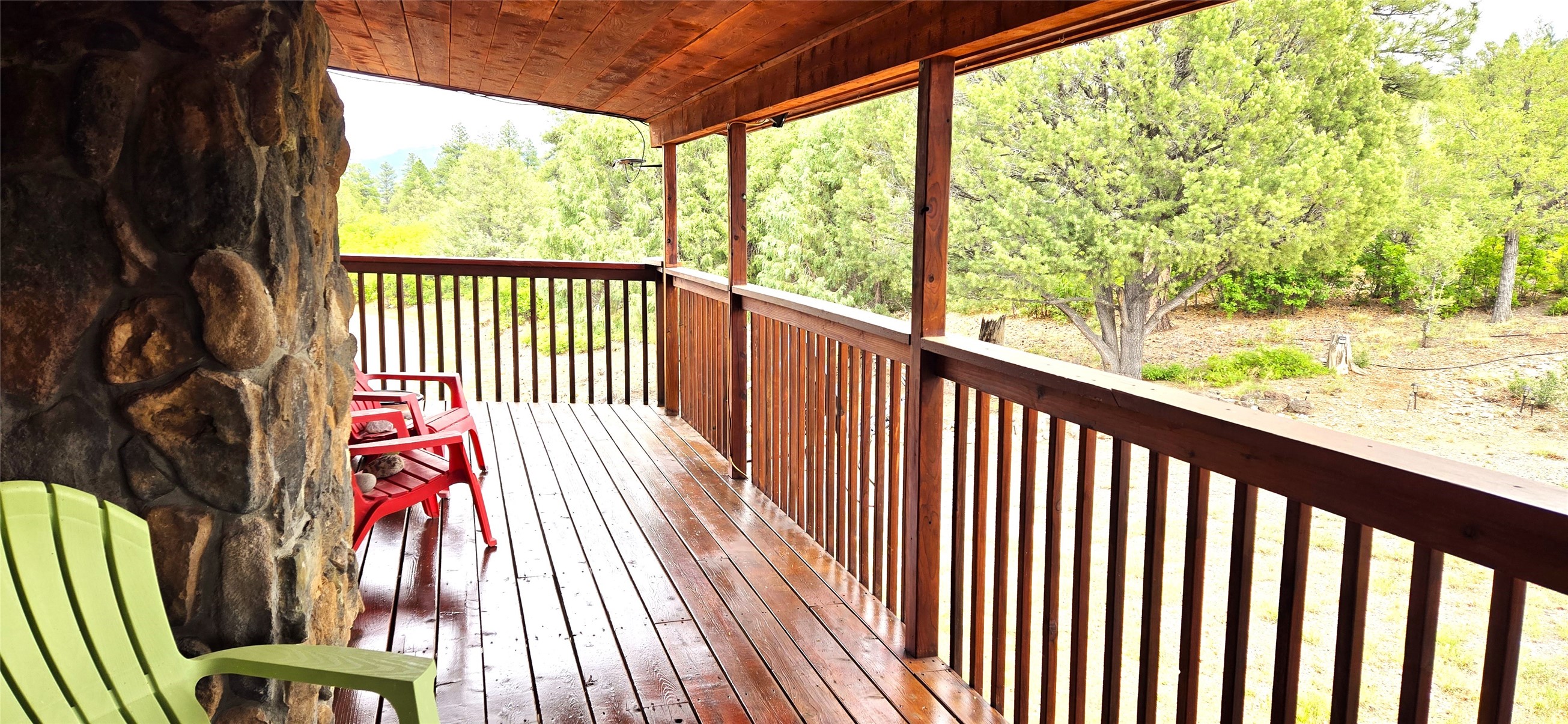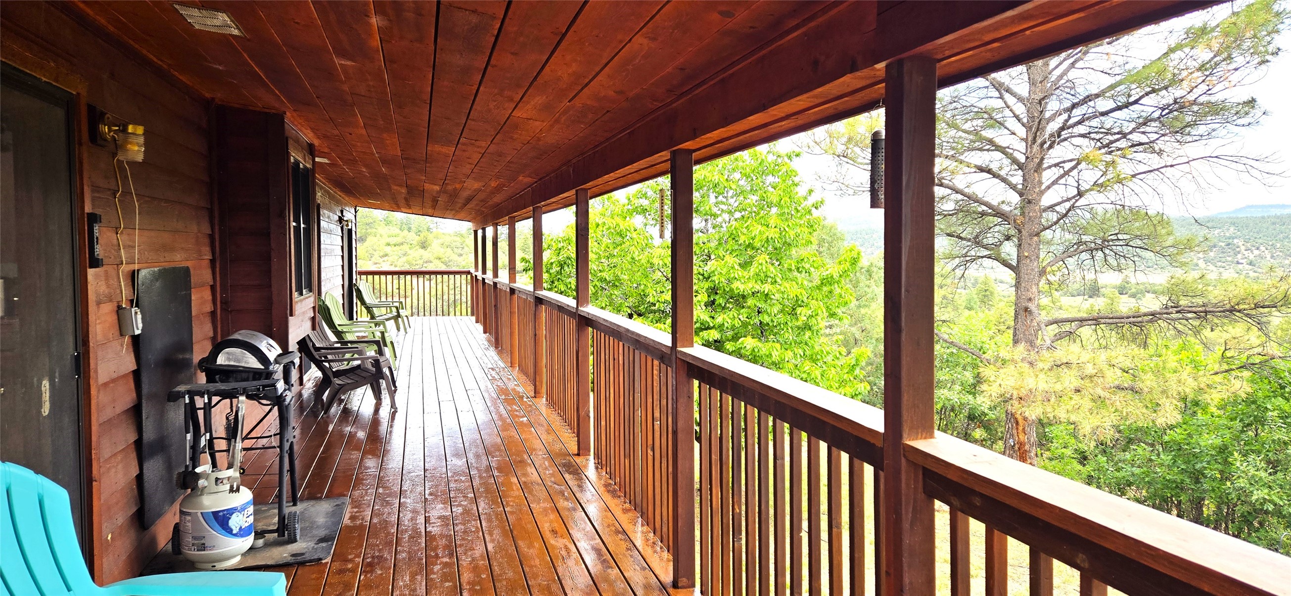 Beautiful well kept mountain home located in the community of Rutheron NM, just minutes from Heron Lake State Park. Vista De Heron S/D Tract 3, cont. 12.81 acres +/- with 787 ft of direct road frontage on Highway 95. Also a Private drive from Vista De Heron, Camino Thomas Drive.The Cabin is a split two level with a total enclosed area of 3,374 sq. ft. Top level living space is 1,687 sqft. with 3 Bedrooms; two full baths; walk in Master Closet; Laundry Room; open Kitchen /Dining with cook preparation island; Living Room with fire place; complete wrap around covered balcony porch. Lower level 1 Bedroom; Walk-in Clothes Closet; one full bath; Den with stove fire place; LinenCloset; Hall; Utility with HVAC, Hot Water Heater, Water Softener, Storage, ADT Security Hub,back-up generator transfer switch; two car extra-large garage 756 sqftprovides extra space for storage and work shop. Lower level has a full side walk-out, with the opposite side recessed into hill. Full gated courtyard at main entry. The Lower level has been designed to be modified into a separate living area with it's own entrance. The home is heated with a propane forced air unit along with refrigerated air for those warm days. 1000 gallon propane tank, culligan water softner with an RO filtration unit. The upper fire place is a Heatilator and the lower floor has a cast iron wood stove.Out buildings to include a 10x20 metal utility building for yard tools. A 20x20 open garage covered for toys or vehicles and a 25x30 open garage covered for more vehicle or toy storage.Very clean and well taken care of home.
