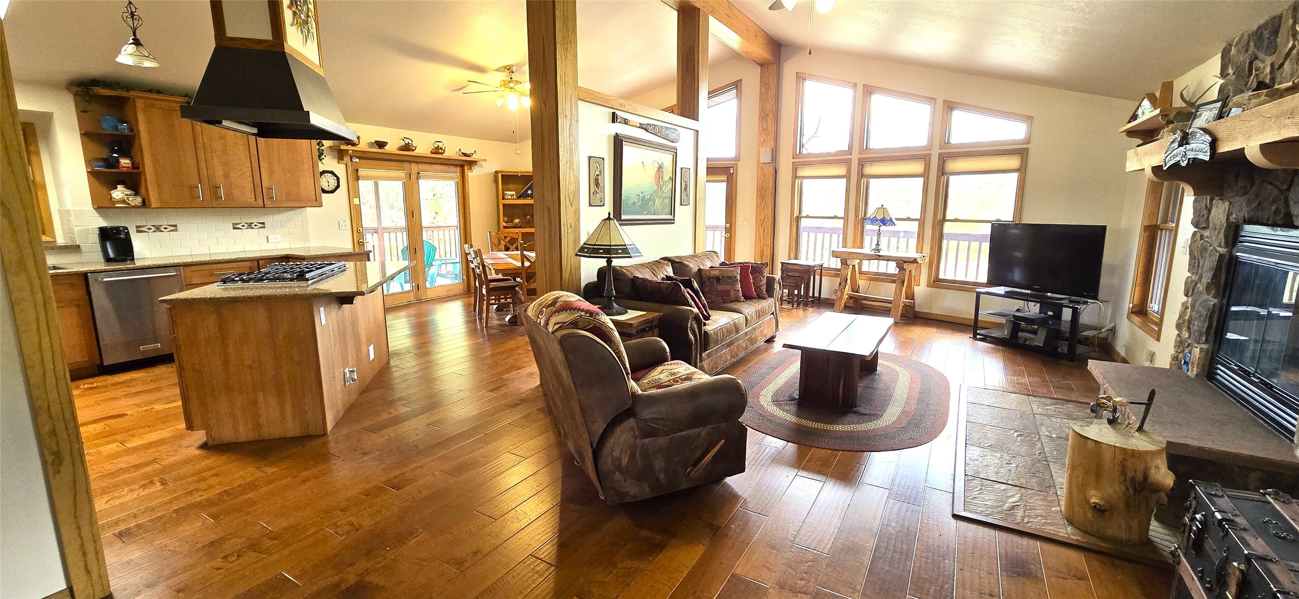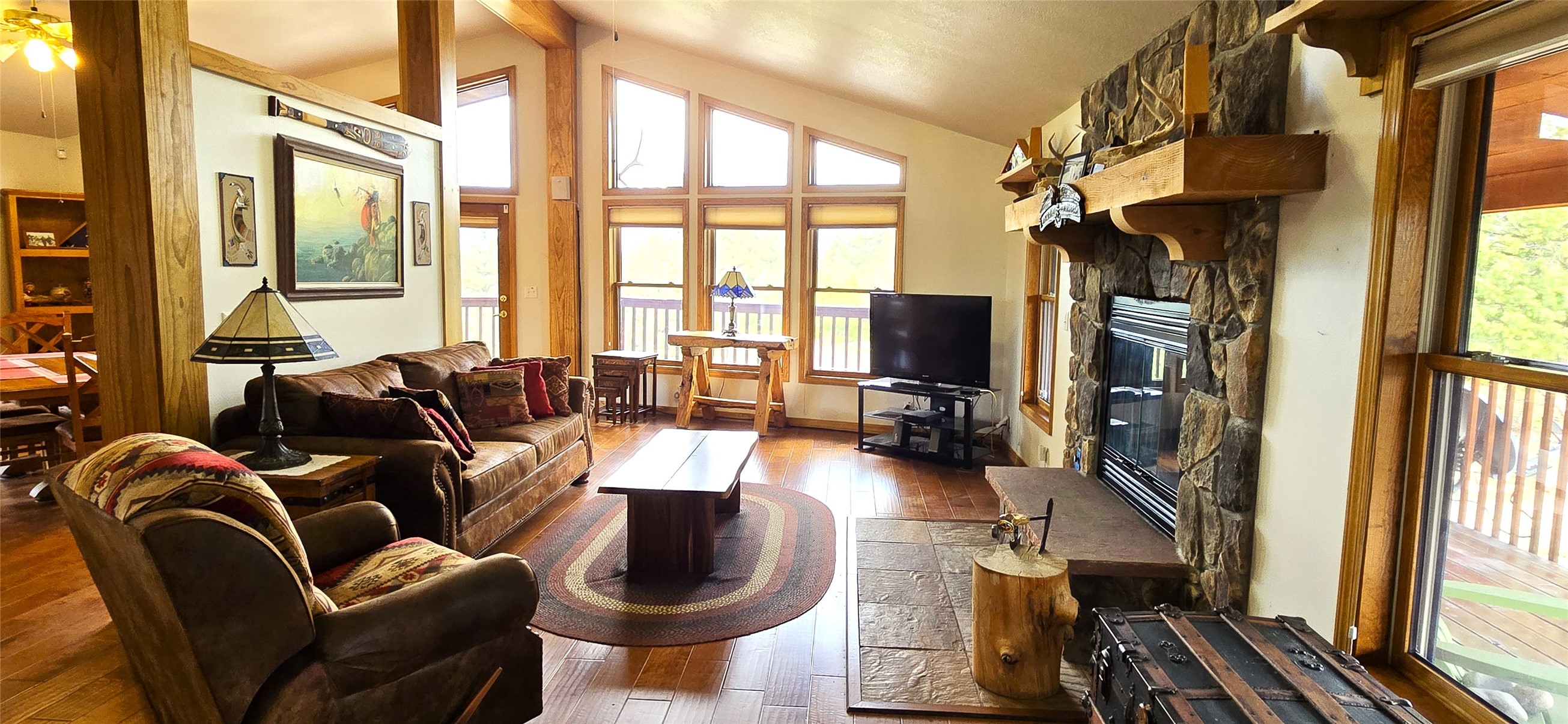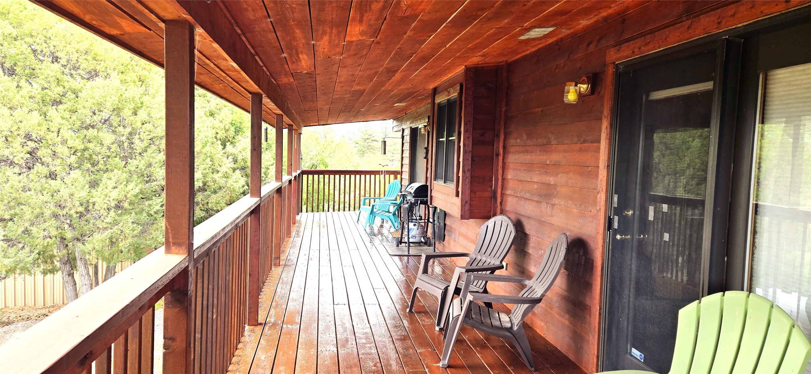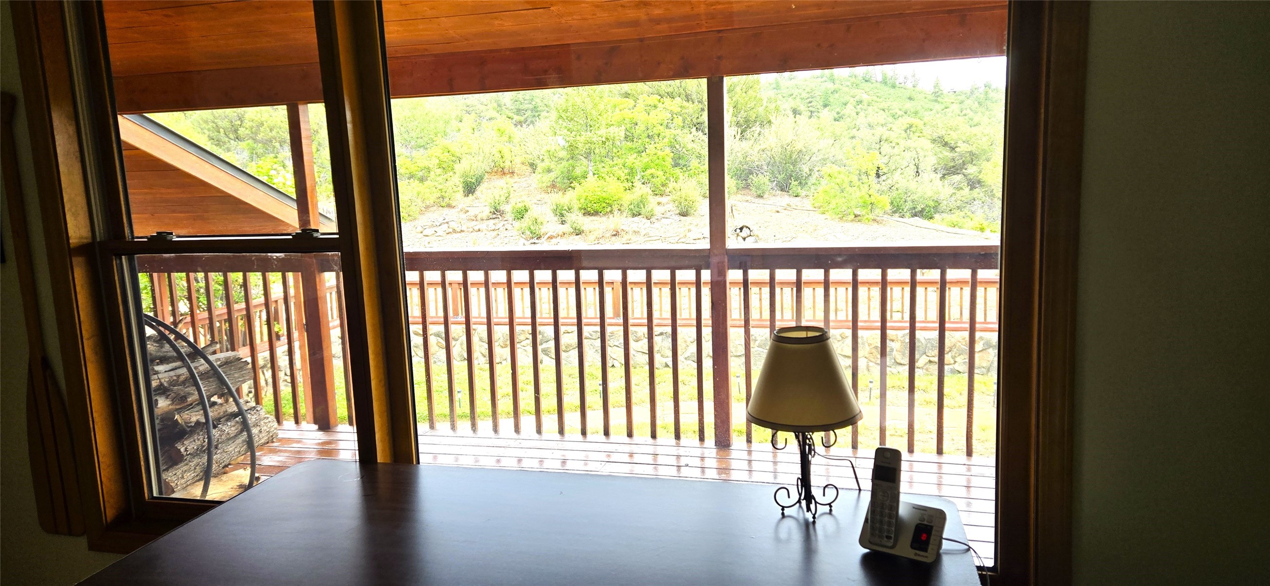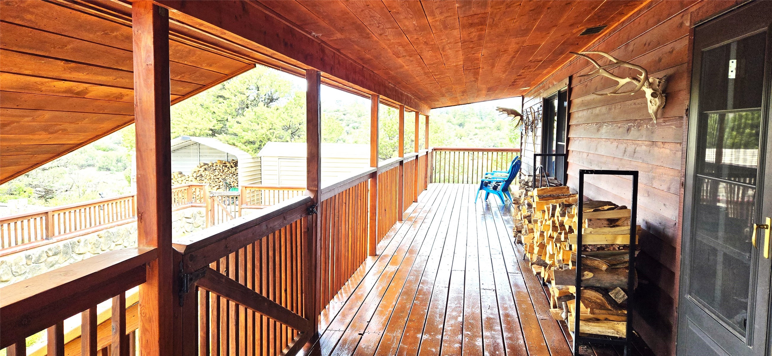 Beautiful well kept mountain home located in the community of Rutheron NM, just minutes from Heron Lake State Park. Vista De Heron S/D Tract 3, cont. 12.81 acres +/- with 787 ft of direct road frontage on Highway 95. Also a Private drive from Vista De Heron, Camino Thomas Drive.The Cabin is a split two level with a total enclosed area of 3,374 sq. ft. Top level living space is 1,687 sqft. with 3 Bedrooms; two full baths; walk in Master Closet; Laundry Room; open Kitchen /Dining with cook preparation island; Living Room with fire place; complete wrap around covered balcony porch. Lower level 1 Bedroom; Walk-in Clothes Closet; one full bath; Den with stove fire place; LinenCloset; Hall; Utility with HVAC, Hot Water Heater, Water Softener, Storage, ADT Security Hub,back-up generator transfer switch; two car extra-large garage 756 sqftprovides extra space for storage and work shop. Lower level has a full side walk-out, with the opposite side recessed into hill. Full gated courtyard at main entry. The Lower level has been designed to be modified into a separate living area with it's own entrance. The home is heated with a propane forced air unit along with refrigerated air for those warm days. 1000 gallon propane tank, culligan water softner with an RO filtration unit. The upper fire place is a Heatilator and the lower floor has a cast iron wood stove.Out buildings to include a 10x20 metal utility building for yard tools. A 20x20 open garage covered for toys or vehicles and a 25x30 open garage covered for more vehicle or toy storage.Very clean and well taken care of home.