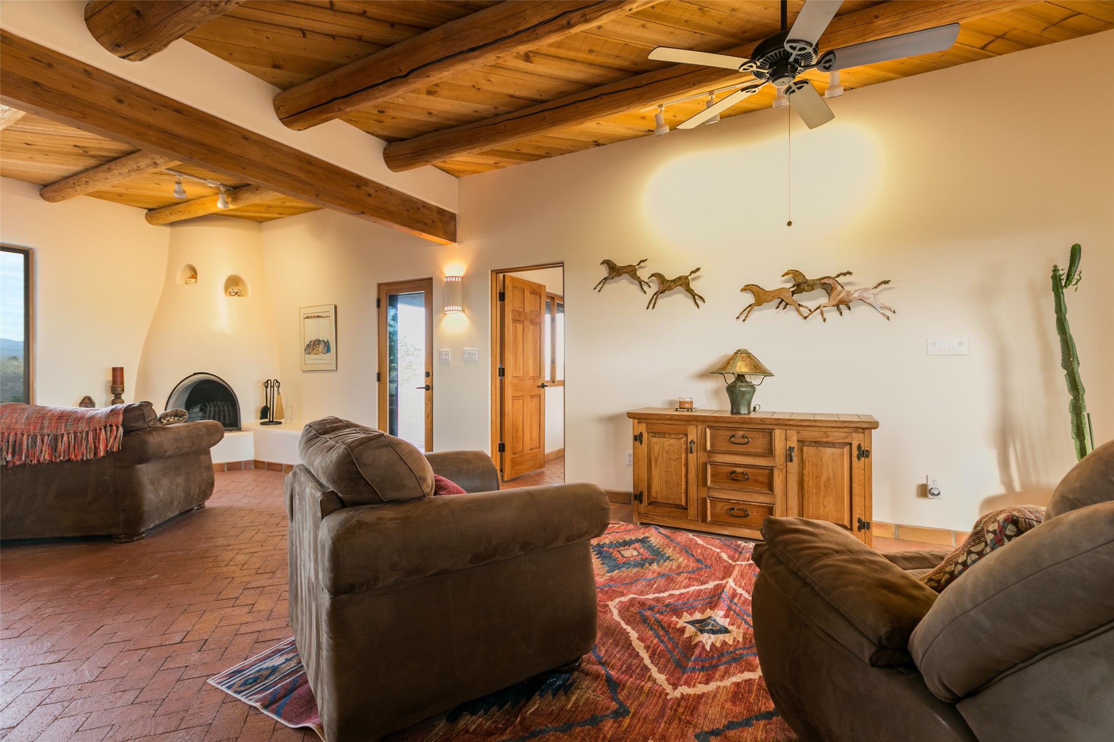 A beautiful 2 bedroom home on 15 plus acres with spectacular 360 degree mountain views. See the sunrise from one patio and the sunset from the other! Established pine and fruit trees and generous set-back from the road add to privacy in this access-controlled gated community. Inside, the wood ceilings, brick floor and wall detailing compliment the incredible views through the huge windows and French doors. Kitchen appliances are brand new. The HOA allows for a barn and fenced in area to keep your horses. Trails that weave through the neighborhood invite you to hop on your horse and explore.The house was built in 1994 and is on a well with good flow volume and own septic system. City gas and electrical. Inspection report is available. Price is taking necessary improvements into consideration.