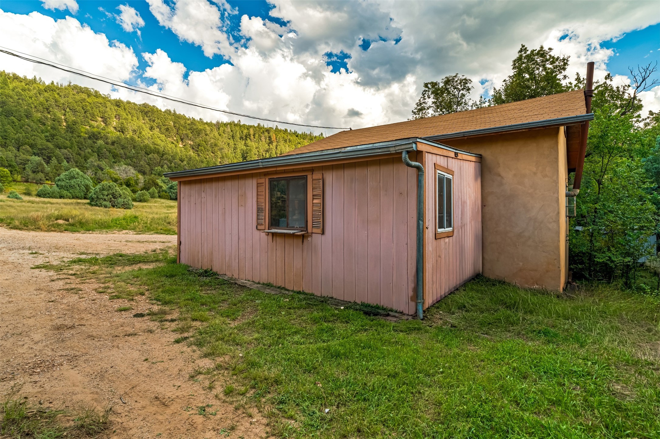 ONE OF A KIND Pecos River front property located in the heart of the Pecos Canyon offered for sale for the first time. The rareness of this listing is profound. The land includes several meadows, dramatic rock outcroppings, at least 856 feet of the Pecos River (both sides), excellent solar gain, first class bridge over the river, and sloping treed hillside adjoining the Santa Fe National Forest. Ideal for quality fishing in one of the premiere New Mexico rivers on your own private stretch. The potential for horses or other livestock is profound with ample space for a barn and or corrals. Additionally there is a modest 2 bedroom, 2 bath house with covered portal, sunroom, private well and oversize 2 car garage. For folks seeking a private, quality destination property less than 30 minutes to Santa Fe consider this listing.