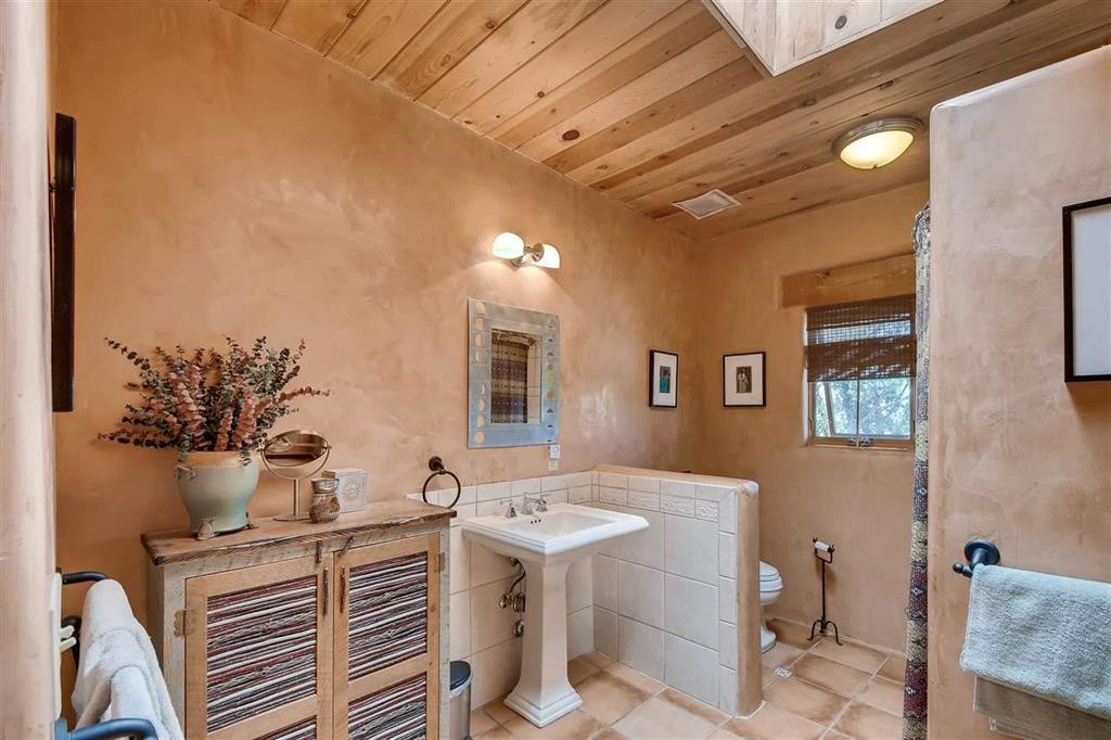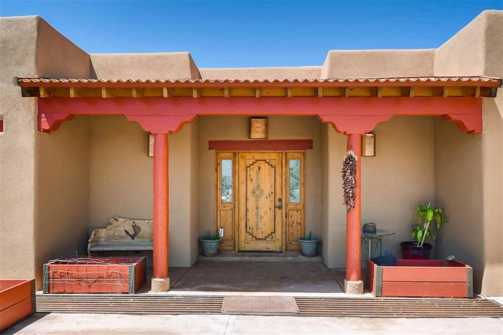 LUSH Pecos River frontage Pueblo style home with irrigated waterfront lands. Your waterfront farmland and farmhouse experience awaits! Acequia rights (19.425 acre feet per year), community water, private well, rain catchment tanks and 400 feet of Riverfront. Rare offering is an understatement. Environmentally friendly home is constructed from RASTRA offering exceptional thermal and acoustic insulation, keeping it cool in the summer and warm in the winter. The interior boasts Venetian plaster, tile floors, vigas, classic nichos, coved ceilings, cooks kitchen with large island and stainless steel appliances. With 3 bedrooms and 2 full baths, offering comfortable living.