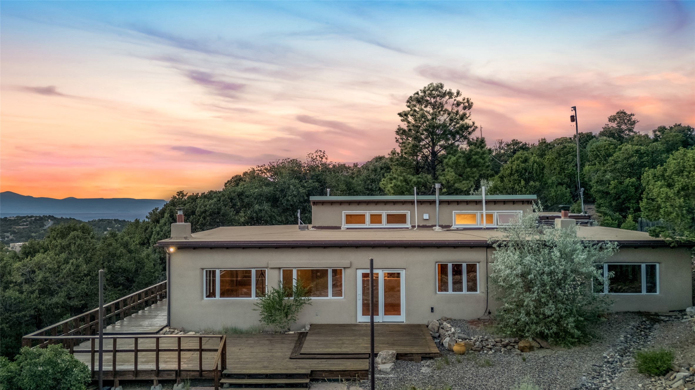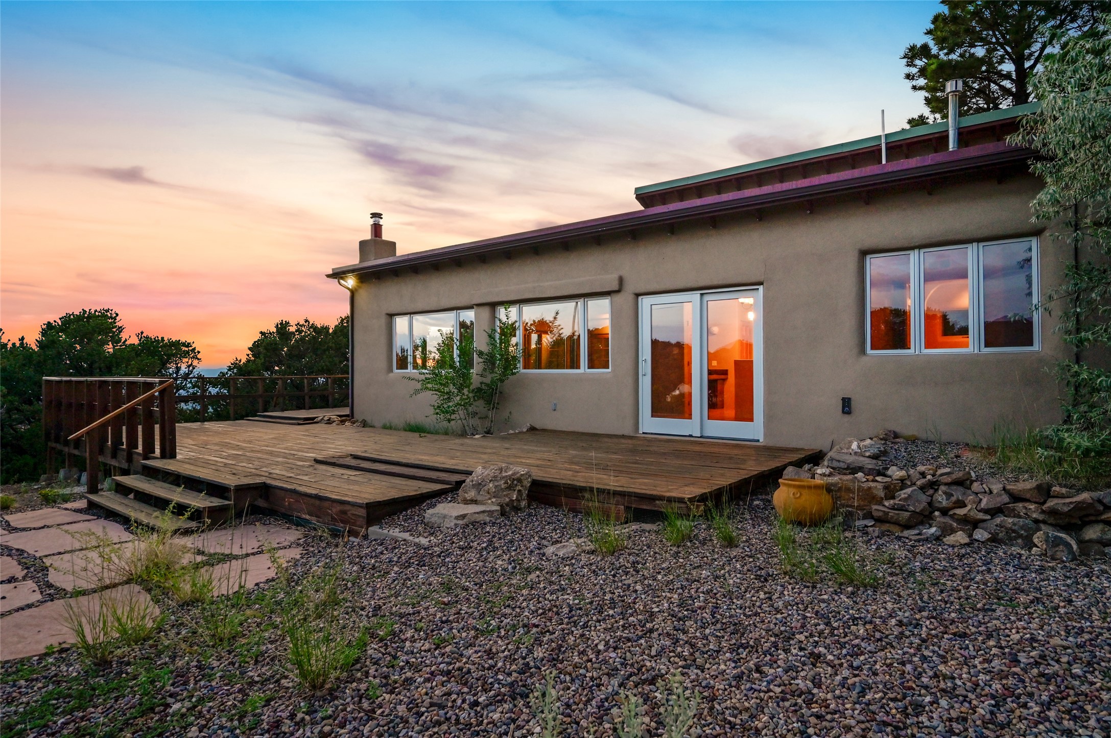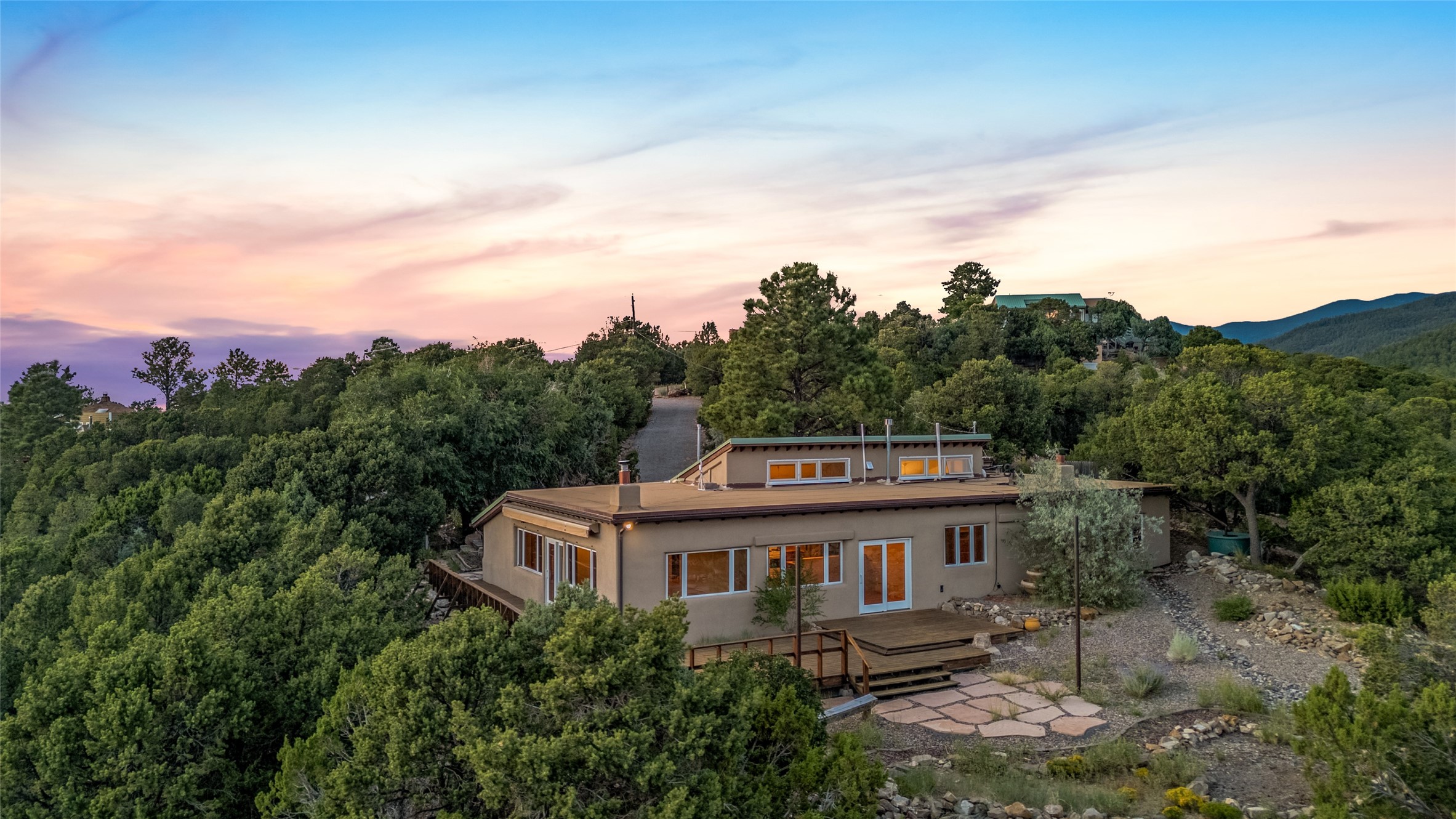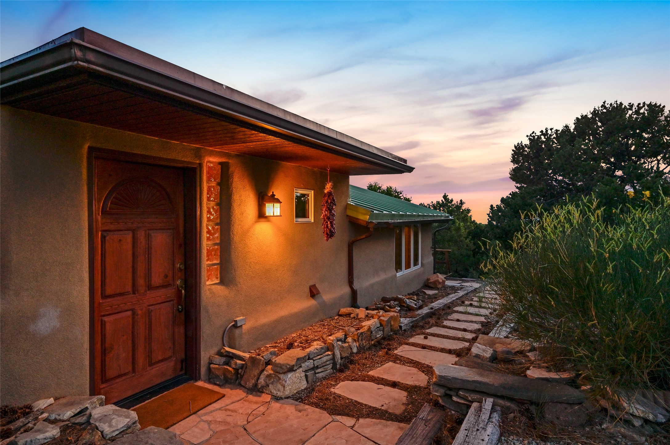 This home has been a successful rental property for many years and also offers an excellent opportunity for a long-term residence. Nestled among the pions with sweeping views of the valley and Sangre de Cristo Mountains, it provides a rare blend of privacy and convenience--just 10 minutes from the Plaza yet peacefully removed.Inside, custom fireplaces and quality finishes bring warmth and elegance throughout. The main residence connects seamlessly to an attached casita, ideal for guests, extended stays, or flexible living. Outdoor spaces invite you to enjoy dramatic light and stunning sunsets, making this home a true Santa Fe retreat.