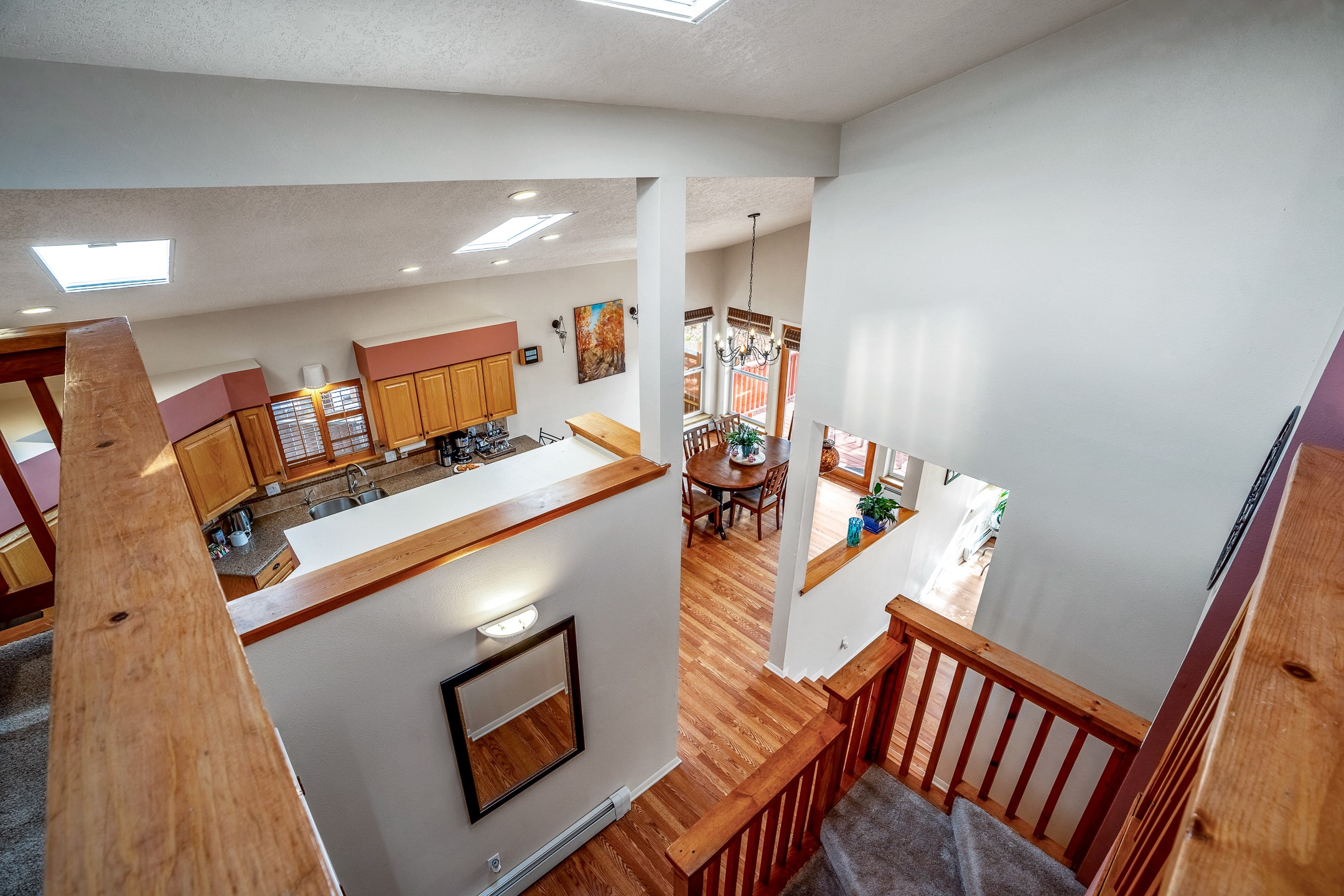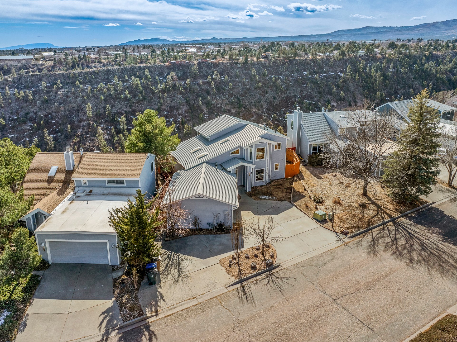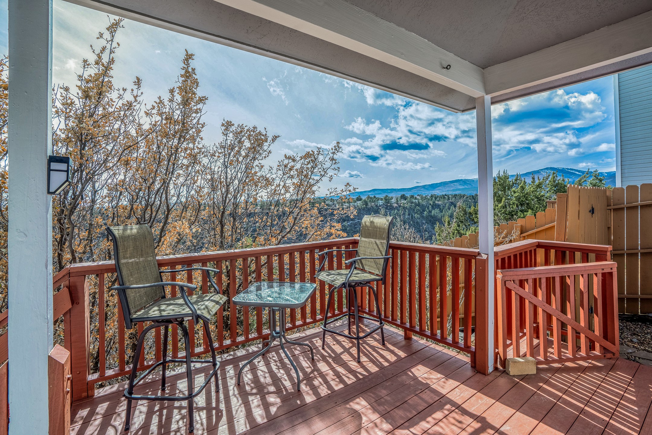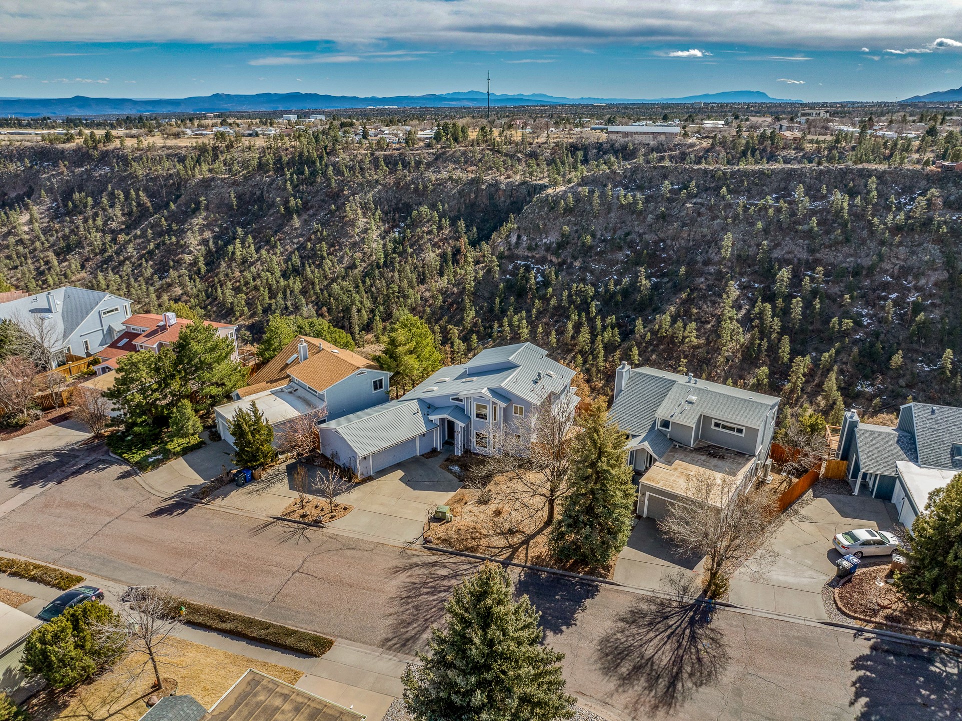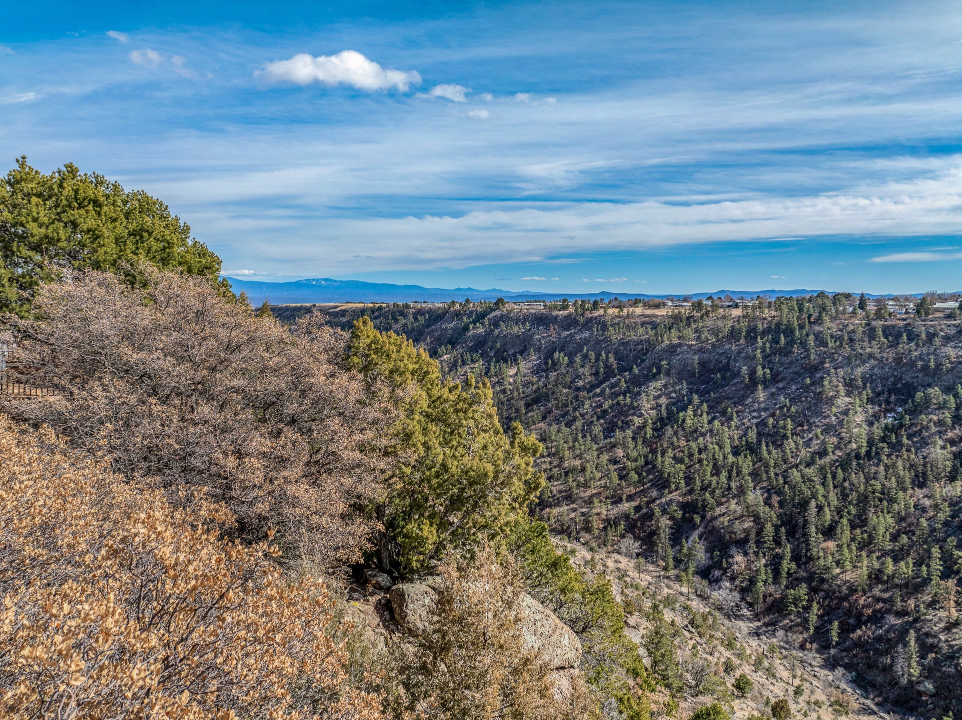 Beautiful Canyon Lot, 3 Bed, 2.5 Bath, Home Office, Lofted Ceilings, 2 Car Garage, Amazing Views, and More! Welcome to 831 Scott Way! The 3-bedroom home is perched on the side of the canyon on North Mesa and offers a great floor plan and phenomenal views of Los Alamos and the Jemez Mountains. As you enter, you are greeted by cathedral ceilings, open living spaces, and an abundance of natural light. The kitchen features generous cabinet space, gas cooking, a prep island, and peninsula bar seating... a perfect set-up for cooking gourmet meals while entertaining guests! The dining area has great views of the canyon and seamlessly flows onto the spacious balcony where you can enjoy sunrise views of the Sangre de Cristos, as well as sunset views of the Jemez Mountains. Adjacent to the dining area is a living room space with south facing windows and a pellet stove to keep you cozy in the winter. Two spacious guest bedrooms and a full bath round out the first floor. At the top of the stairs on the second level, you are greeted by an open loft, perfect for your home office or additional living space, along with a powder room for convenience. The primary suite is situated on the second floor to take advantage of the views, and includes panoramic windows overlooking the canyon, a walk-in closet, and a large bathroom. The bathroom features dual vanities, a shower, and a jetted tub with windows providing a great view while you enjoy a good soak after a long day in the mountains. The garage will accommodate two vehicles and includes built-in shelved storage. This great property will sell quickly, so schedule your showing today so you don't miss out on your chance to own this gem!