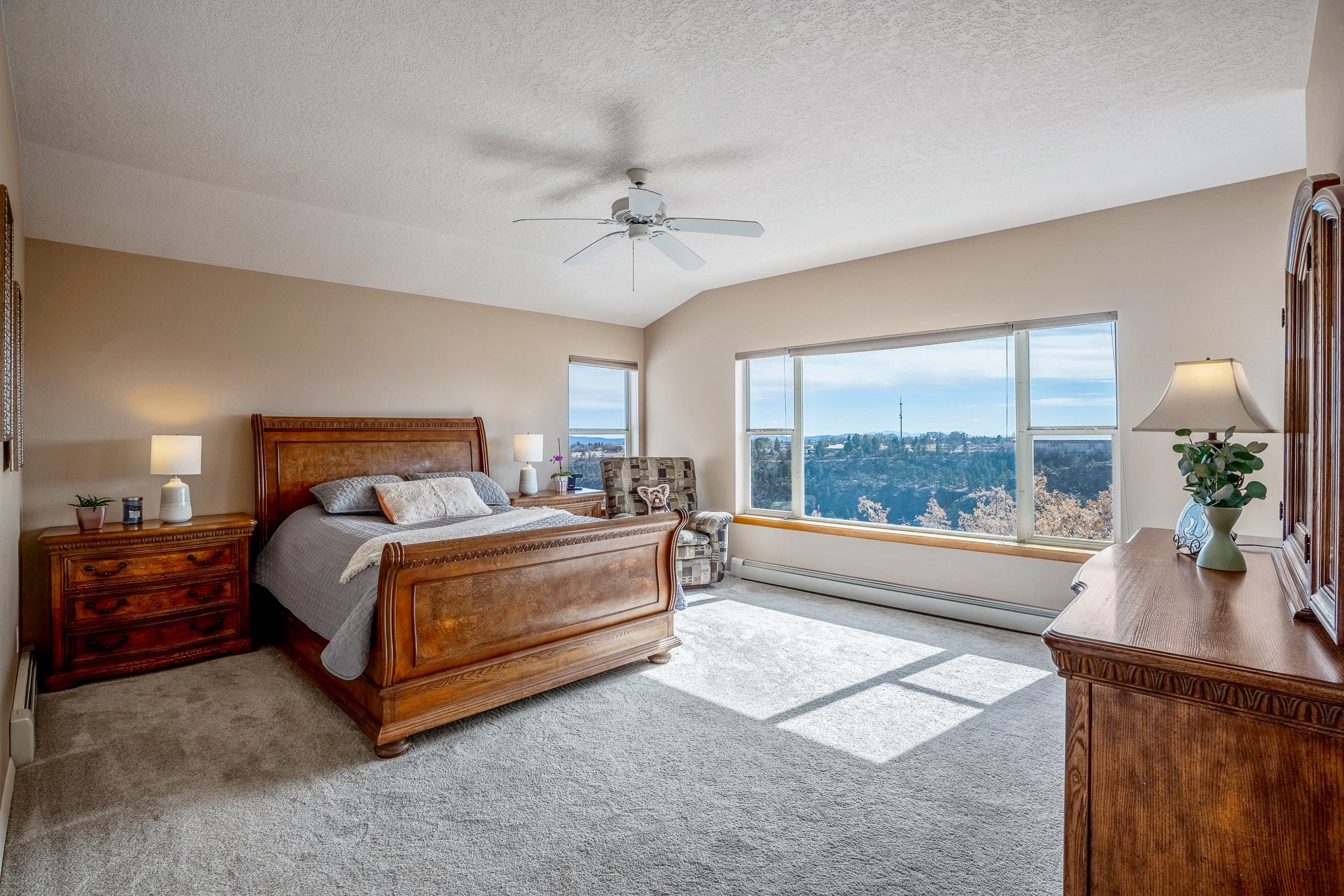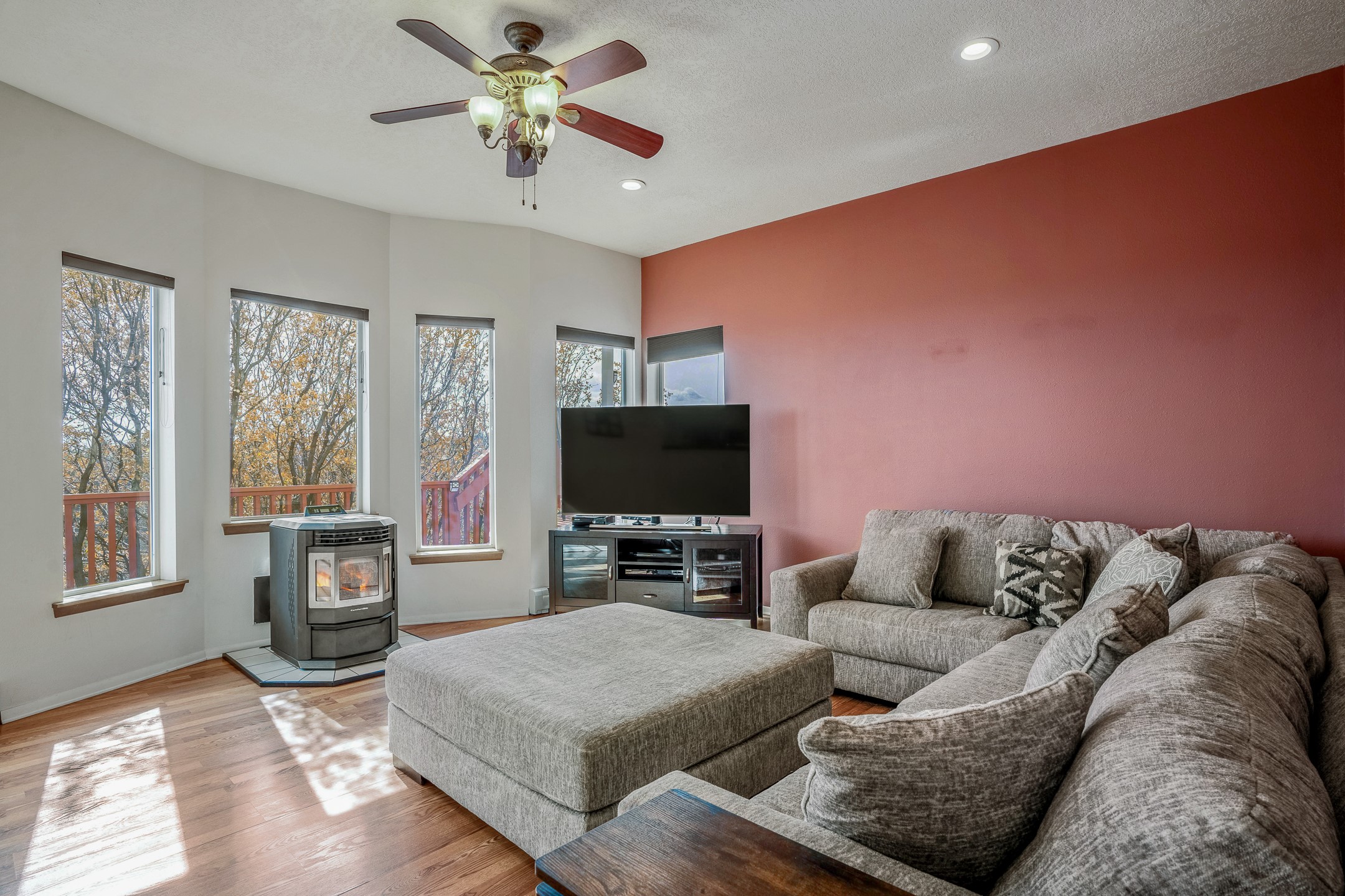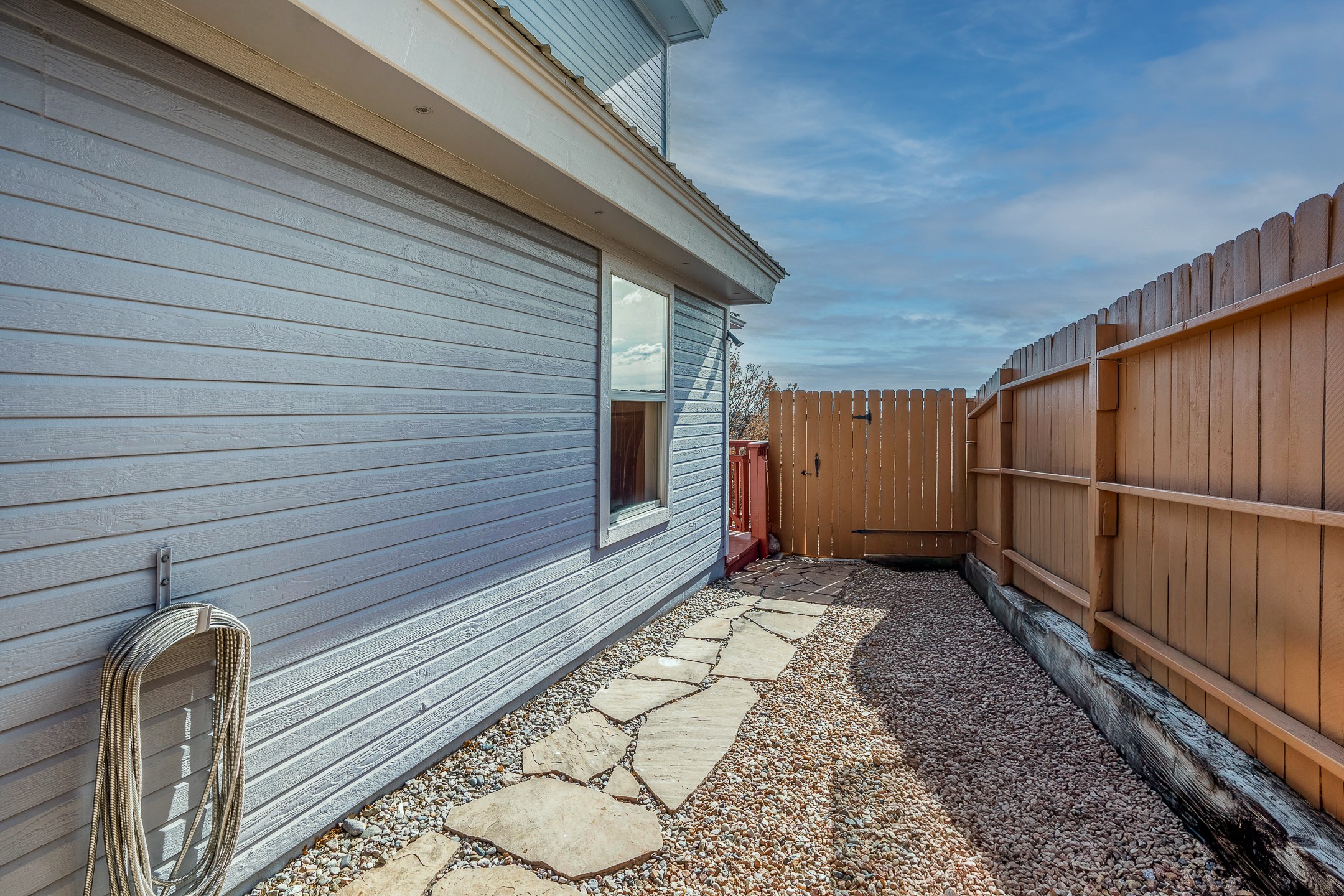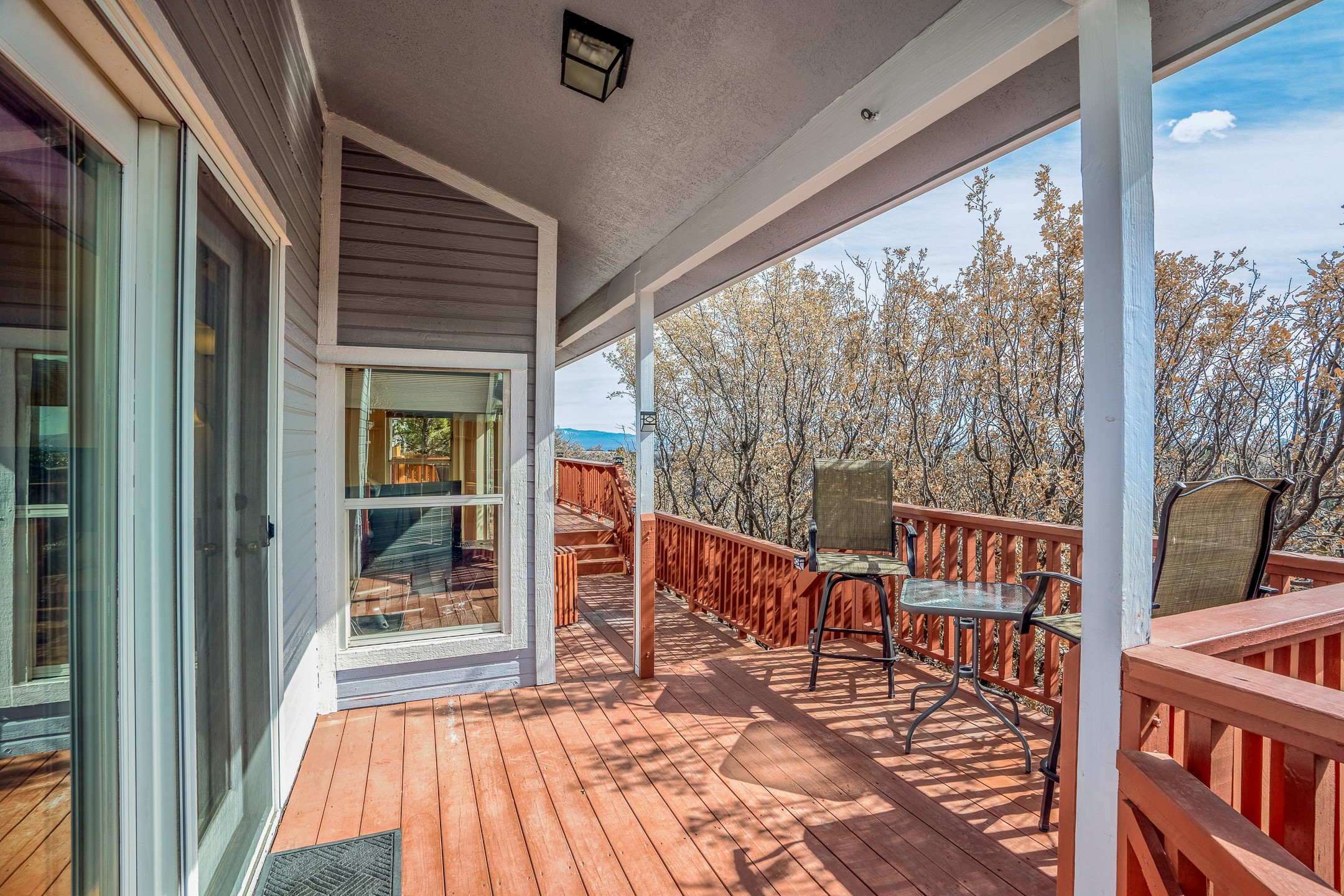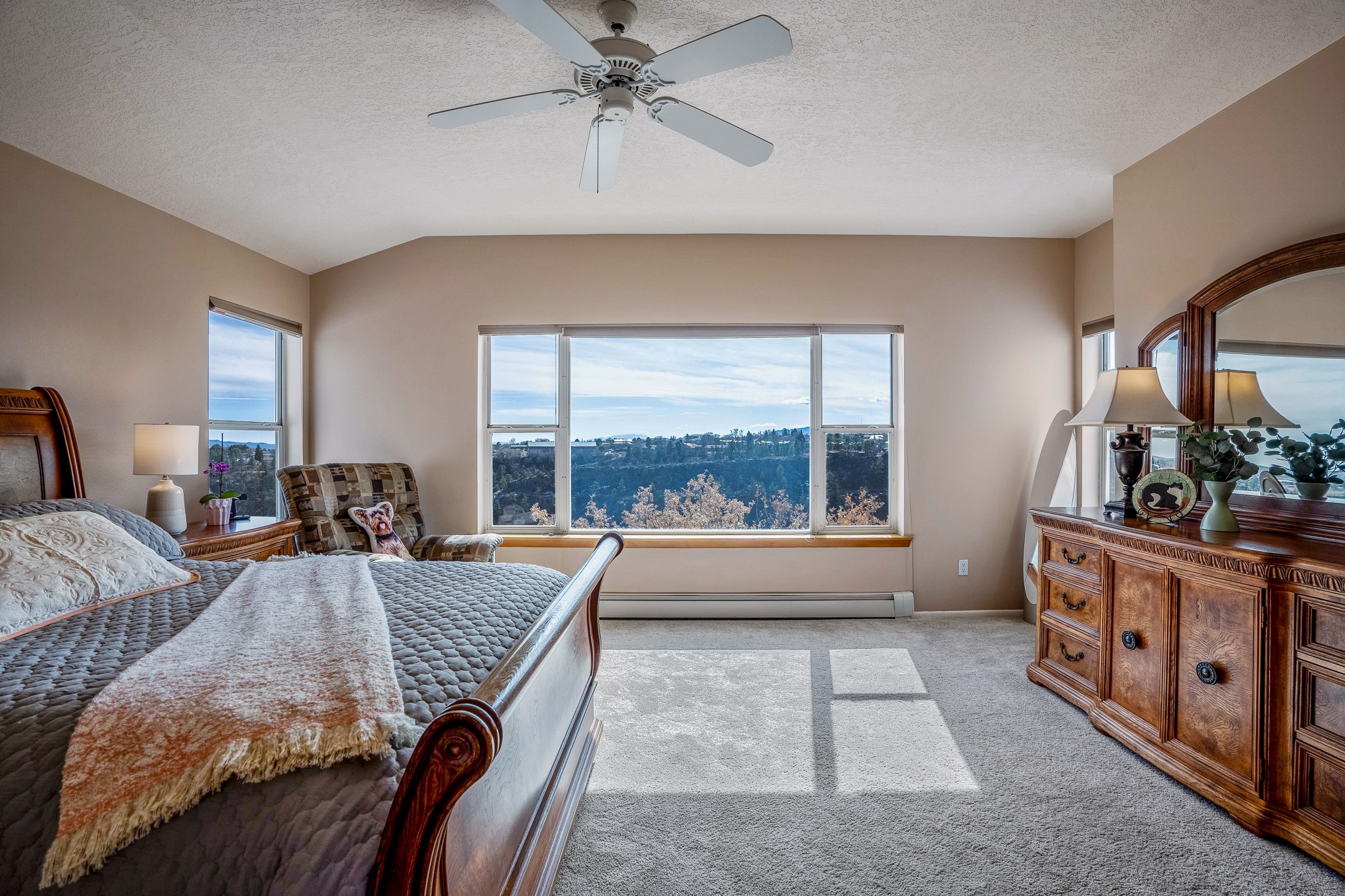 Beautiful Canyon Lot, 3 Bed, 2.5 Bath, Home Office, Lofted Ceilings, 2 Car Garage, Amazing Views, and More! Welcome to 831 Scott Way! The 3-bedroom home is perched on the side of the canyon on North Mesa and offers a great floor plan and phenomenal views of Los Alamos and the Jemez Mountains. As you enter, you are greeted by cathedral ceilings, open living spaces, and an abundance of natural light. The kitchen features generous cabinet space, gas cooking, a prep island, and peninsula bar seating... a perfect set-up for cooking gourmet meals while entertaining guests! The dining area has great views of the canyon and seamlessly flows onto the spacious balcony where you can enjoy sunrise views of the Sangre de Cristos, as well as sunset views of the Jemez Mountains. Adjacent to the dining area is a living room space with south facing windows and a pellet stove to keep you cozy in the winter. Two spacious guest bedrooms and a full bath round out the first floor. At the top of the stairs on the second level, you are greeted by an open loft, perfect for your home office or additional living space, along with a powder room for convenience. The primary suite is situated on the second floor to take advantage of the views, and includes panoramic windows overlooking the canyon, a walk-in closet, and a large bathroom. The bathroom features dual vanities, a shower, and a jetted tub with windows providing a great view while you enjoy a good soak after a long day in the mountains. The garage will accommodate two vehicles and includes built-in shelved storage. This great property will sell quickly, so schedule your showing today so you don't miss out on your chance to own this gem!