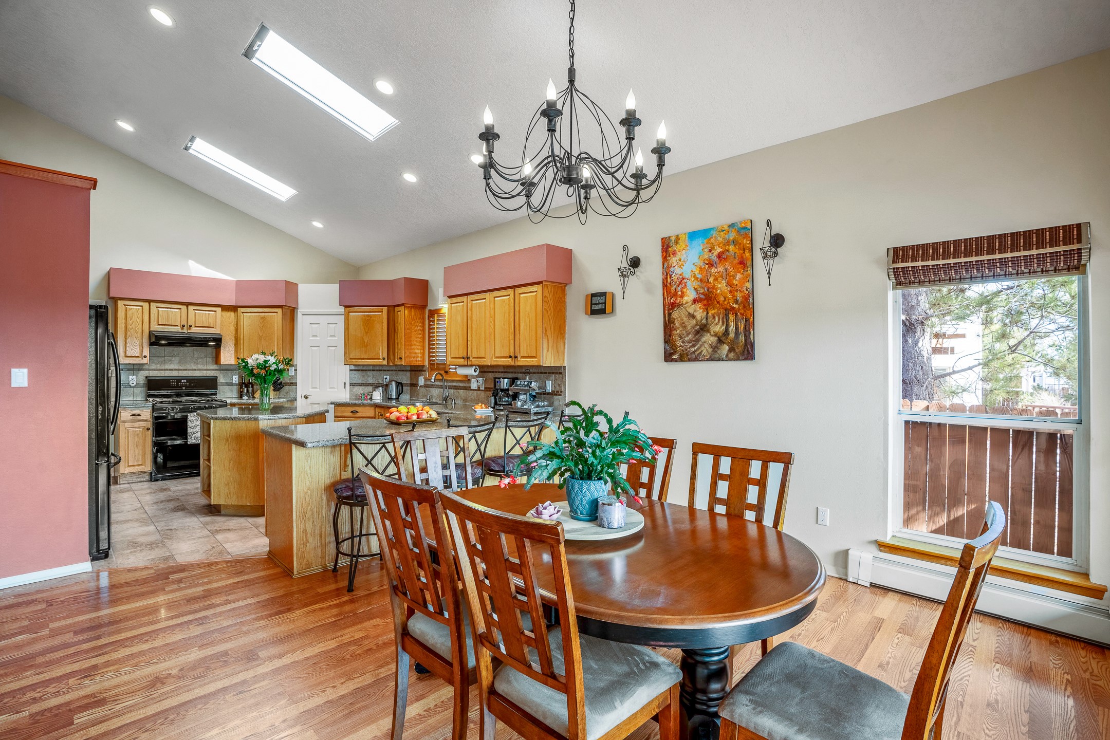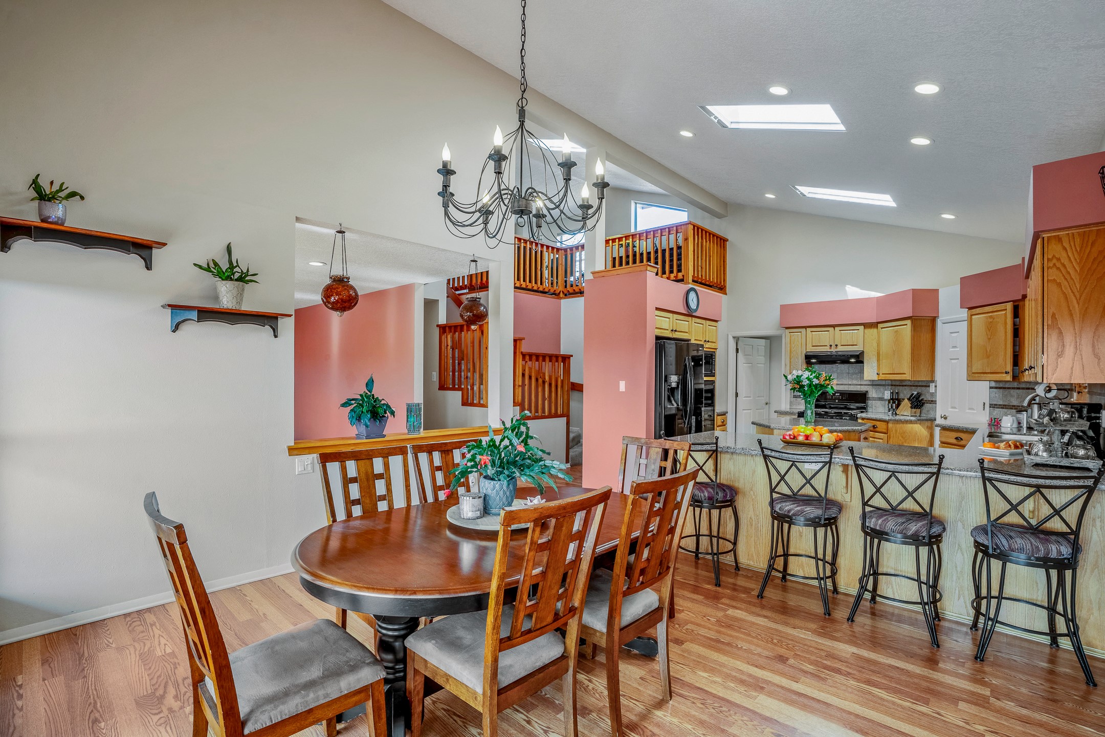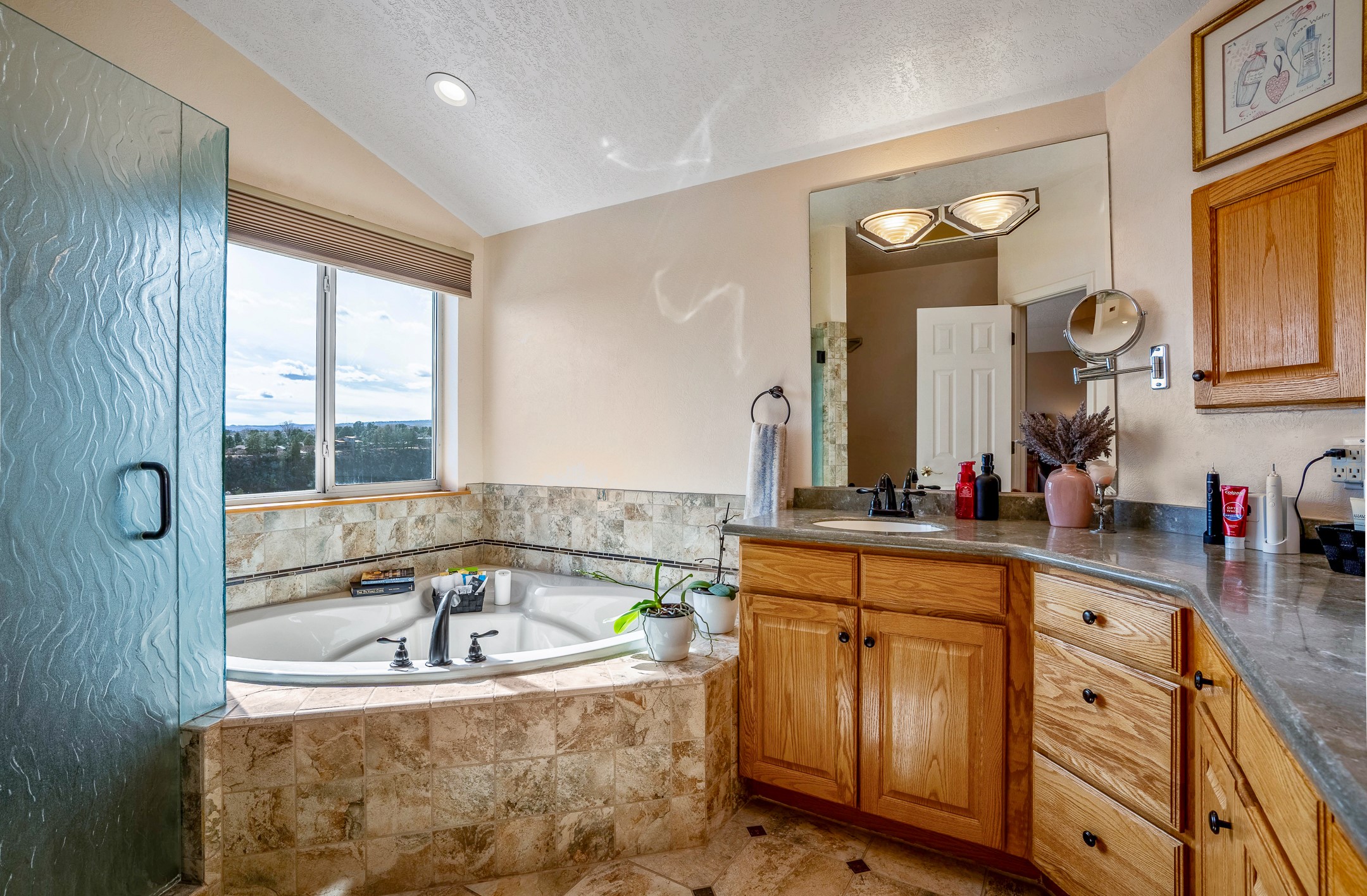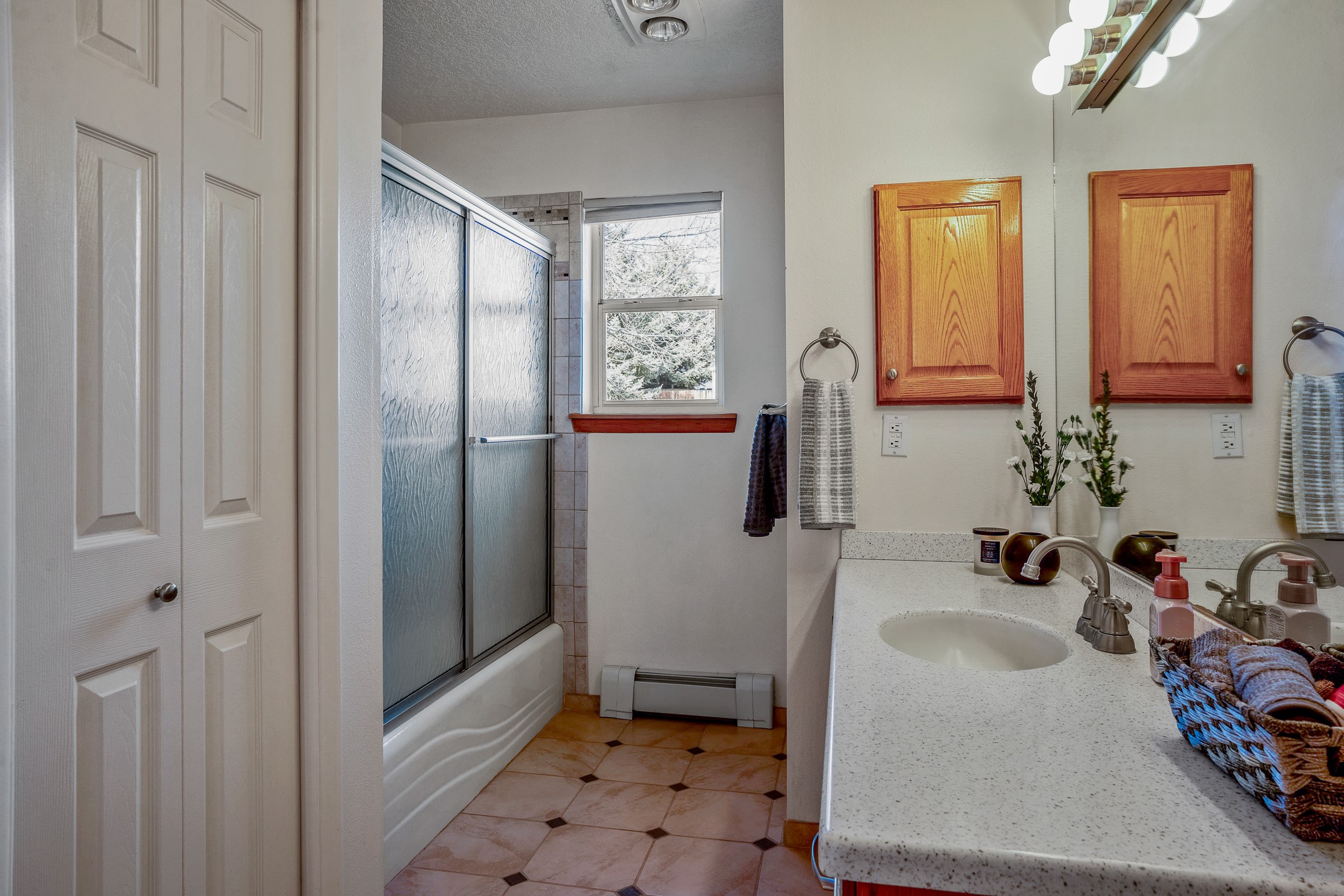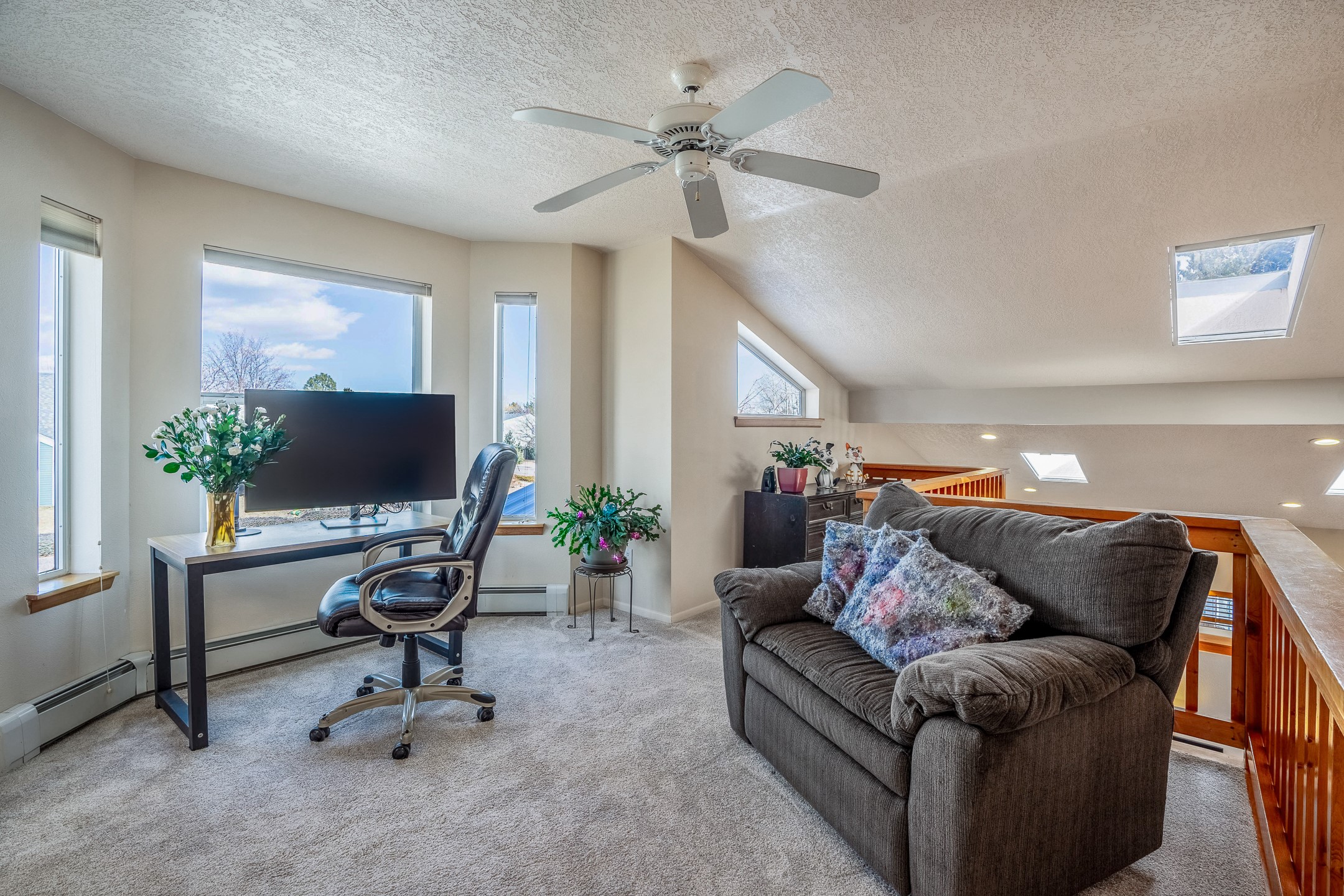 Beautiful Canyon Lot, 3 Bed, 2.5 Bath, Home Office, Lofted Ceilings, 2 Car Garage, Amazing Views, and More! Welcome to 831 Scott Way! The 3-bedroom home is perched on the side of the canyon on North Mesa and offers a great floor plan and phenomenal views of Los Alamos and the Jemez Mountains. As you enter, you are greeted by cathedral ceilings, open living spaces, and an abundance of natural light. The kitchen features generous cabinet space, gas cooking, a prep island, and peninsula bar seating... a perfect set-up for cooking gourmet meals while entertaining guests! The dining area has great views of the canyon and seamlessly flows onto the spacious balcony where you can enjoy sunrise views of the Sangre de Cristos, as well as sunset views of the Jemez Mountains. Adjacent to the dining area is a living room space with south facing windows and a pellet stove to keep you cozy in the winter. Two spacious guest bedrooms and a full bath round out the first floor. At the top of the stairs on the second level, you are greeted by an open loft, perfect for your home office or additional living space, along with a powder room for convenience. The primary suite is situated on the second floor to take advantage of the views, and includes panoramic windows overlooking the canyon, a walk-in closet, and a large bathroom. The bathroom features dual vanities, a shower, and a jetted tub with windows providing a great view while you enjoy a good soak after a long day in the mountains. The garage will accommodate two vehicles and includes built-in shelved storage. This great property will sell quickly, so schedule your showing today so you don't miss out on your chance to own this gem!
