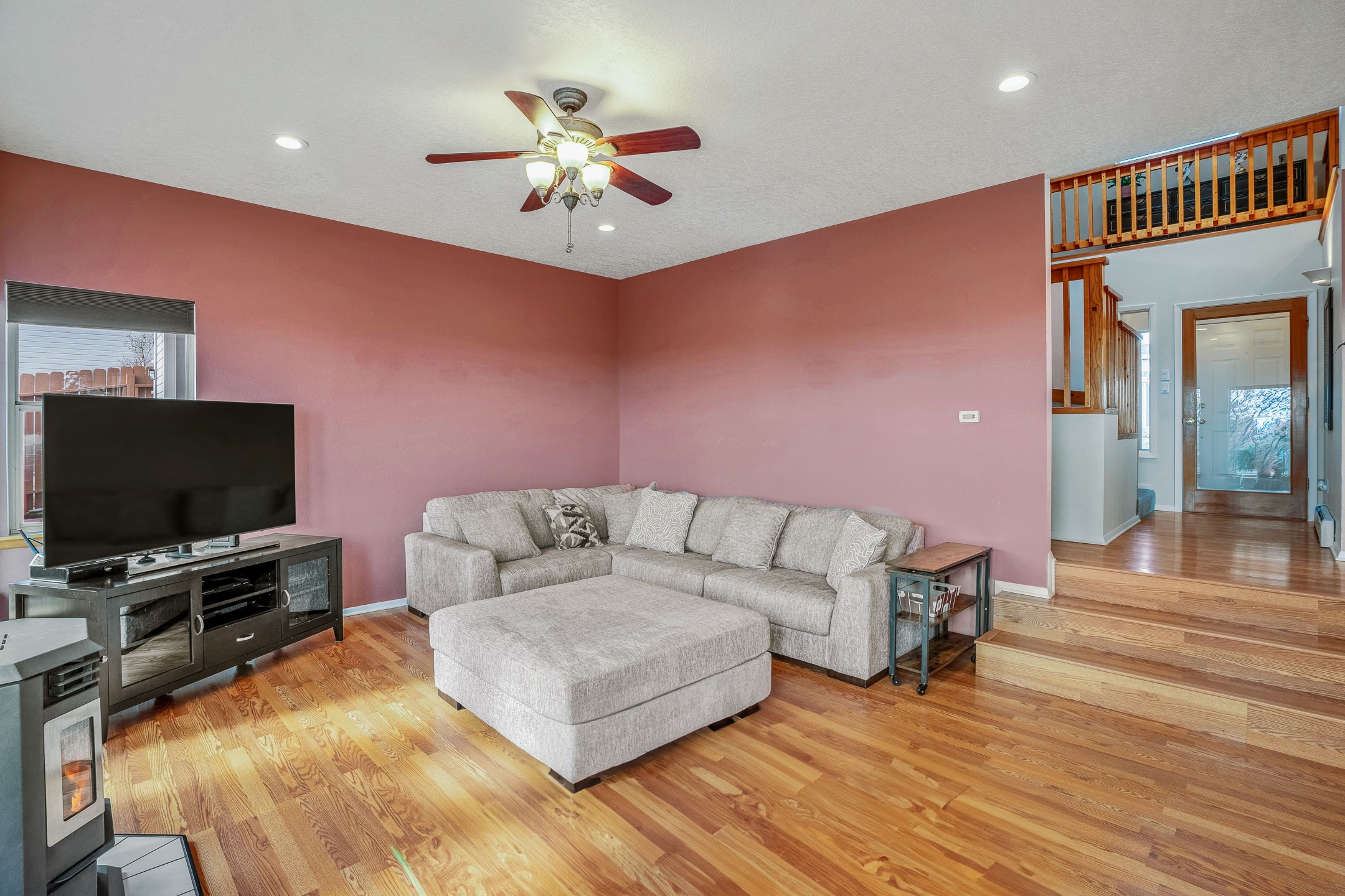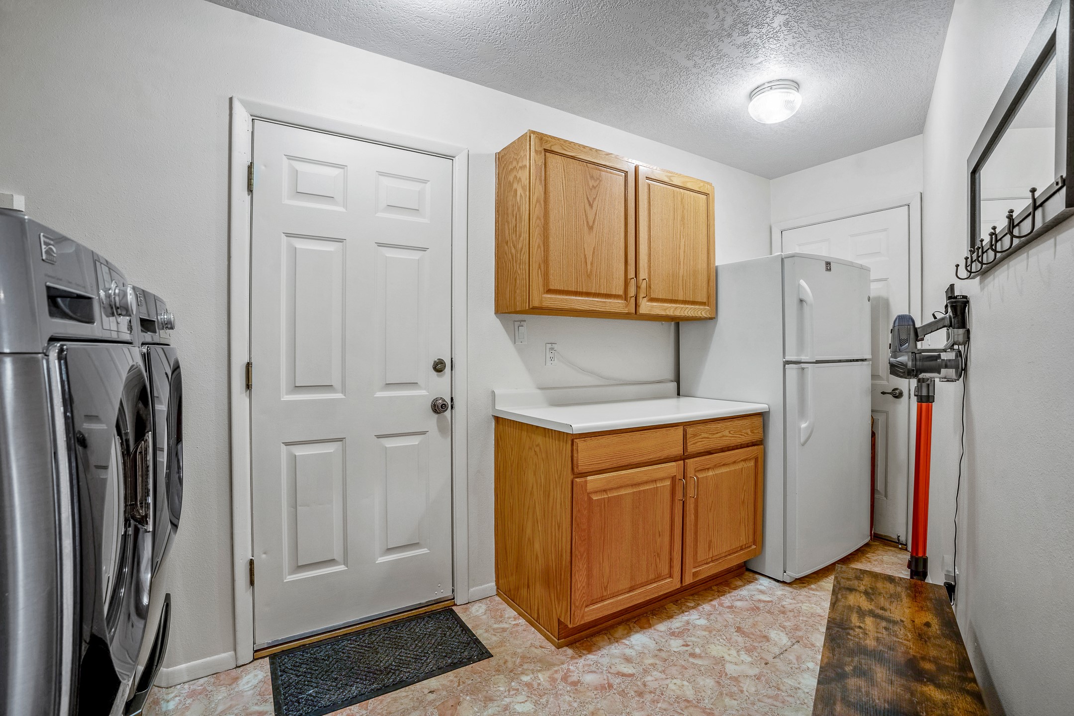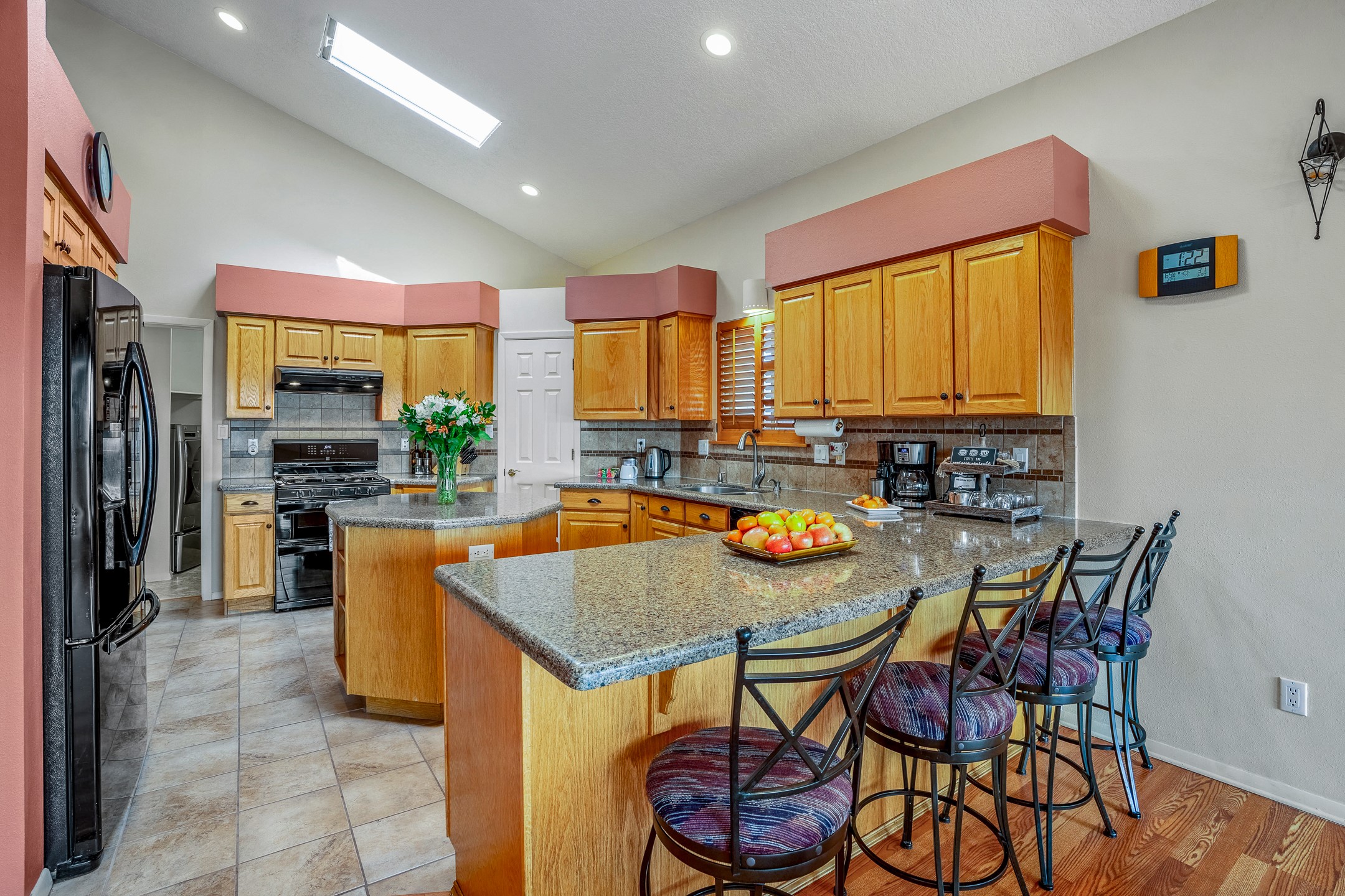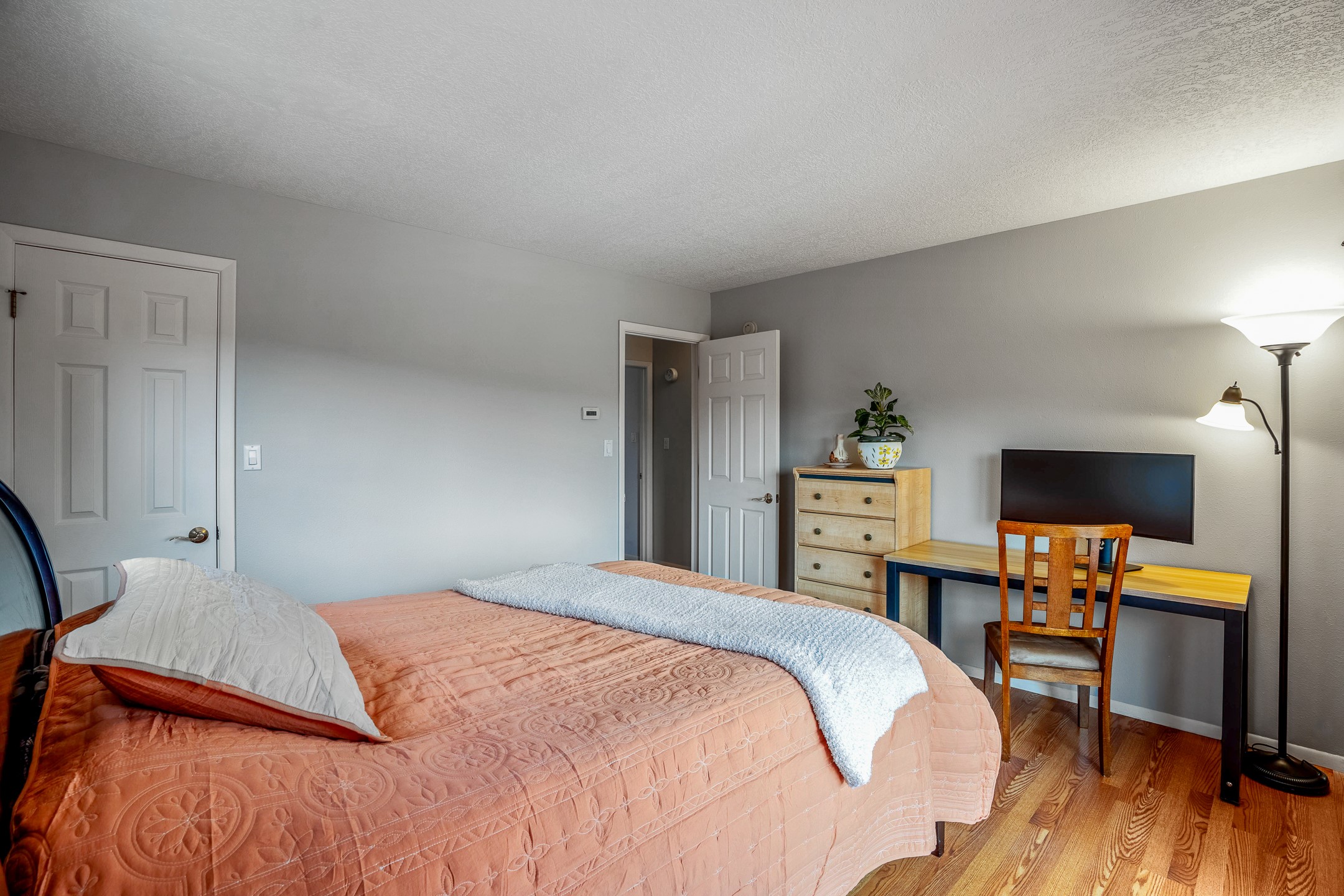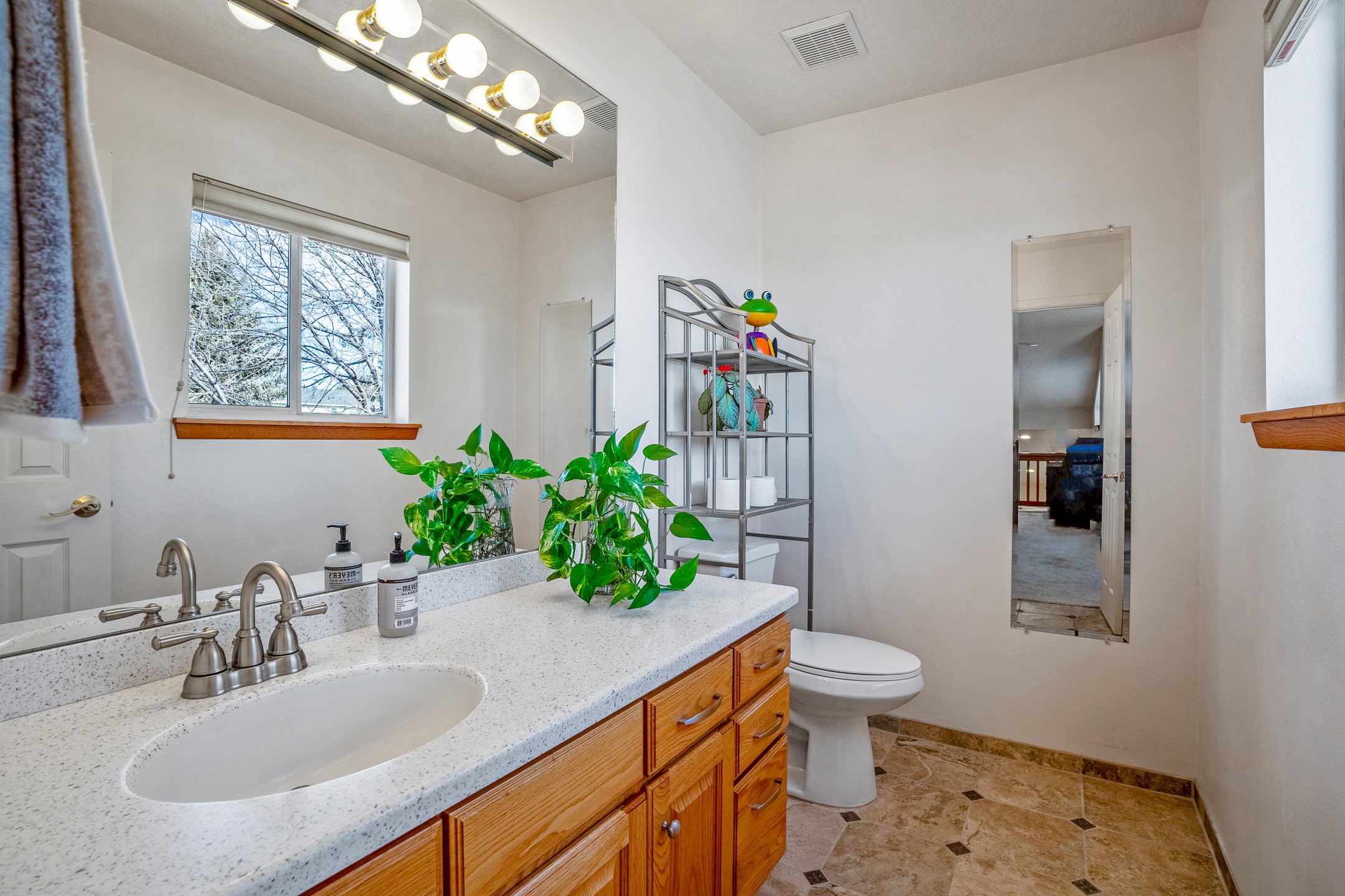 Beautiful Canyon Lot, 3 Bed, 2.5 Bath, Home Office, Lofted Ceilings, 2 Car Garage, Amazing Views, and More! Welcome to 831 Scott Way! The 3-bedroom home is perched on the side of the canyon on North Mesa and offers a great floor plan and phenomenal views of Los Alamos and the Jemez Mountains. As you enter, you are greeted by cathedral ceilings, open living spaces, and an abundance of natural light. The kitchen features generous cabinet space, gas cooking, a prep island, and peninsula bar seating... a perfect set-up for cooking gourmet meals while entertaining guests! The dining area has great views of the canyon and seamlessly flows onto the spacious balcony where you can enjoy sunrise views of the Sangre de Cristos, as well as sunset views of the Jemez Mountains. Adjacent to the dining area is a living room space with south facing windows and a pellet stove to keep you cozy in the winter. Two spacious guest bedrooms and a full bath round out the first floor. At the top of the stairs on the second level, you are greeted by an open loft, perfect for your home office or additional living space, along with a powder room for convenience. The primary suite is situated on the second floor to take advantage of the views, and includes panoramic windows overlooking the canyon, a walk-in closet, and a large bathroom. The bathroom features dual vanities, a shower, and a jetted tub with windows providing a great view while you enjoy a good soak after a long day in the mountains. The garage will accommodate two vehicles and includes built-in shelved storage. This great property will sell quickly, so schedule your showing today so you don't miss out on your chance to own this gem!
