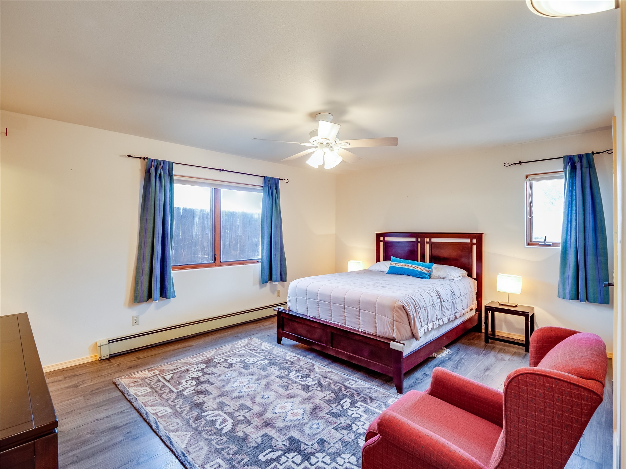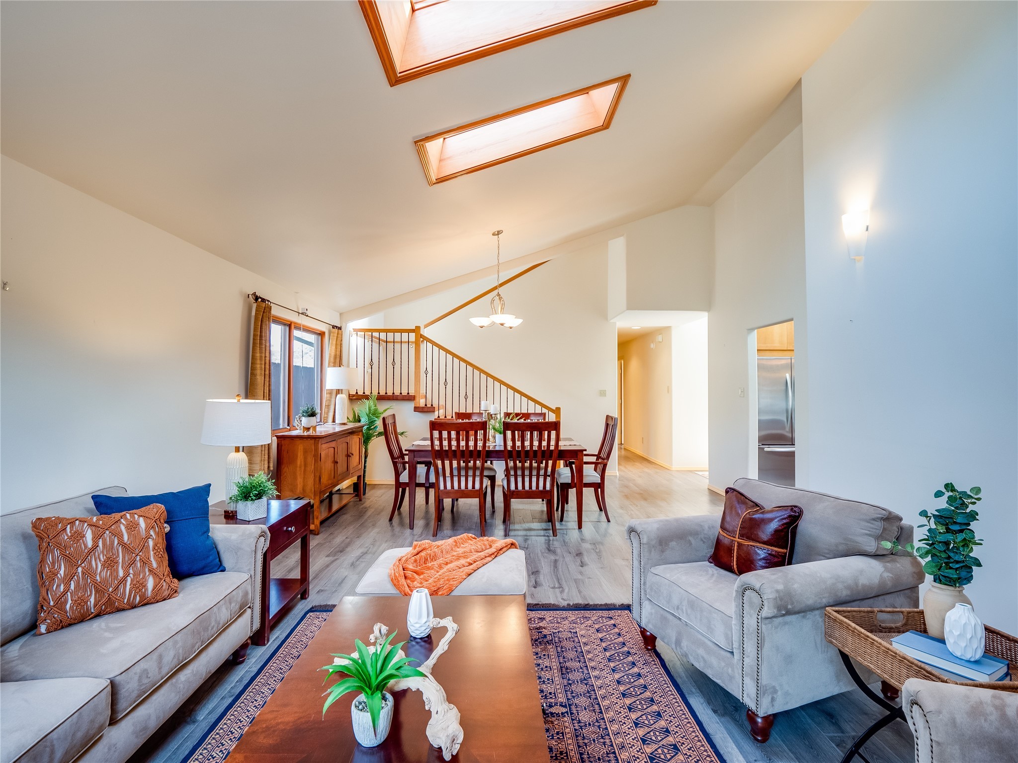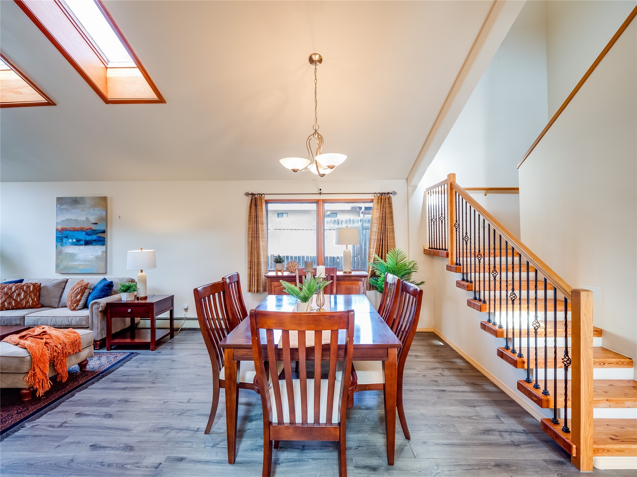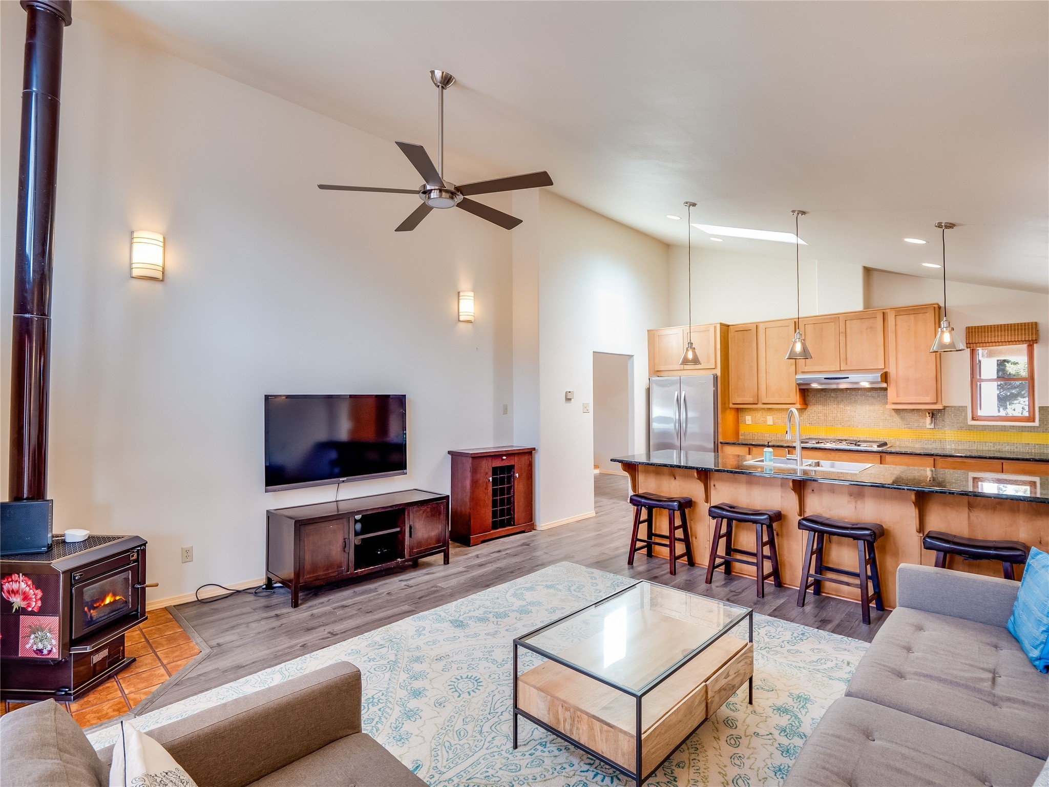 In the heart of North Mesa, this gorgeous two-story home offers the perfect blend of style and comfort. The large, low-maintenance front yard welcomes you, leading up to a two-car garage with direct access to the home. Step inside to find grey laminate wood floors that flow throughout the main living areas. To the left of the entryway is a bright living and dining space, featuring vaulted ceilings and a striking stone wood-burning fireplace that serves as the room's centerpiece. A spacious kitchen with tons of rich wood cabinets for storage, granite counters, stainless steel appliances. The kitchen's large island overlooks the family room, where a cozy wood-burning stove adds warmth, and sliders lead to the fully fenced-in backyard, an entertainer space with a covered patio and a retaining walls showcasing fruit trees. The main floor continues with two guest bedrooms, each featuring walk-in closets, and a full guest bathroom. Down the hall is a guest en-suite with a walk-in closet and its own bathroom, complete with a single-sink vanity and tiled shower/tub. A spacious laundry room with included washer and dryer completes the main level. The second floor boasts a private guest en-suite with a charming loft and access to a shared deck. The primary en-suite is bathed in natural light, thanks to a wall of windows and sliding glass doors that lead to a shared deck perfect for enjoying a quiet morning coffee or stargazing at night. The spa-inspired primary bathroom is the epitome of relaxation. Featuring sleek tile floors and a stunning walk-in shower with a glass door enclosure, tiled from floor to ceiling for a luxurious and polished look. A deep soaking tub for unwinding after a long day, complemented by a large double-sink vanity. Located near horse stables, parks, and scenic hiking trails, this home provides a perfect balance of peaceful living and easy access to outdoor recreation. Don't miss your chance to make this incredible property your own!