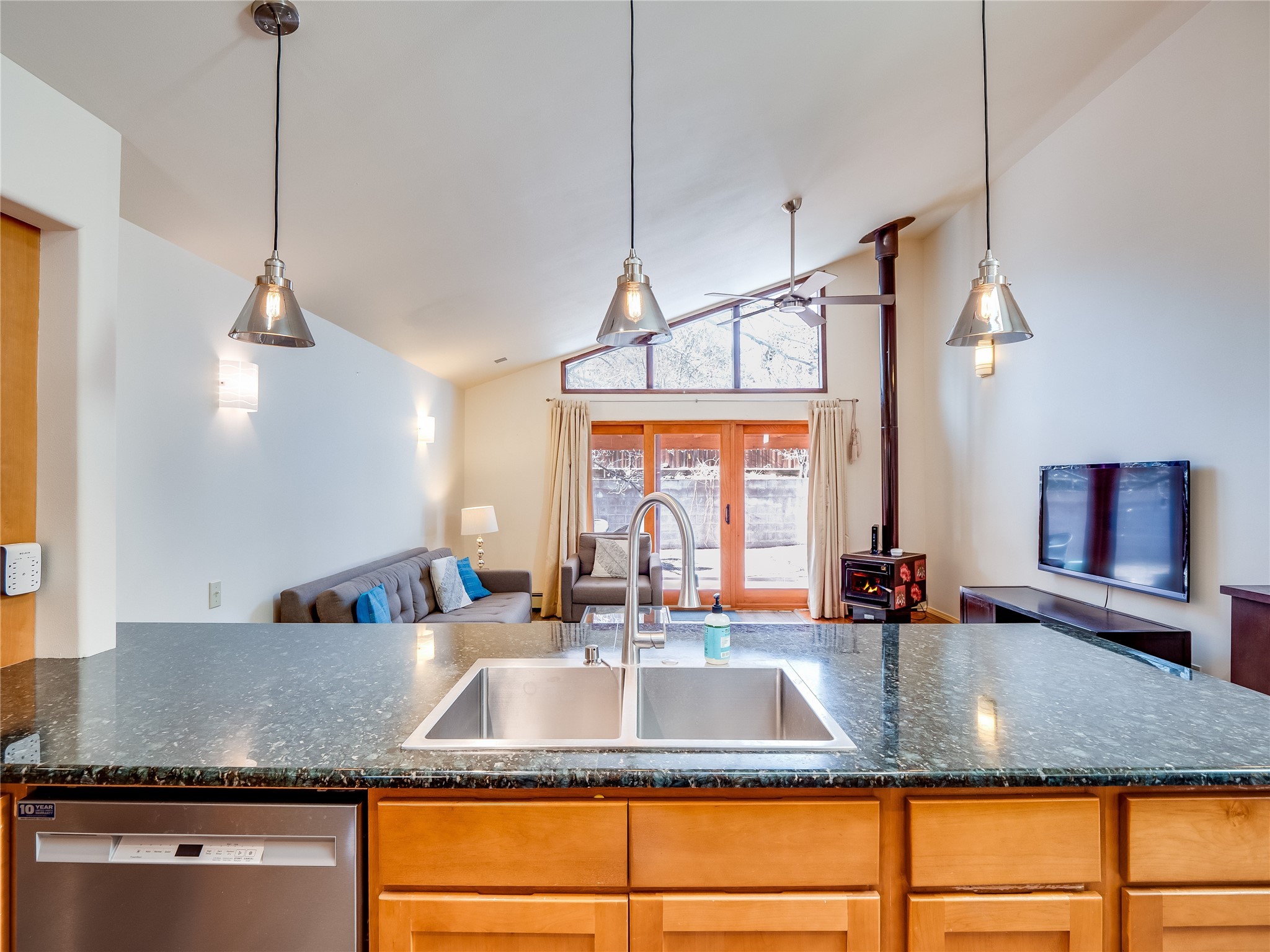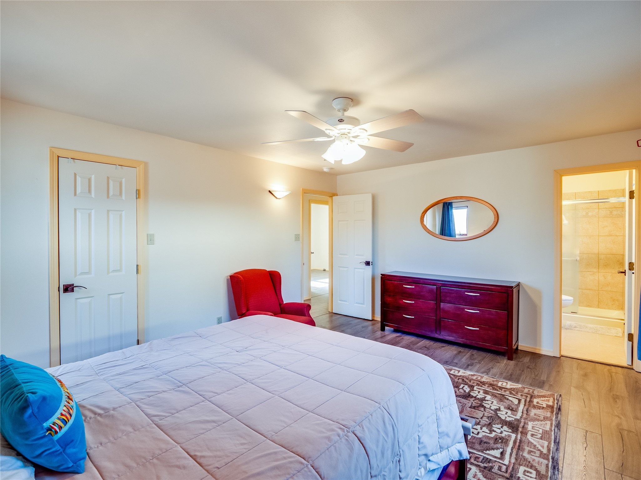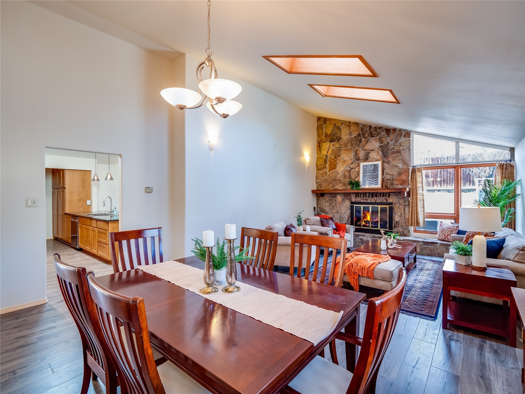 In the heart of North Mesa, this gorgeous two-story home offers the perfect blend of style and comfort. The large, low-maintenance front yard welcomes you, leading up to a two-car garage with direct access to the home. Step inside to find grey laminate wood floors that flow throughout the main living areas. To the left of the entryway is a bright living and dining space, featuring vaulted ceilings and a striking stone wood-burning fireplace that serves as the room's centerpiece. A spacious kitchen with tons of rich wood cabinets for storage, granite counters, stainless steel appliances. The kitchen's large island overlooks the family room, where a cozy wood-burning stove adds warmth, and sliders lead to the fully fenced-in backyard, an entertainer space with a covered patio and a retaining walls showcasing fruit trees. The main floor continues with two guest bedrooms, each featuring walk-in closets, and a full guest bathroom. Down the hall is a guest en-suite with a walk-in closet and its own bathroom, complete with a single-sink vanity and tiled shower/tub. A spacious laundry room with included washer and dryer completes the main level. The second floor boasts a private guest en-suite with a charming loft and access to a shared deck. The primary en-suite is bathed in natural light, thanks to a wall of windows and sliding glass doors that lead to a shared deck perfect for enjoying a quiet morning coffee or stargazing at night. The spa-inspired primary bathroom is the epitome of relaxation. Featuring sleek tile floors and a stunning walk-in shower with a glass door enclosure, tiled from floor to ceiling for a luxurious and polished look. A deep soaking tub for unwinding after a long day, complemented by a large double-sink vanity. Located near horse stables, parks, and scenic hiking trails, this home provides a perfect balance of peaceful living and easy access to outdoor recreation. Don't miss your chance to make this incredible property your own!