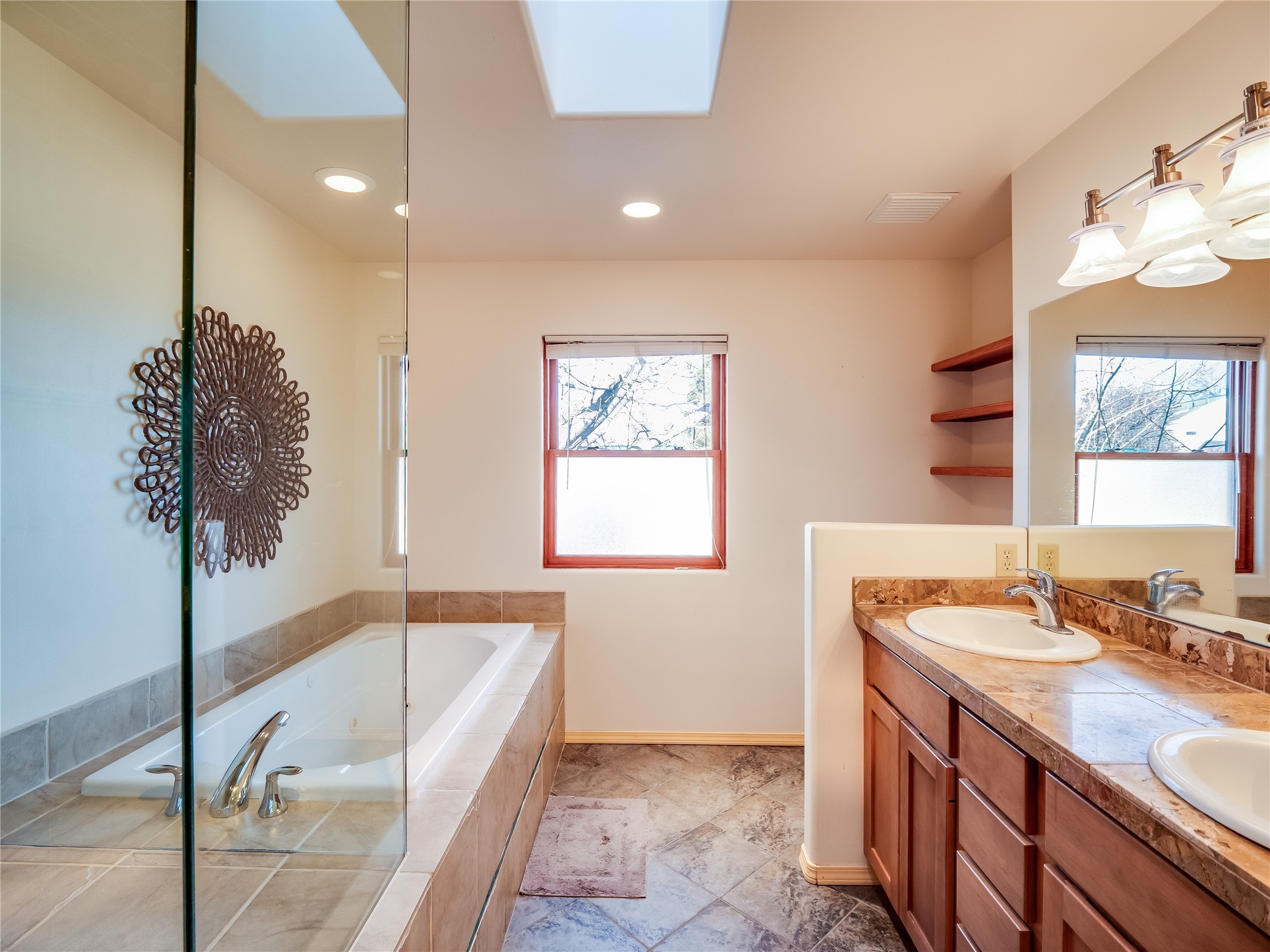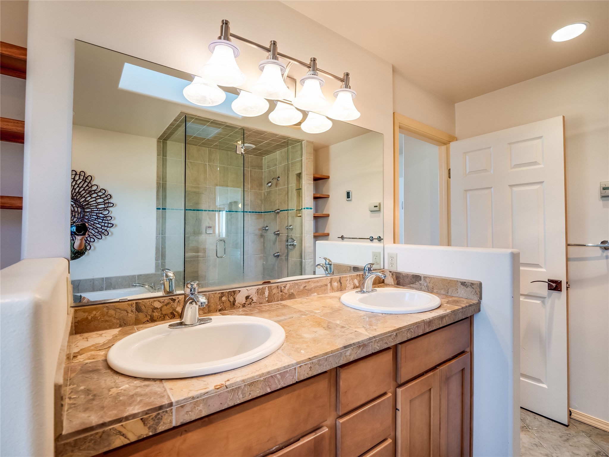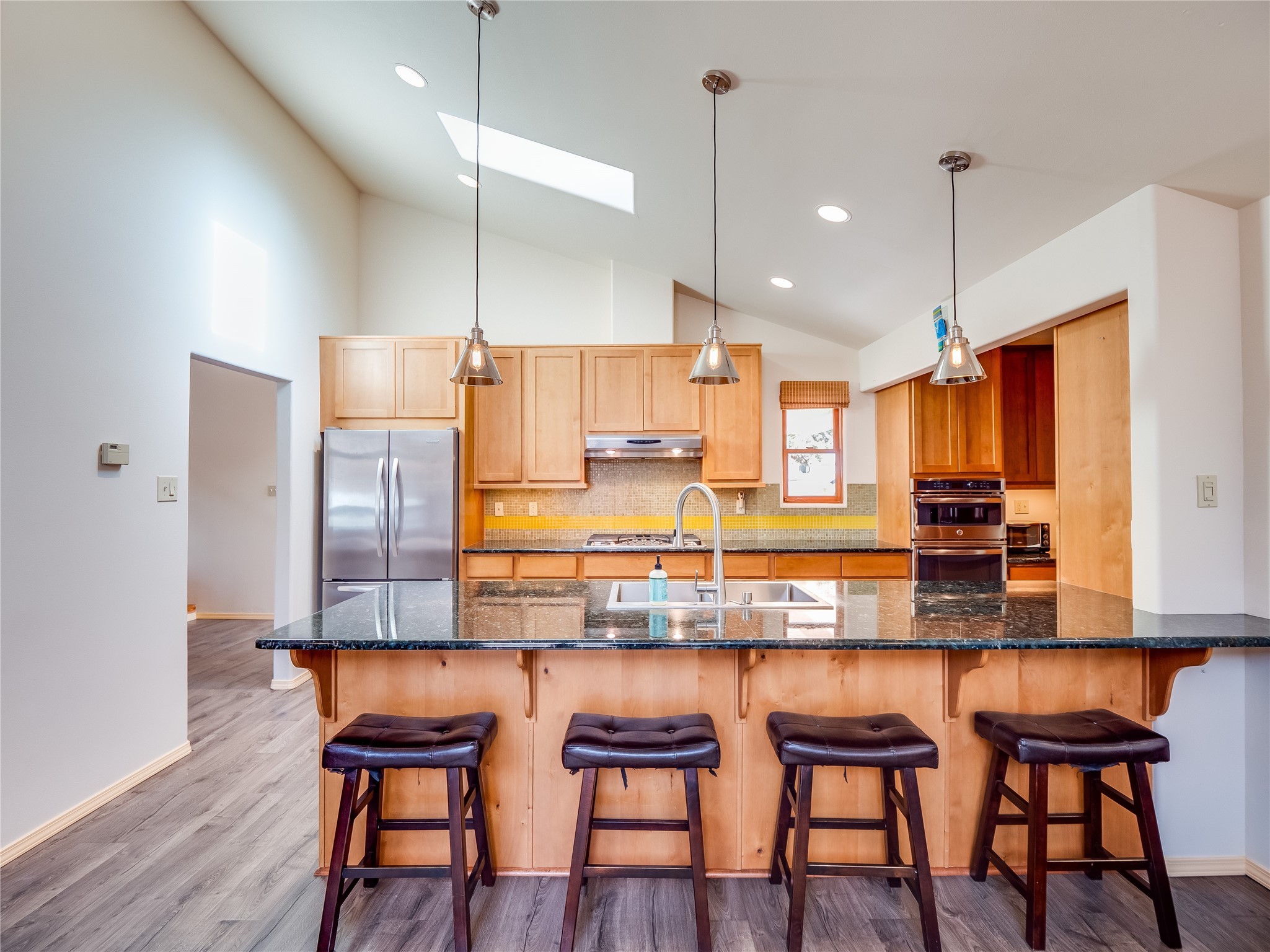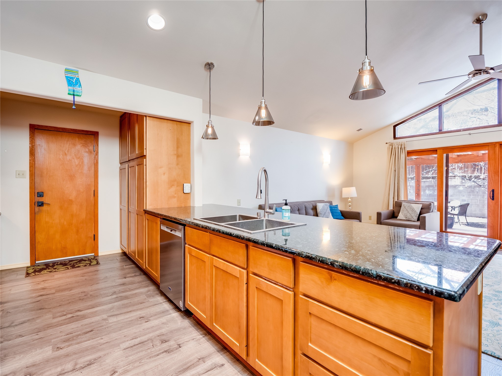 In the heart of North Mesa, this gorgeous two-story home offers the perfect blend of style and comfort. The large, low-maintenance front yard welcomes you, leading up to a two-car garage with direct access to the home. Step inside to find grey laminate wood floors that flow throughout the main living areas. To the left of the entryway is a bright living and dining space, featuring vaulted ceilings and a striking stone wood-burning fireplace that serves as the room's centerpiece. A spacious kitchen with tons of rich wood cabinets for storage, granite counters, stainless steel appliances. The kitchen's large island overlooks the family room, where a cozy wood-burning stove adds warmth, and sliders lead to the fully fenced-in backyard, an entertainer space with a covered patio and a retaining walls showcasing fruit trees. The main floor continues with two guest bedrooms, each featuring walk-in closets, and a full guest bathroom. Down the hall is a guest en-suite with a walk-in closet and its own bathroom, complete with a single-sink vanity and tiled shower/tub. A spacious laundry room with included washer and dryer completes the main level. The second floor boasts a private guest en-suite with a charming loft and access to a shared deck. The primary en-suite is bathed in natural light, thanks to a wall of windows and sliding glass doors that lead to a shared deck perfect for enjoying a quiet morning coffee or stargazing at night. The spa-inspired primary bathroom is the epitome of relaxation. Featuring sleek tile floors and a stunning walk-in shower with a glass door enclosure, tiled from floor to ceiling for a luxurious and polished look. A deep soaking tub for unwinding after a long day, complemented by a large double-sink vanity. Located near horse stables, parks, and scenic hiking trails, this home provides a perfect balance of peaceful living and easy access to outdoor recreation. Don't miss your chance to make this incredible property your own!