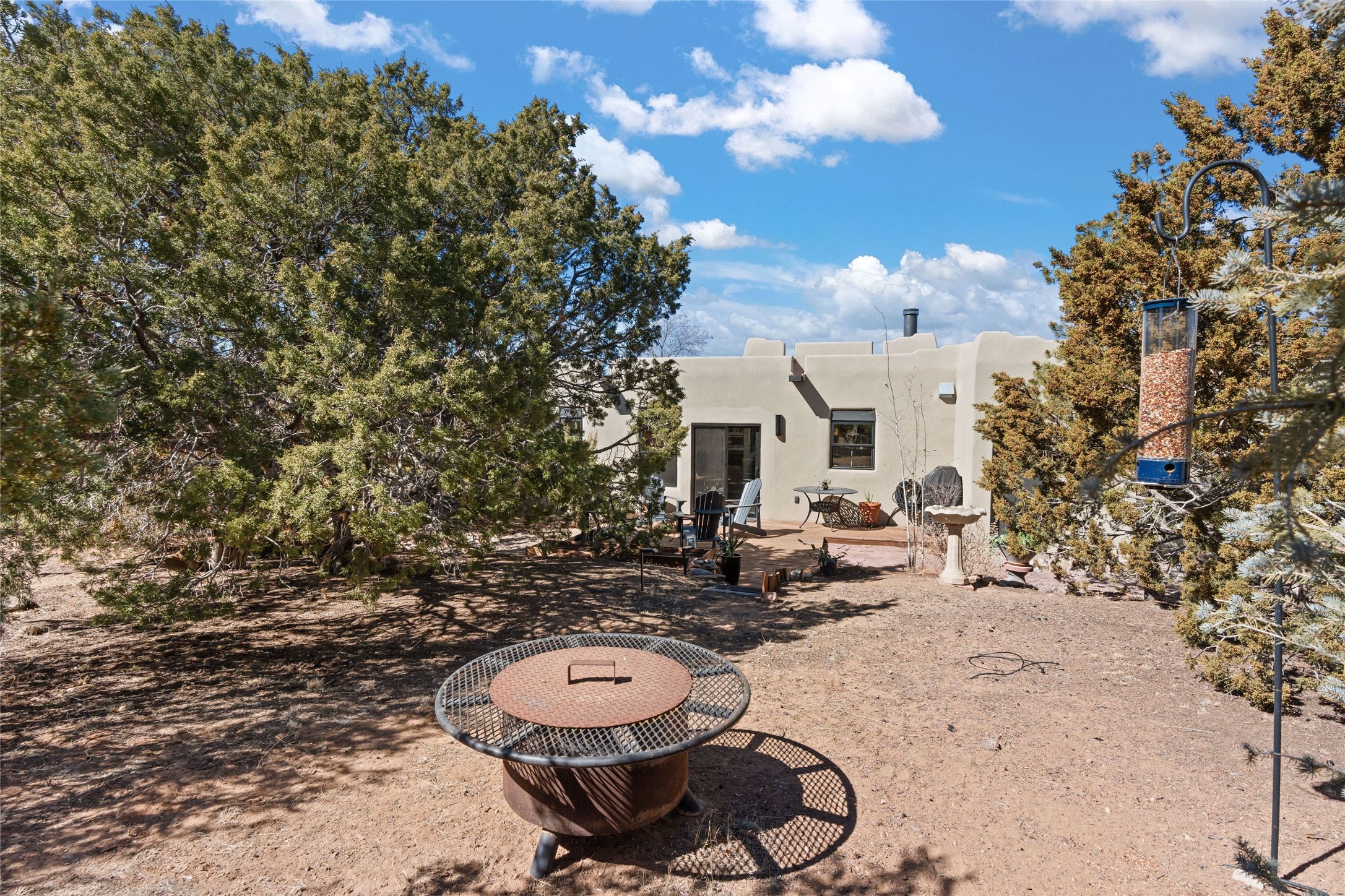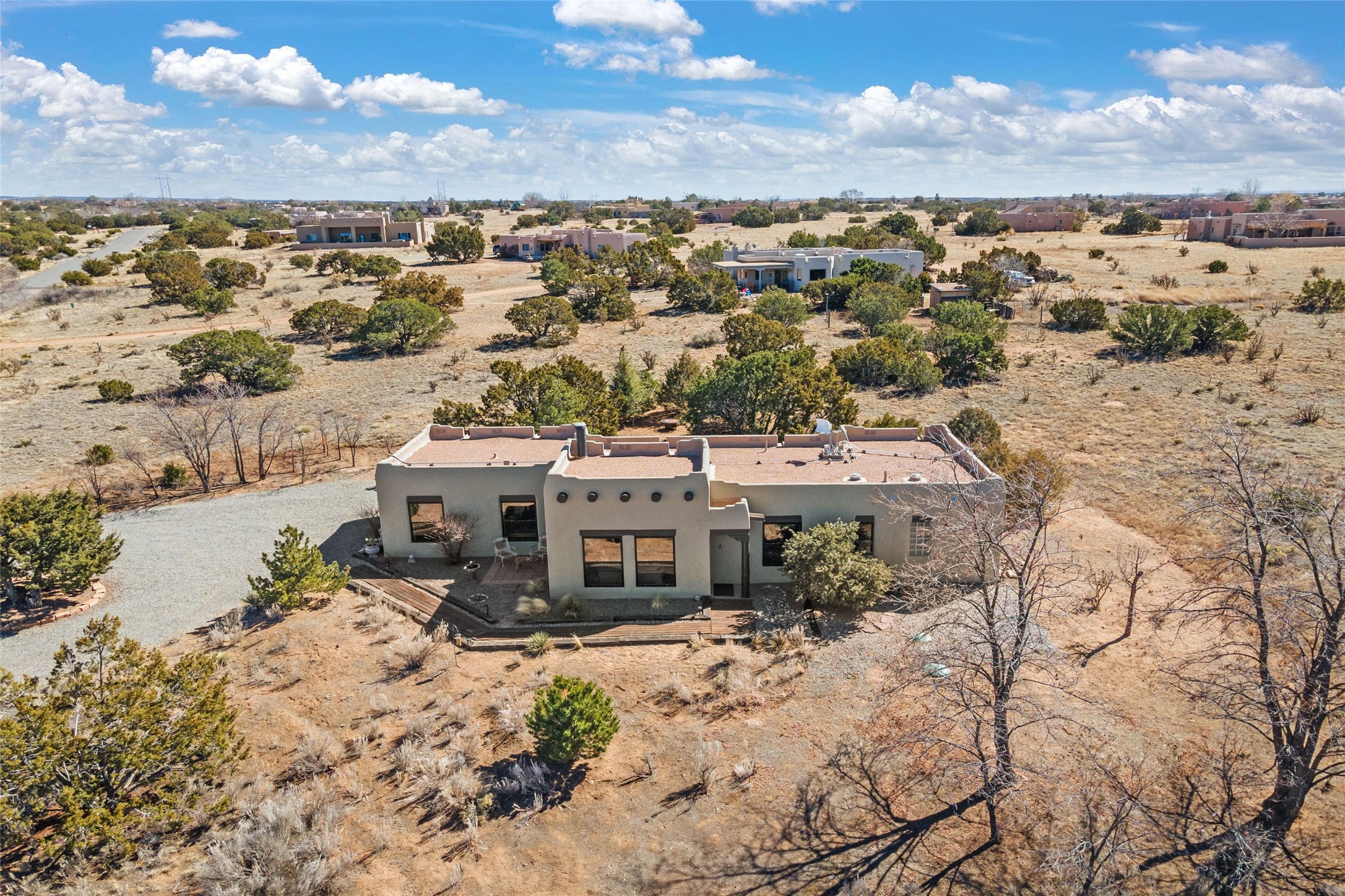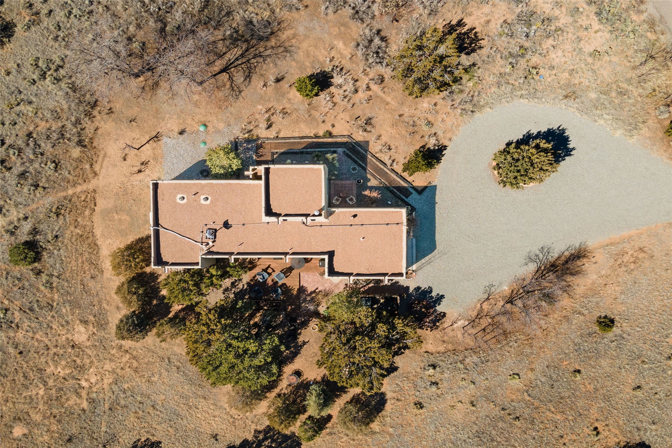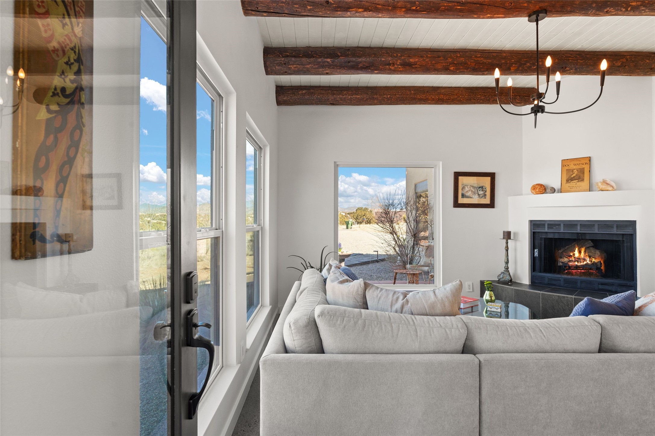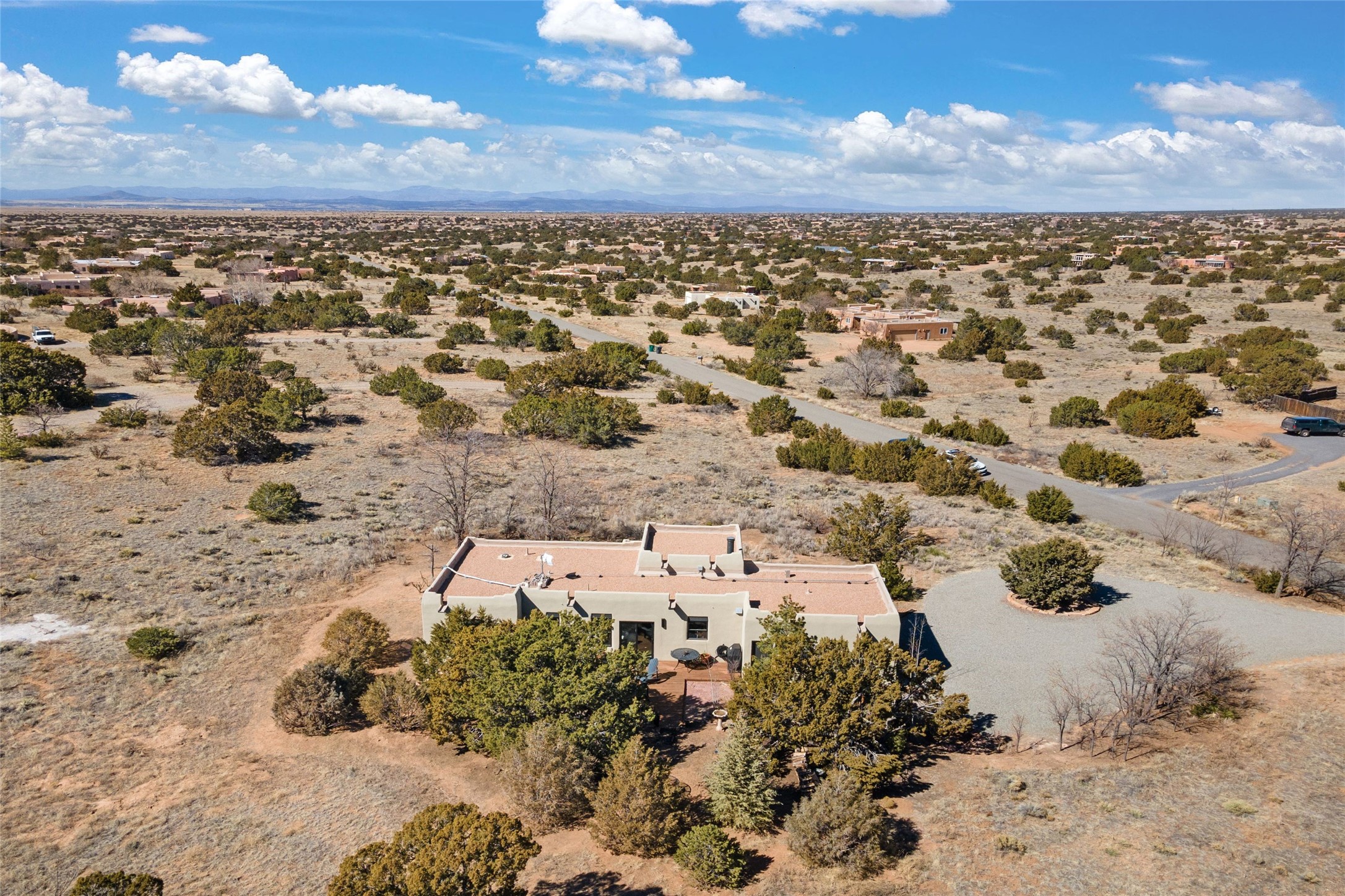Nestled in the desirable Eldorado Community, this beautifully updated home seamlessly combines modern innovation with timeless Southwestern charm. Located in a certified dark sky community, Eldorado features expansive landscapes, scenic walking trails, a community pool, tennis courts, and a vibrant clubhouse, all just minutes away from Santa Fe. Set on a serene 1.4-acre lot, 21 Estambre Rd offers privacy with mature native trees, xeriscaped landscaping, and solar-lit pathways leading to a spacious back deck--an ideal setting to unwind and take in the breathtaking views of the Sangre De Cristo mountains and sunsets over the Jemez Mountains. Inside, meticulous attention to detail is evident throughout. The remodeled kitchen boasts high-end stainless steel appliances, custom KraftMaid cabinetry, and butcher block countertops, seamlessly flowing into sun-drenched open living spaces framed by energy-efficient Pella windows that showcase stunning views. The primary suite serves as a private retreat, featuring a spa-inspired bath with a curbless walk-in shower. The guest bath exudes vintage elegance with a classic cast iron clawfoot tub. Solid wood doors, premium fixtures, and refined finishes elevate the home's warm and inviting atmosphere. Designed for comfort and efficiency, the home includes a newly installed Mitsubishi heat pump offering climate-controlled heating and cooling, an upgraded electrical panel with whole-house surge protection, a high-performance Rheem water heater, and a North Star water treatment system with a 5-stage reverse osmosis system. Thoughtful details such as smart combination outlets and energy-efficient windows enhance everyday living. Fresh stucco adds to the home's curb appeal, ensuring a timeless look for years to come. With extensive upgrades, incredible views, and quick access to Eldorado's shopping, dining, and community amenities, this home perfectly blends modern convenience, natural beauty, and classic Santa Fe living.