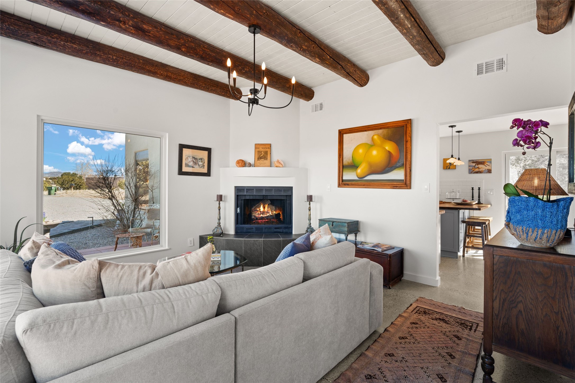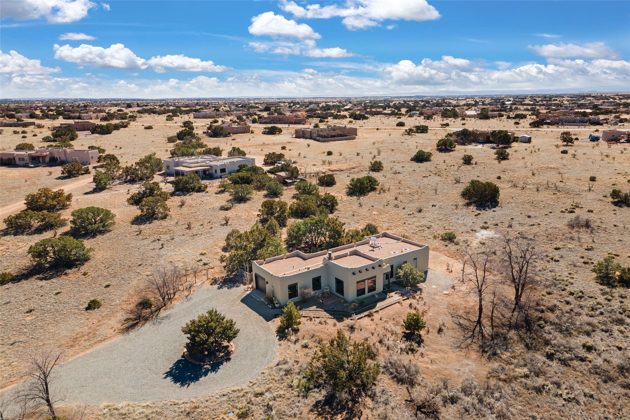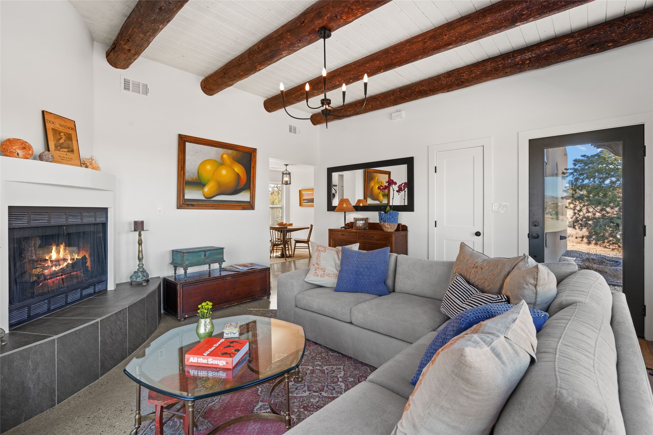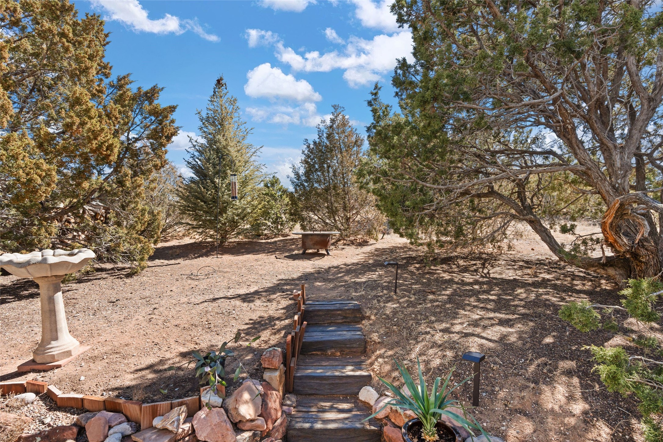 Nestled in the desirable Eldorado Community, this beautifully updated home seamlessly combines modern innovation with timeless Southwestern charm. Located in a certified dark sky community, Eldorado features expansive landscapes, scenic walking trails, a community pool, tennis courts, and a vibrant clubhouse, all just minutes away from Santa Fe. Set on a serene 1.4-acre lot, 21 Estambre Rd offers privacy with mature native trees, xeriscaped landscaping, and solar-lit pathways leading to a spacious back deck--an ideal setting to unwind and take in the breathtaking views of the Sangre De Cristo mountains and sunsets over the Jemez Mountains. Inside, meticulous attention to detail is evident throughout. The remodeled kitchen boasts high-end stainless steel appliances, custom KraftMaid cabinetry, and butcher block countertops, seamlessly flowing into sun-drenched open living spaces framed by energy-efficient Pella windows that showcase stunning views. The primary suite serves as a private retreat, featuring a spa-inspired bath with a curbless walk-in shower. The guest bath exudes vintage elegance with a classic cast iron clawfoot tub. Solid wood doors, premium fixtures, and refined finishes elevate the home's warm and inviting atmosphere. Designed for comfort and efficiency, the home includes a newly installed Mitsubishi heat pump offering climate-controlled heating and cooling, an upgraded electrical panel with whole-house surge protection, a high-performance Rheem water heater, and a North Star water treatment system with a 5-stage reverse osmosis system. Thoughtful details such as smart combination outlets and energy-efficient windows enhance everyday living. Fresh stucco adds to the home's curb appeal, ensuring a timeless look for years to come. With extensive upgrades, incredible views, and quick access to Eldorado's shopping, dining, and community amenities, this home perfectly blends modern convenience, natural beauty, and classic Santa Fe living.