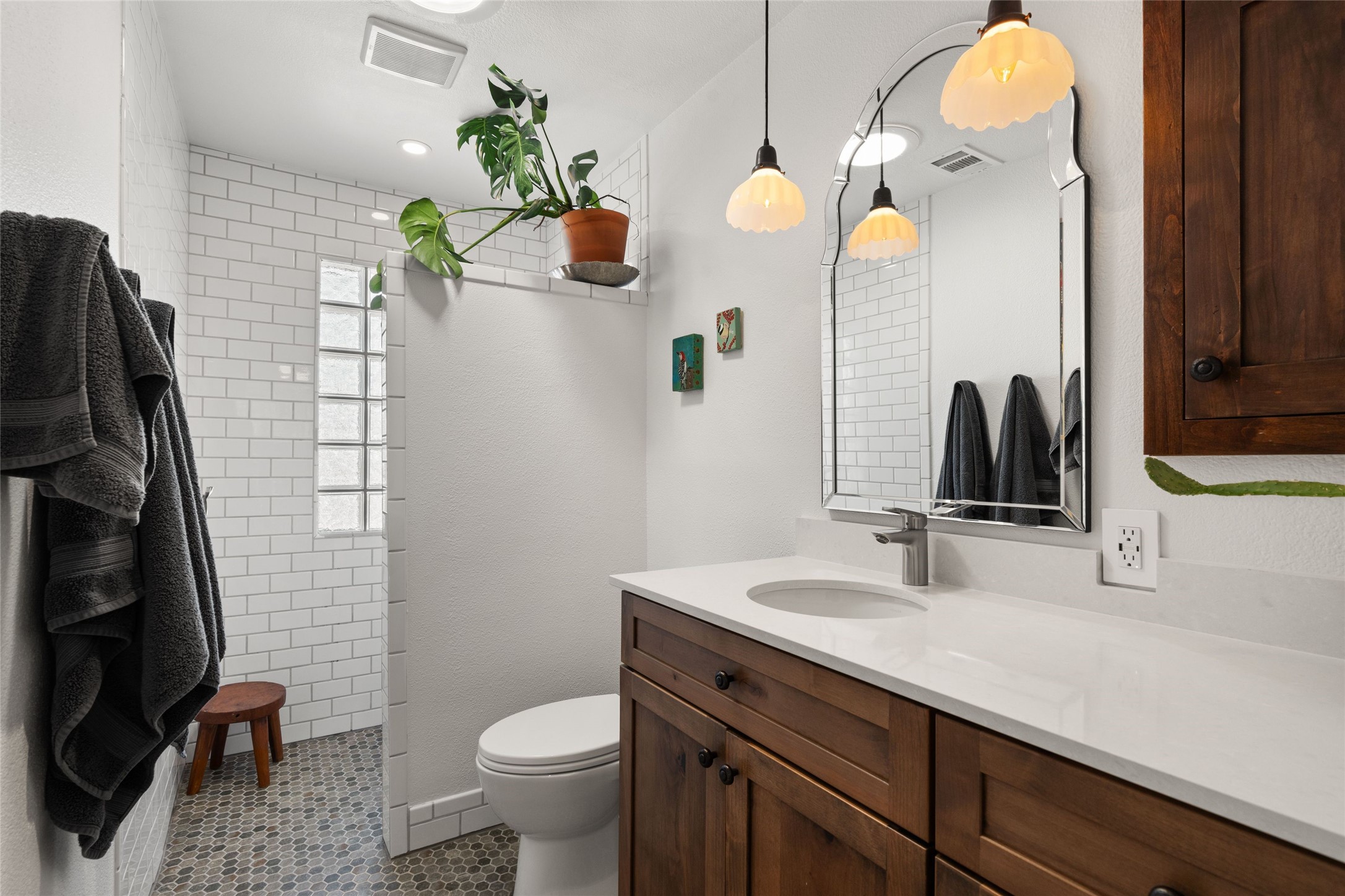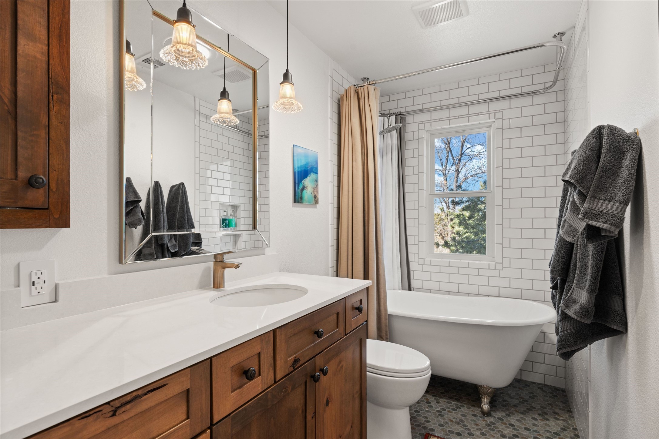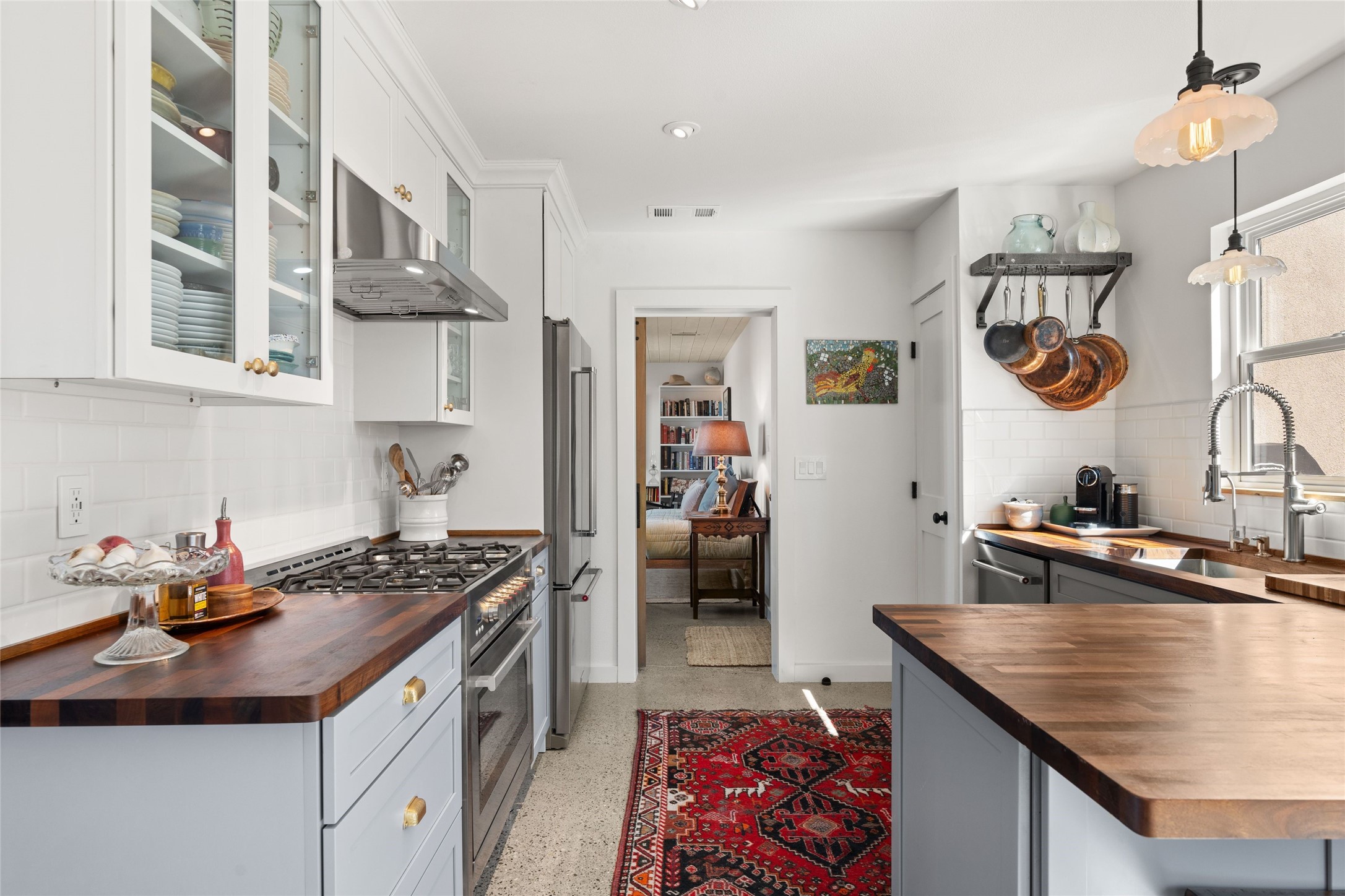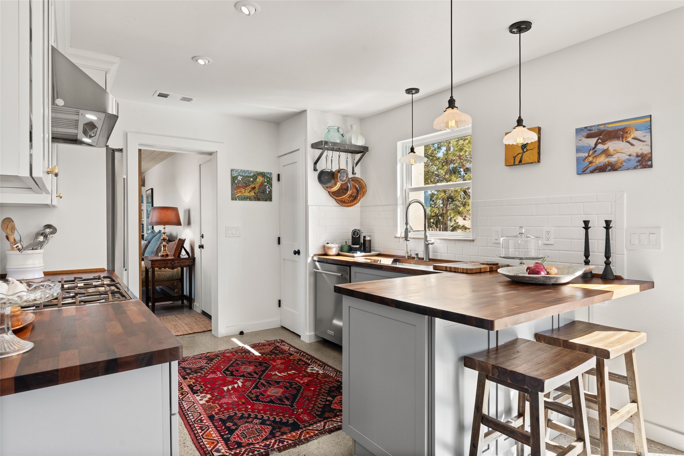 Nestled in the desirable Eldorado Community, this beautifully updated home seamlessly combines modern innovation with timeless Southwestern charm. Located in a certified dark sky community, Eldorado features expansive landscapes, scenic walking trails, a community pool, tennis courts, and a vibrant clubhouse, all just minutes away from Santa Fe. Set on a serene 1.4-acre lot, 21 Estambre Rd offers privacy with mature native trees, xeriscaped landscaping, and solar-lit pathways leading to a spacious back deck--an ideal setting to unwind and take in the breathtaking views of the Sangre De Cristo mountains and sunsets over the Jemez Mountains. Inside, meticulous attention to detail is evident throughout. The remodeled kitchen boasts high-end stainless steel appliances, custom KraftMaid cabinetry, and butcher block countertops, seamlessly flowing into sun-drenched open living spaces framed by energy-efficient Pella windows that showcase stunning views. The primary suite serves as a private retreat, featuring a spa-inspired bath with a curbless walk-in shower. The guest bath exudes vintage elegance with a classic cast iron clawfoot tub. Solid wood doors, premium fixtures, and refined finishes elevate the home's warm and inviting atmosphere. Designed for comfort and efficiency, the home includes a newly installed Mitsubishi heat pump offering climate-controlled heating and cooling, an upgraded electrical panel with whole-house surge protection, a high-performance Rheem water heater, and a North Star water treatment system with a 5-stage reverse osmosis system. Thoughtful details such as smart combination outlets and energy-efficient windows enhance everyday living. Fresh stucco adds to the home's curb appeal, ensuring a timeless look for years to come. With extensive upgrades, incredible views, and quick access to Eldorado's shopping, dining, and community amenities, this home perfectly blends modern convenience, natural beauty, and classic Santa Fe living.