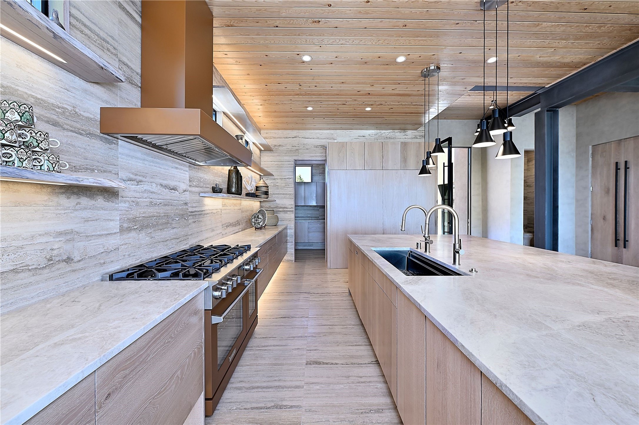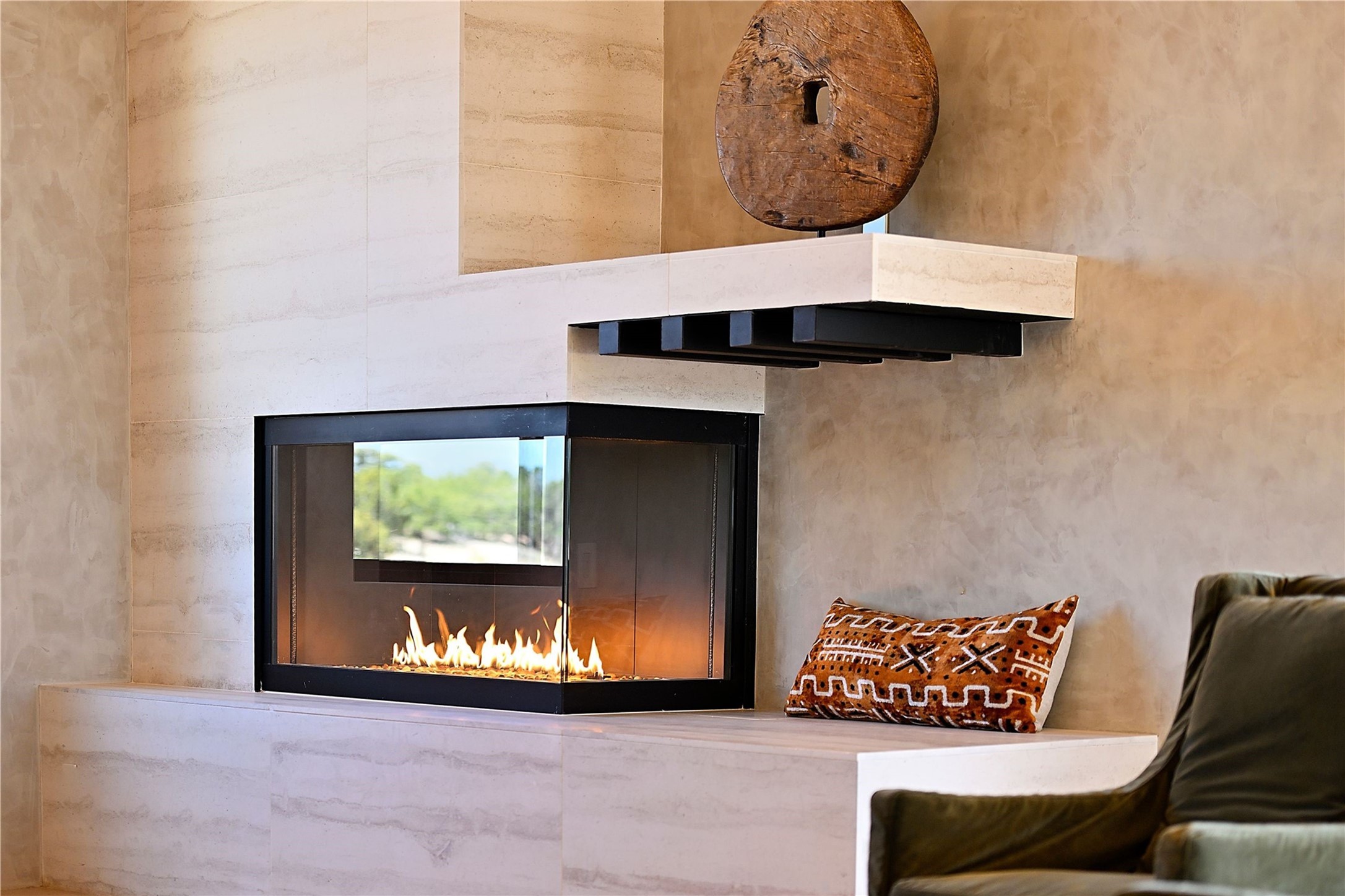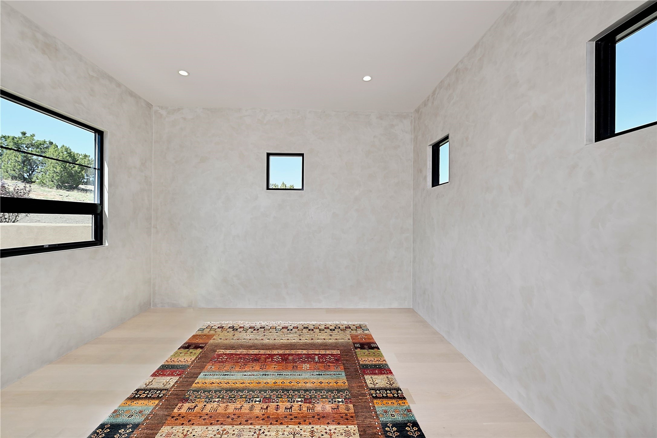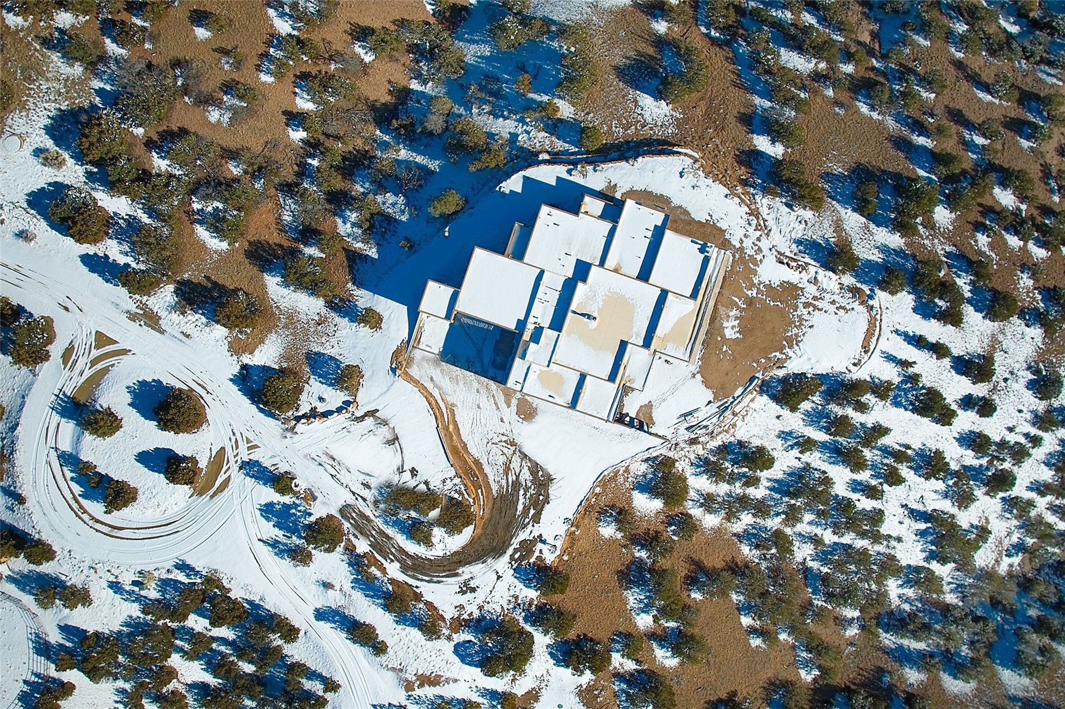 ** 2025 Grand Hacienda Winner!17 Vista Bella will be the #1 Property on the Haciendas 2025 Parade of Homes Tour 8/8-8/10 and 8/15-8/17. Breathtaking views and stellar night skies- this new build is move in ready! Boasting (approx.) 4,400 sq. ft. & nestled on 12.68 acres, this home offers unparalleled views of the Galisteo Basin and mountains. Designed by Mark Schwebel of Big Art Builders, 2024 Parade of Homes for Natural Materials winner, this masterpiece blends cantilevered steel beams, glass, natural wood, and stone to harmonize with its high-desert surroundings. A contemporary design brings the outdoors in, with expansive windows, a stunning outdoor kitchen, and spaces perfect for entertaining. Each element has been meticulously crafted to highlight the surrounding beauty while creating a warm, luxurious environment. The kitchen's stunning centerpiece is crafted from white oak slabs, complemented by Italian stone floors and walls. Counters are custom-milled Brazilian stone, with BlueStar appliances and True refrigeration. Each bathroom is a work of art, clad in exotic stones sourced from Mexico, Turkey, and Italy. Vanities are crafted from exotic hardwoods like West African Padauk and Black Limba, paired with countertops of Persian travertine, Brazilian Taj Mahal, and Namibian granite. The powder room features Italian stone and a unique concrete sink. Refined details include: 7" French white oak floors, Lake Tahoe white fir ceilings, and two showpiece gas fireplaces: a modern shepherd's design in the primary suite and a black granite-clad peninsula in the living room. Take advantage of the unrivaled comfort this home offers with High-efficiency Carrier forced air heating and cooling, radiant heating throughout, and superior insulation with closed-cell spray foam (R60 ceilings, R30 walls). This home is a celebration of luxury, nature, and artistry, a truly one-of-a-kind property that must be experienced.