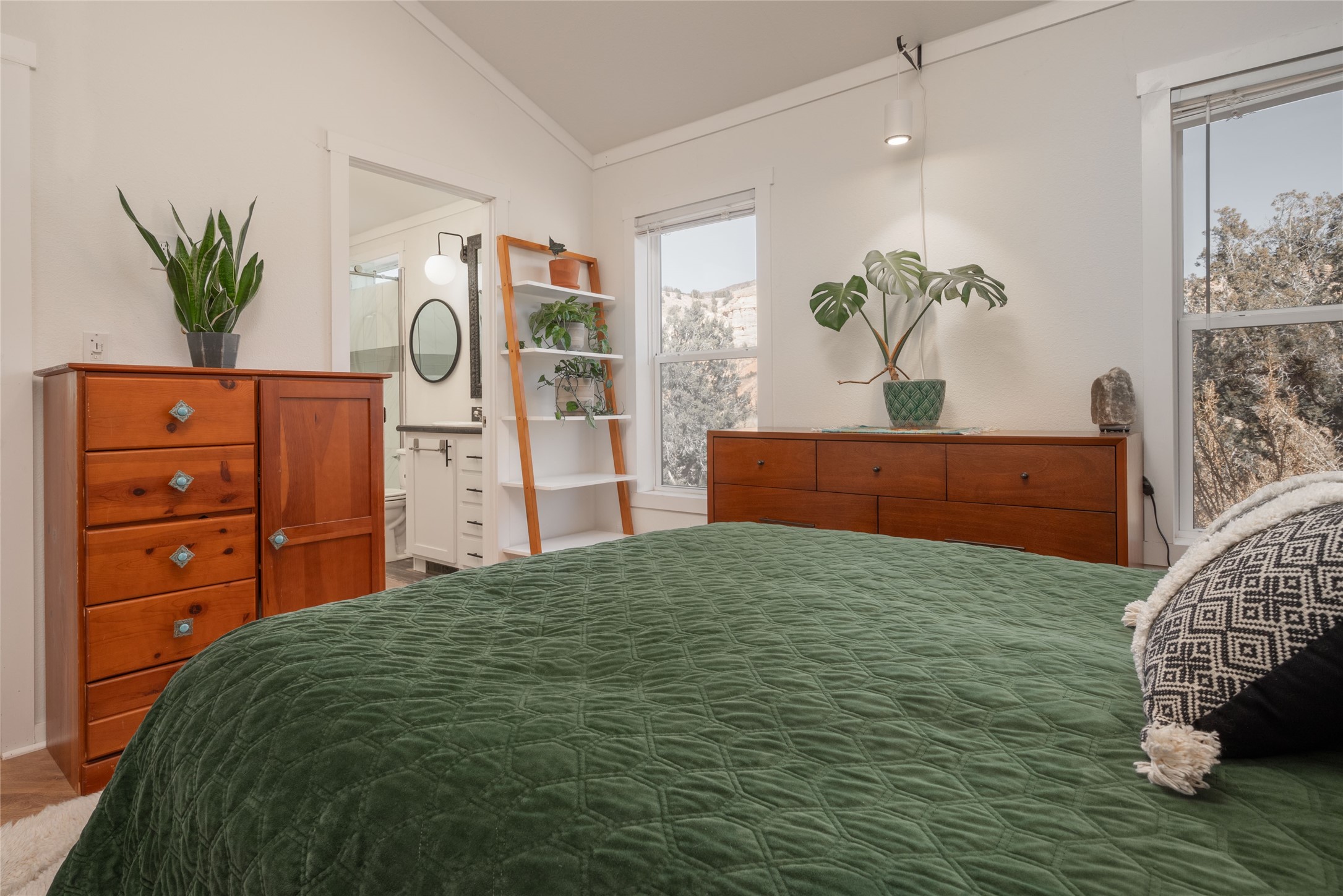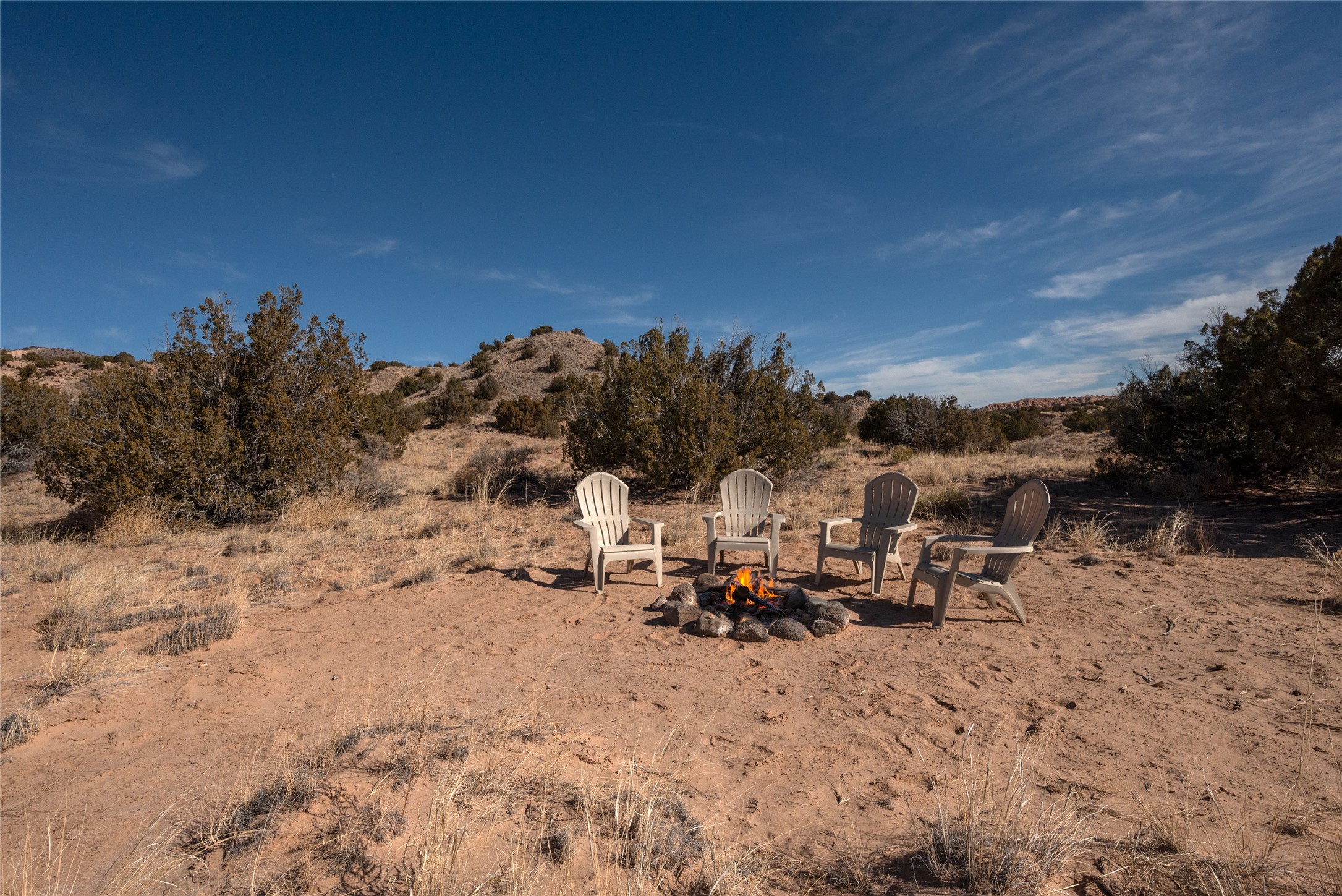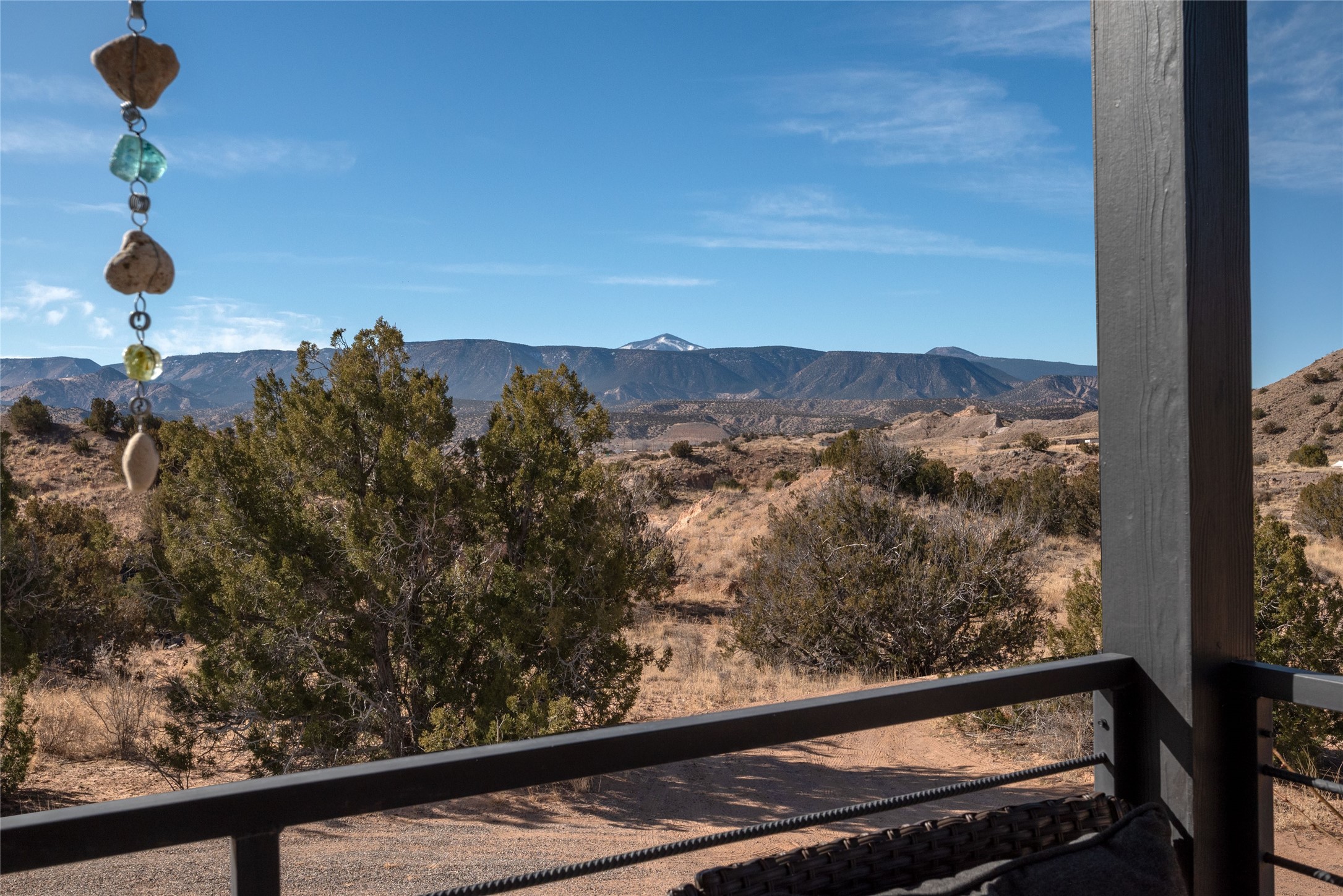 Tucked away at the end of a private, gated road, this turnkey, charming, and modern off-grid manufactured home offers the perfect blend of comfort and sustainability. Situated on over 10 pristine acres and nestled near the base of Sierra Negra, enjoy breathtaking views of red sandstone cliffs and the Jemez Mountains. This bright, light-filled home is newly built and placed on a permanent foundation in 2022. Enjoy high ceilings and a modern kitchen in this thoughtfully designed home with a pitched pro-panel roof and forced air heating and cooling for year-round comfort. The detached studio/guesthouse with a mini-split system provides the perfect space for guests, a home office, or creative pursuits.The property is fully equipped for off-grid living with owned solar panels, lithium batteries, a climate-controlled solar shed, and a Generac propane generator for peace of mind. A private well equipped with a 2500-gallon cistern ensures a reliable water source and a 500-gallon propane tank completes the picture. The generous TuffShed storage provides additional convenience, and the expansive acreage is perfect for horse enthusiasts with plenty of room to ride out.Enjoy a tranquil, sustainable lifestyle with easy access off NM 554 without compromising on modern comforts. Convenient to Abiquiu, Espanola, Los Alamos, and Santa Fe. Don't miss out on this unique property! Please schedule in ShowingTime and wait for confirmation.
