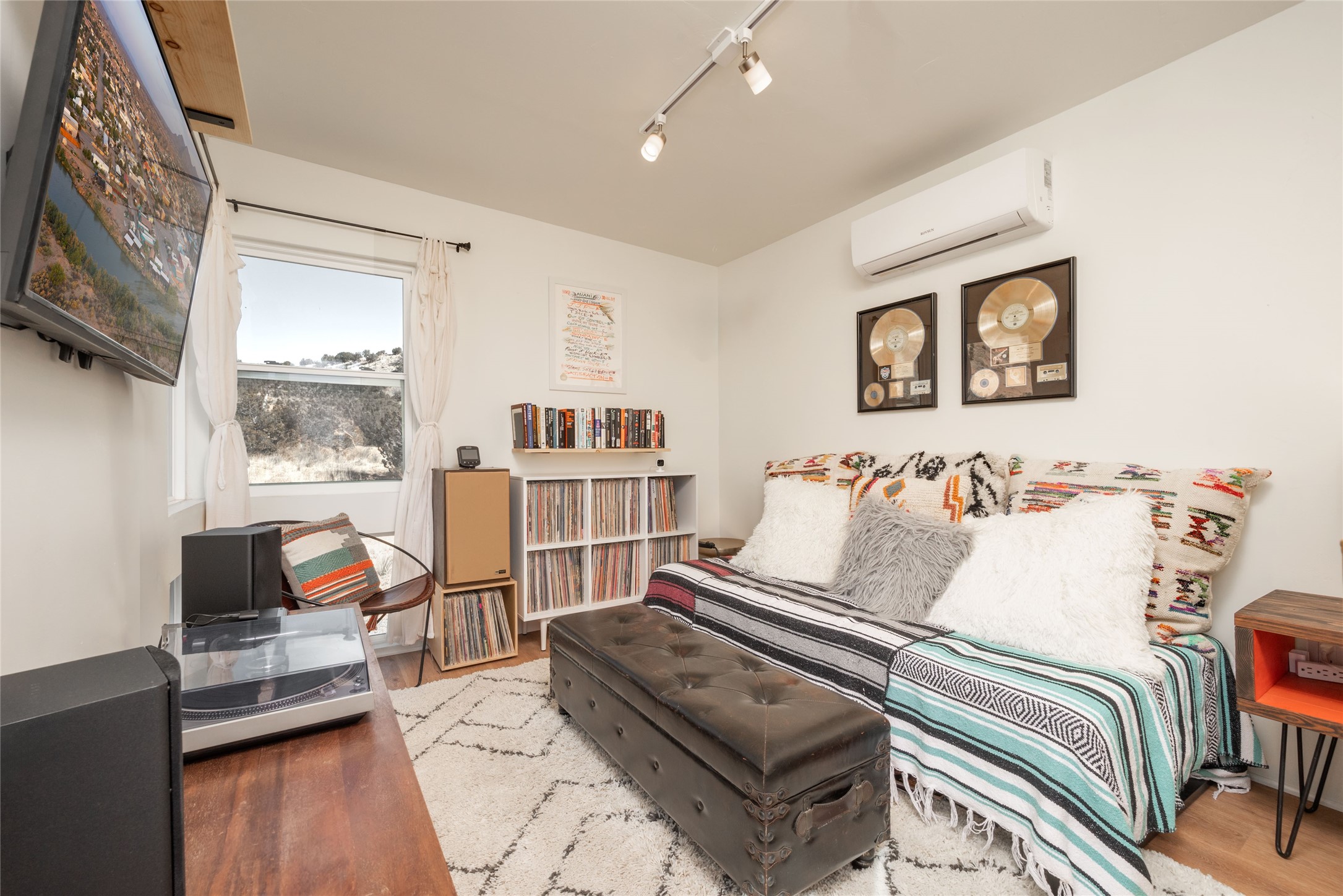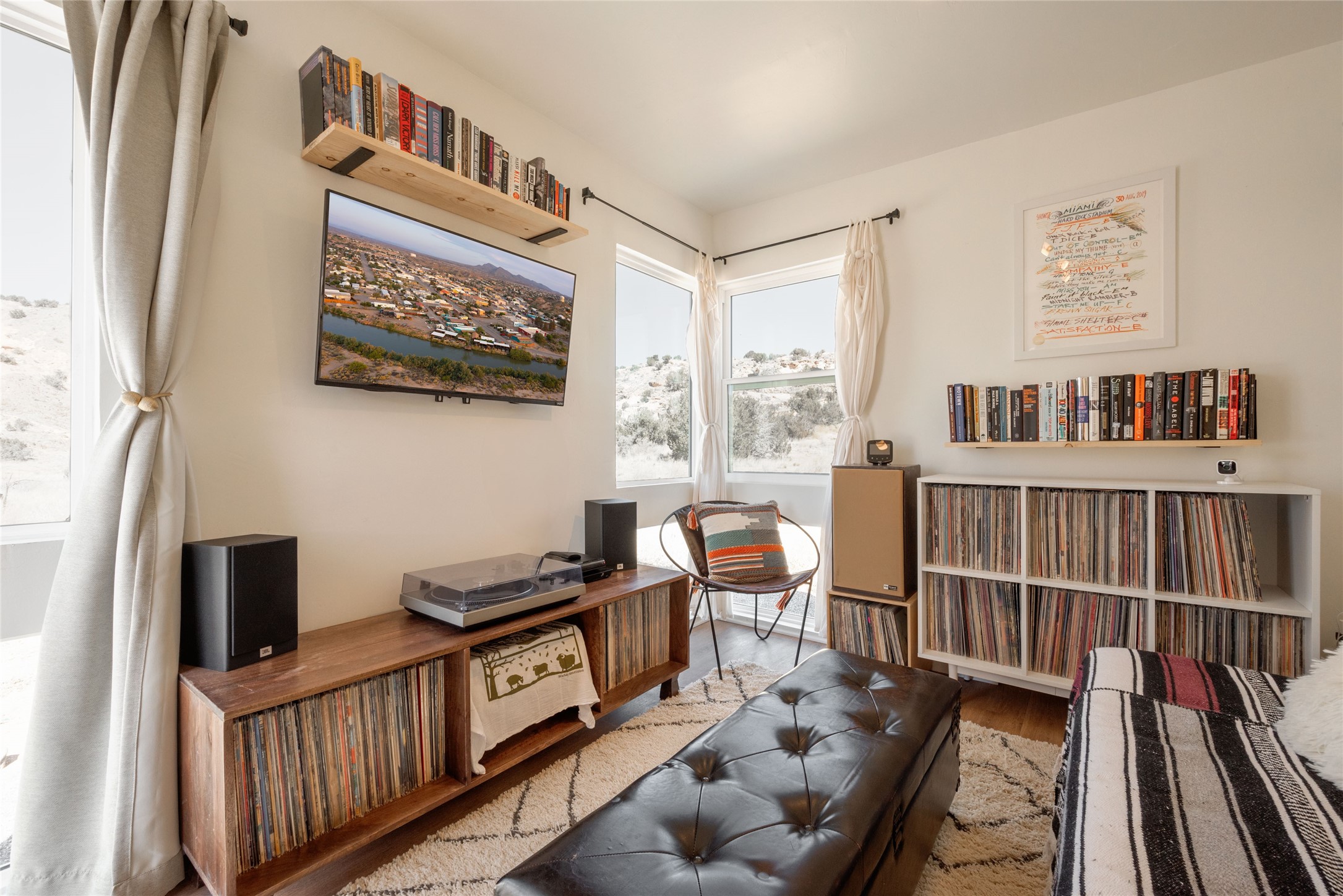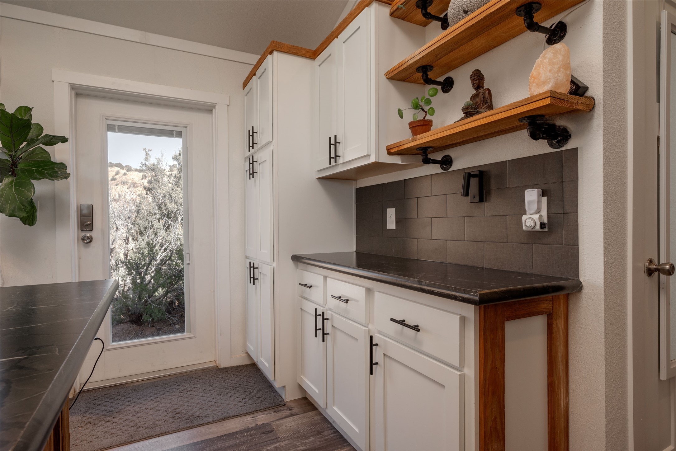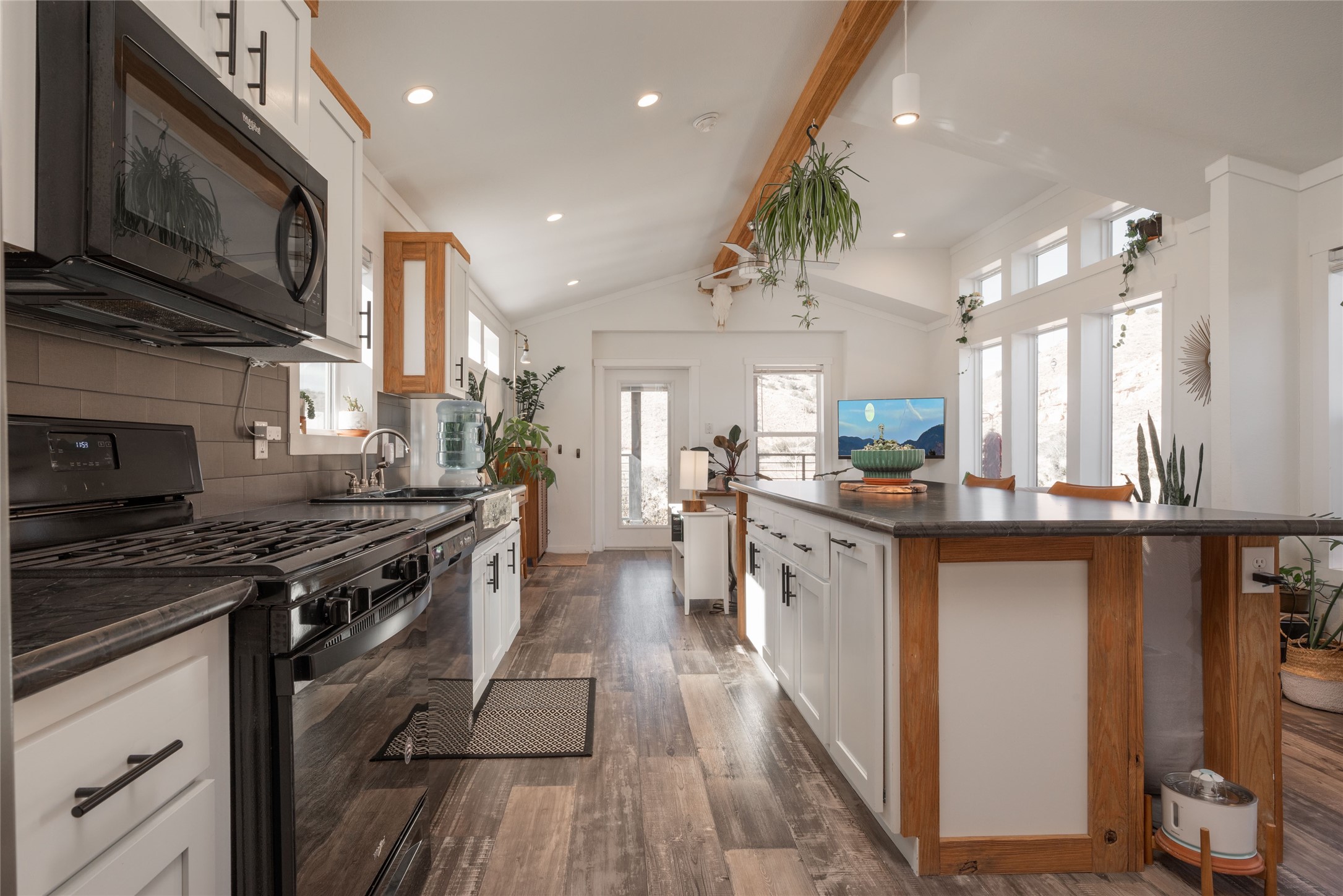 Tucked away at the end of a private, gated road, this turnkey, charming, and modern off-grid manufactured home offers the perfect blend of comfort and sustainability. Situated on over 10 pristine acres and nestled near the base of Sierra Negra, enjoy breathtaking views of red sandstone cliffs and the Jemez Mountains. This bright, light-filled home is newly built and placed on a permanent foundation in 2022. Enjoy high ceilings and a modern kitchen in this thoughtfully designed home with a pitched pro-panel roof and forced air heating and cooling for year-round comfort. The detached studio/guesthouse with a mini-split system provides the perfect space for guests, a home office, or creative pursuits.The property is fully equipped for off-grid living with owned solar panels, lithium batteries, a climate-controlled solar shed, and a Generac propane generator for peace of mind. A private well equipped with a 2500-gallon cistern ensures a reliable water source and a 500-gallon propane tank completes the picture. The generous TuffShed storage provides additional convenience, and the expansive acreage is perfect for horse enthusiasts with plenty of room to ride out.Enjoy a tranquil, sustainable lifestyle with easy access off NM 554 without compromising on modern comforts. Convenient to Abiquiu, Espanola, Los Alamos, and Santa Fe. Don't miss out on this unique property! Please schedule in ShowingTime and wait for confirmation.