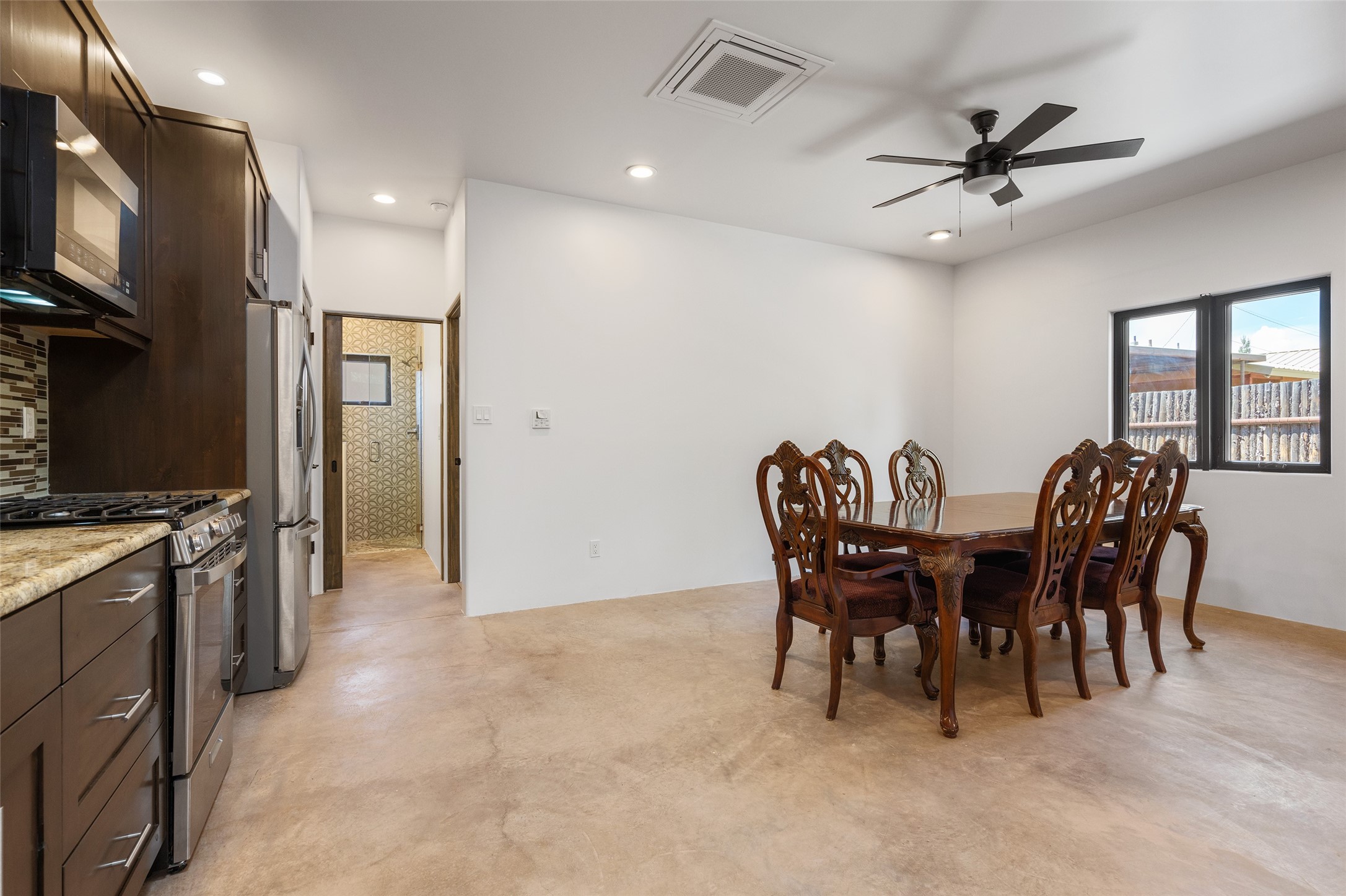 Welcome to 126 Caminito Montao, a brand-new build in the desirable Alameda Park area of Santa Fe. Built by Parade of Homes 2023 award-winning builder Arnoldo Carrillo of Carrillo Construction, this thoughtfully designed 2,428 sq. ft. home offers modern comfort with timeless Southwestern touches.The main residence features open and light-filled living spaces, elegant finishes, and a seamless indoor-outdoor flow. A private attached casita/guest quarters provides exceptional flexibility--perfect for hosting visitors, extended family, or use as a studio or office. This home has 3 bedrooms and 3 bathrooms with a full Casita with 1 bedroom and 1 bathroom. The home also includes a 2-car garage, offering convenience and ample storage.Located in the sought-after Alameda Park neighborhood, this property combines the benefits of new construction with a prime Santa Fe setting, close to trails, shopping, dining, and all that the city has to offer.