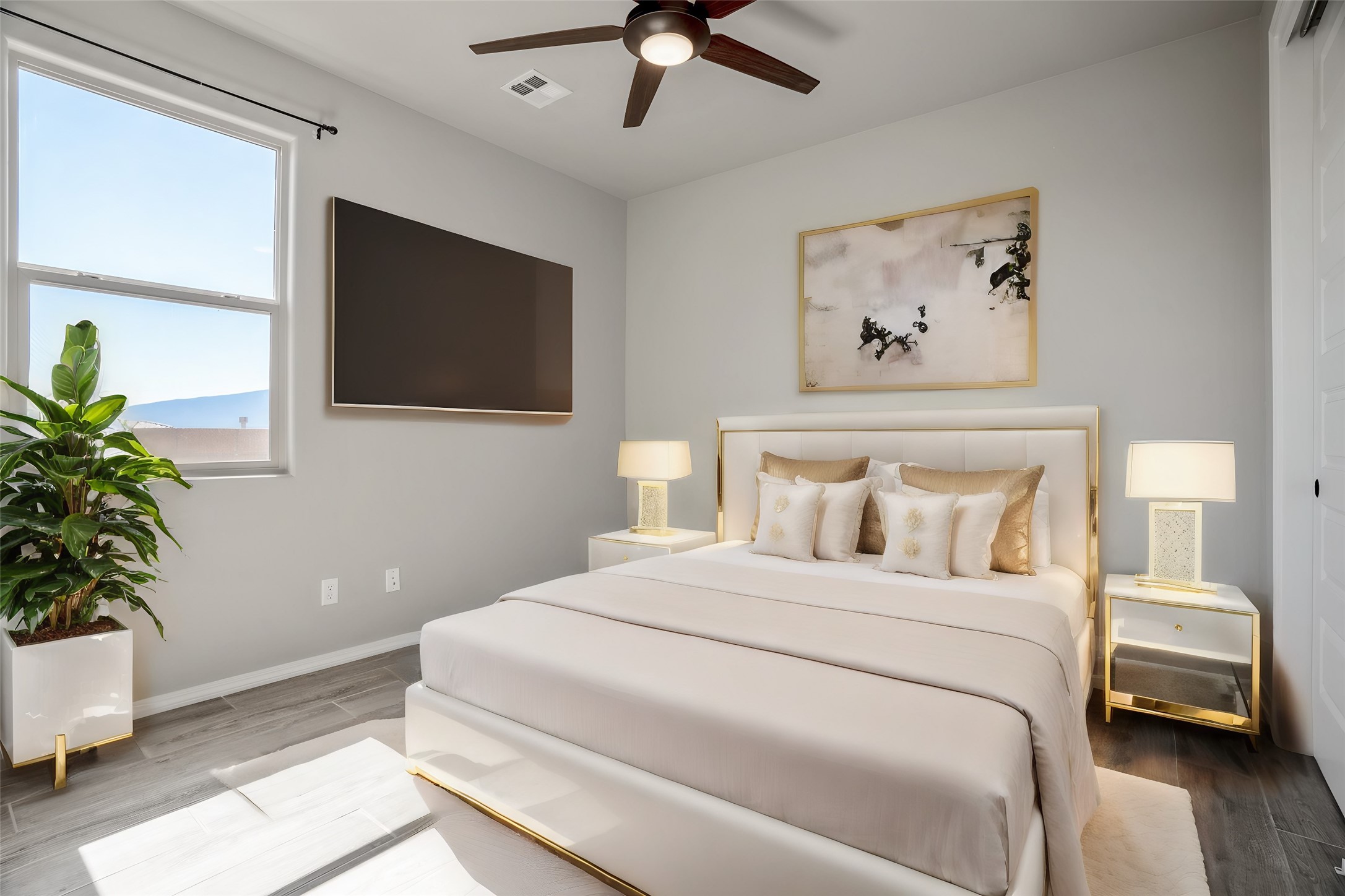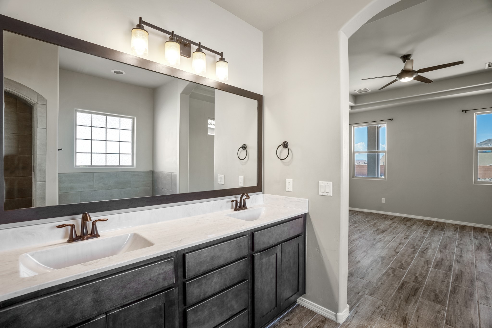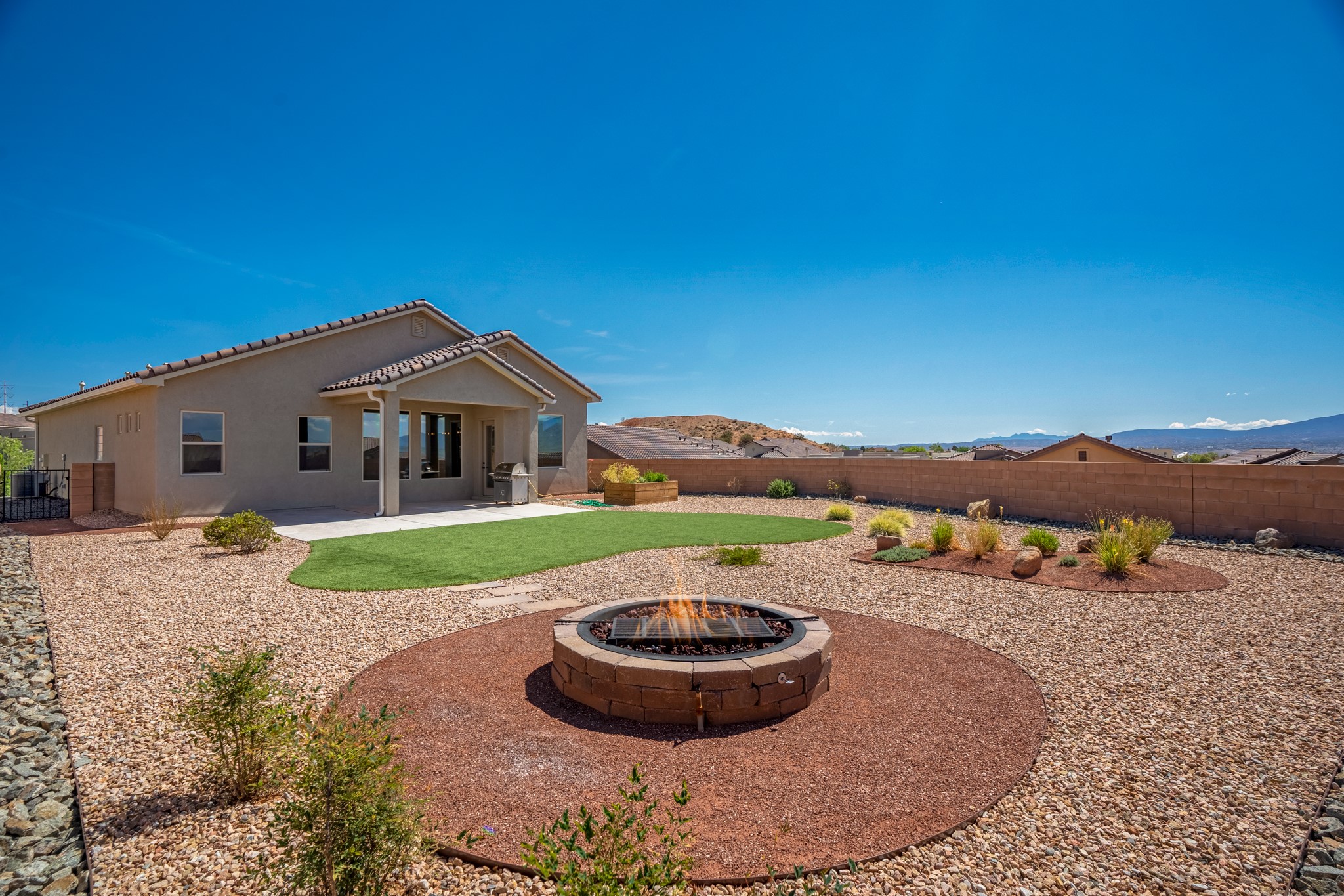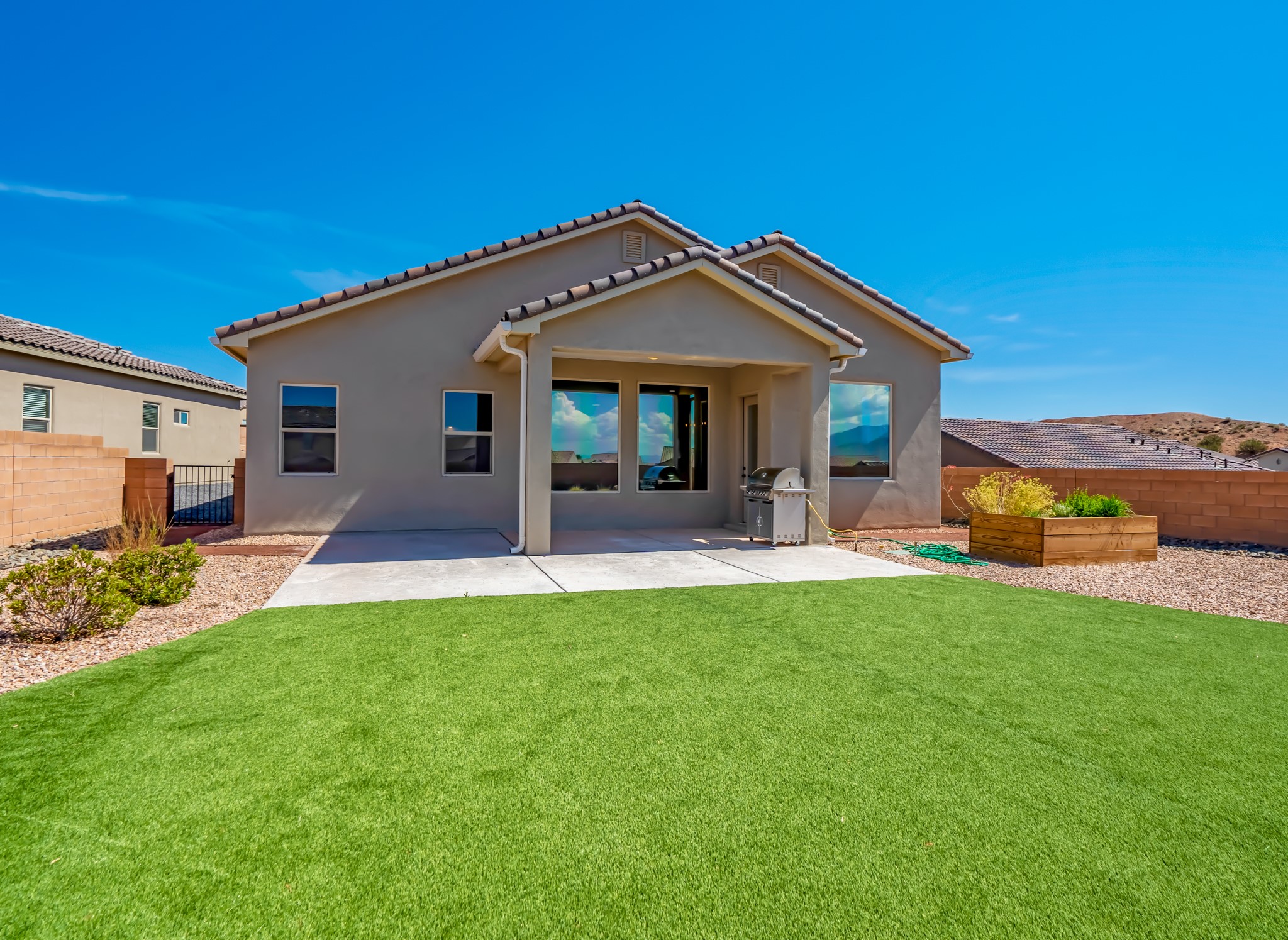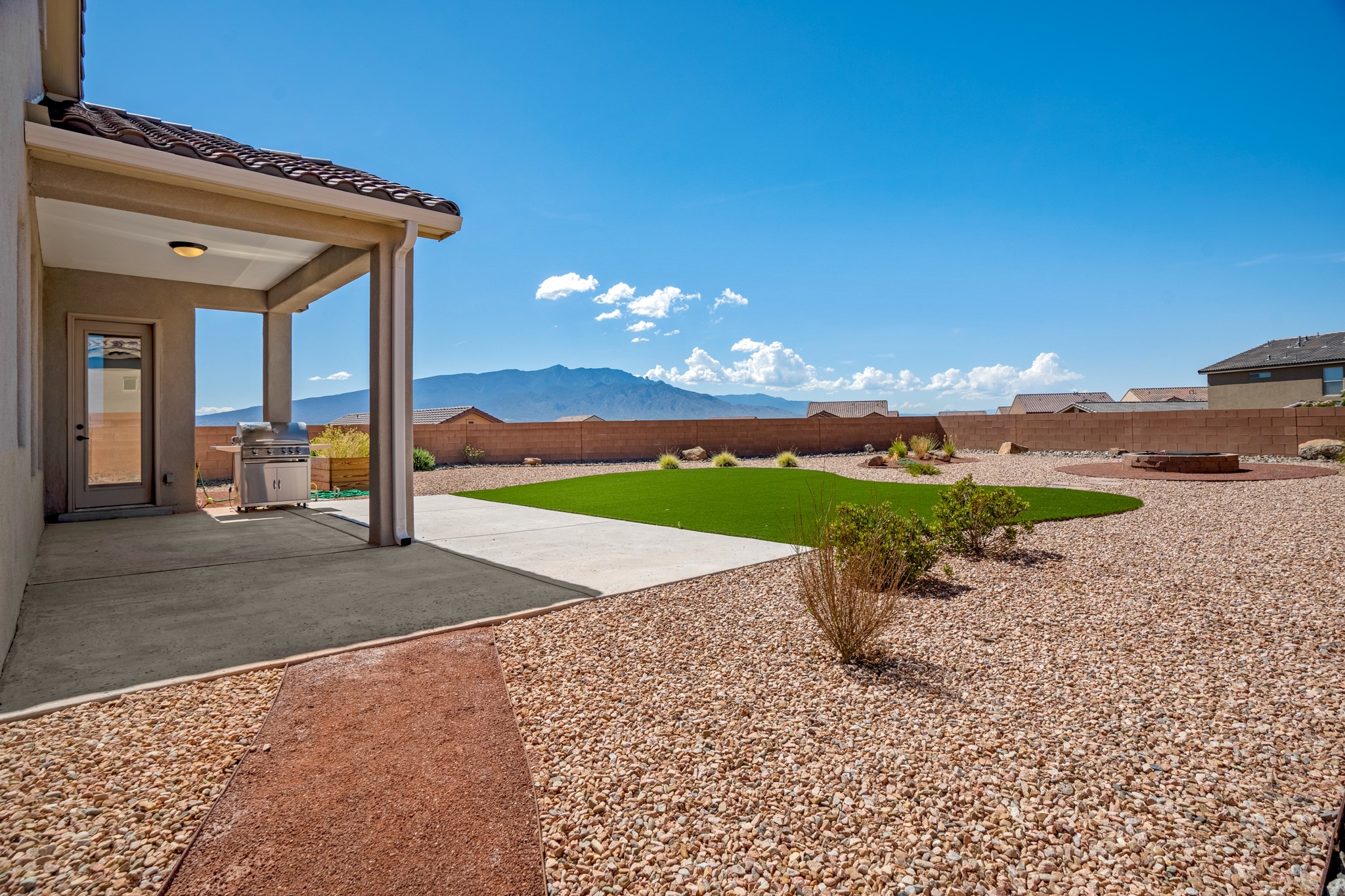 Swanky High Energy Efficient home Located in Lomas Encantadas Subdivision, offers an Impeccably designed Floor Plan, Lavish Embellishments, & Features 3 Bedrooms, 2 Bathrooms, Flex Room w/Custom Doors, VIEWS Sandia Mountains, Generous Prime Elevated Lot, Granite Countertops, Farm House Sink, SS Appliances, Breakfast Nook, Ceramic Wood Plank Floors, New Hardware & Custom Curtains, Nichos, Refrigerated Air, Tankless W-Heater & Water Softener. Meticulously Landscaped w/exceptional private outdoor space, for relaxation, recreation, entertaining, Irrigation system, Gas Grill w/stub, Fire Pit, Synthetic Turf, Garden Bed, 2 Car Garage fully finished, Park across the street & PID PAID IN FULL. Minutes to 528, 550, I-25, Rail Runner Station, Parks, Bosque Trails, & Corrales Farmers Market.