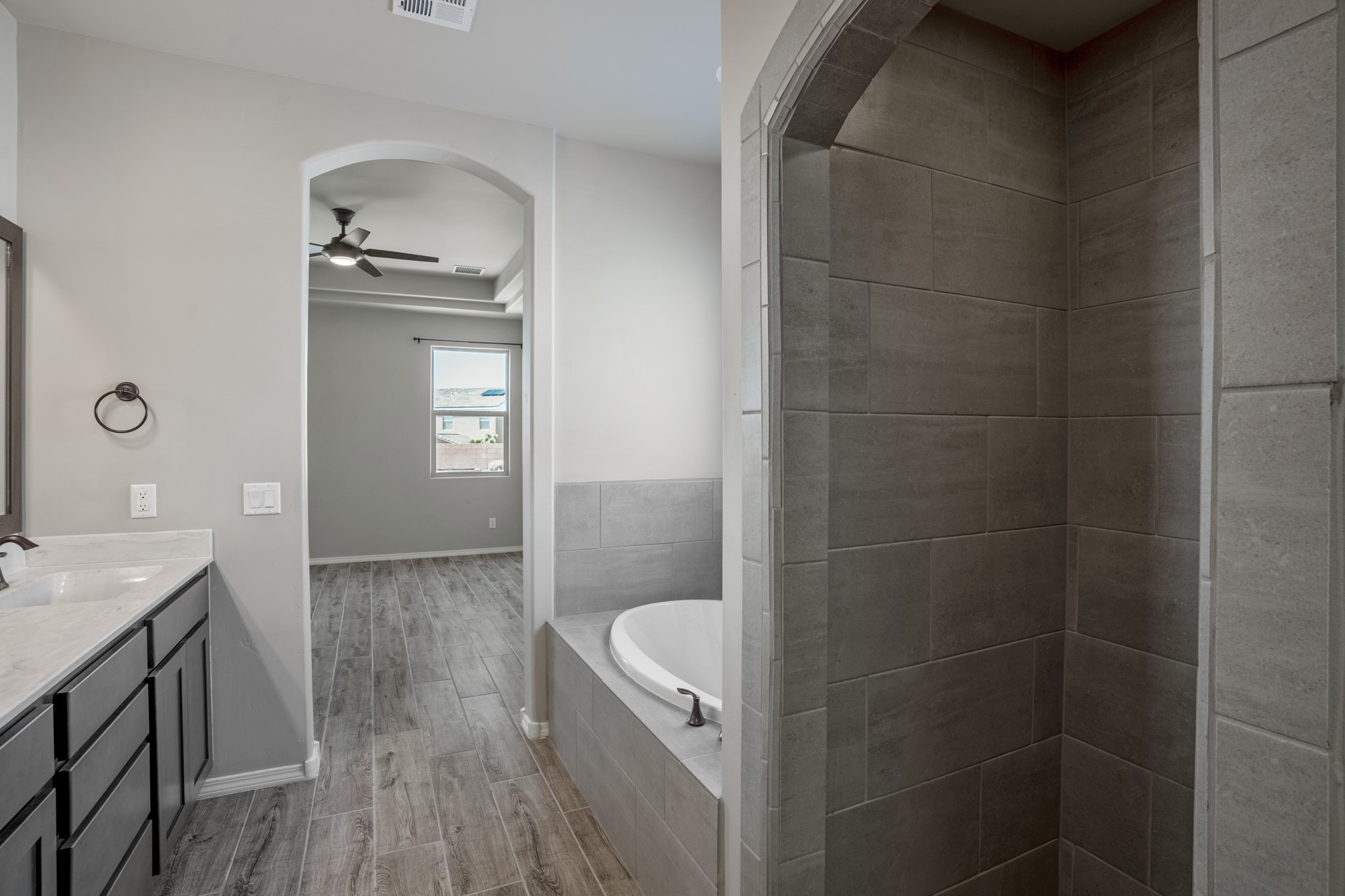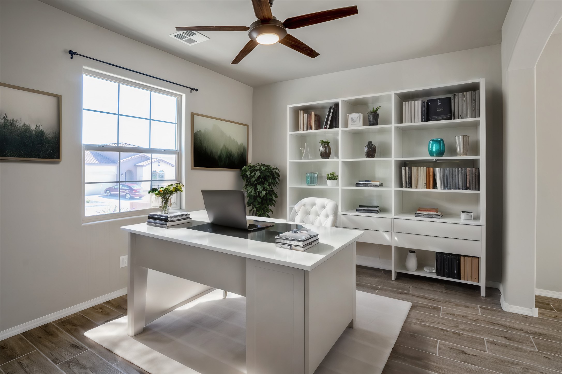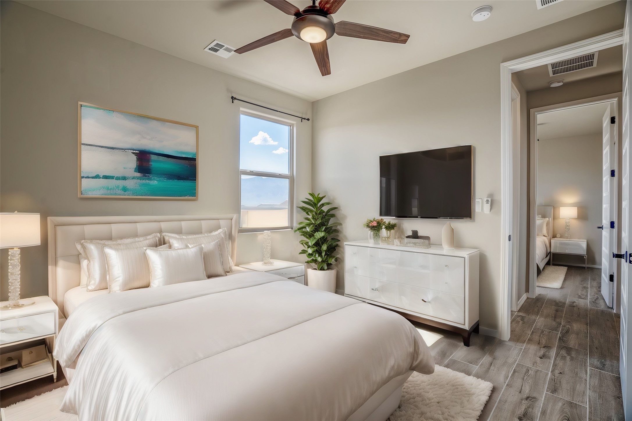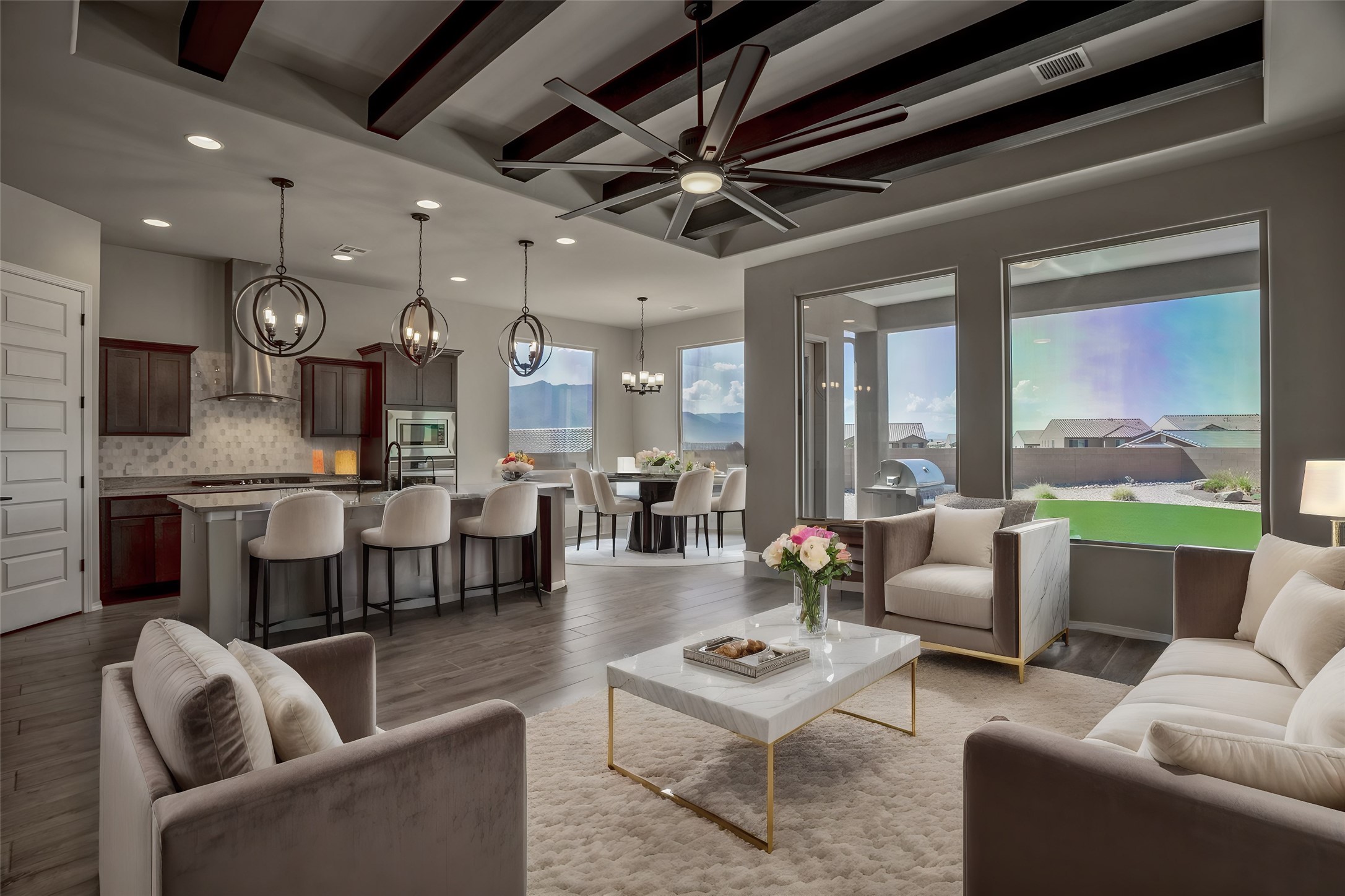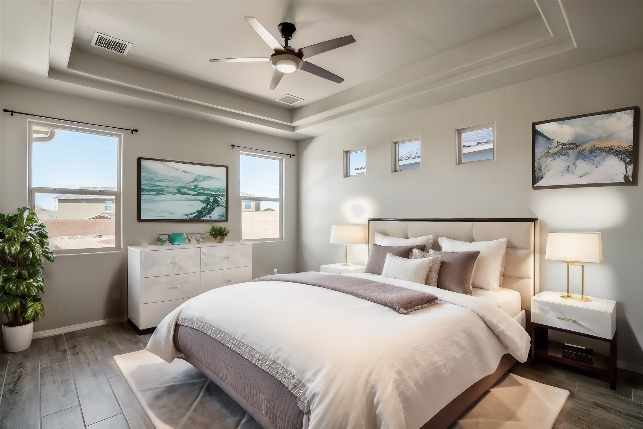 Swanky High Energy Efficient home Located in Lomas Encantadas Subdivision, offers an Impeccably designed Floor Plan, Lavish Embellishments, & Features 3 Bedrooms, 2 Bathrooms, Flex Room w/Custom Doors, VIEWS Sandia Mountains, Generous Prime Elevated Lot, Granite Countertops, Farm House Sink, SS Appliances, Breakfast Nook, Ceramic Wood Plank Floors, New Hardware & Custom Curtains, Nichos, Refrigerated Air, Tankless W-Heater & Water Softener. Meticulously Landscaped w/exceptional private outdoor space, for relaxation, recreation, entertaining, Irrigation system, Gas Grill w/stub, Fire Pit, Synthetic Turf, Garden Bed, 2 Car Garage fully finished, Park across the street & PID PAID IN FULL. Minutes to 528, 550, I-25, Rail Runner Station, Parks, Bosque Trails, & Corrales Farmers Market.