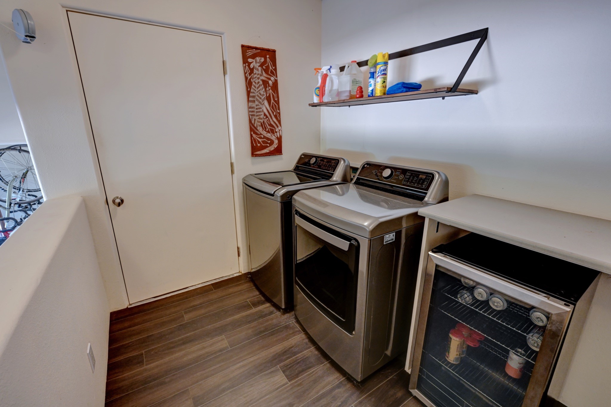 Discover refined living in this exquisite single-level residence located in Sundance Estates, where sophisticated design meets timeless Santa Fe charm. This 3 bedroom, 3 bathroom home's 2,627 square feet unfold with meticulous attention to detail, featuring elegant travertine floors and Diamond plaster walls that flow seamlessly throughout the space. The heart of the home showcases a luminous living room anchored by a stunning stone fireplace, beamed ceiling, abundant light and complemented by contemporary lighting fixtures and custom drapery that create an ambiance of understated luxury. This gracious space extends naturally into the dining area, distinguished by an artistic iron chandelier, while both rooms open onto a welcoming flagstone portal overlooking expansive views and the meticulously landscaped backyard with stone fountain. The primary bedroom suite serves as a private sanctuary, featuring an authentic Mexican wooden door entrance, a wood-burning kiva fireplace, and a private portal. The spa-inspired ensuite bathroom boasts a generous soaking tub and sophisticated marble and stone dual vanities, complemented by a generous walk-in closet. Culinary enthusiasts will appreciate the gourmet kitchen, equipped with stainless steel appliances, and custom wood cabinetry offering abundant storage. Granite countertops provide both beauty and functionality. Two thoughtfully positioned guest bedrooms, featuring character-rich square beamed ceilings and custom window treatments, offer built-in bookshelves and privacy from the primary suite. Both guest rooms enjoy their own portal access, perfect for morning coffee or evening relaxation. A two-car garage provides secure parking, while a rooftop deck offers breathtaking panoramic views. Located near the Calabasas Trail Head and only 14 minutes from the historic plaza, this home perfectly balances luxury living with the natural beauty of Santa Fe. This home offers an exceptional lifestyle in one of Santa Fe's most sought-after communities. Schedule a tour today to experience this remarkable property and please see the Matterport 3-D tour in the listing!