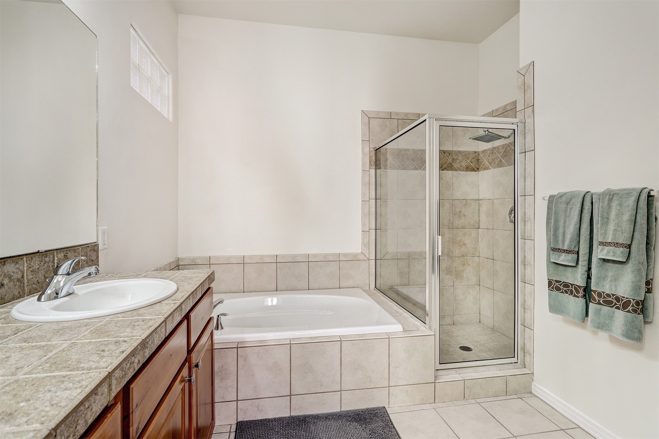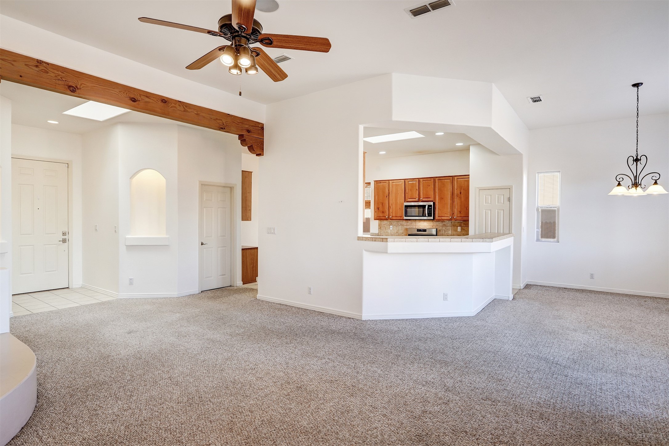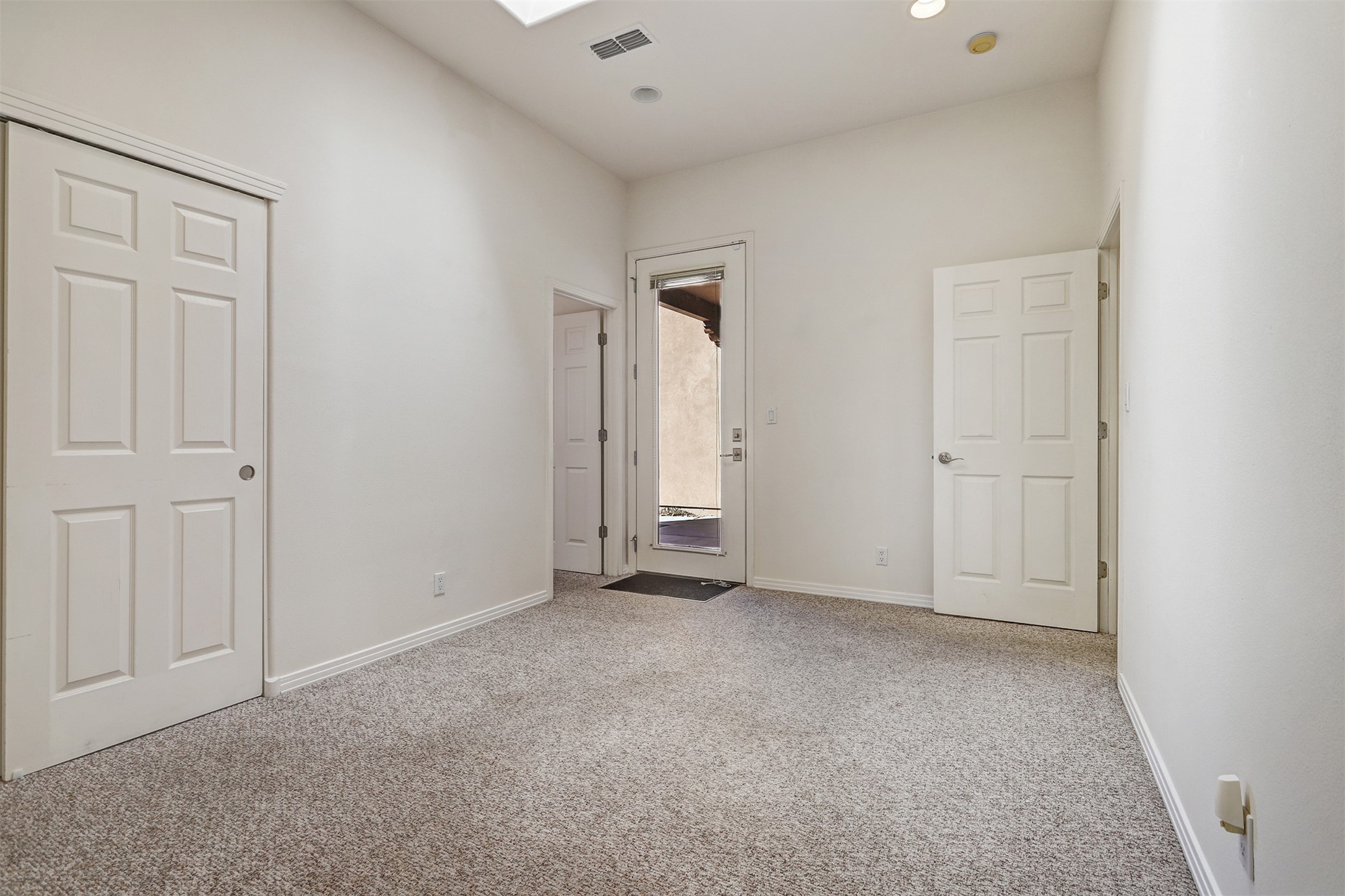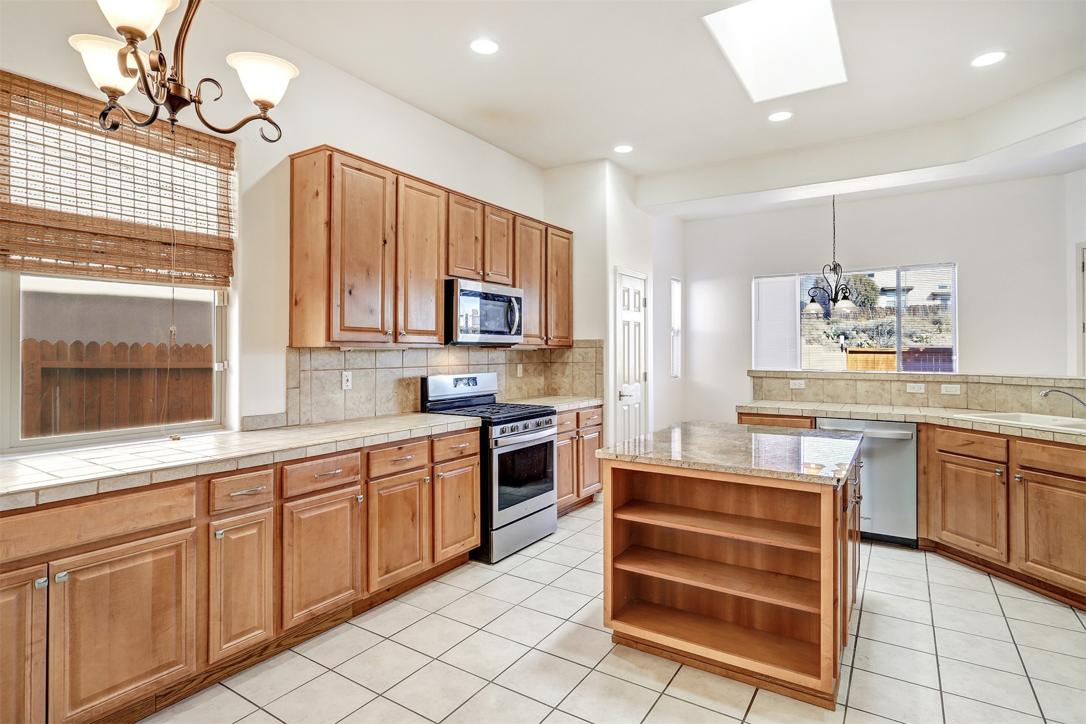 Welcome to this spacious and very well maintained 2,959 sq. ft. Pueblo-style home, offering four bedrooms, two bathrooms, and a 600 sq. ft. attached studio with a private entrance. Originally designed as an artist's space, the studio offers endless possibilities, making it ideal for a creative retreat, home office, or small business.This light-filled, single-level home features an open-concept design with a welcoming entryway, two illuminated Nichos, and a skylight that enhances its inviting ambiance. The living room boasts high ceilings, a gas Kiva fireplace, and a built-in speaker system, seamlessly flowing into the formal dining room. Patio doors open onto a covered portal, creating the perfect space for outdoor entertaining. The large, fully fenced backyard is landscaped with mature trees and a drip irrigation system, ensuring easy maintenance.The spacious kitchen is a culinary enthusiast's dream, featuring rich Alder cabinets, ample counter space, newer stainless steel appliances, and a center island with an eat-in area. A large pantry provides abundant storage, making this kitchen both functional and stylish.The generous primary suite offers two walk-in closets and direct access to the patio and outdoor entertaining spaces. The en-suite bathroom is designed for relaxation, complete with a soaking tub, a large shower, double sinks, and a skylight that fills the space with natural light. Additional bedrooms are located down the hallway, brightened by skylights and large windows with custom wood window treatments, and offer easy access to a full bathroom and the additional flex space.A finished and insulated two-car garage provides extra convenience, along with an advanced home security system for peace of mind. Freshly painted walls give the home a bright and refreshed feel, making it truly move-in ready. Conveniently located near community hiking trails, shopping centers, and schools, this home also offers easy freeway access for a smooth commute to Los Alamos and Albuquerque. Best of all, there are no HOA fees.