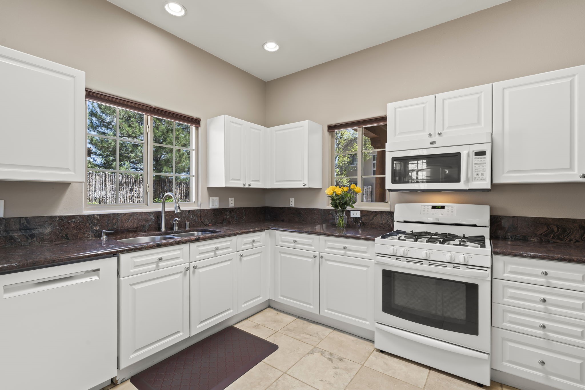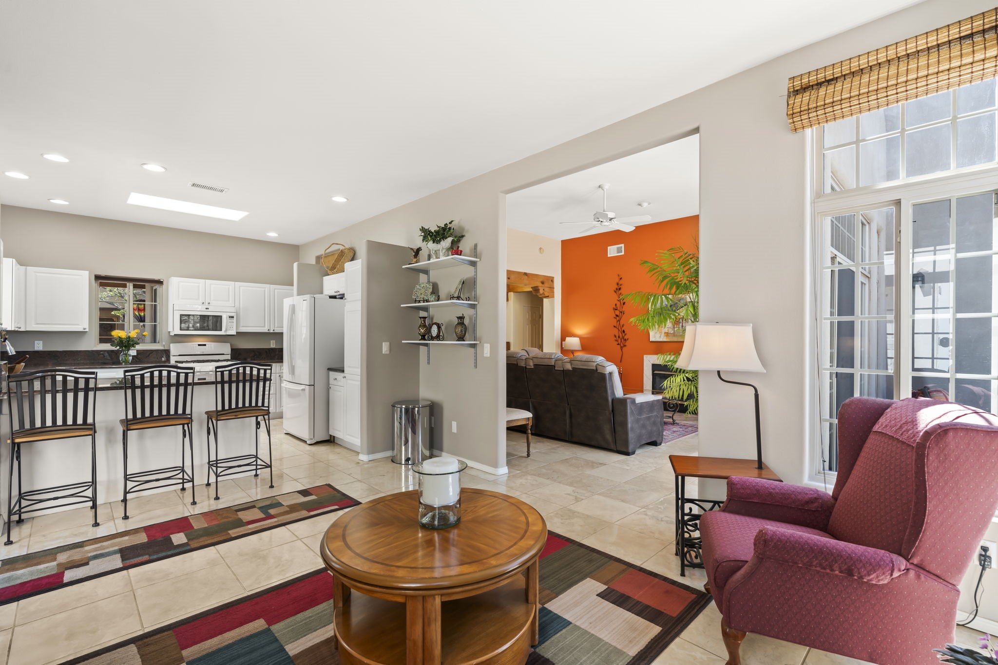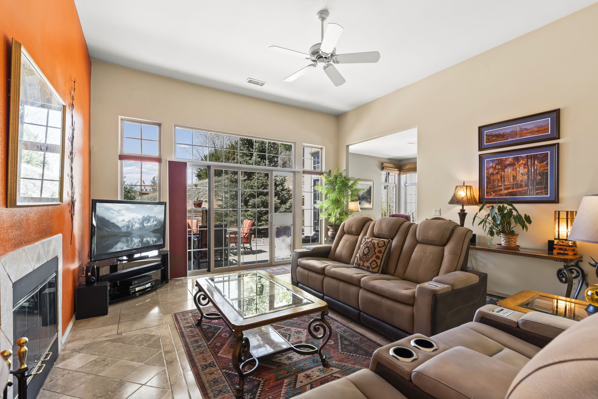 True to its name, the versatile Sunflower floor plan radiates natural light and timeless Southwestern character. This thoughtfully designed single-level home offers over 2,000 square feet of well-balanced living space, featuring four bedrooms--or three bedrooms plus a dedicated office or den to suit your lifestyle needs.Enjoy multiple inviting spaces, including two separate living areas and a dedicated dining space that seamlessly connect to the heart of the home: a spacious kitchen with granite countertops and abundant cabinetry. A cozy breakfast nook and a generous living room each boast wood-burning fireplaces, creating warm, welcoming areas perfect for relaxing or entertaining.The gracious primary suite is a serene retreat with a double vanity, soaking tub, walk-in closet, and direct access to the back patio. A second bathroom includes a curbless wheelchair-accessible shower for ease and comfort.Set on a quiet cul-de-sac, the property backs to city-owned open space for added privacy and a peaceful outdoor setting. The long driveway and detached two-car garage provide ample parking for residents and guests alike.This well-maintained home includes updated finishes and modern mechanical systems throughout. Just two blocks away, enjoy access to fantastic community amenities including an outdoor pool, hot tub, sauna, and a well-equipped gym.This home combines comfort, style, and functionality in a tranquil, highly desirable location!