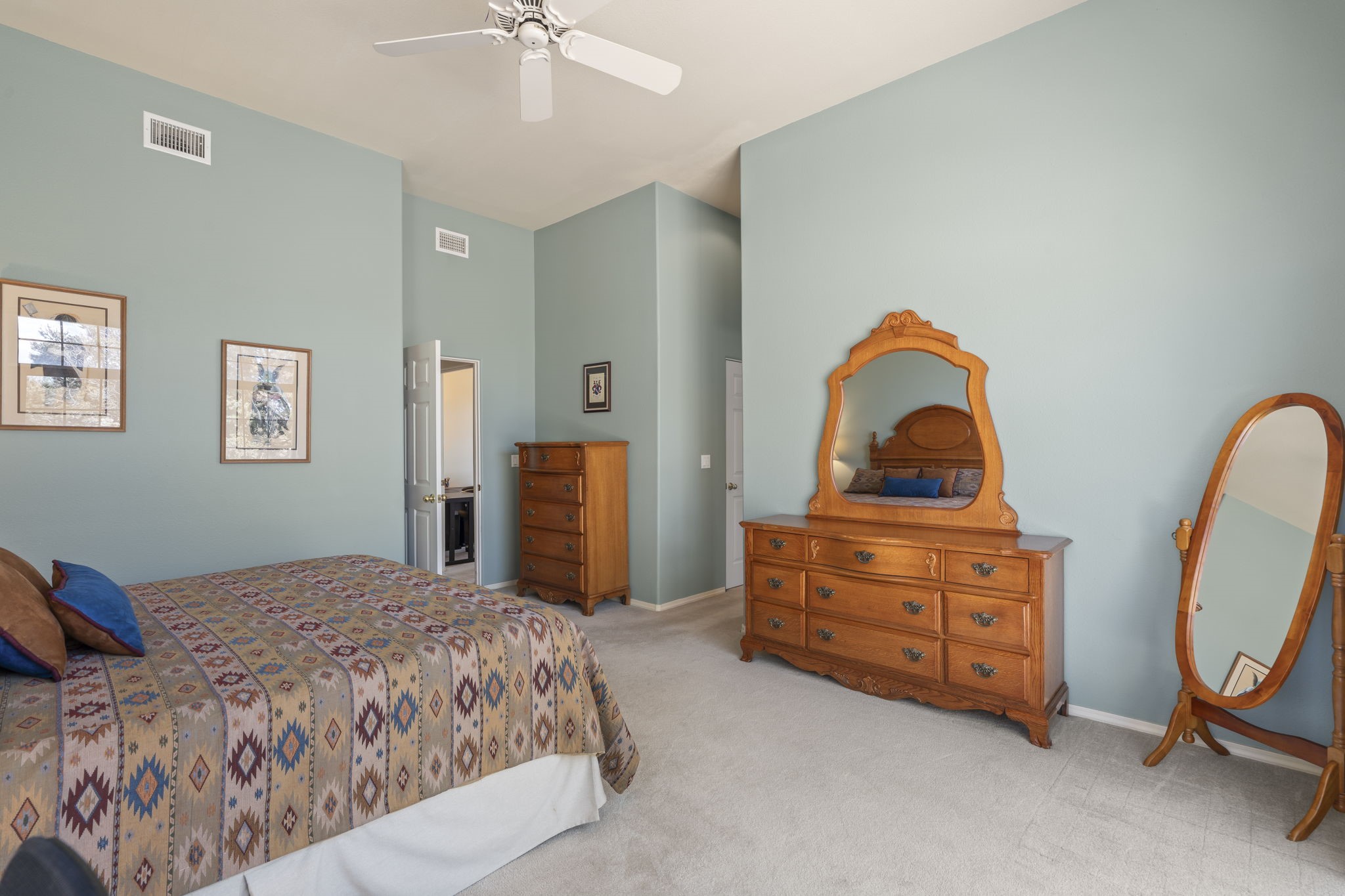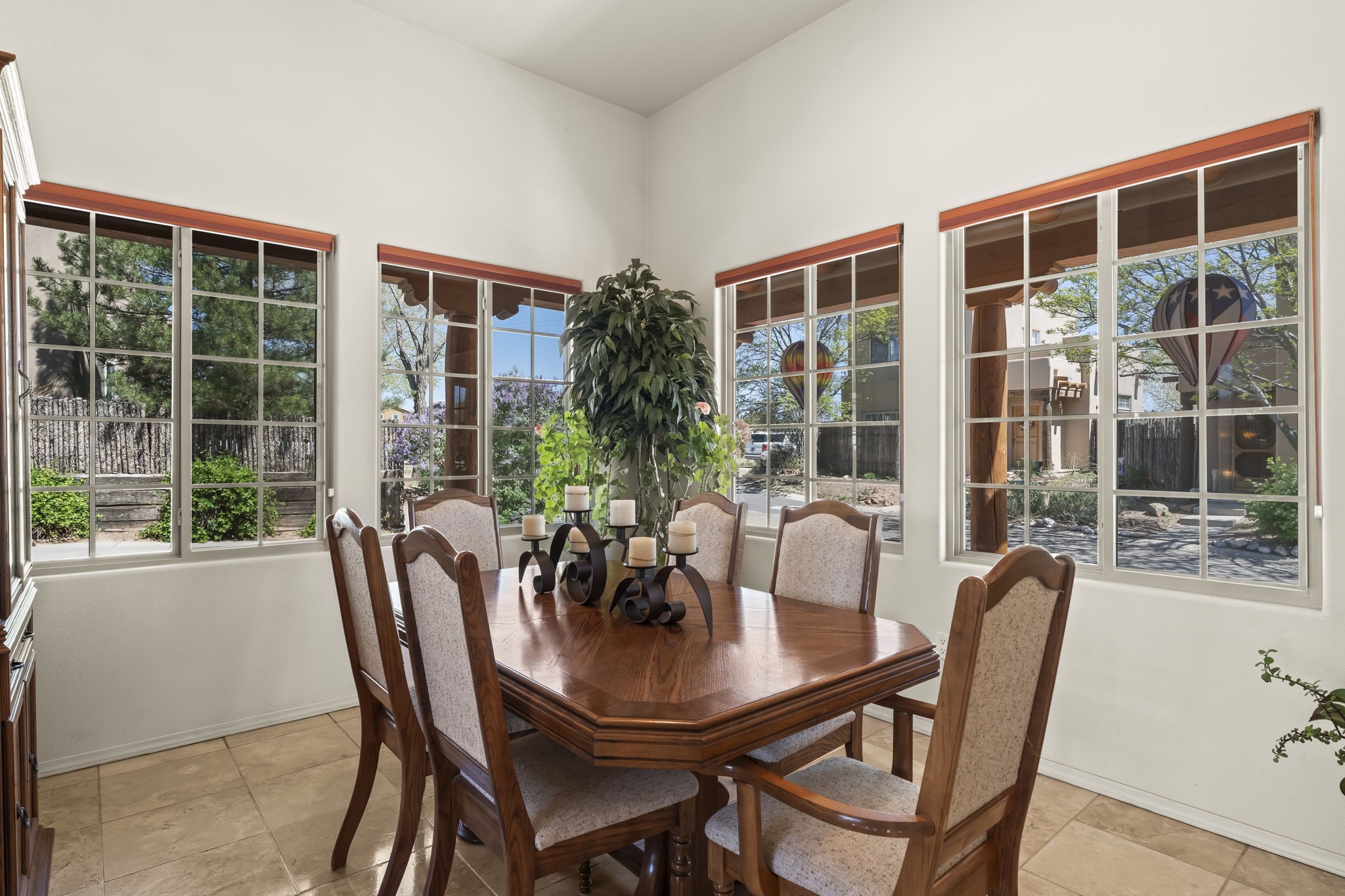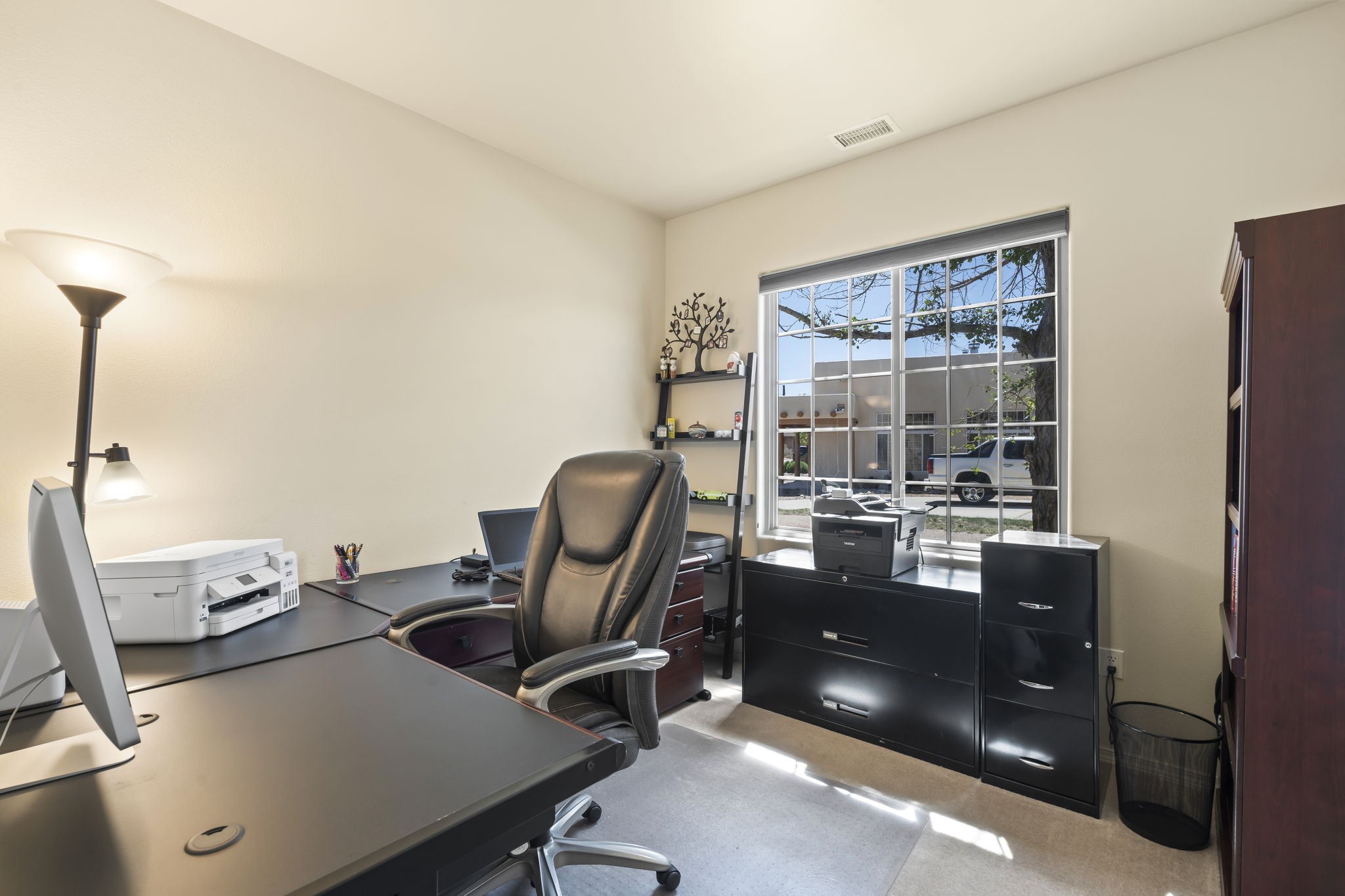 True to its name, the versatile Sunflower floor plan radiates natural light and timeless Southwestern character. This thoughtfully designed single-level home offers over 2,000 square feet of well-balanced living space, featuring four bedrooms--or three bedrooms plus a dedicated office or den to suit your lifestyle needs.Enjoy multiple inviting spaces, including two separate living areas and a dedicated dining space that seamlessly connect to the heart of the home: a spacious kitchen with granite countertops and abundant cabinetry. A cozy breakfast nook and a generous living room each boast wood-burning fireplaces, creating warm, welcoming areas perfect for relaxing or entertaining.The gracious primary suite is a serene retreat with a double vanity, soaking tub, walk-in closet, and direct access to the back patio. A second bathroom includes a curbless wheelchair-accessible shower for ease and comfort.Set on a quiet cul-de-sac, the property backs to city-owned open space for added privacy and a peaceful outdoor setting. The long driveway and detached two-car garage provide ample parking for residents and guests alike.This well-maintained home includes updated finishes and modern mechanical systems throughout. Just two blocks away, enjoy access to fantastic community amenities including an outdoor pool, hot tub, sauna, and a well-equipped gym.This home combines comfort, style, and functionality in a tranquil, highly desirable location!