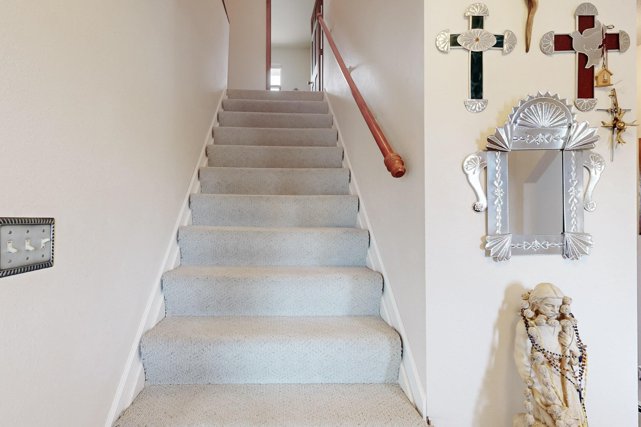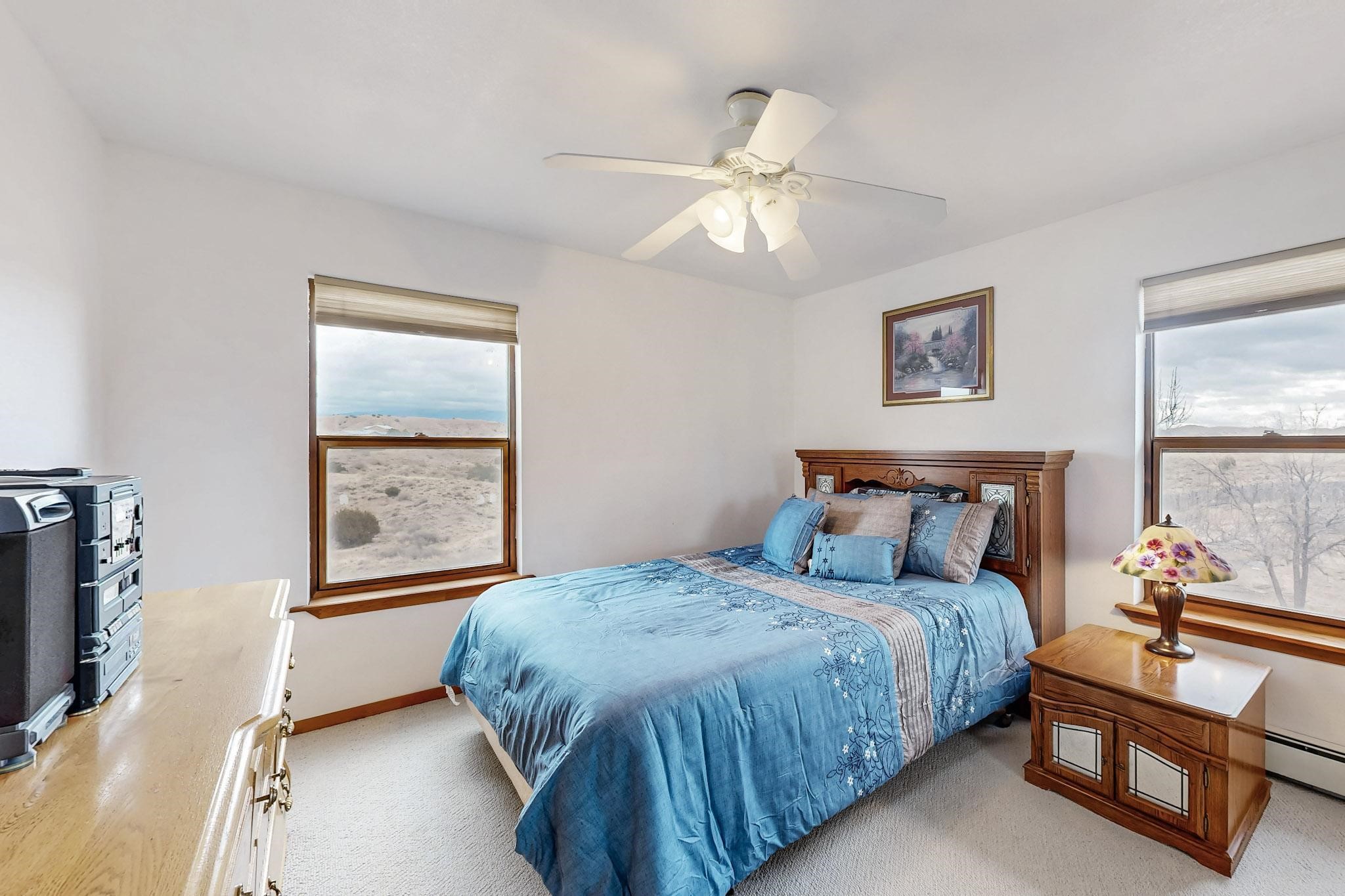 Discover your dream home in the serene Ojito Estates, just south of Espaola, New Mexico. This stunning 3-bedroom, 2.5-bathroom residence offers 2,360 square feet of thoughtfully designed living space, complemented by a spacious 2-car garage. Nestled on a gated 2.5-acre lot, the property provides ample room for RV parking and potential additions like guest quarters or a workshop. Enjoy breathtaking views of the Jemez, Truchas, and Sangre de Cristo Mountains from the south-facing living areas. Conveniently located with easy commutes to Santa Fe and Los Alamos, and just minutes from local amenities, this home combines tranquility with accessibility. Don't miss the opportunity to make this gem your own! Contact us today to schedule a viewing and take the first step toward owning your dream home.