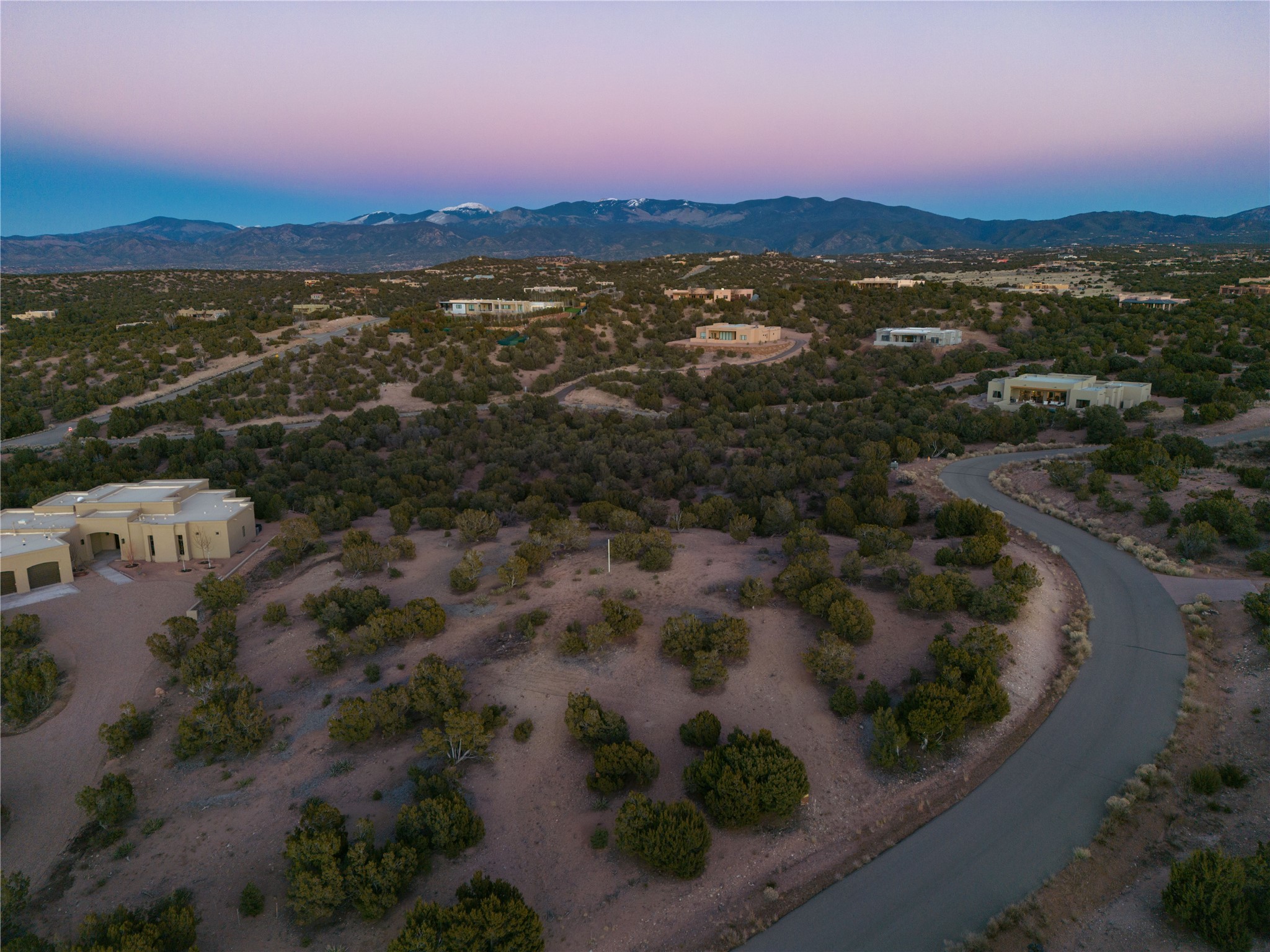 World Class View Lot! Perched on a hilltop with massive panoramic views of the Sangres, Jemez, and all the way to Albuquerque and north toward Colorado. The views can't be blocked by new construction, you'll know that the viewscape you see now will not be blocked, no surprises! Staked easy build site with plans in luxury subdivision Sundance Estates, 16 minutes from The Plaza, a world away from everything else. All utilities at the lot's edge including a shared well and public electricity. Geotechnical Investigation complete and available for inspection. Developable area staked. Shared well with adjudicated rights. 2.56 acres with pinion and juniper trees, starry nights, and sunshine filled days outside Santa Fe's world class dining, art, culture and outdoor recreation. Plans available for a 3,555 sqaure foot heated area luxury home with portals and courtyards. No gravel roads, all paved access. Close to the Las Campanas Country Club with two Jack Nicholas Signature golf courses, equestrian center, tennis courts, and much more. If you're looking for a lot with big, all around, georgous views, come have a look at this rare opportunity. Listing broker will show you around!