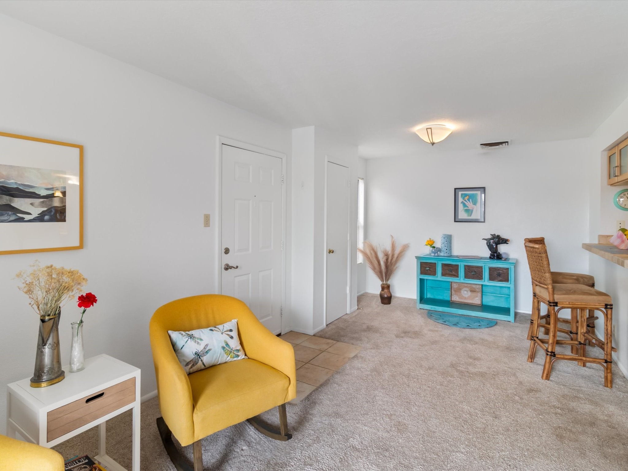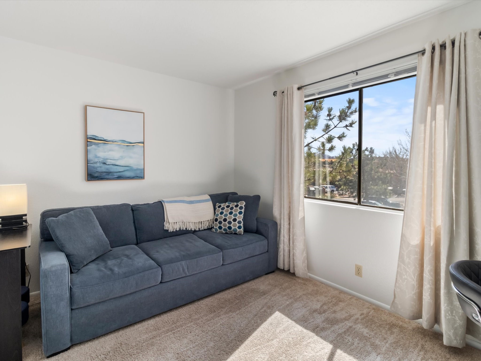 Discover the perfect blend of comfort and convenience in this desirable 2-bedroom, 2-bathroom condo at The Reserve at Santa Fe. Ideally located just minutes from the Historic Plaza, this South-facing unit offers a sunny, bright, private, and quiet second-level living space with Easterly Mountain Views. Step inside to find a thoughtfully designed interior featuring a tiled entryway, kitchen, and baths, complemented by carpeting throughout. The kitchen and bathrooms have tile countertops, maple cabinetry, and stainless-steel appliances. Additional highlights include a private balcony with an extra storage room. Enjoy a low-maintenance lifestyle with HOA-covered roof, stucco, and landscaping, allowing you to fully embrace Santa Fe as your primary or second home. As a resident of The Reserve, you will have access to amenities, including a year-round heated pool, hot tub, first-class fitness center, laundry facilities, and scenic nature trails--all within a beautifully maintained 16-acre gated community. The property also offers ample parking for cars and bicycles and is pet-friendly for small pets up to 25 lbs. Conveniently located just 3 minutes from shopping at DeVargas Mall and 5 minutes from the downtown Santa Fe Plaza, this condo offers an unbeatable location for those seeking a peaceful yet well-connected retreat. Please note that rentals under 30 days are not permitted, and The Reserve is a non-smoking community. Don't miss this incredible opportunity to own a move-in-ready home in one of Santa Fe's most sought-after communities! For more details, visit: www.reserveatsantafe.org*****Freddie Mac backed Mortgages once again available for The Reserve Units!********Community is fully eligible for conventional financing again, please call us for details.