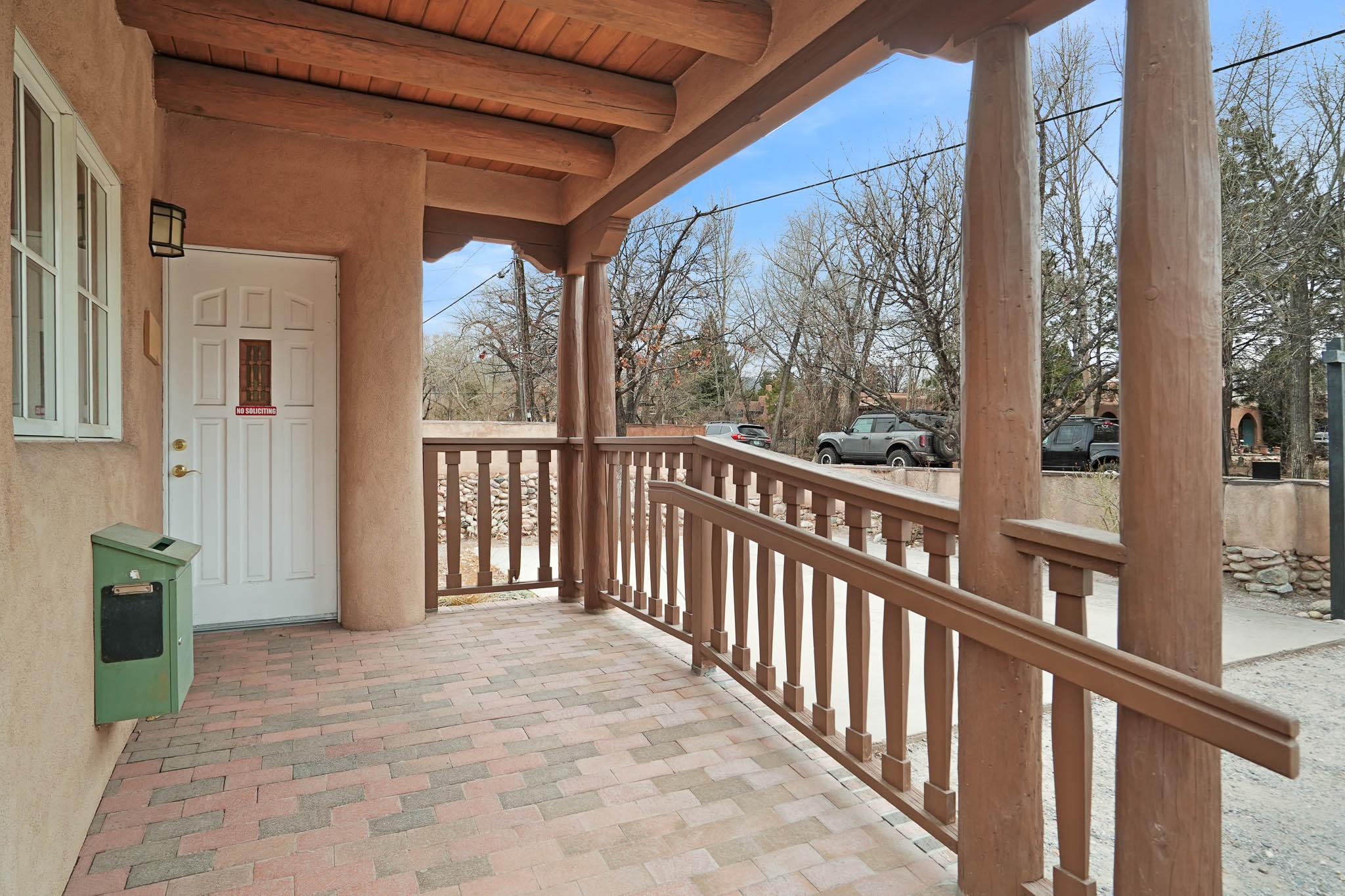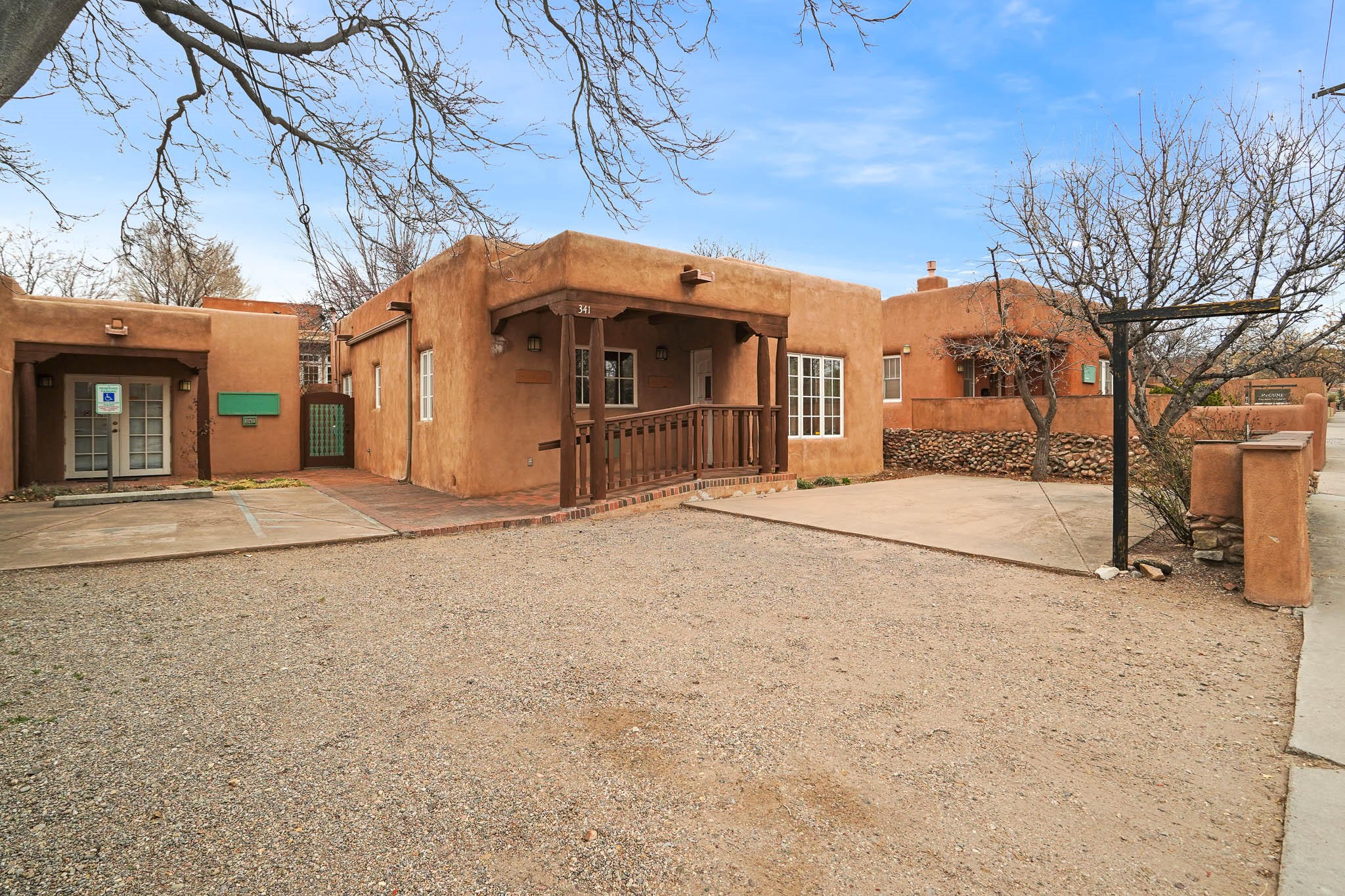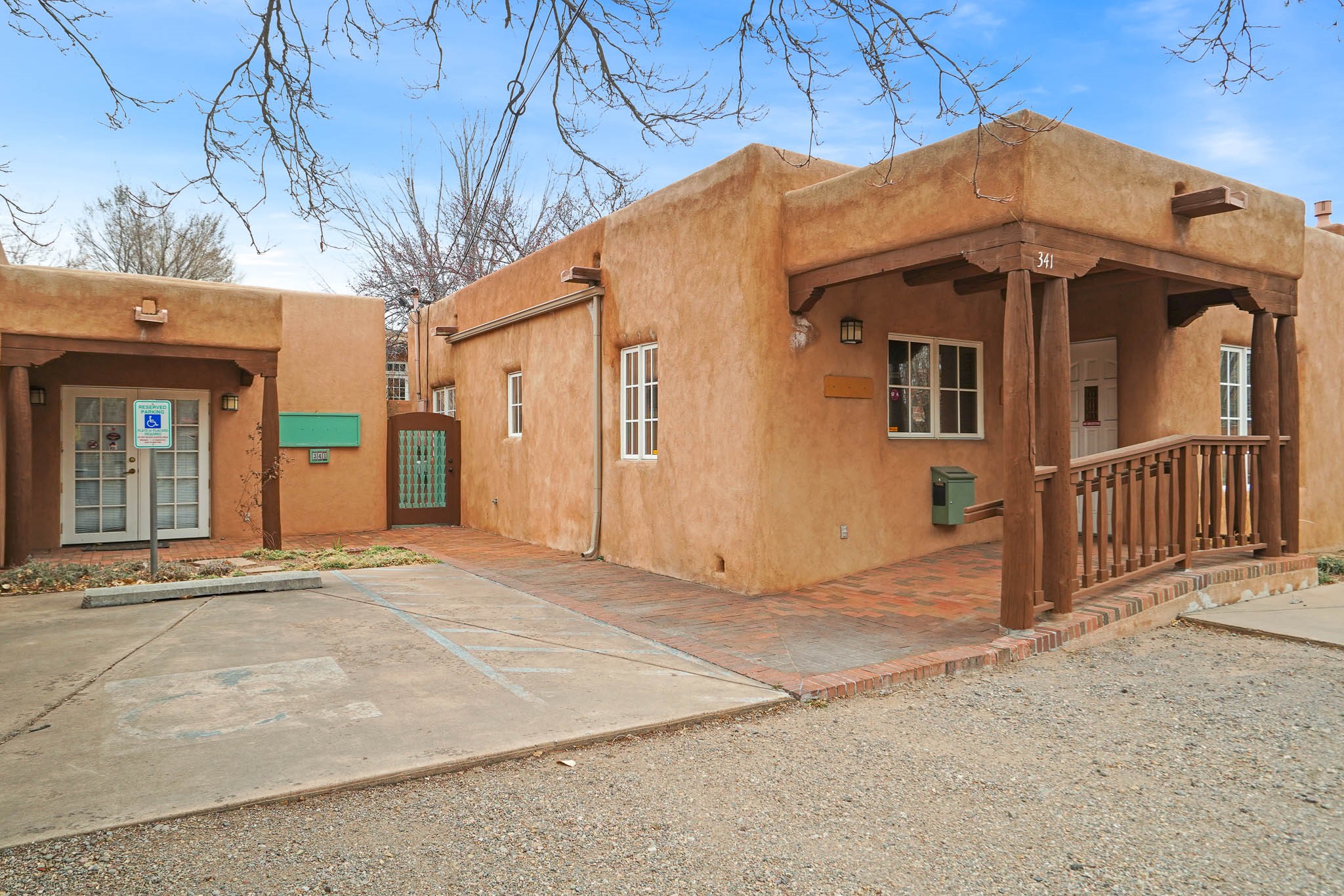 Premier free-standing retail/office building with an additional detached casita suite, ideal for an owner-user. Situated near the heart of Downtown Santa Fe along the tranquil Santa Fe River, the property features a charming reception area with a fireplace and viga ceilings, two private offices, a kitchenette, an in-suite restroom, and storage. The space includes a private back courtyard. The detached casita/office offers an abundance of storage and a restroom with a shower. There are three off-street parking spaces with easy accessibility. Prominent signage and excellent visibility fronting East Alameda. BCD zoning allows for an array of uses--from retail/gallery to general office--or it can be converted into a private residence. Don't miss this rare opportunity to own a versatile property that combines historic charm with modern convenience in the heart of Santa Fe.