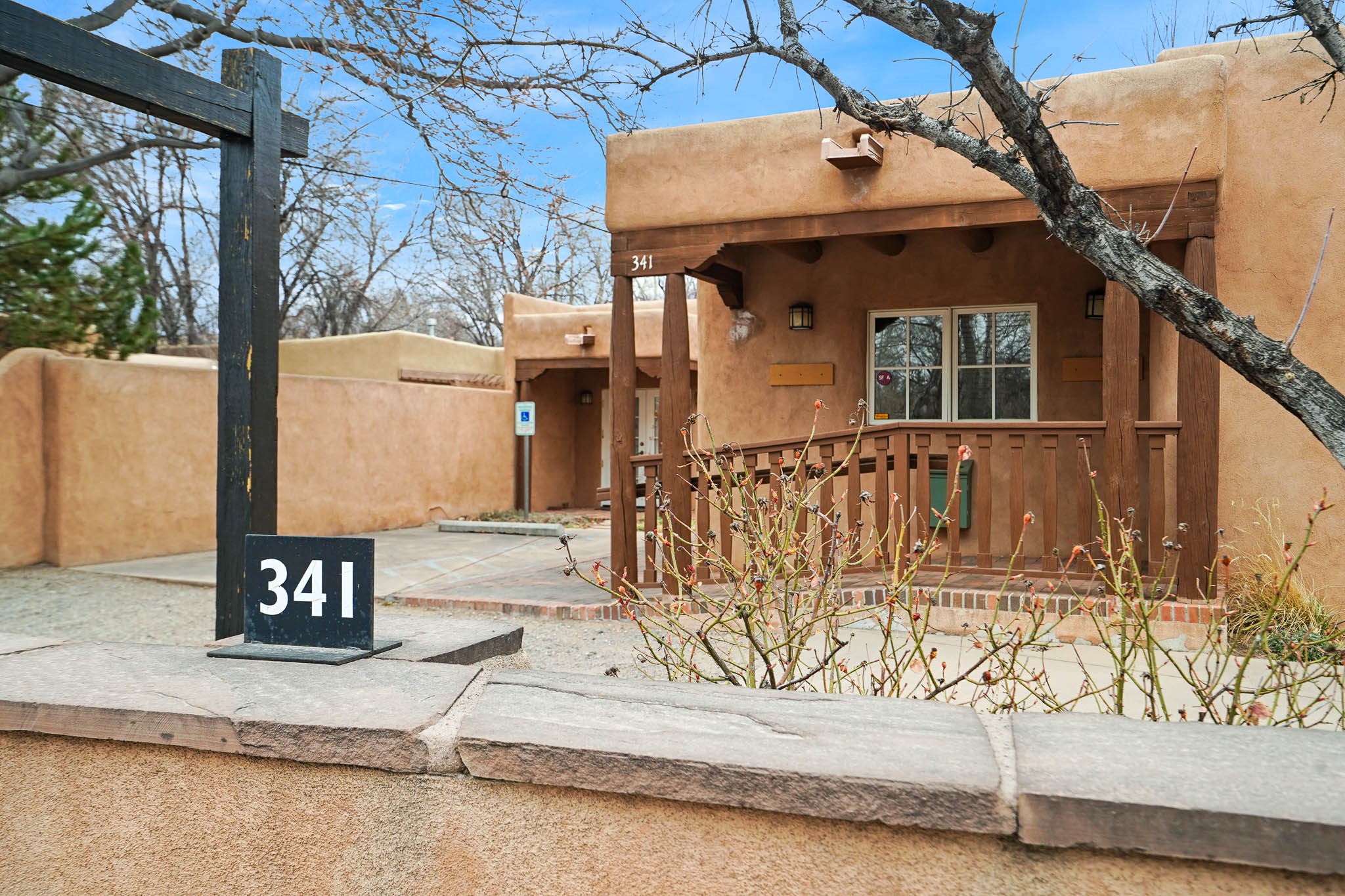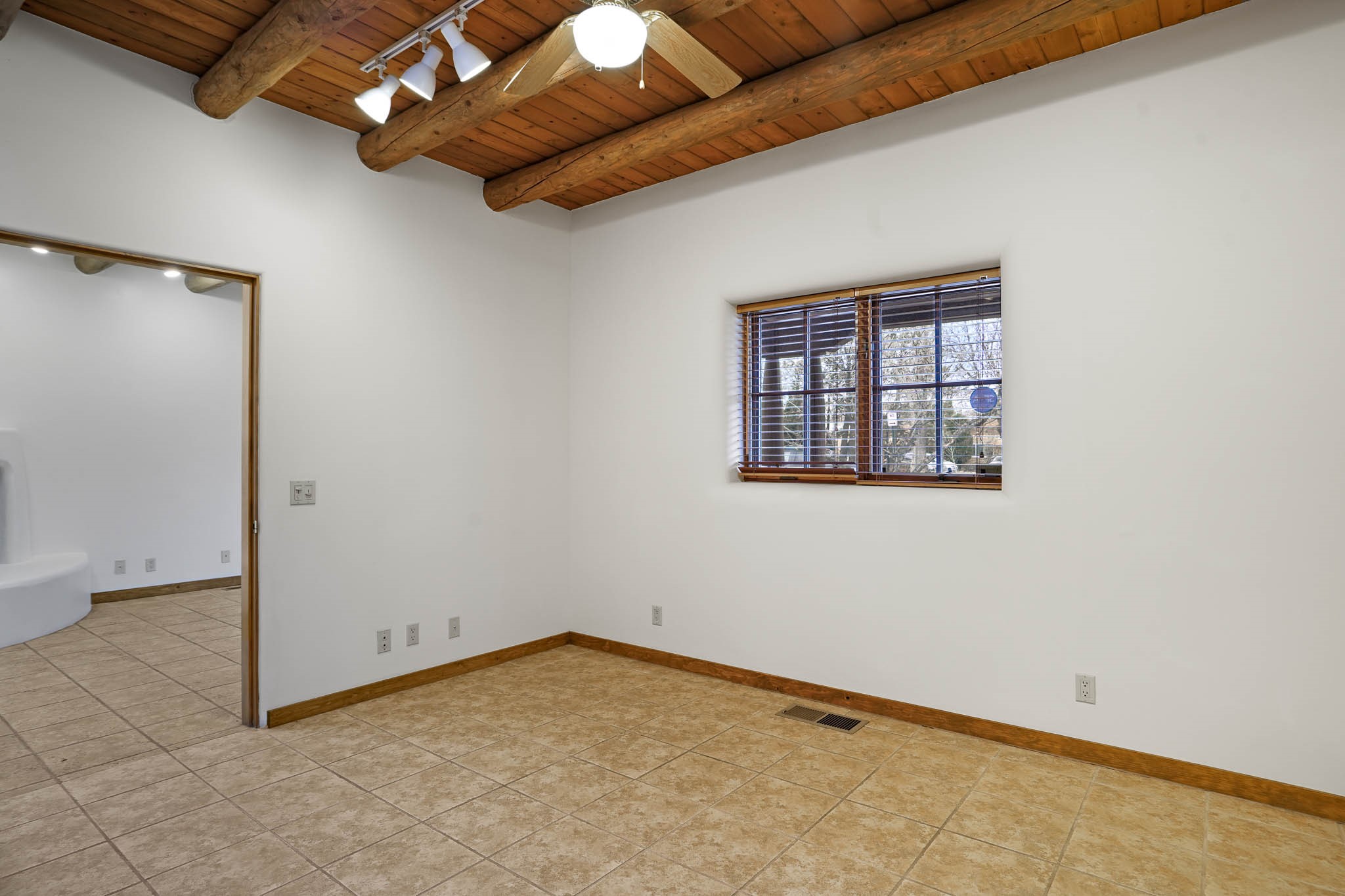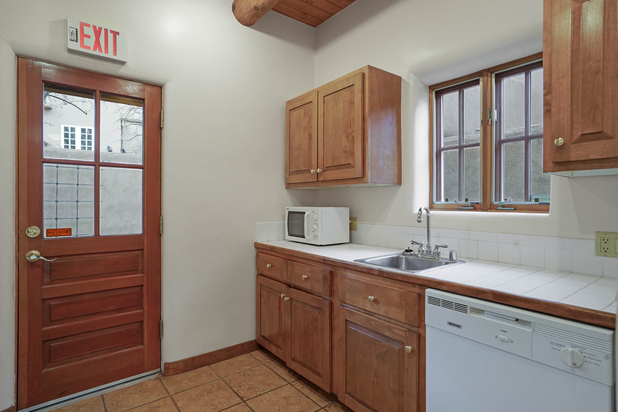 Premier free-standing retail/office building with an additional detached casita suite, ideal for an owner-user. Situated near the heart of Downtown Santa Fe along the tranquil Santa Fe River, the property features a charming reception area with a fireplace and viga ceilings, two private offices, a kitchenette, an in-suite restroom, and storage. The space includes a private back courtyard. The detached casita/office offers an abundance of storage and a restroom with a shower. There are three off-street parking spaces with easy accessibility. Prominent signage and excellent visibility fronting East Alameda. BCD zoning allows for an array of uses--from retail/gallery to general office--or it can be converted into a private residence. Don't miss this rare opportunity to own a versatile property that combines historic charm with modern convenience in the heart of Santa Fe.